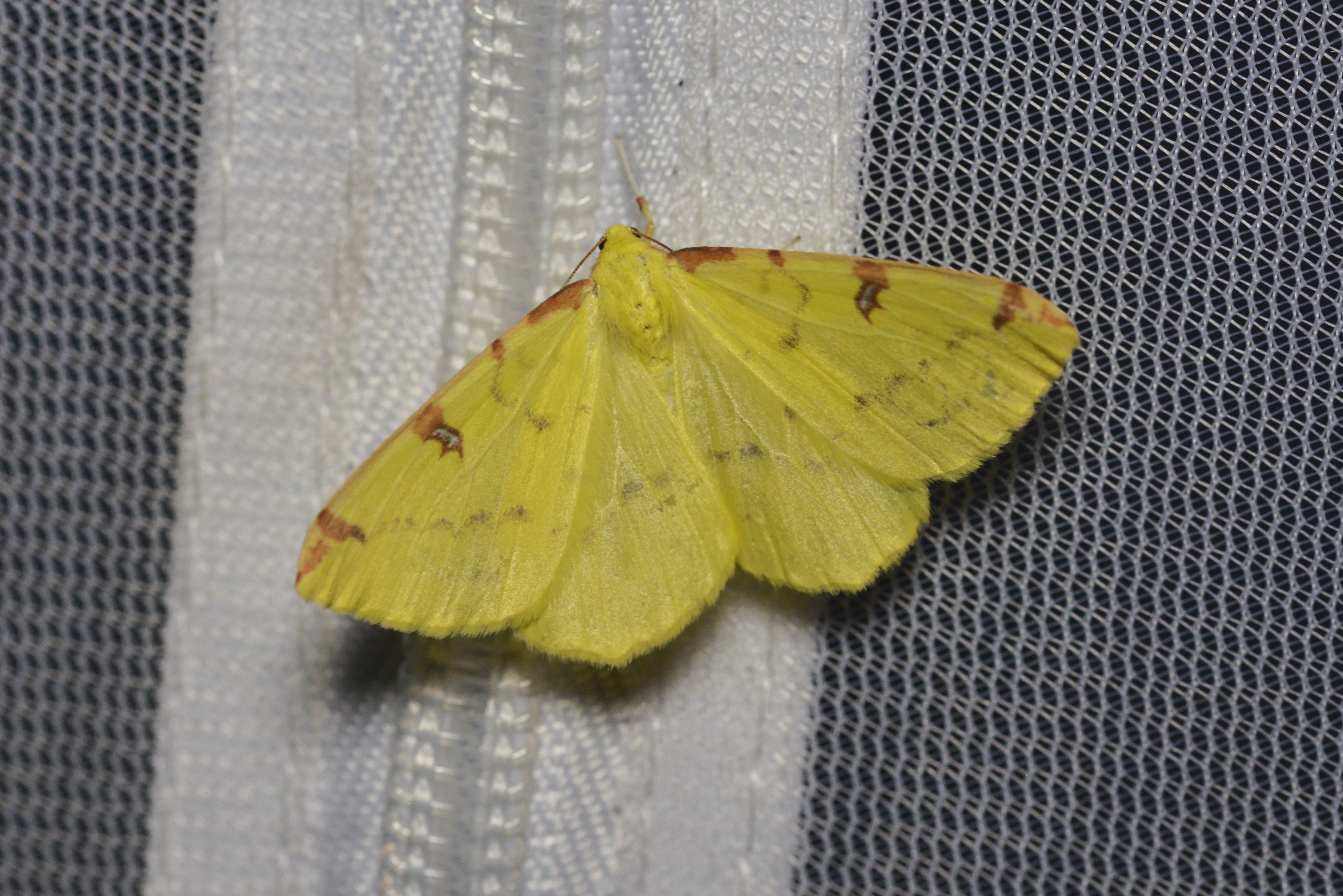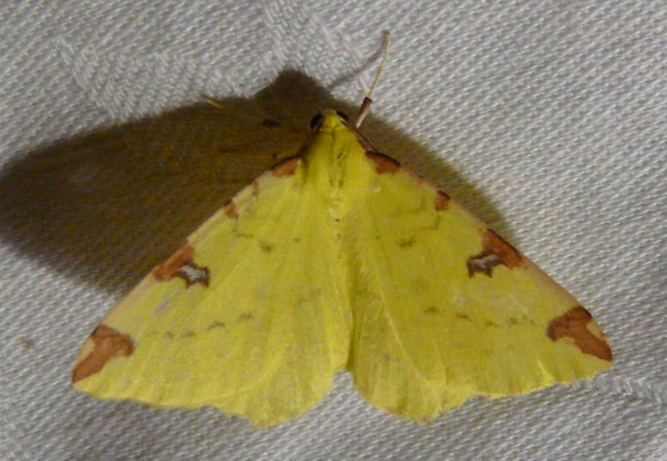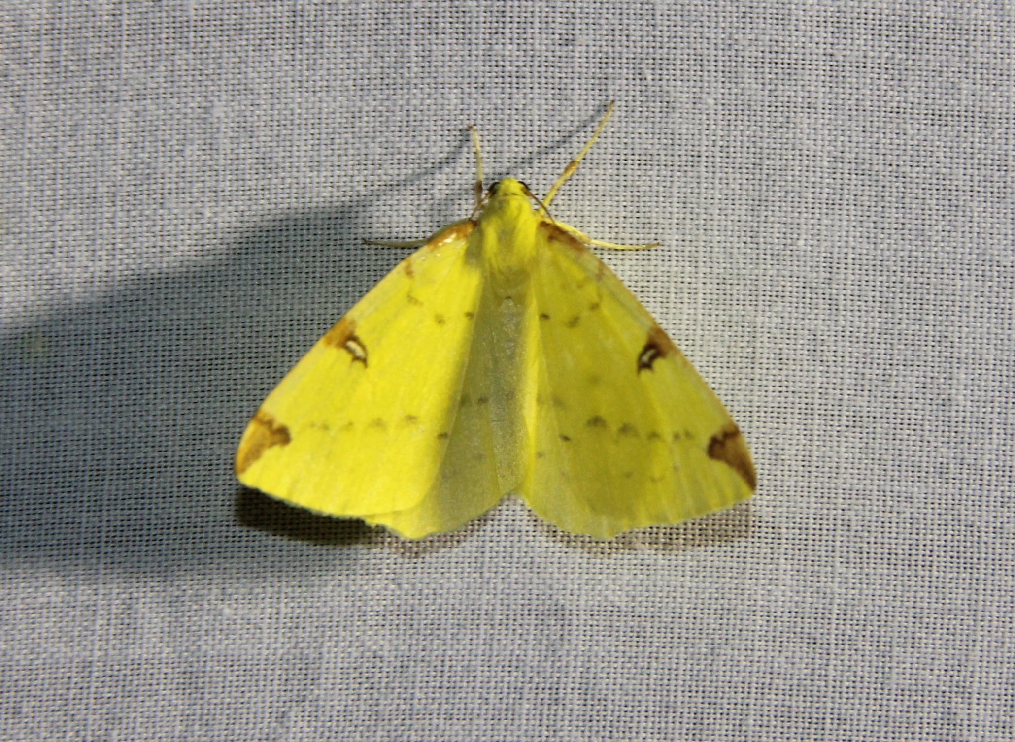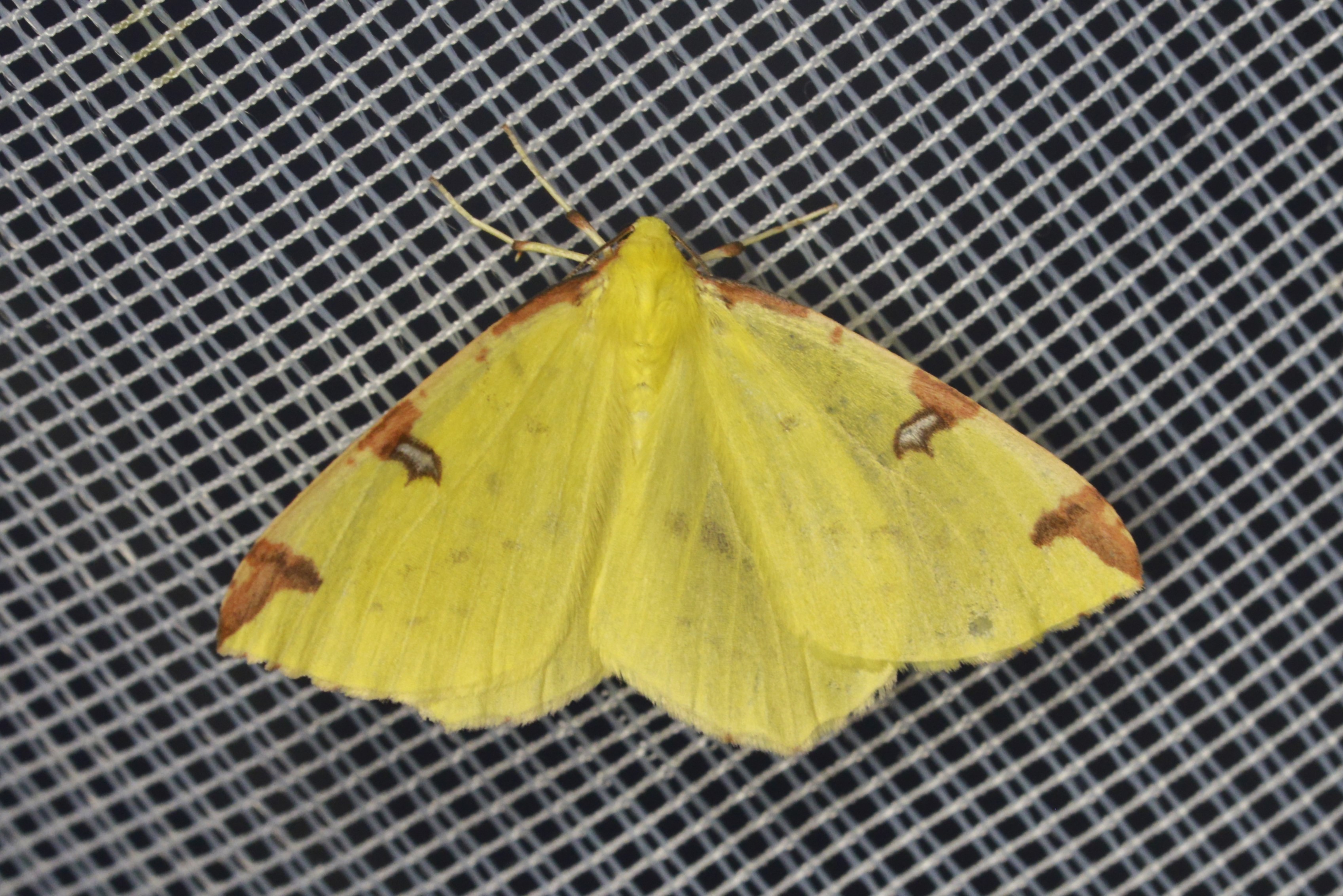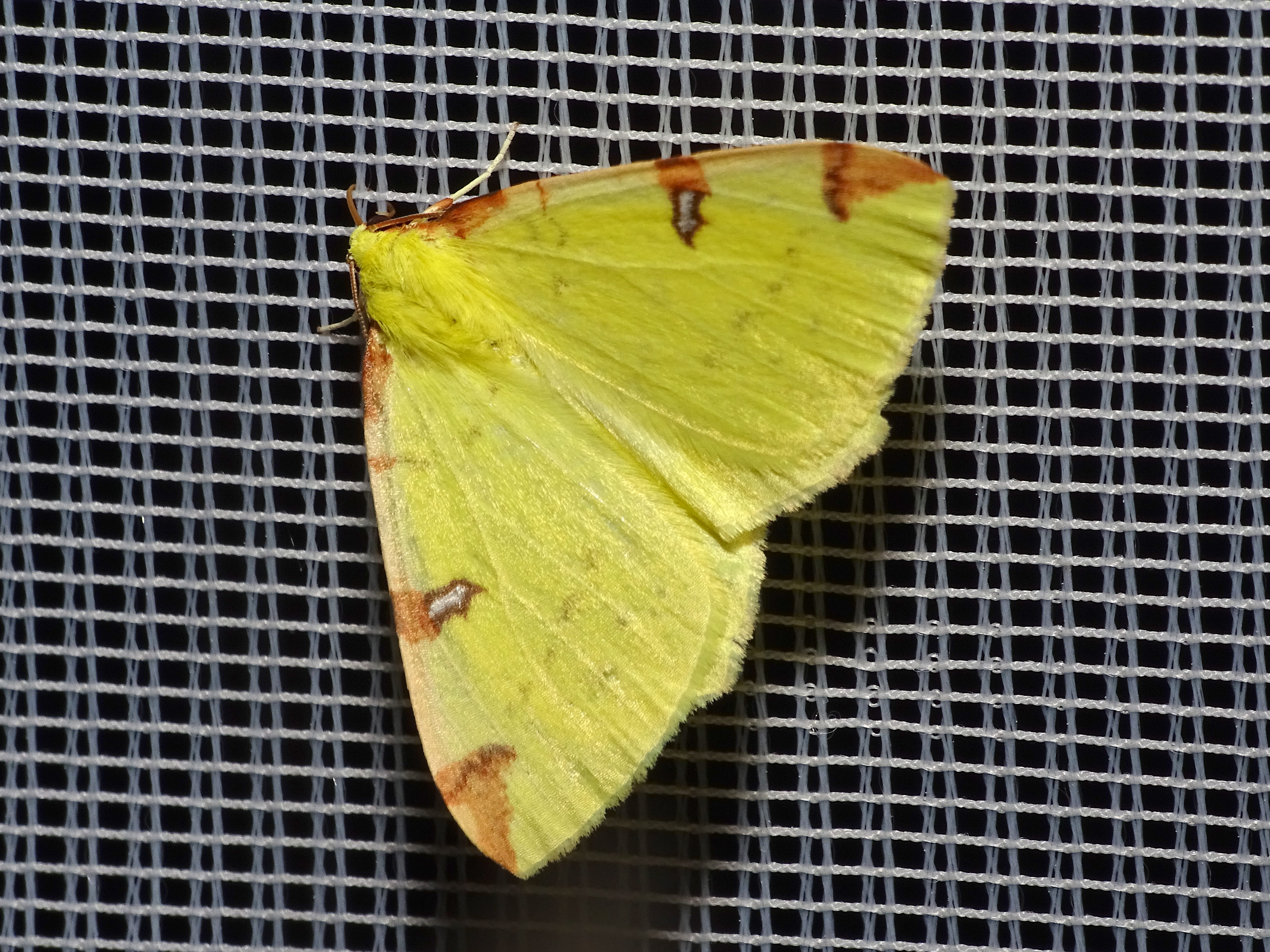 Gelbspanner, Ende Mai in Hoyerswerda, Klein Neida, am Licht