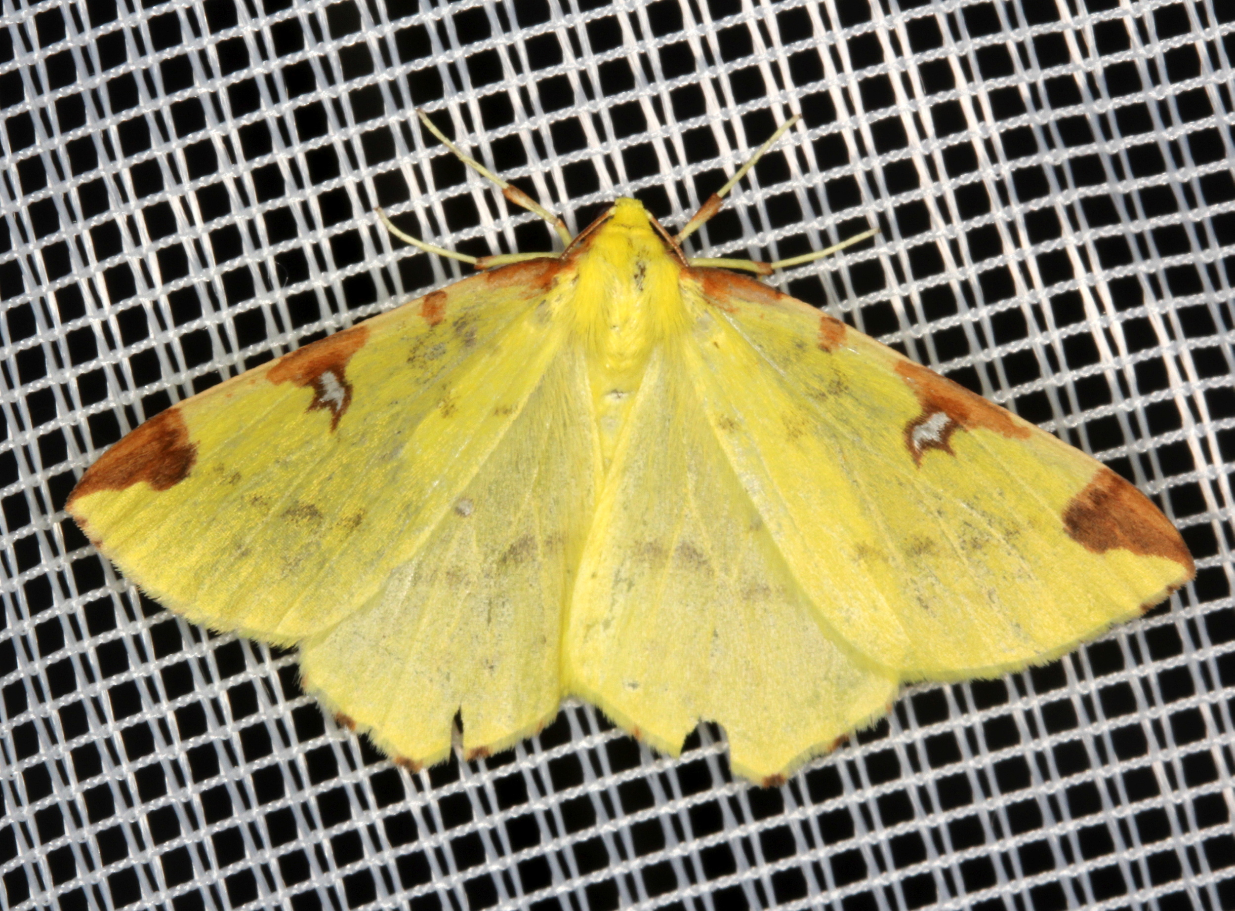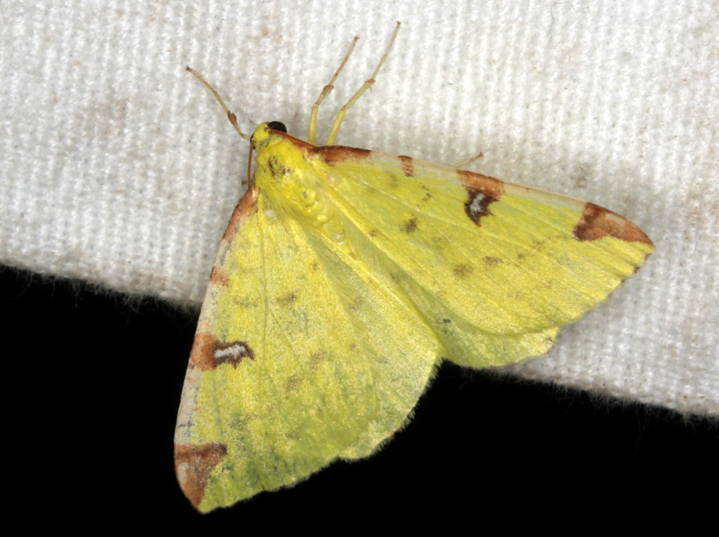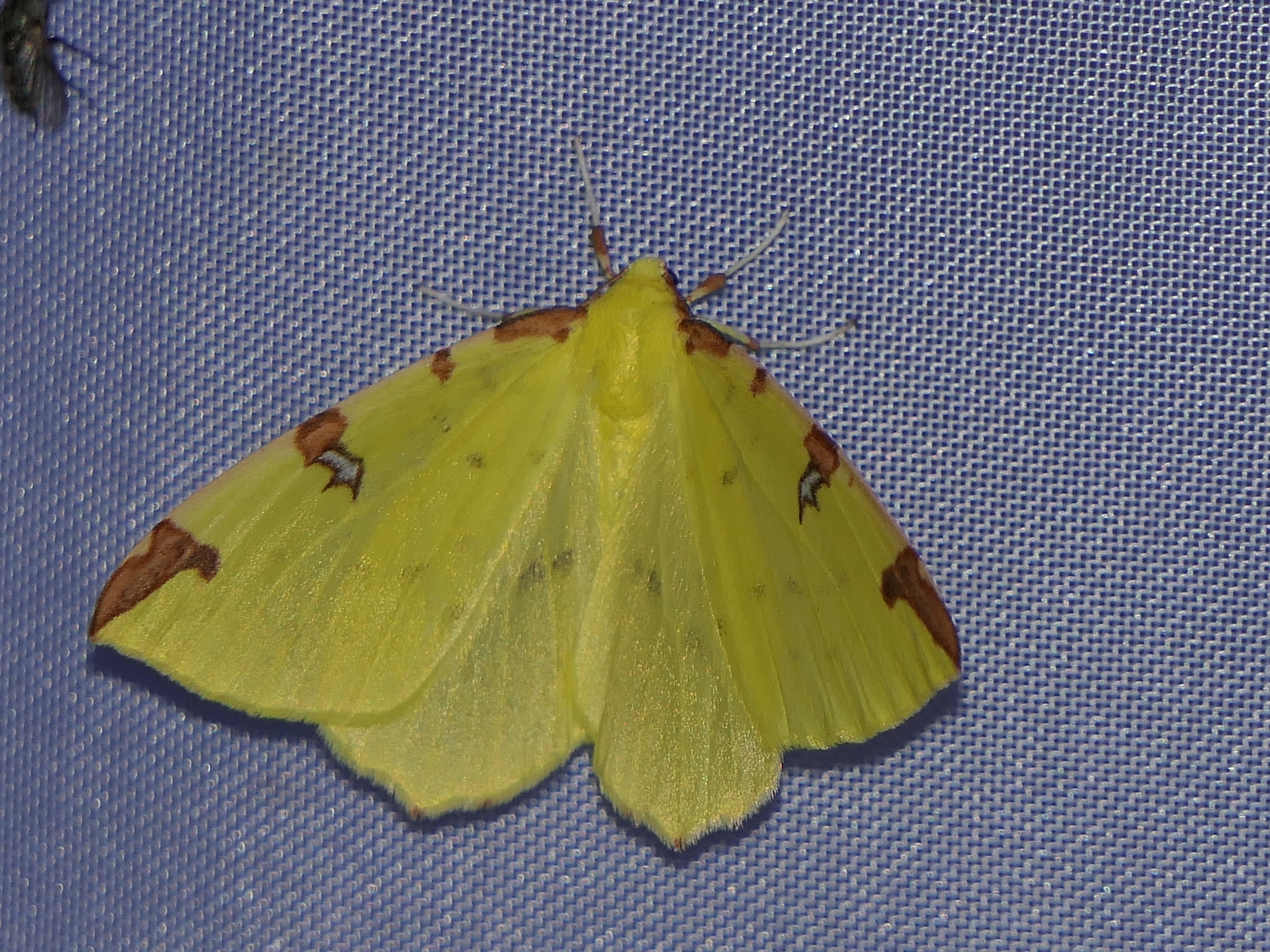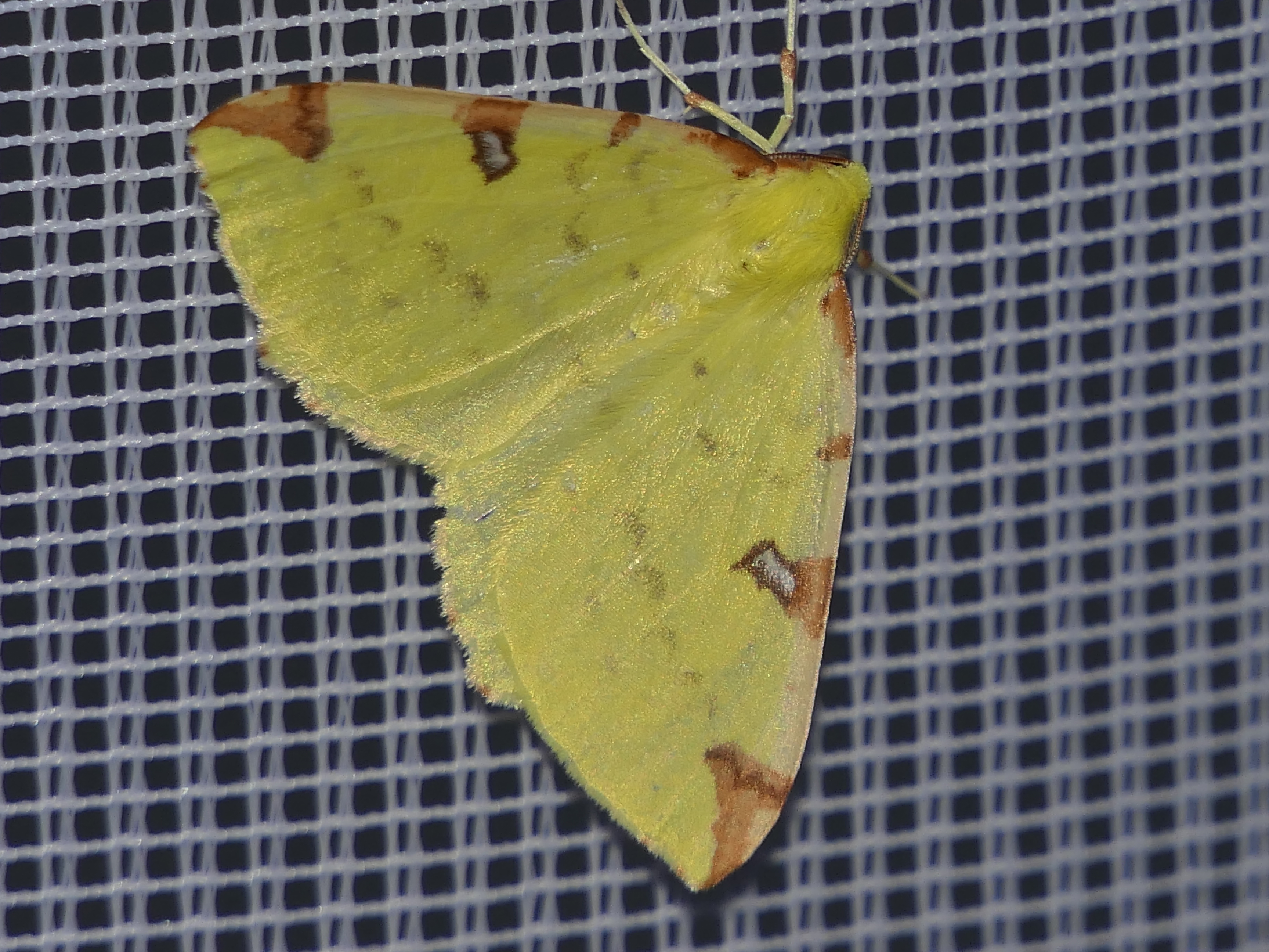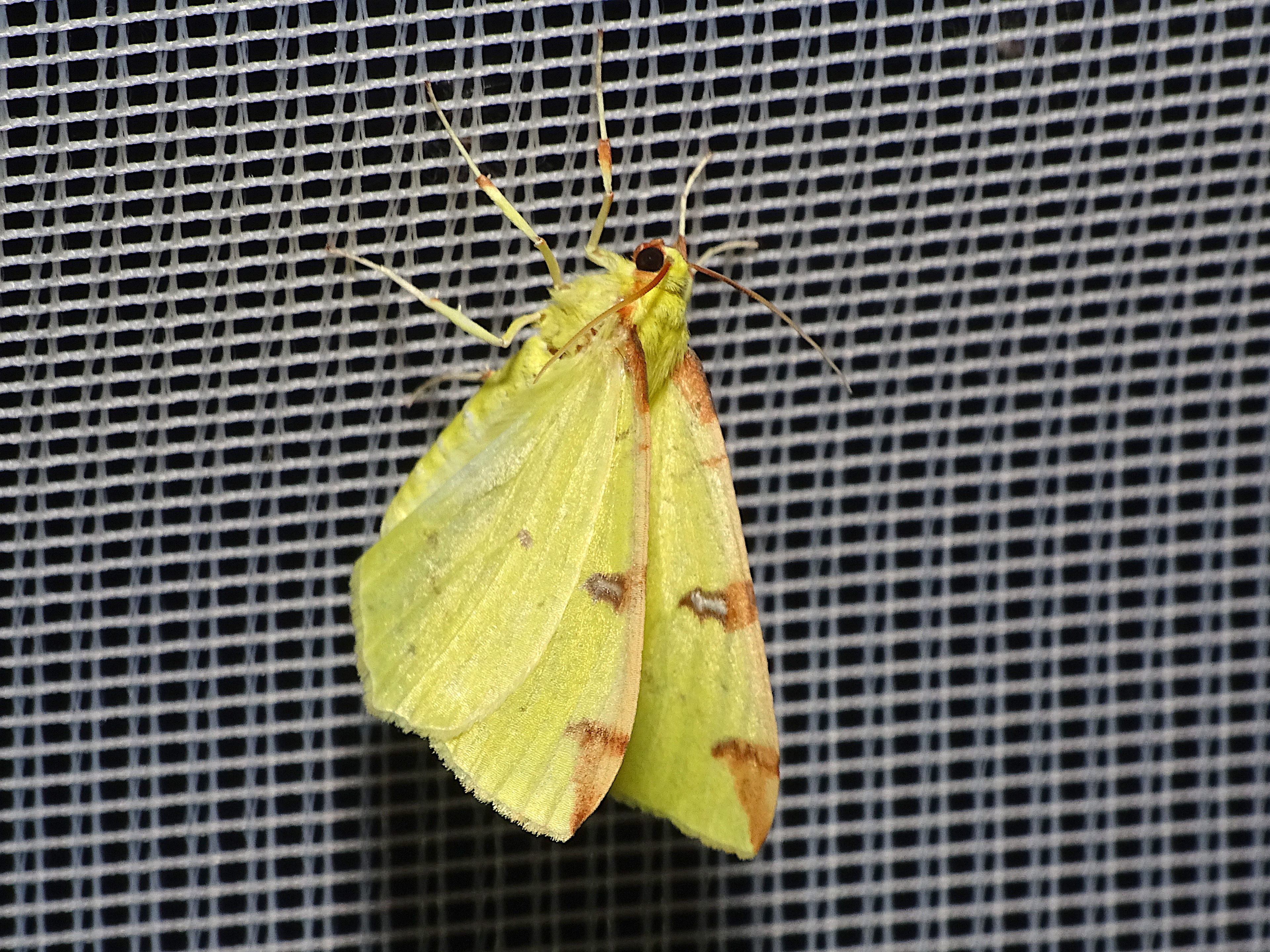 Gelbspanner, Ende Mai in Hoyerswerda, Klein Neida, am Licht
