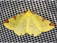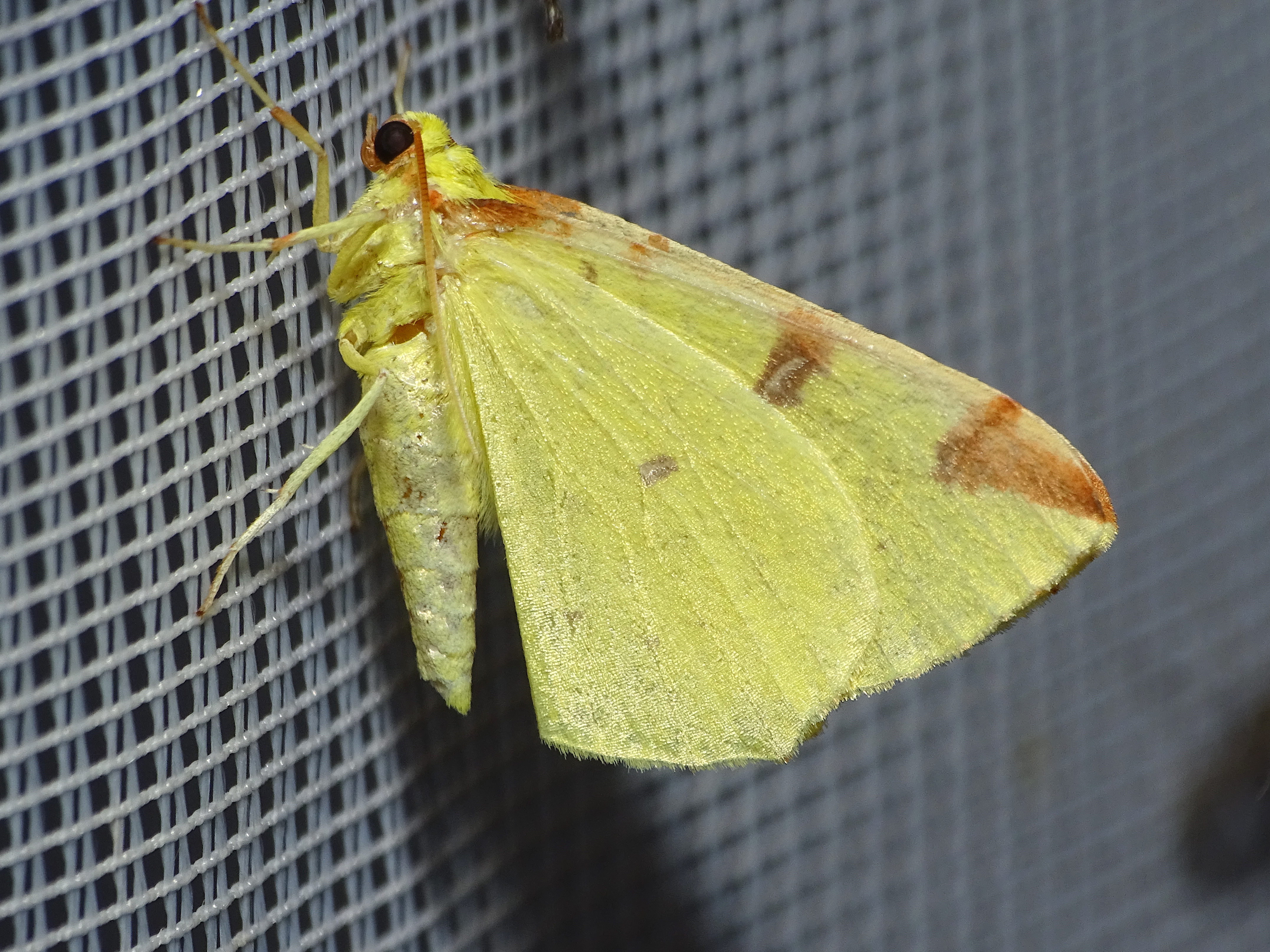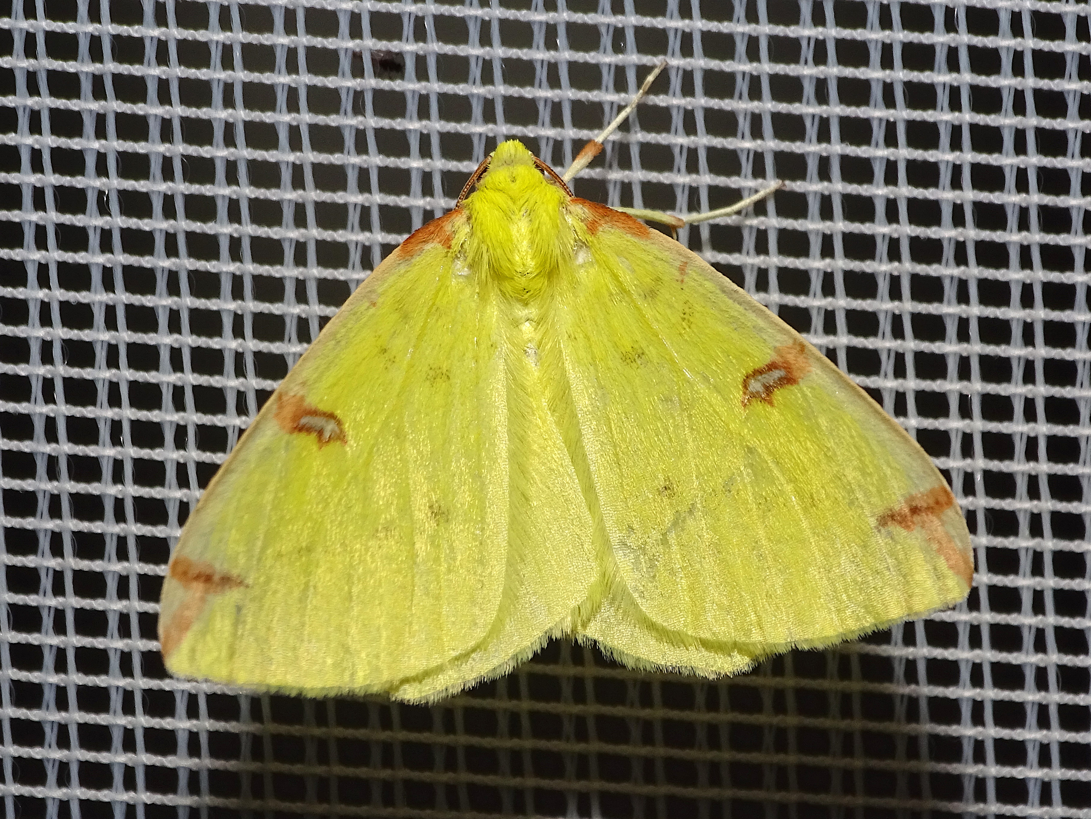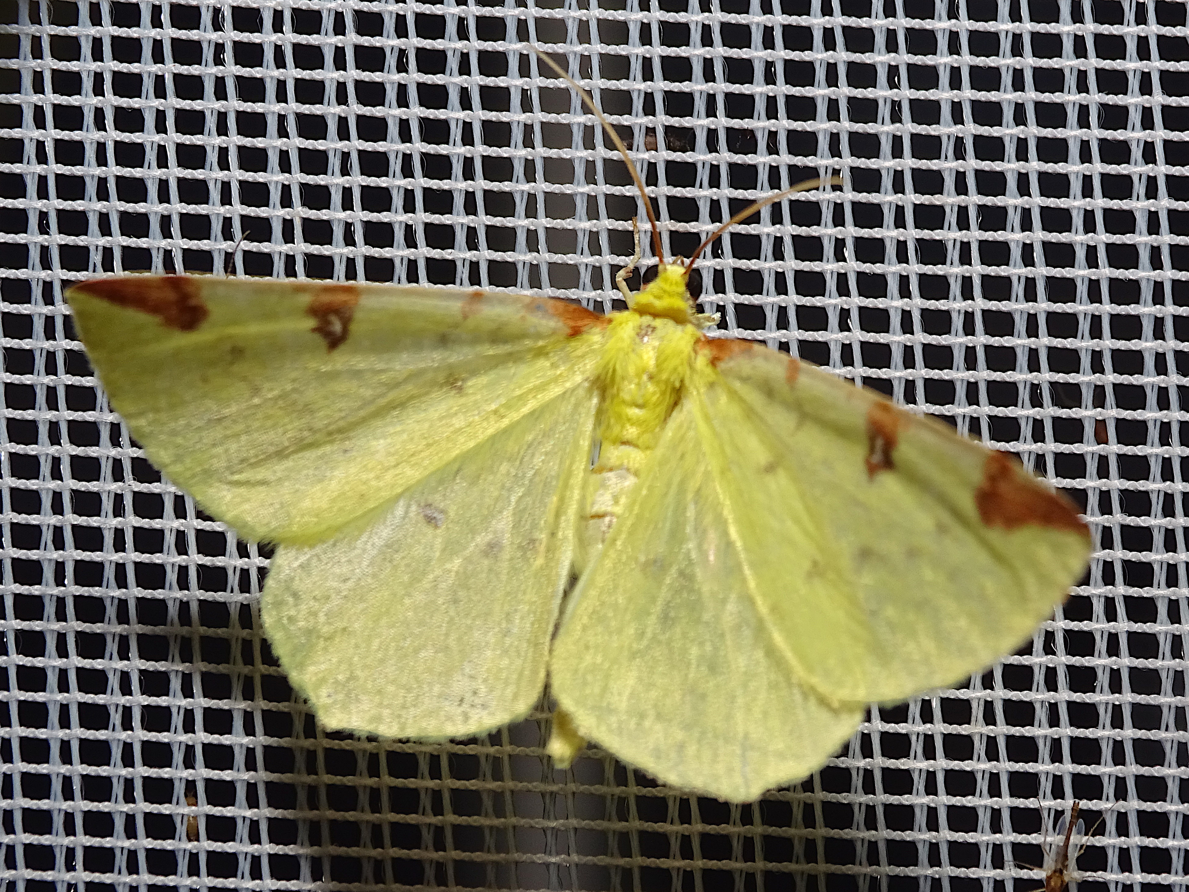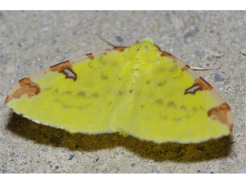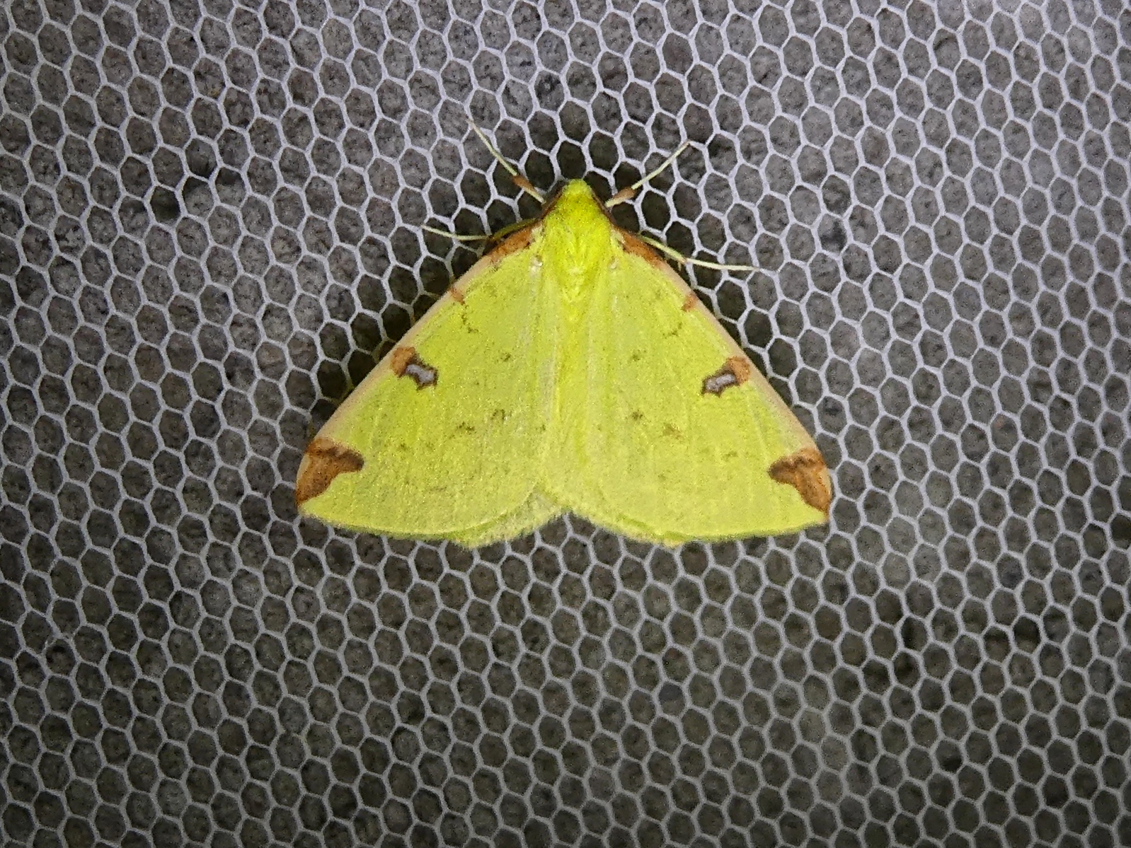 Gelbspanner, Ende Mai in Hoyerswerda, Klein Neida, am Licht