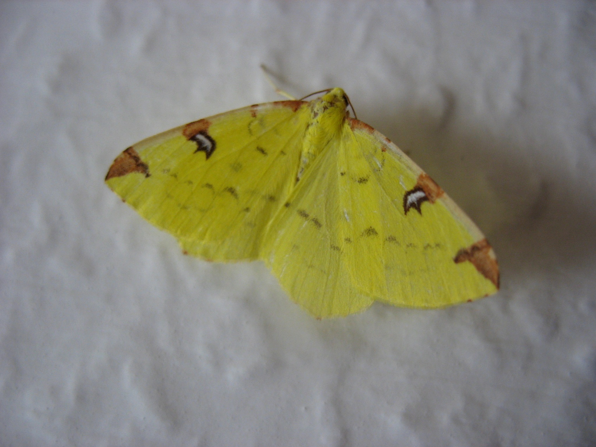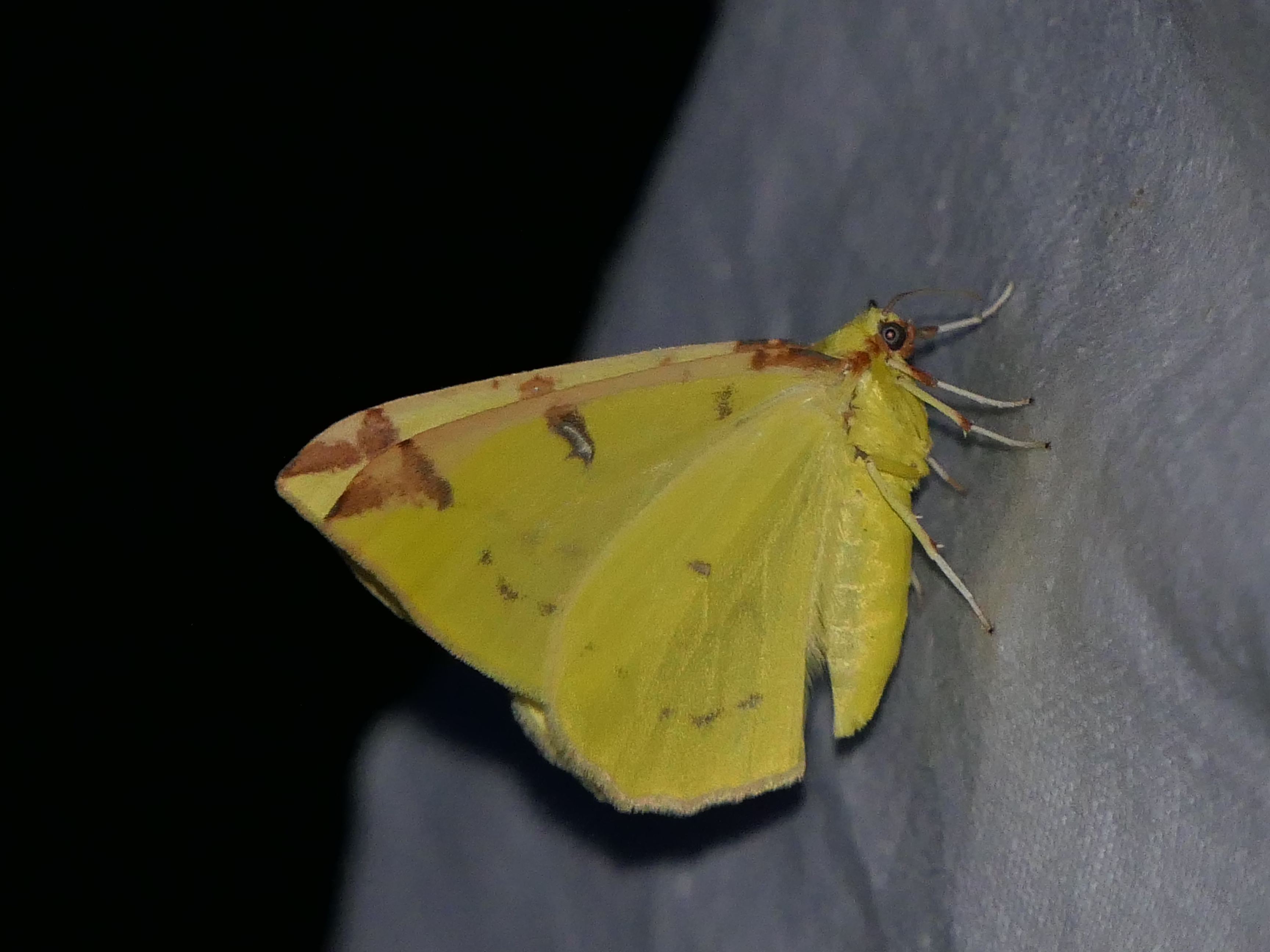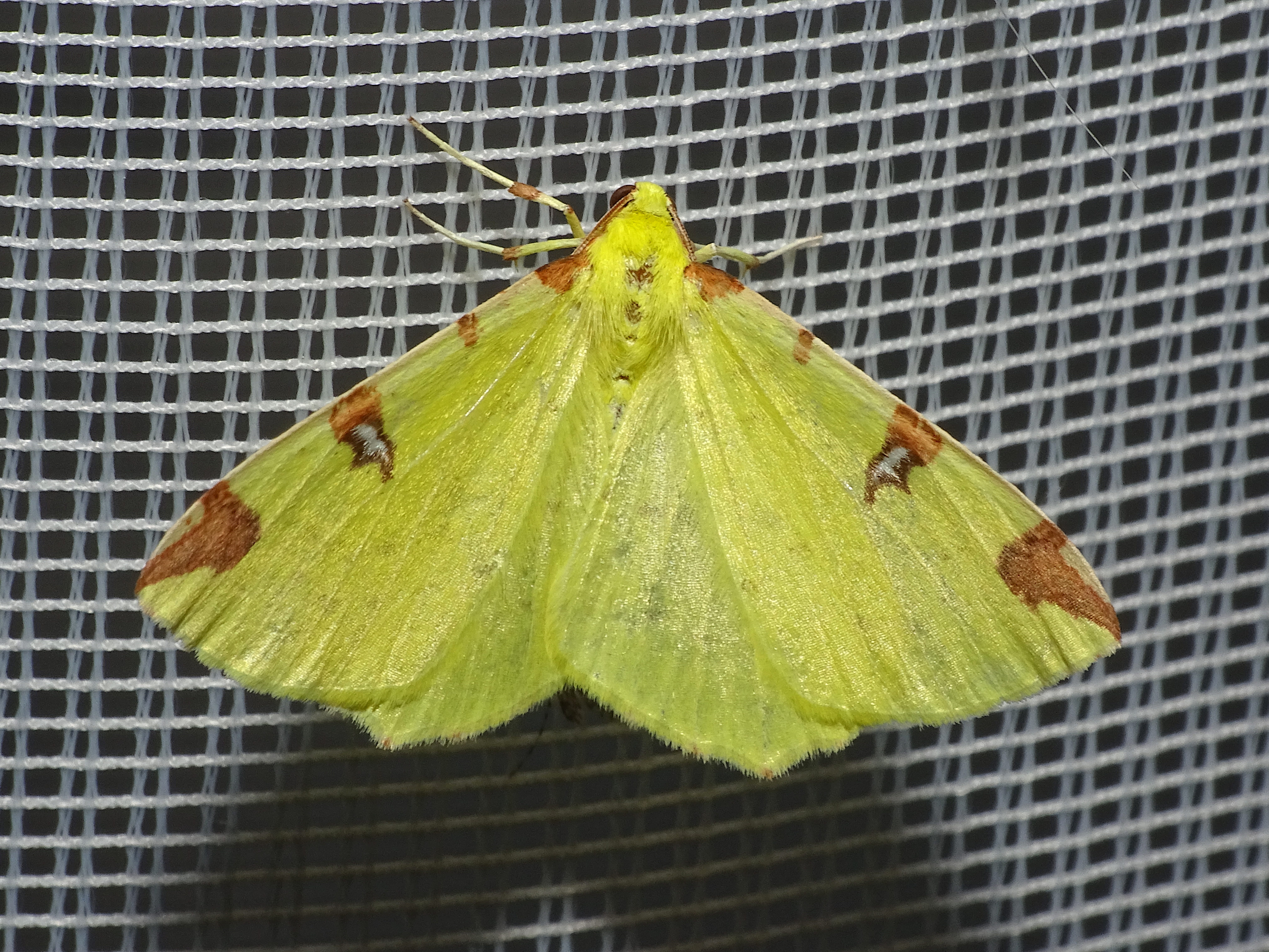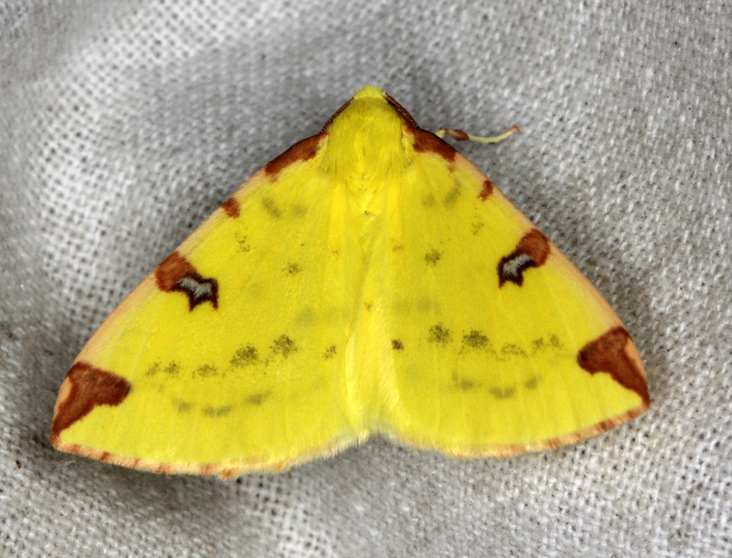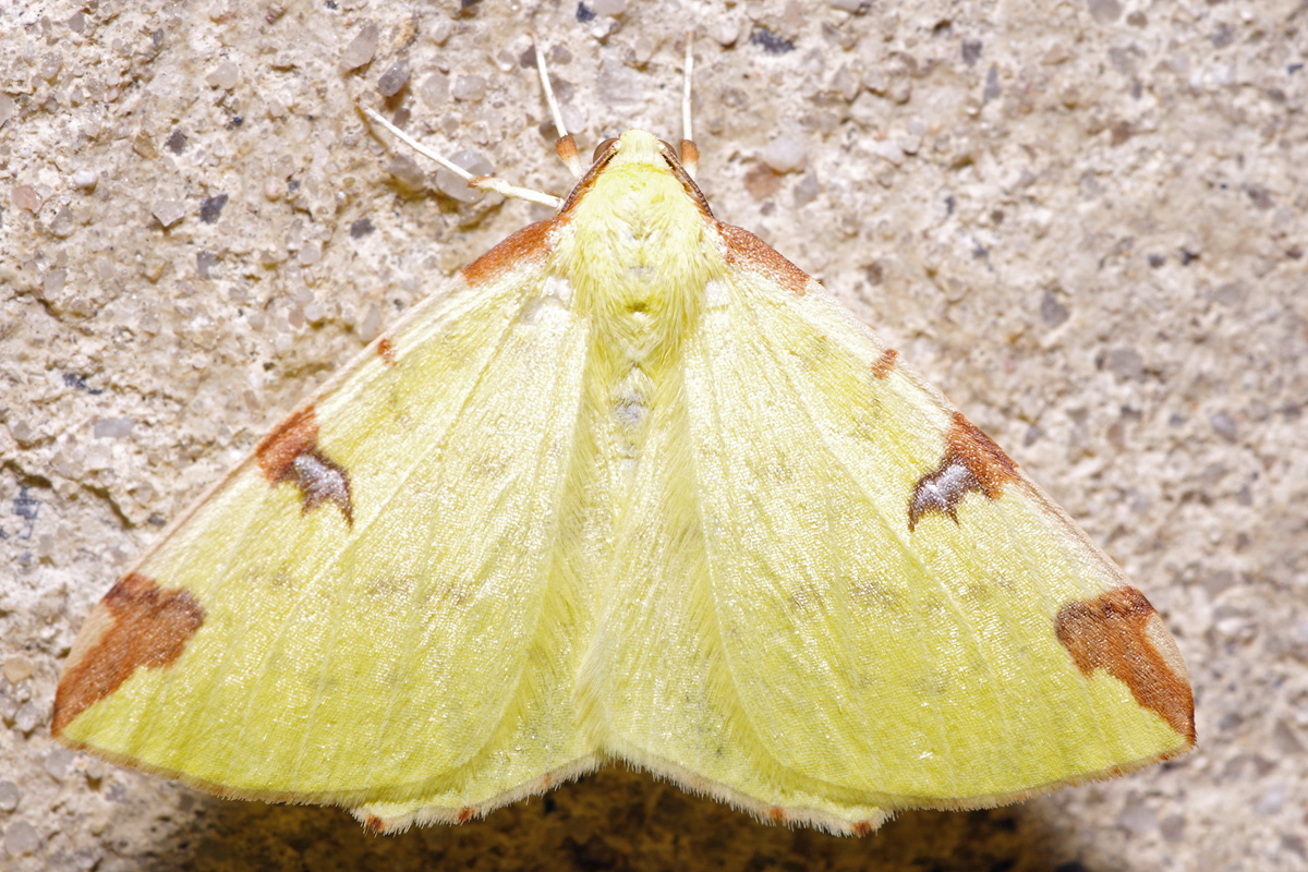 Gelbspanner, Ende Mai in Hoyerswerda, Klein Neida, am Licht