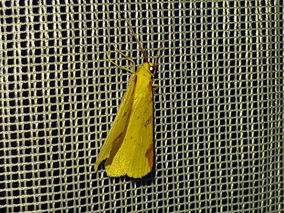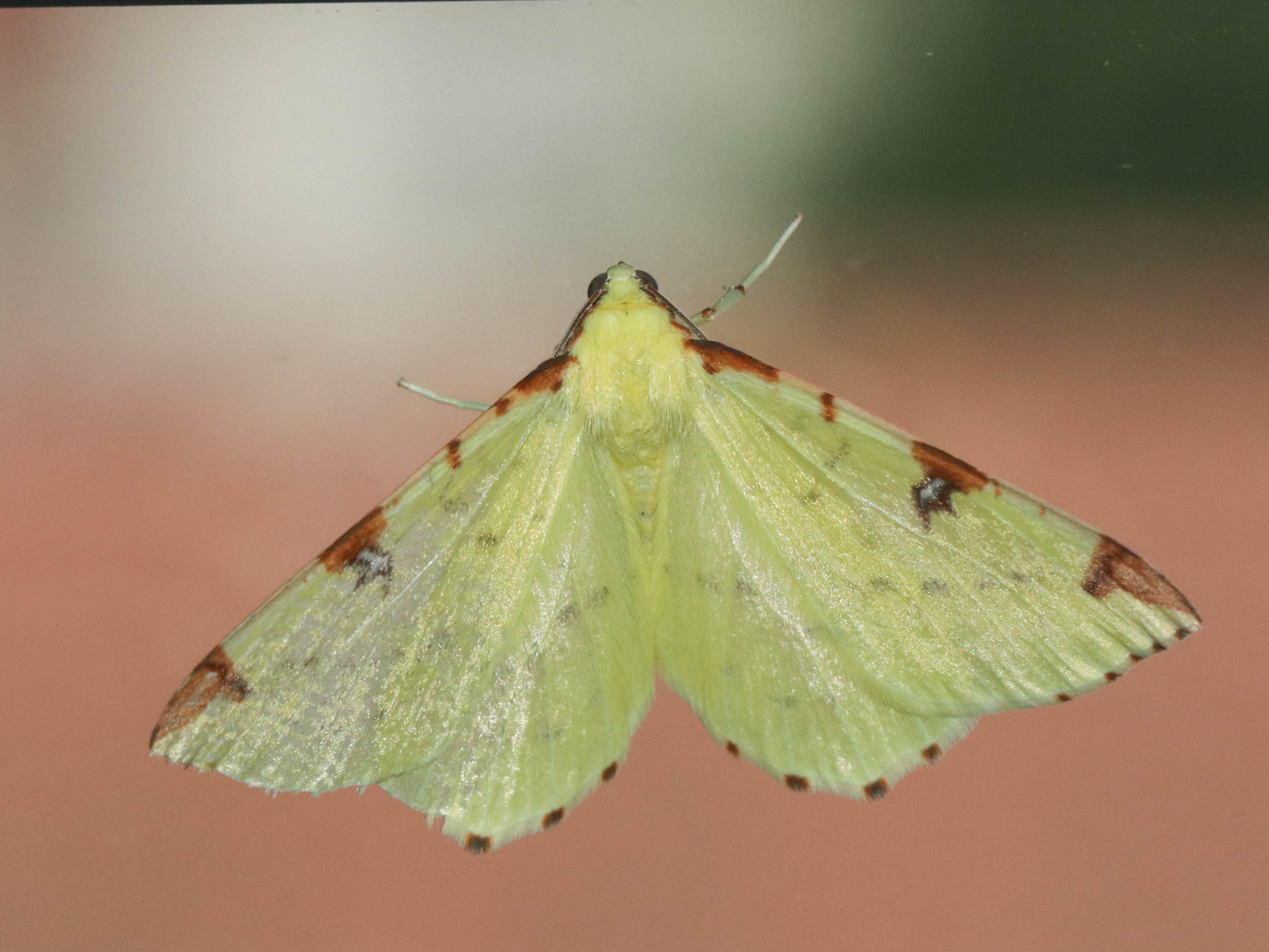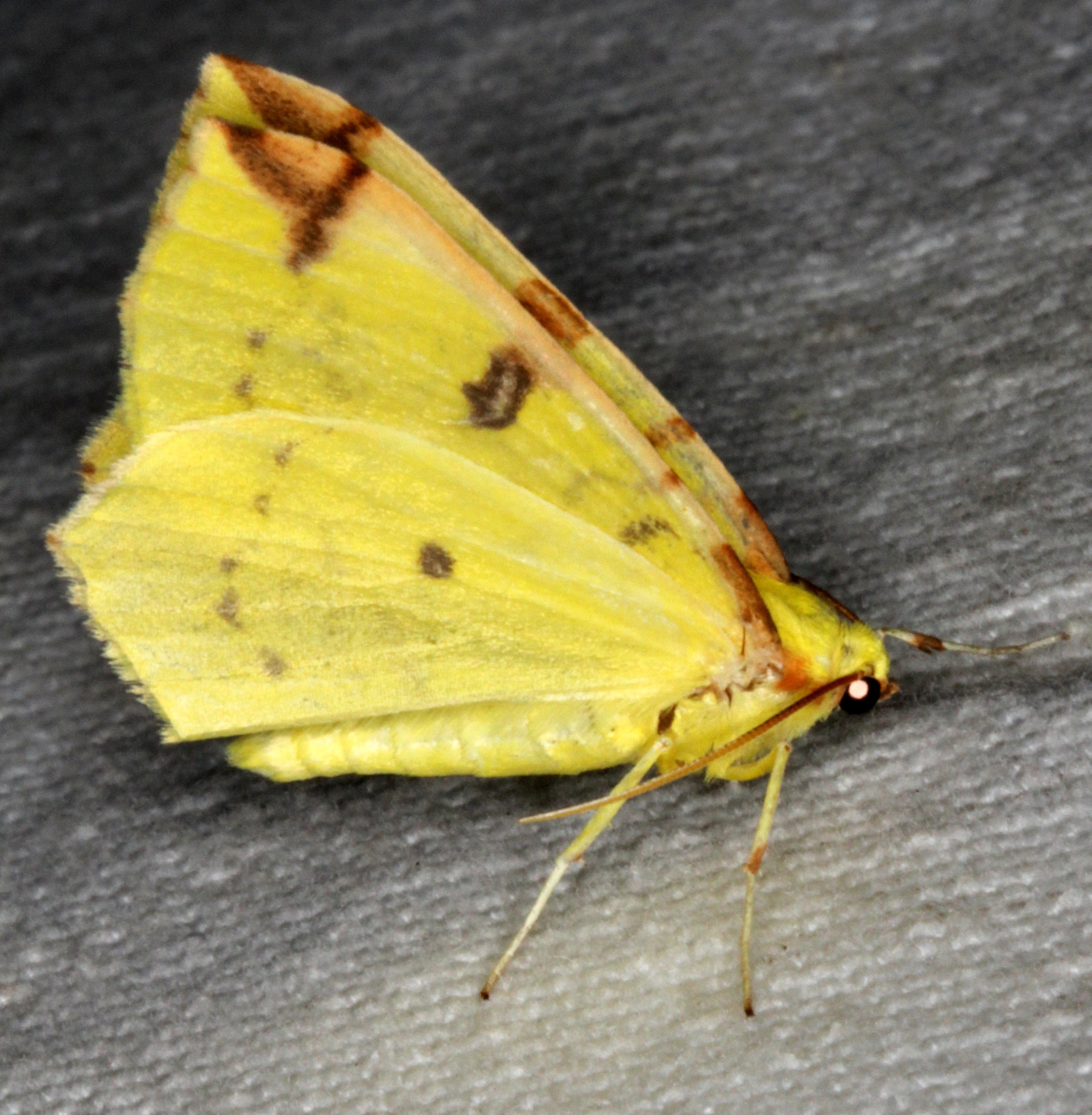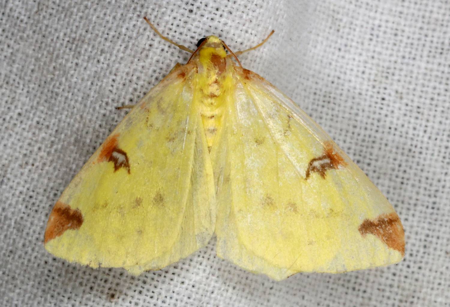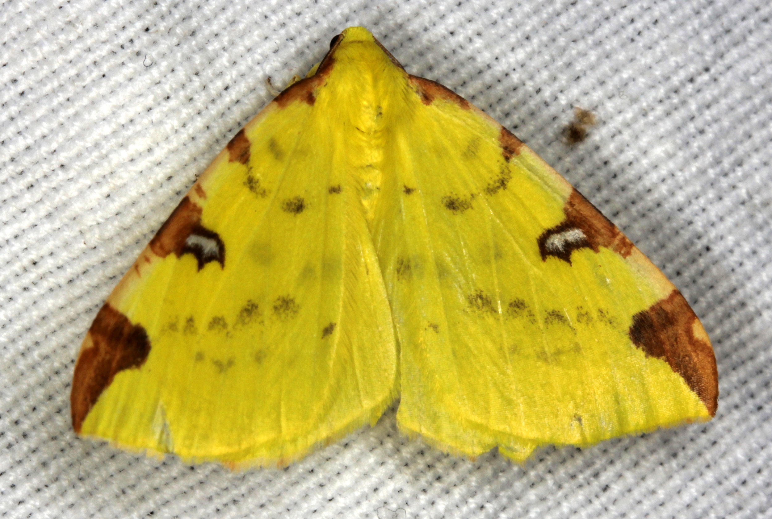 Gelbspanner, Ende Mai in Hoyerswerda, Klein Neida, am Licht