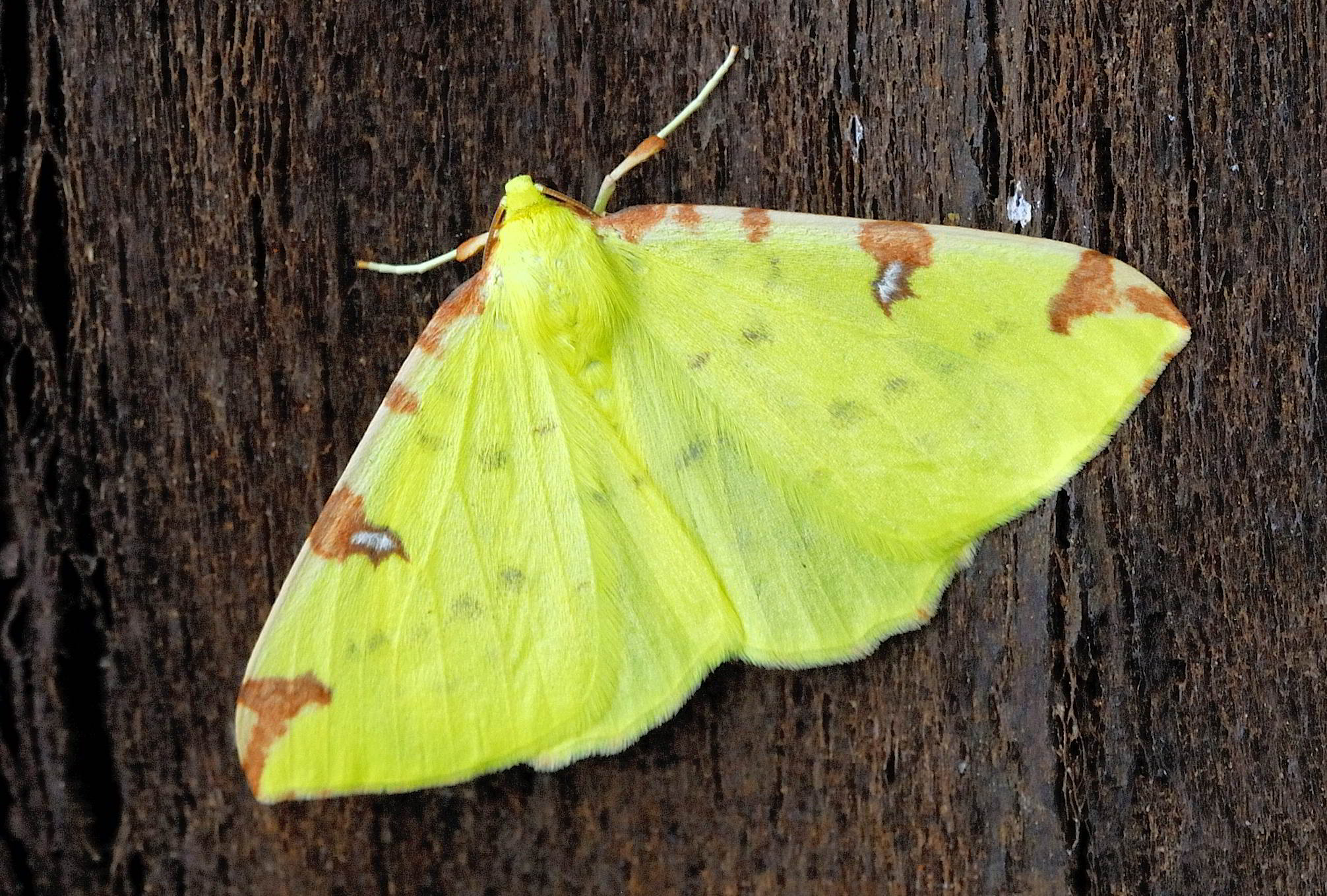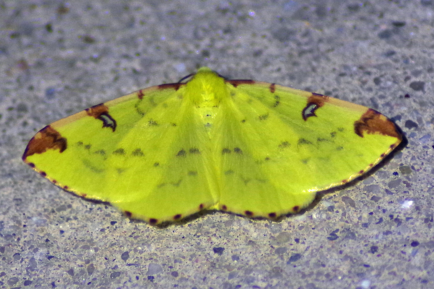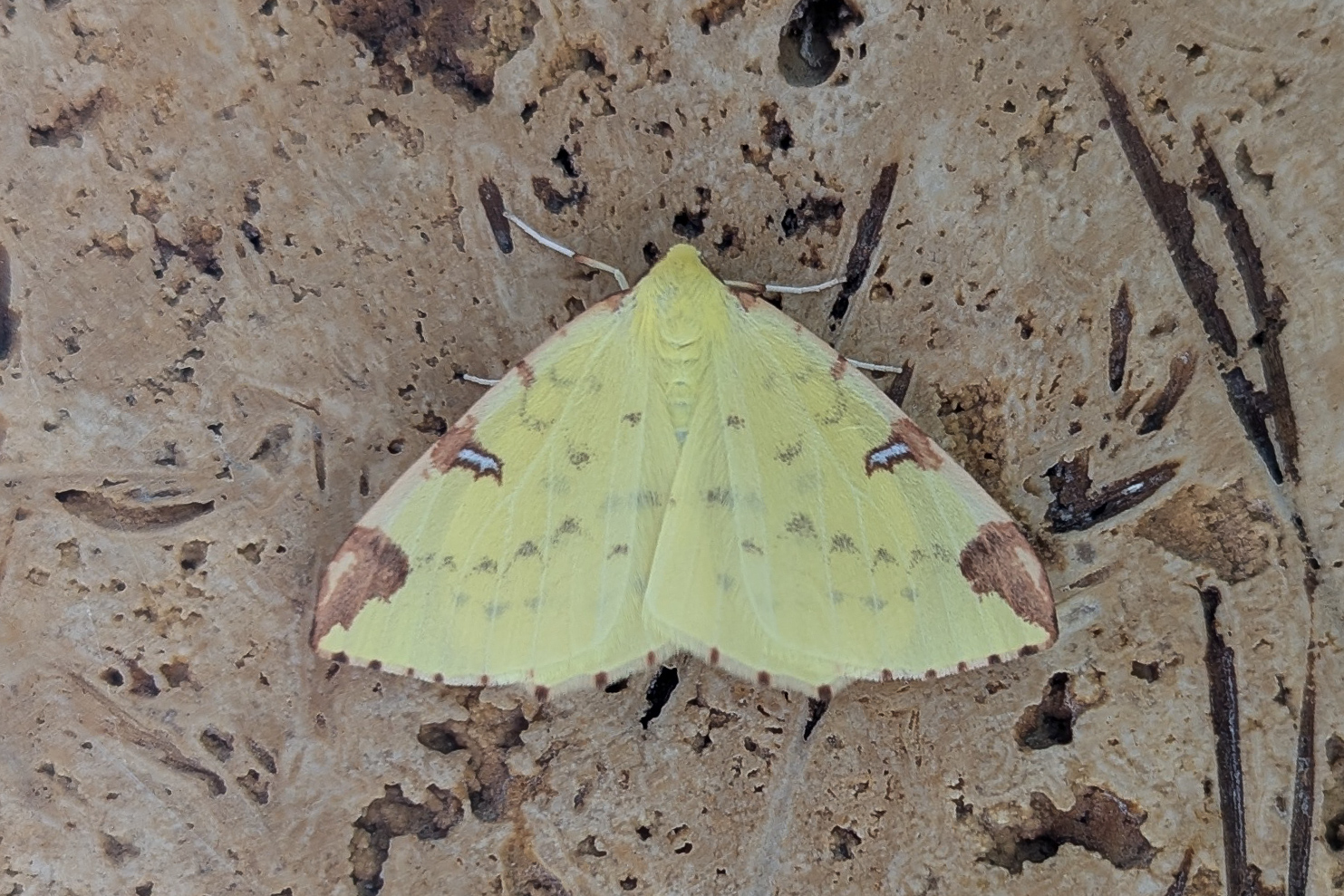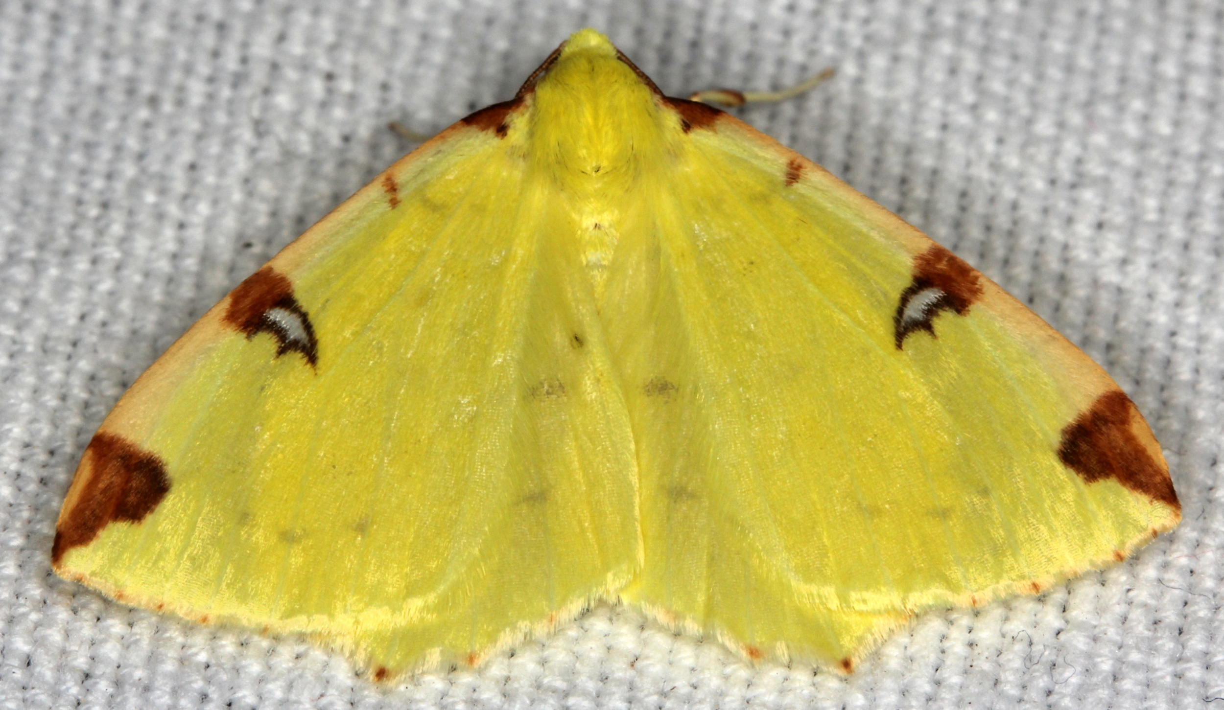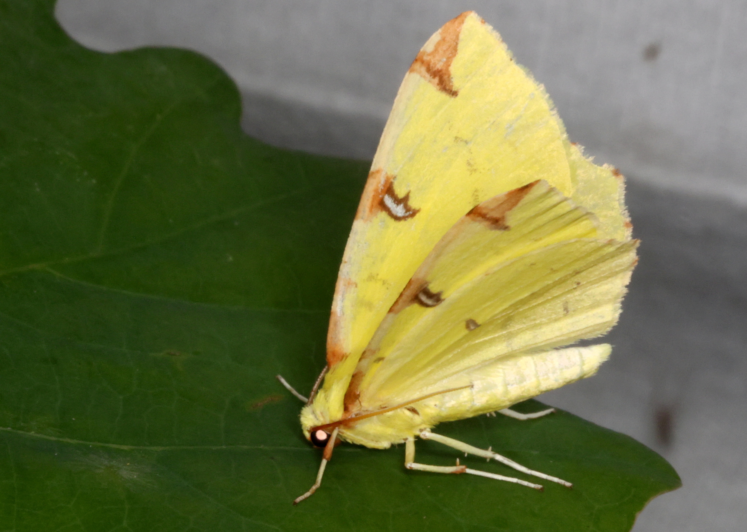 Gelbspanner, Ende Mai in Hoyerswerda, Klein Neida, am Licht
