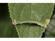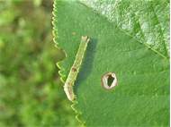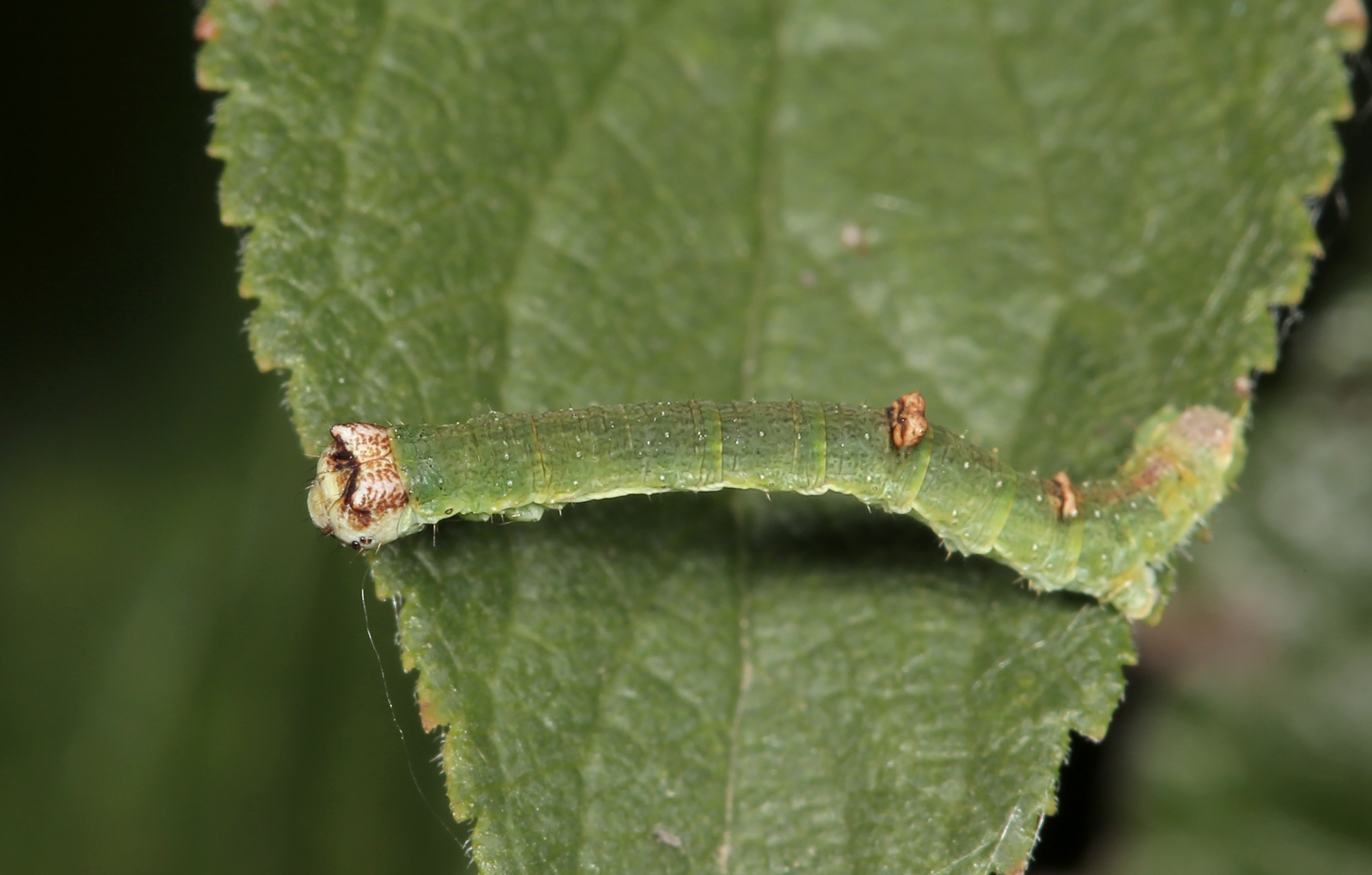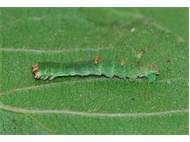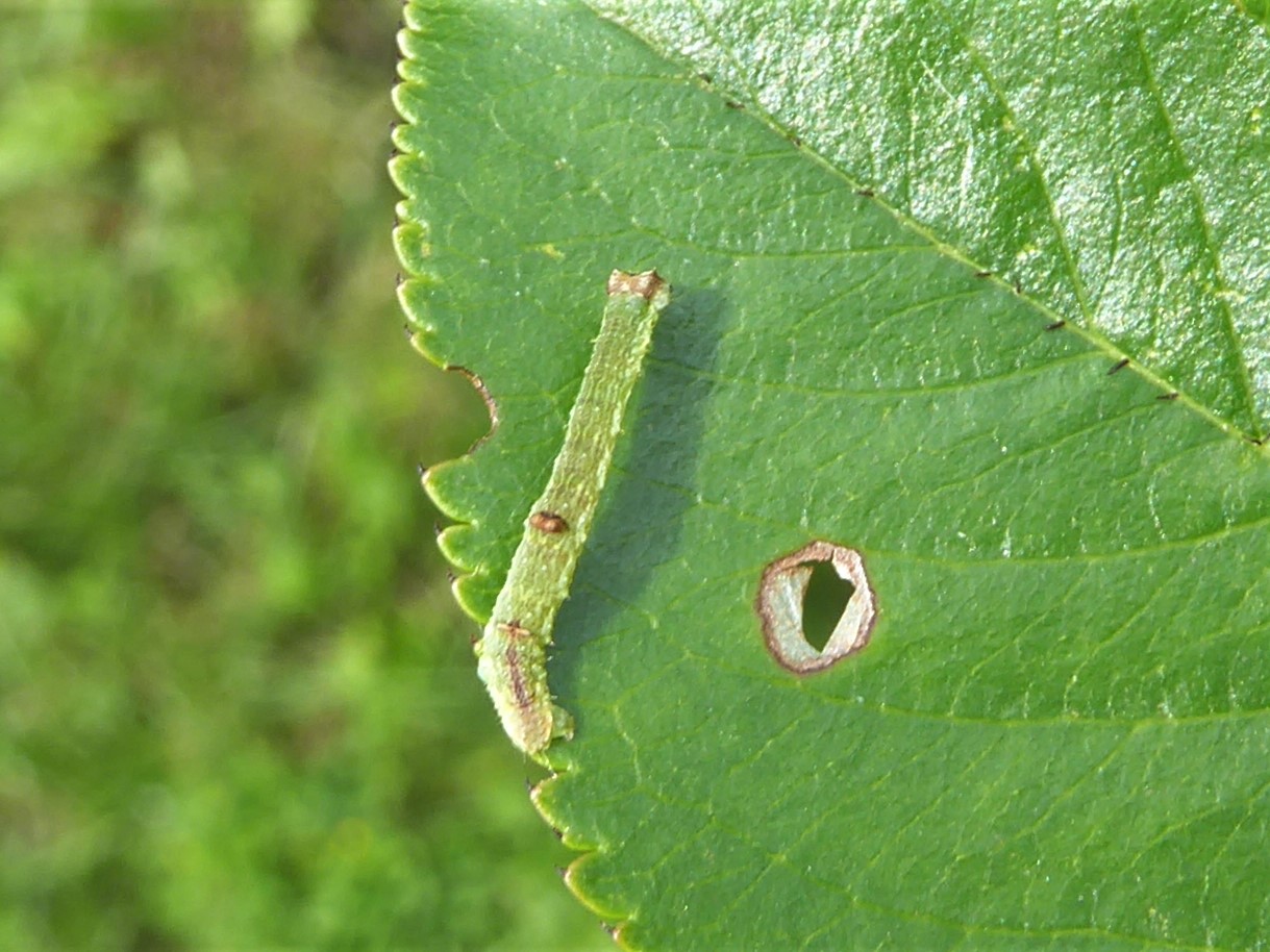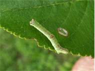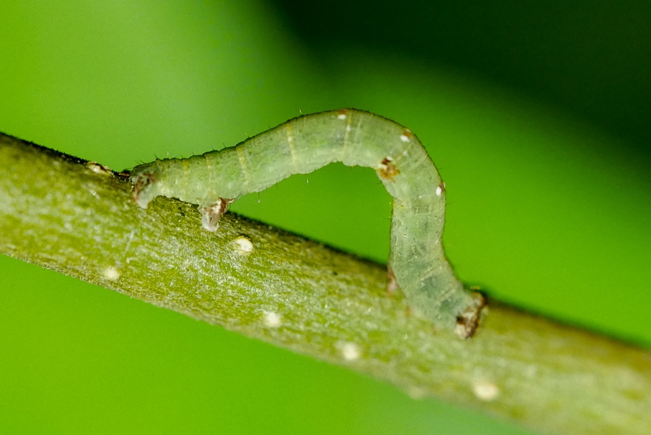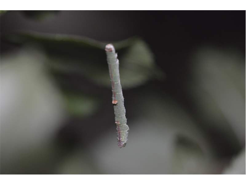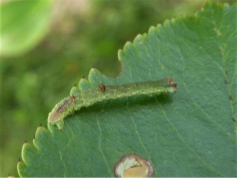 Opisthograptis luteolata-Larve auf Prunus spinosa am 18.08.2013 in Radebeul-Zitzschewig