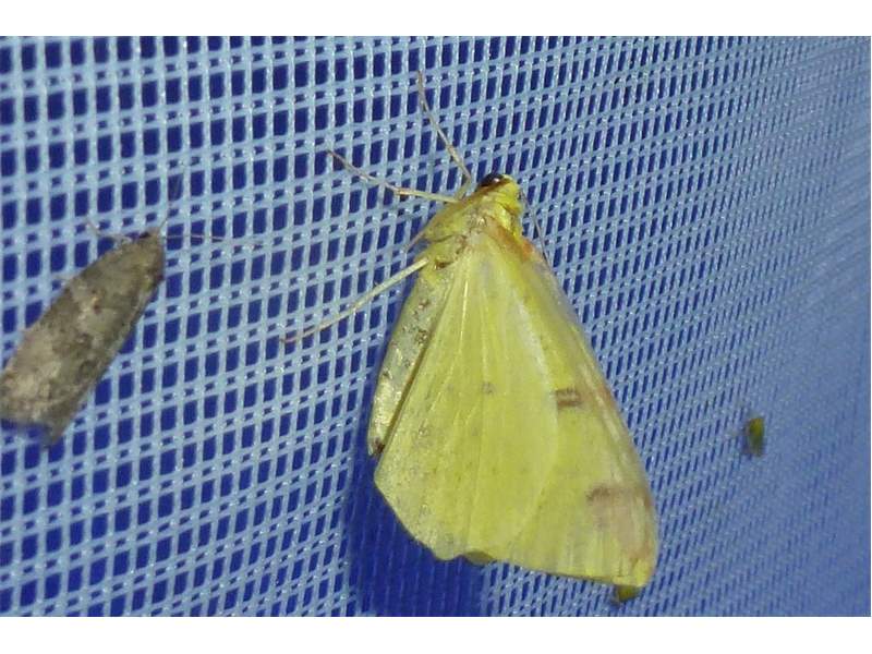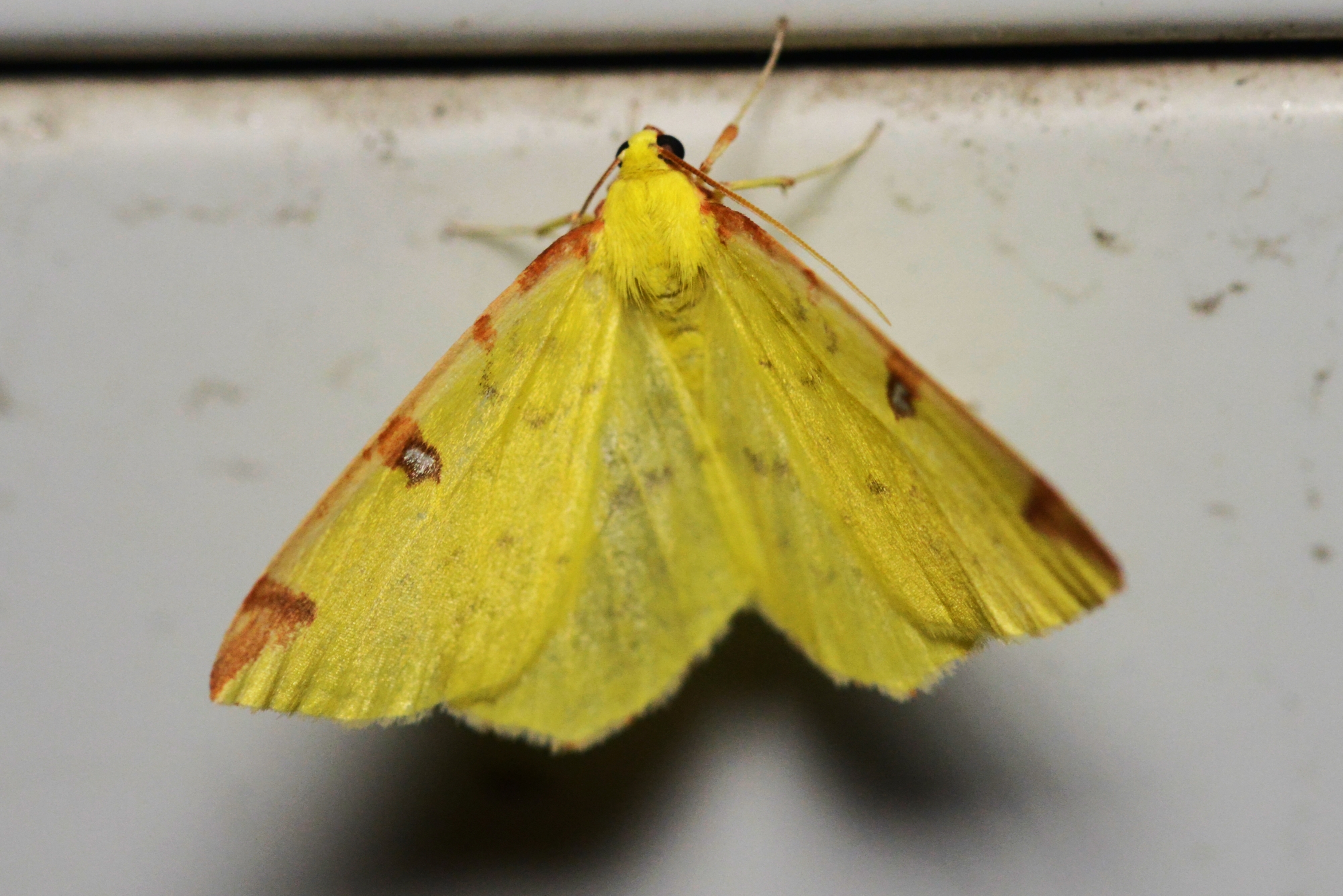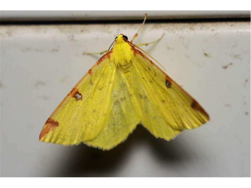 Gelbspanner, in einem Wohngebäude in Triberg (Schwarzwald), Juni 2016
