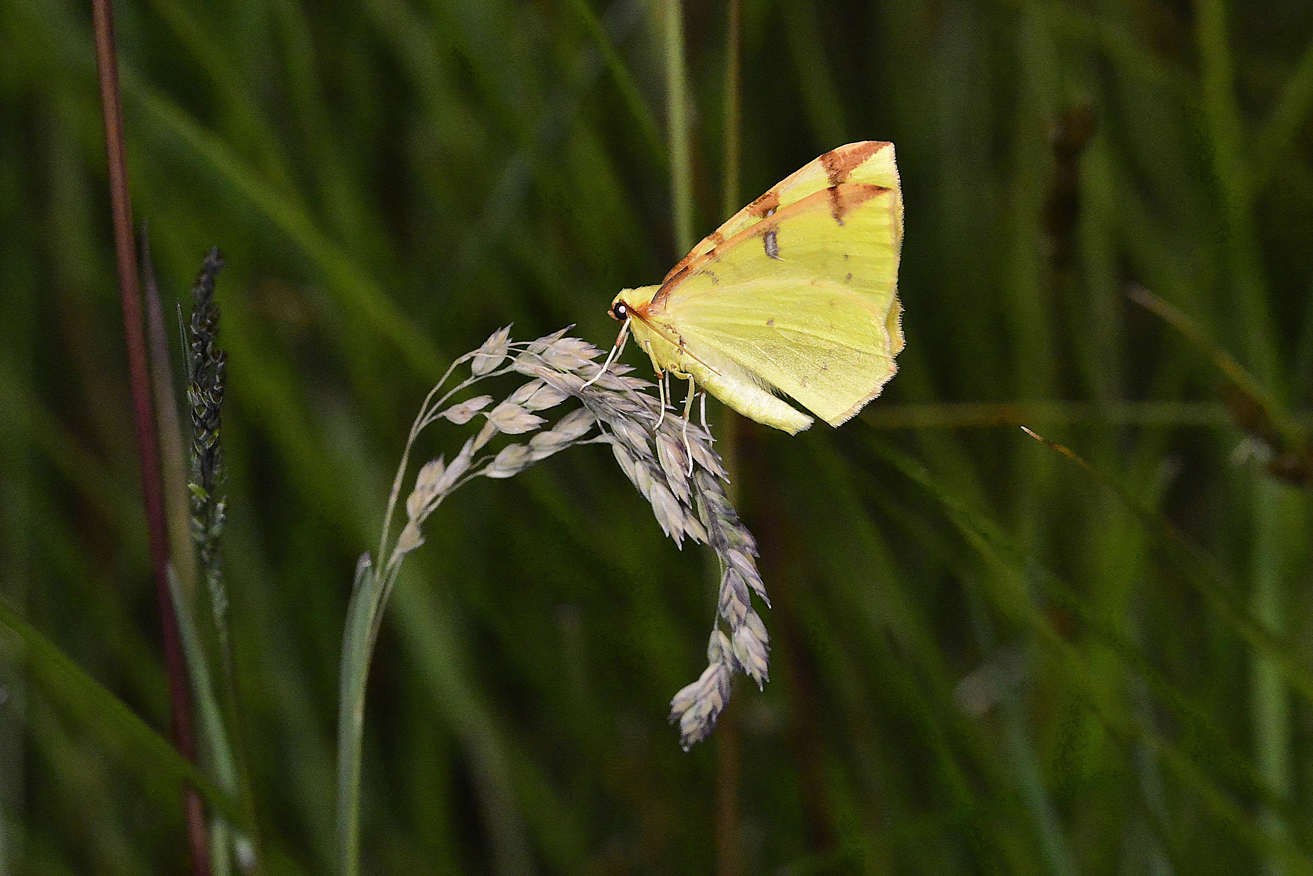 Gelbspanner ruhend an Gräsern, Meinsdorf, Mai 2016