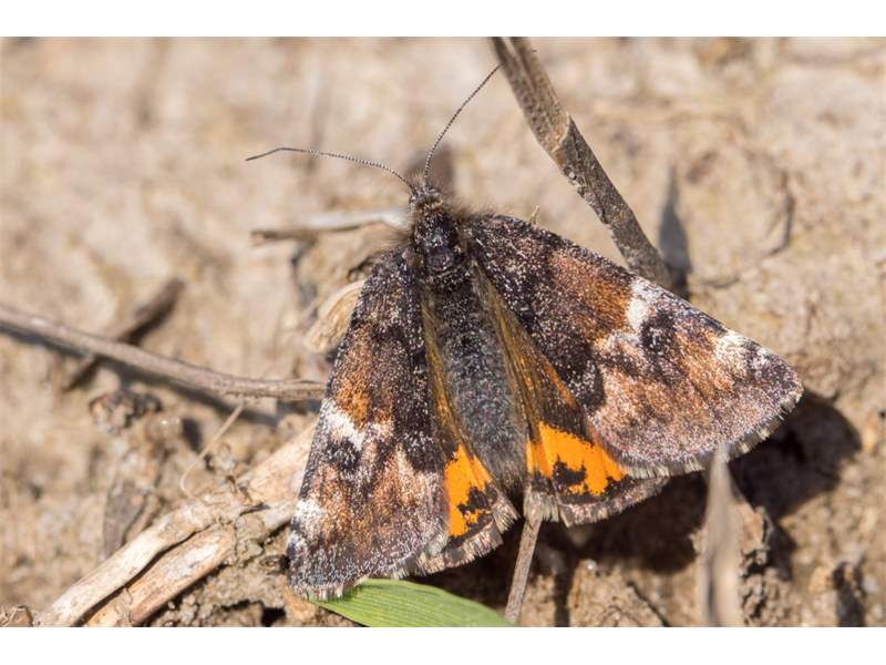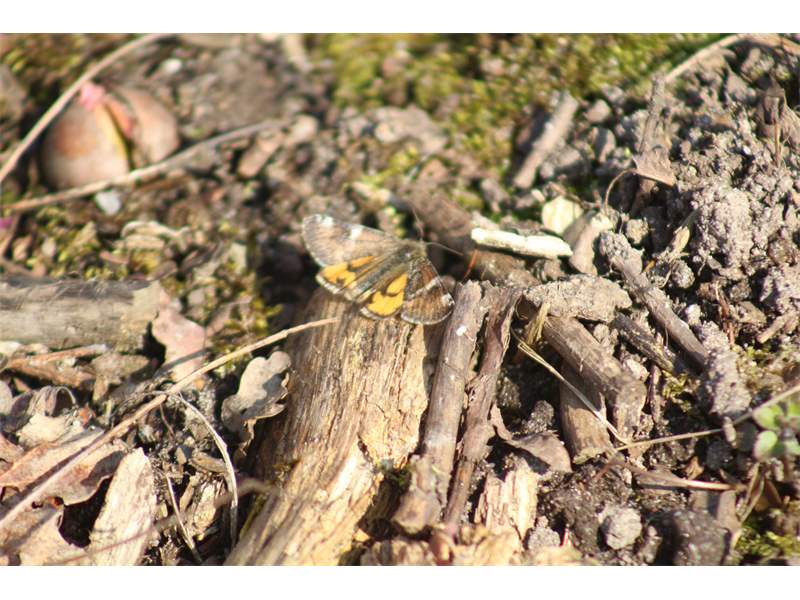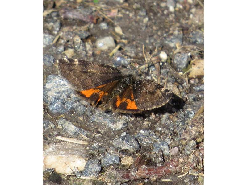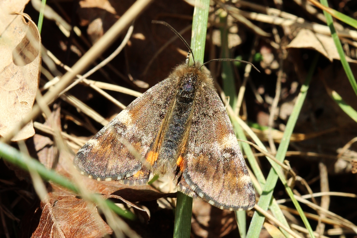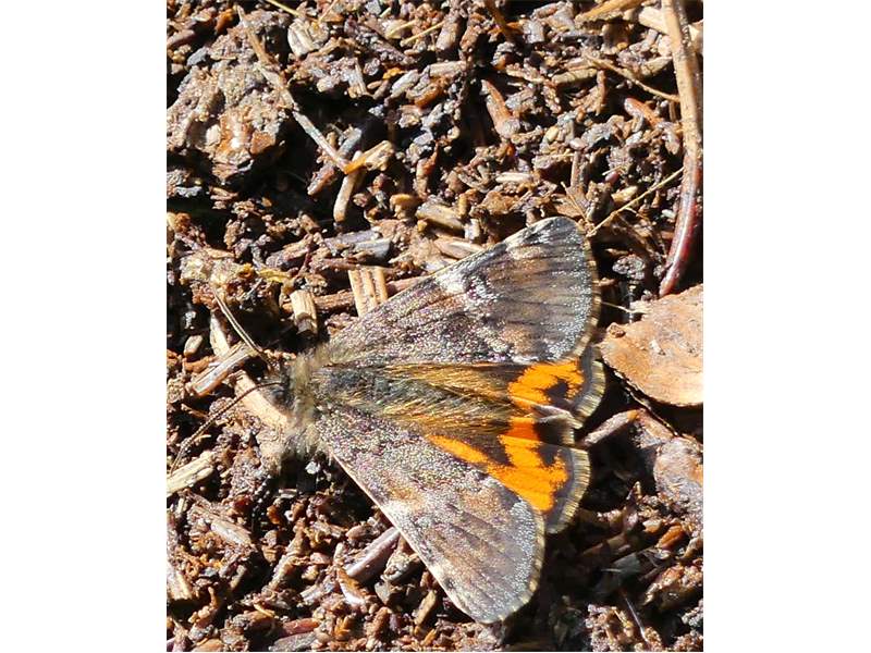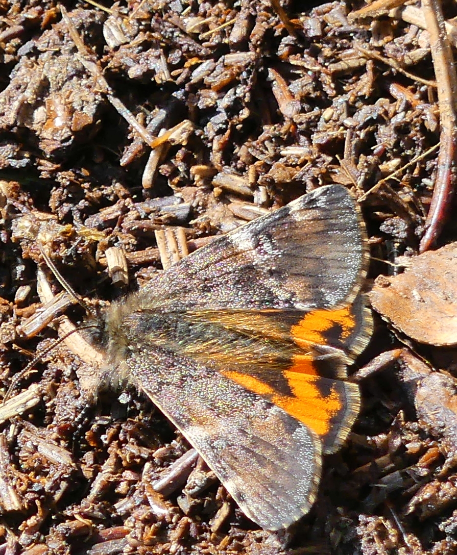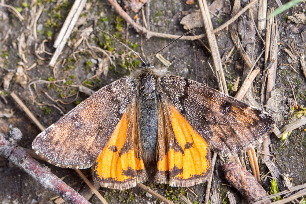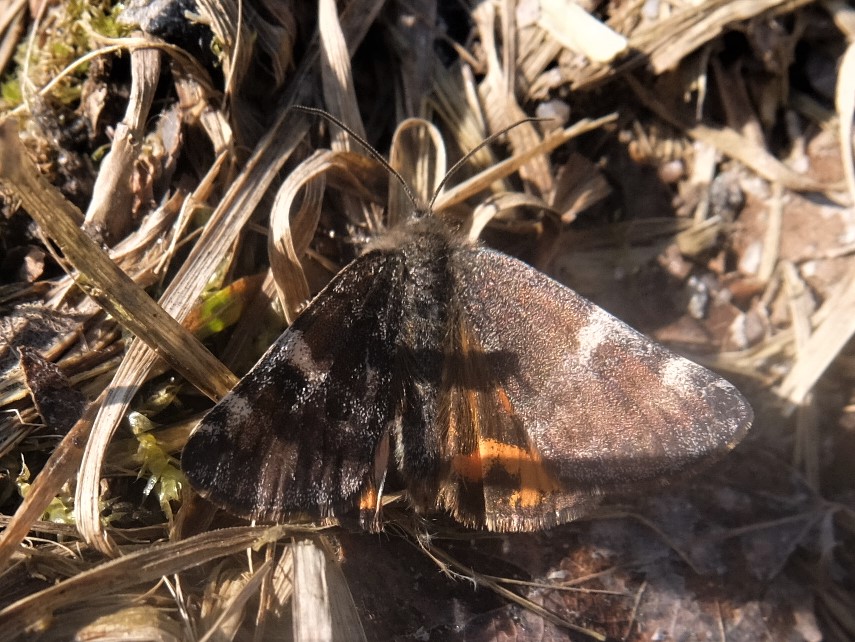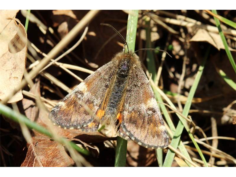 Großes Jungfernkind, auch Birken-Jungfernkind, Archiearis parthenias, Chemnitz-Zeisigwald nahe Euba, Forstschneise, mit Birken durchsetzter Mischwald, am Stapelholz, 30.März, 2018 (Raupen monophag an frischen Birkenblättern) (© Lutz Böttger, Chemnitz)( Bild vergrößern)