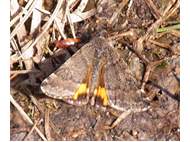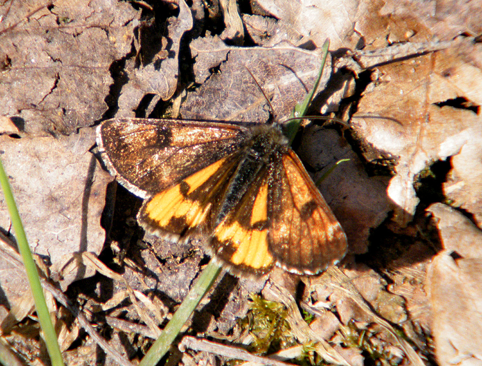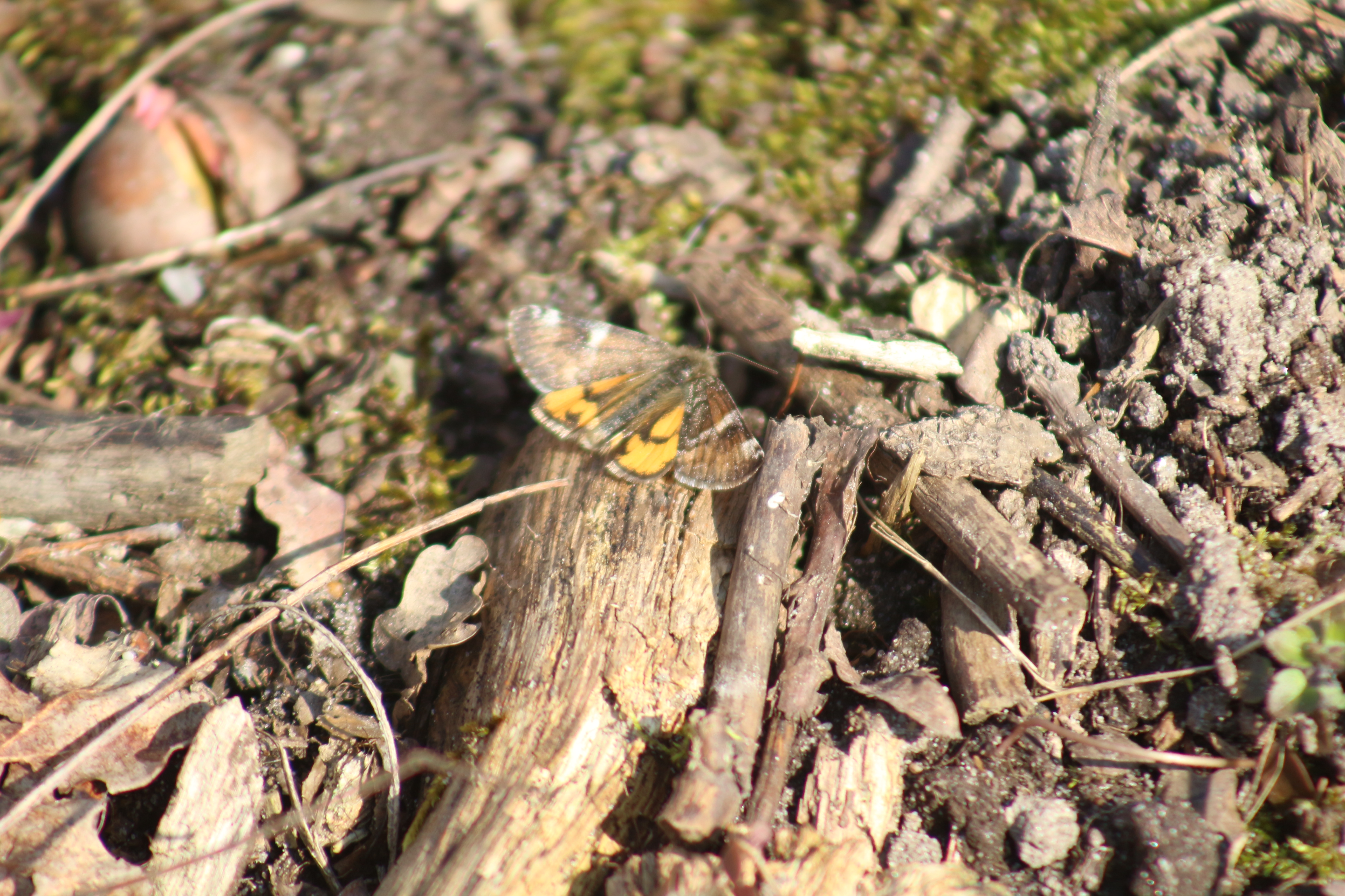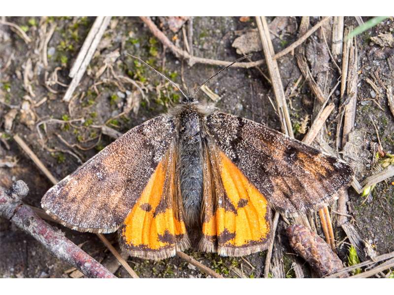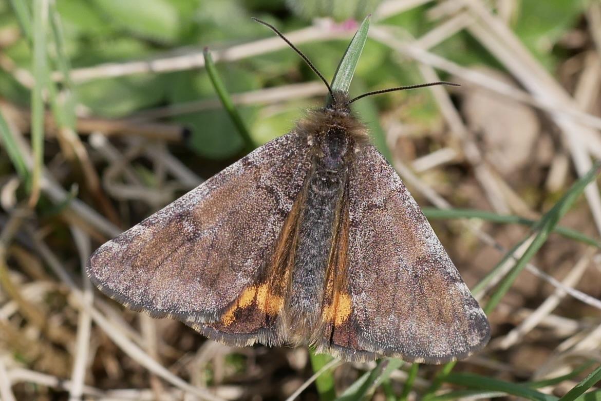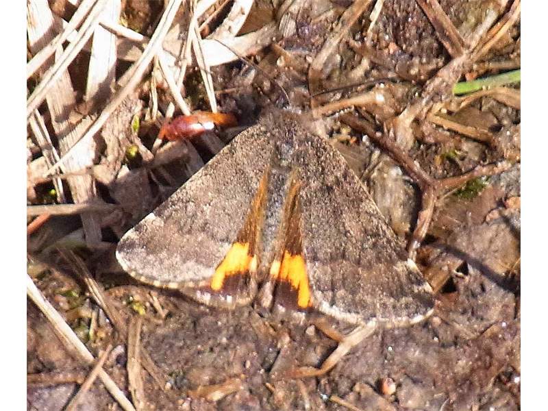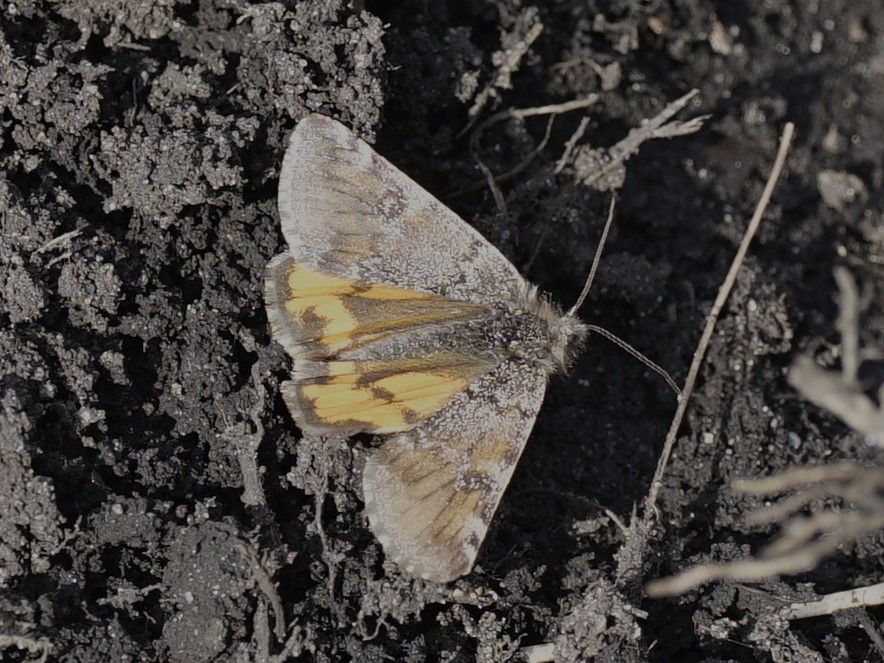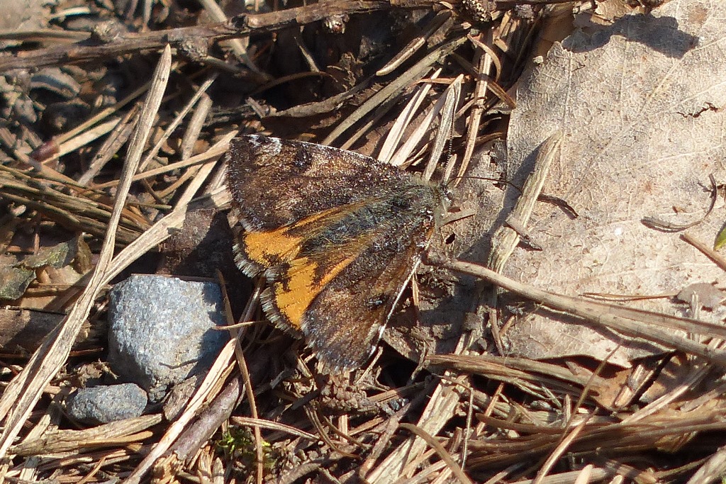 Großes Jungfernkind, auch Birken-Jungfernkind, Archiearis parthenias, Chemnitz-Zeisigwald nahe Euba, Forstschneise, mit Birken durchsetzter Mischwald, am Stapelholz, 30.März, 2018 (Raupen monophag an frischen Birkenblättern) (© Lutz Böttger, Chemnitz)( Bild vergrößern)