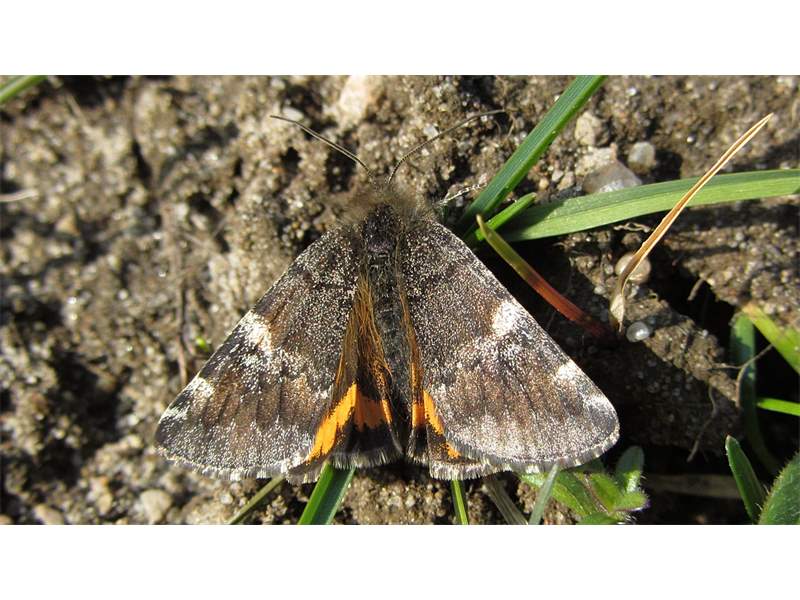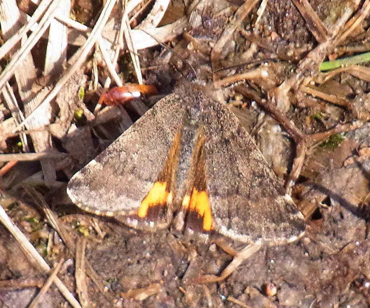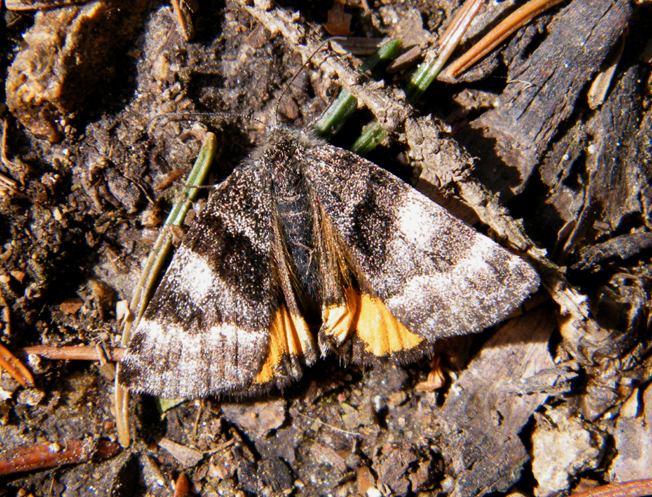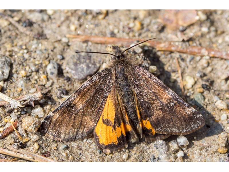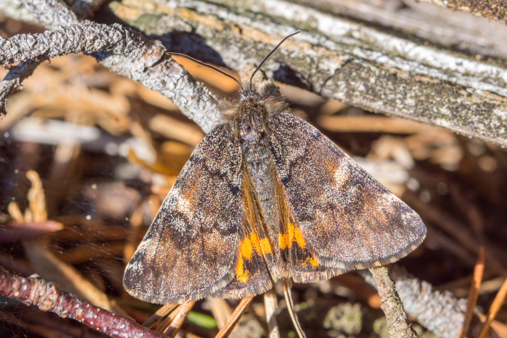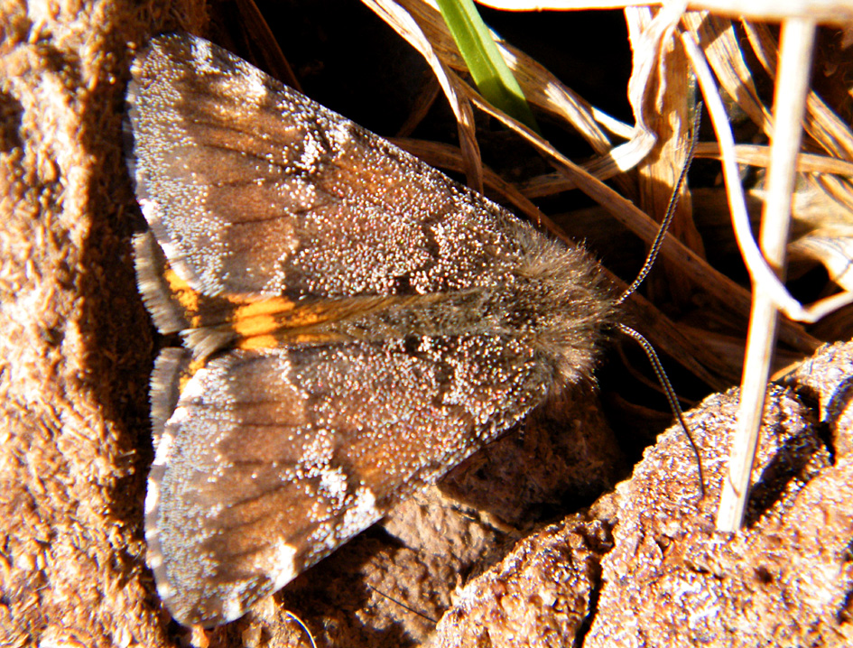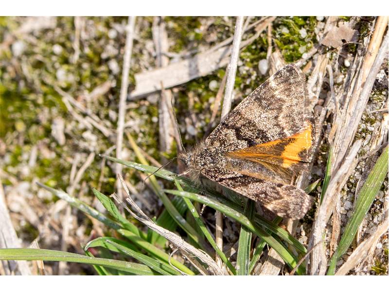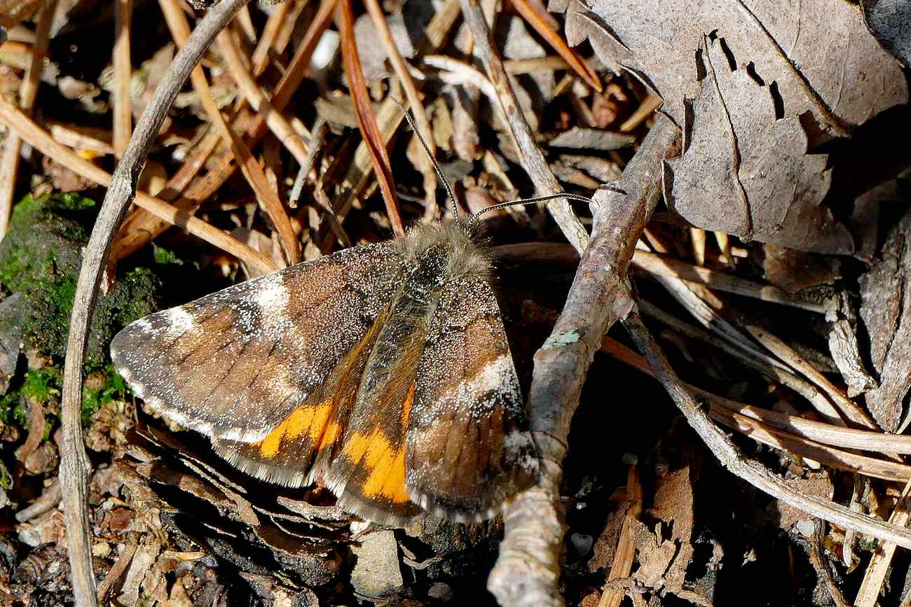 Großes Jungfernkind, auch Birken-Jungfernkind, Archiearis parthenias, Chemnitz-Zeisigwald nahe Euba, Forstschneise, mit Birken durchsetzter Mischwald, am Stapelholz, 30.März, 2018 (Raupen monophag an frischen Birkenblättern) (© Lutz Böttger, Chemnitz)( Bild vergrößern)