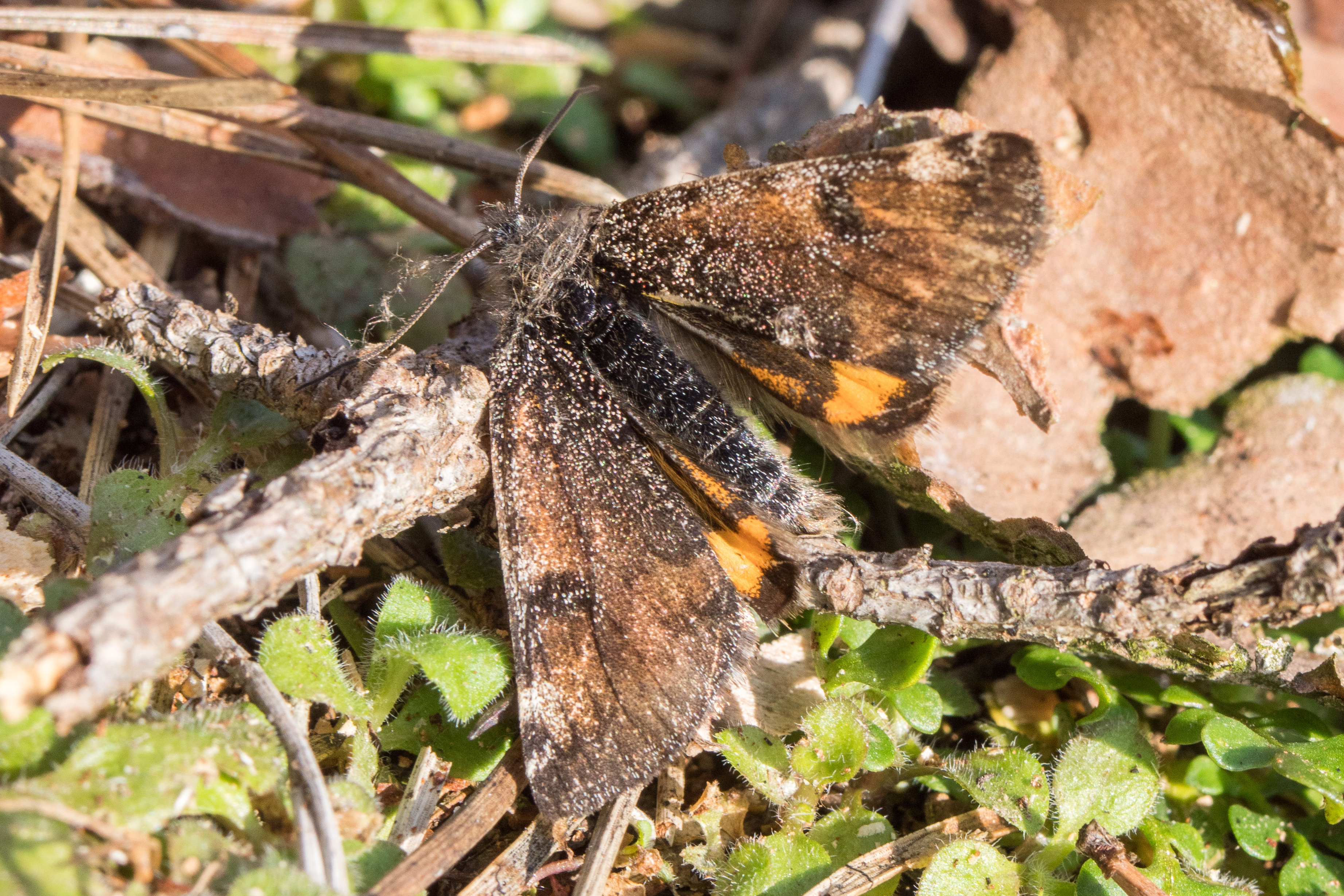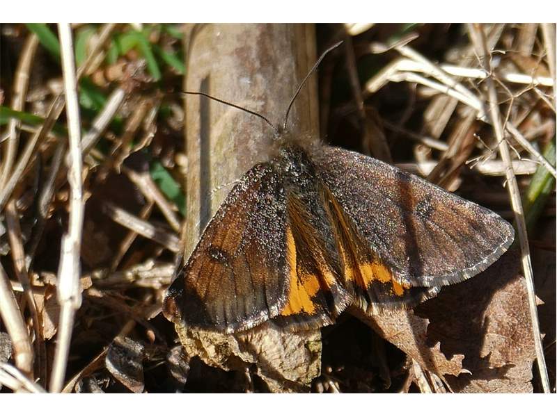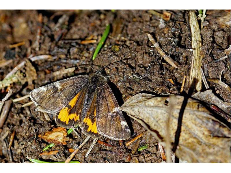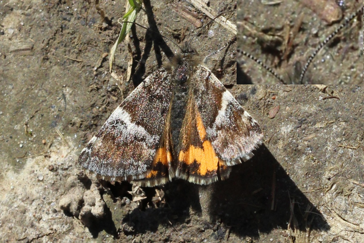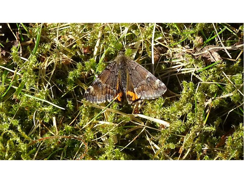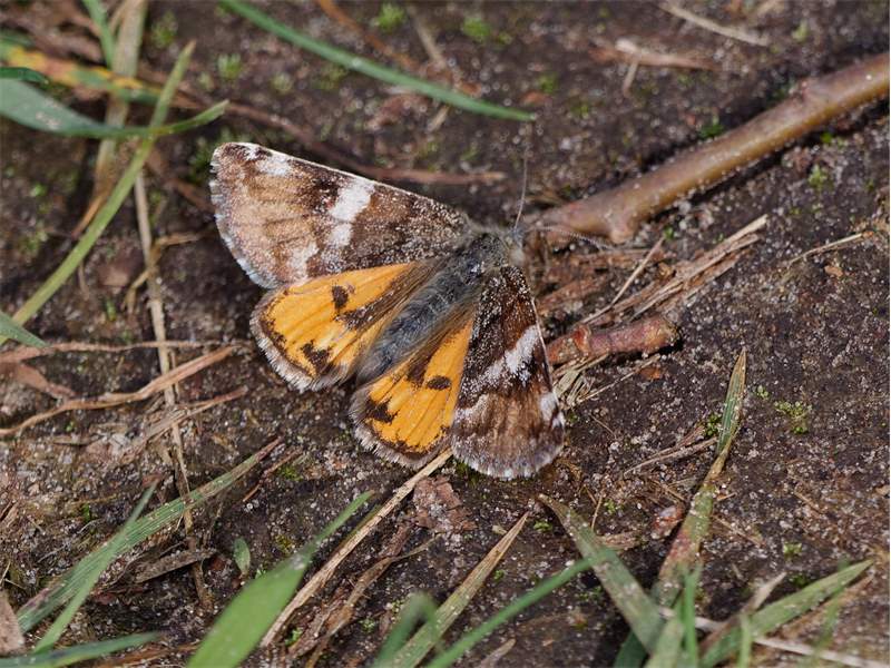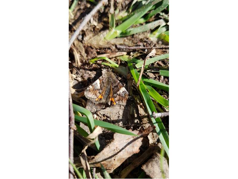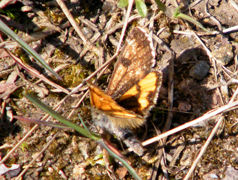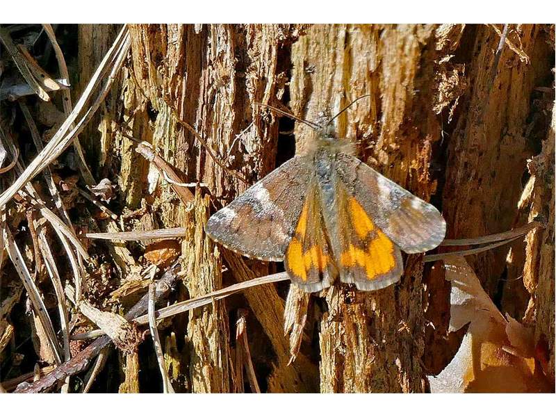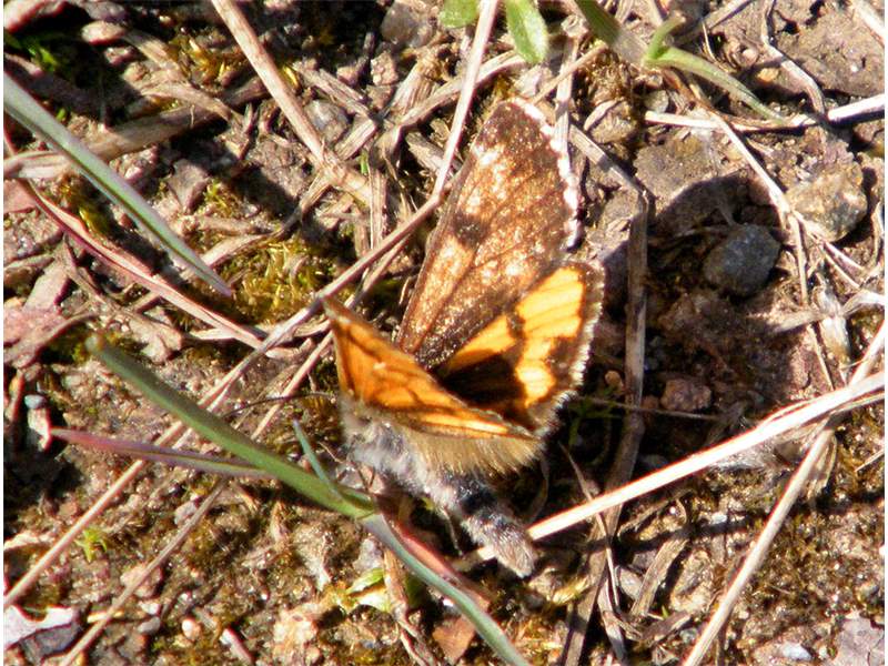 Großes Jungfernkind, auch Birken-Jungfernkind, Archiearis parthenias, Chemnitz-Zeisigwald nahe Euba, Forstschneise, mit Birken durchsetzter Mischwald, am Stapelholz, 30.März, 2018 (Raupen monophag an frischen Birkenblättern) (© Lutz Böttger, Chemnitz)( Bild vergrößern)