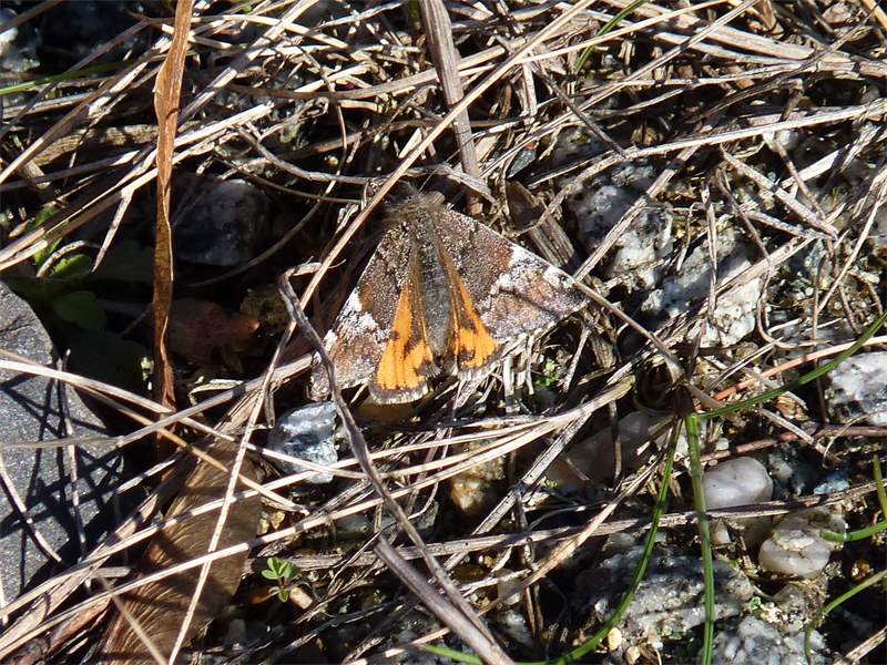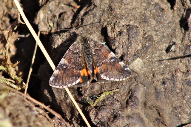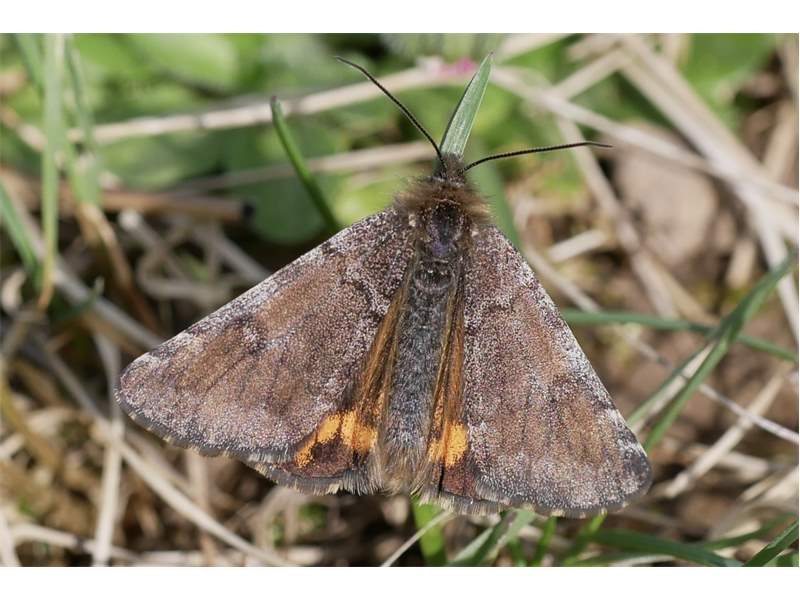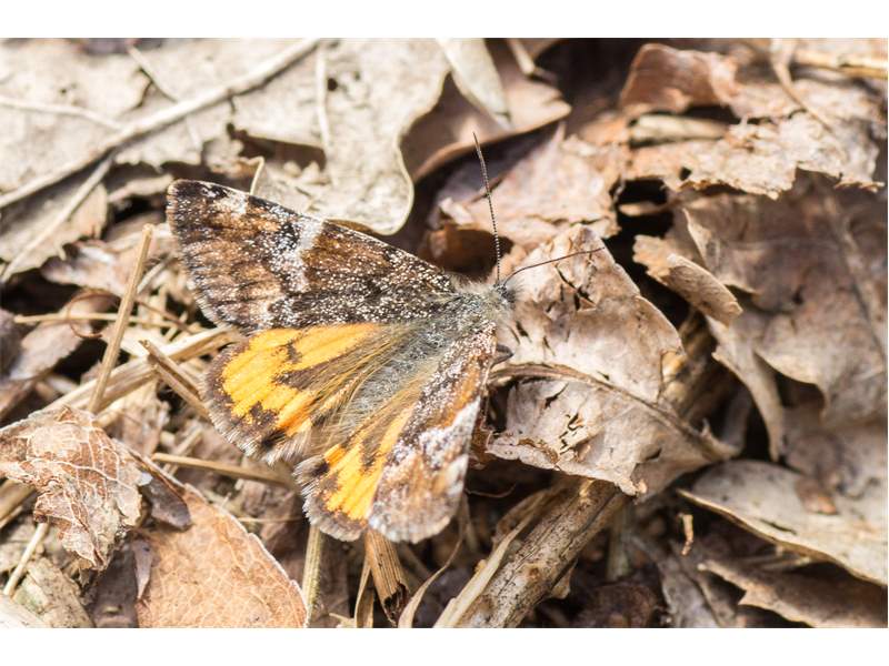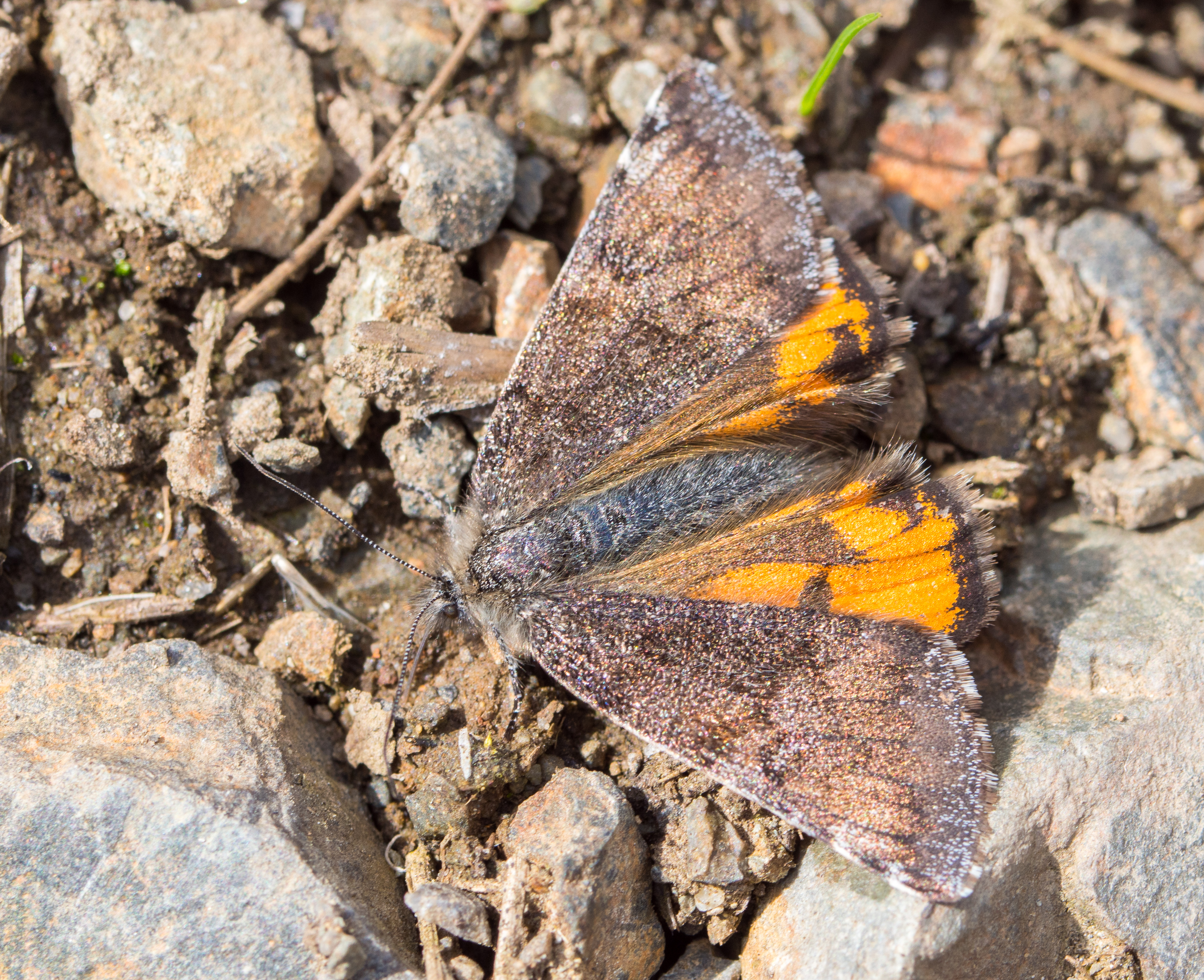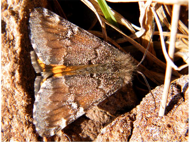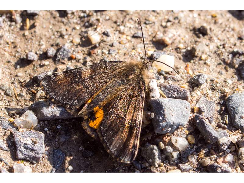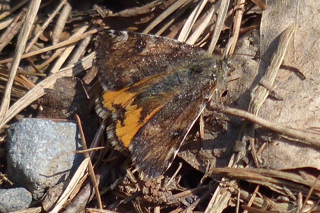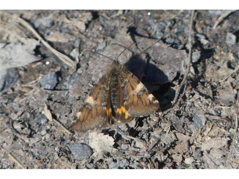 Großes Jungfernkind, auch Birken-Jungfernkind, Archiearis parthenias, Chemnitz-Zeisigwald nahe Euba, Forstschneise, mit Birken durchsetzter Mischwald, am Stapelholz, 30.März, 2018 (Raupen monophag an frischen Birkenblättern) (© Lutz Böttger, Chemnitz)( Bild vergrößern)