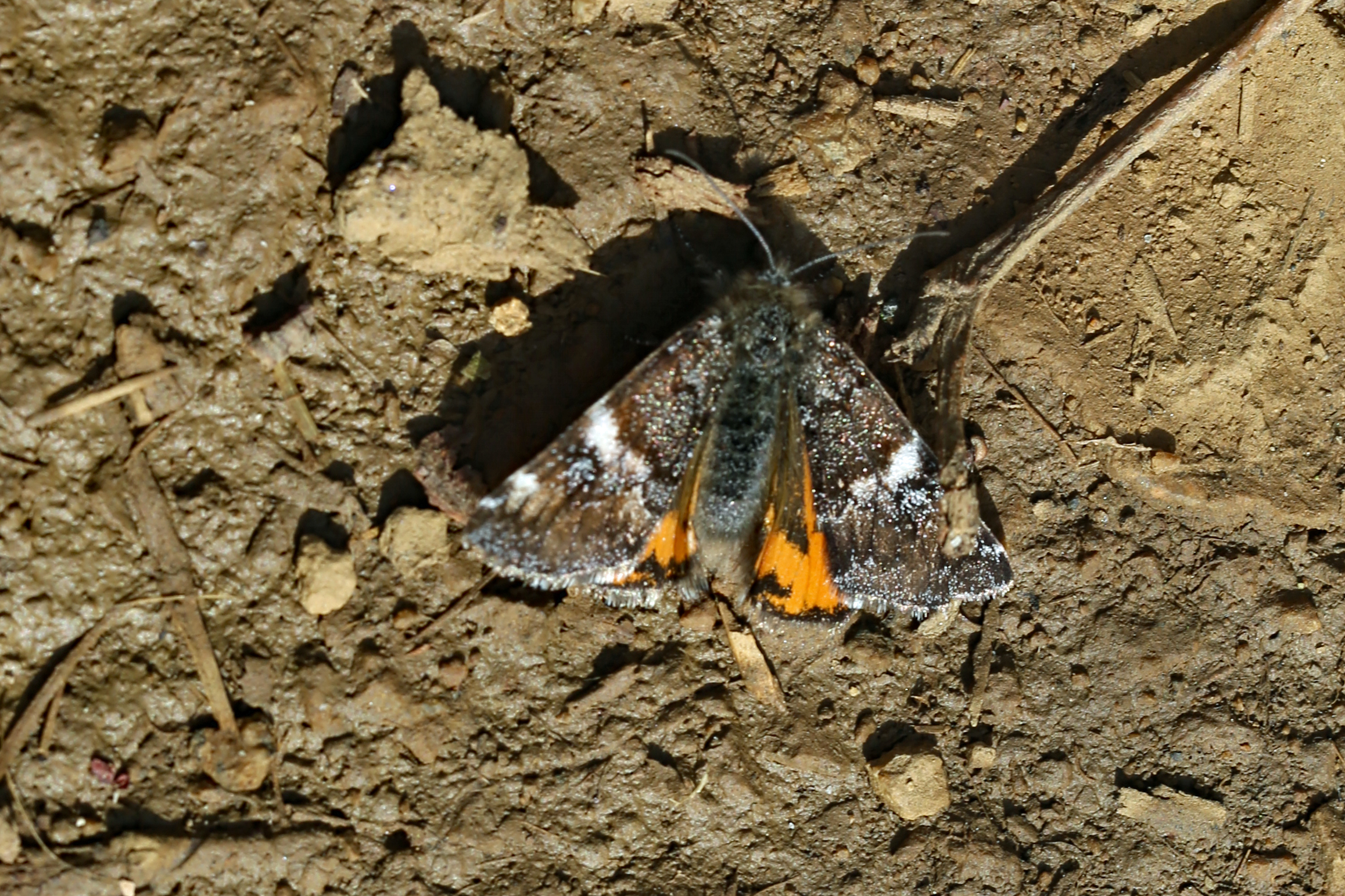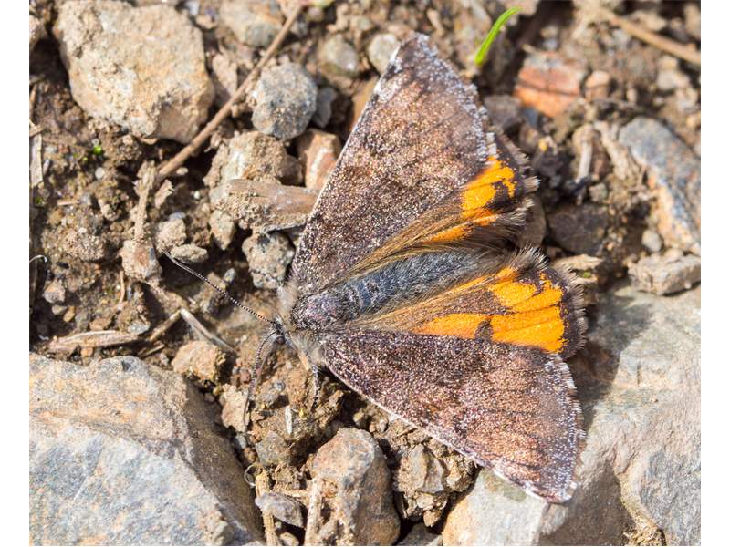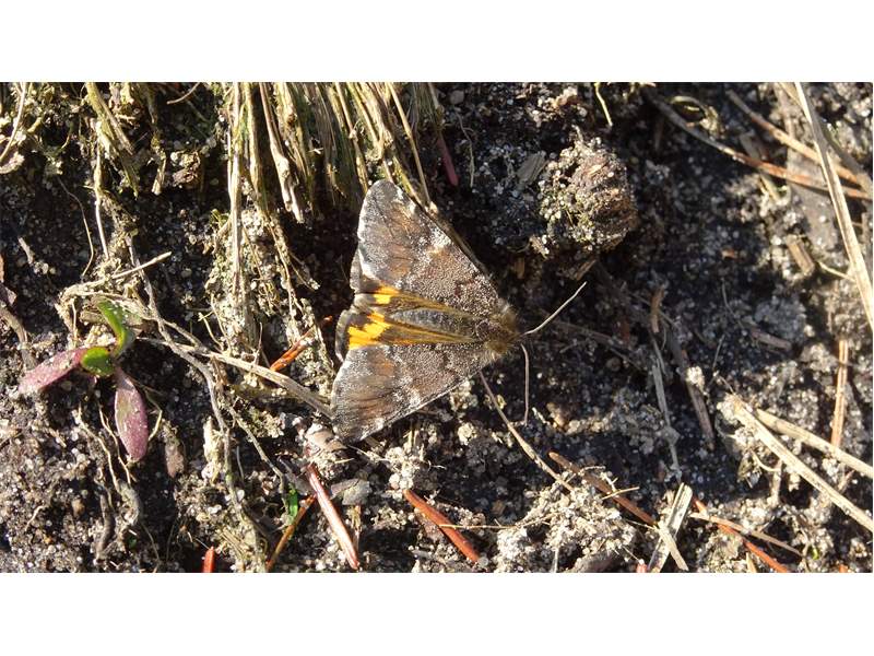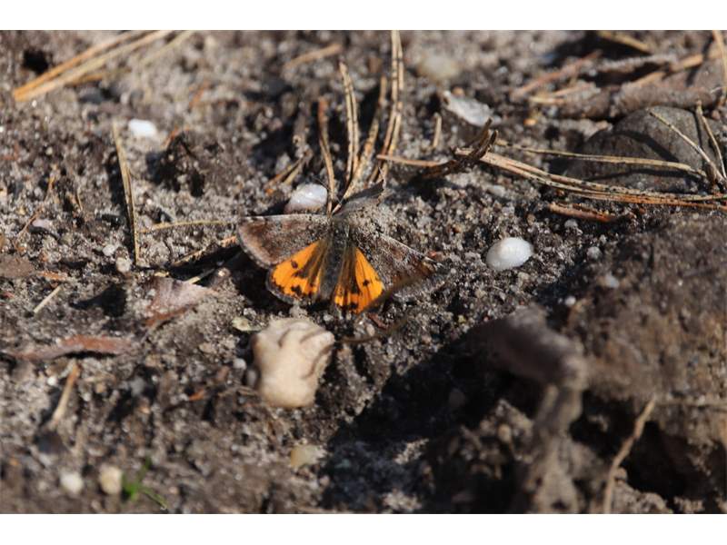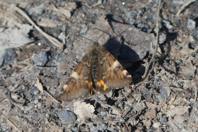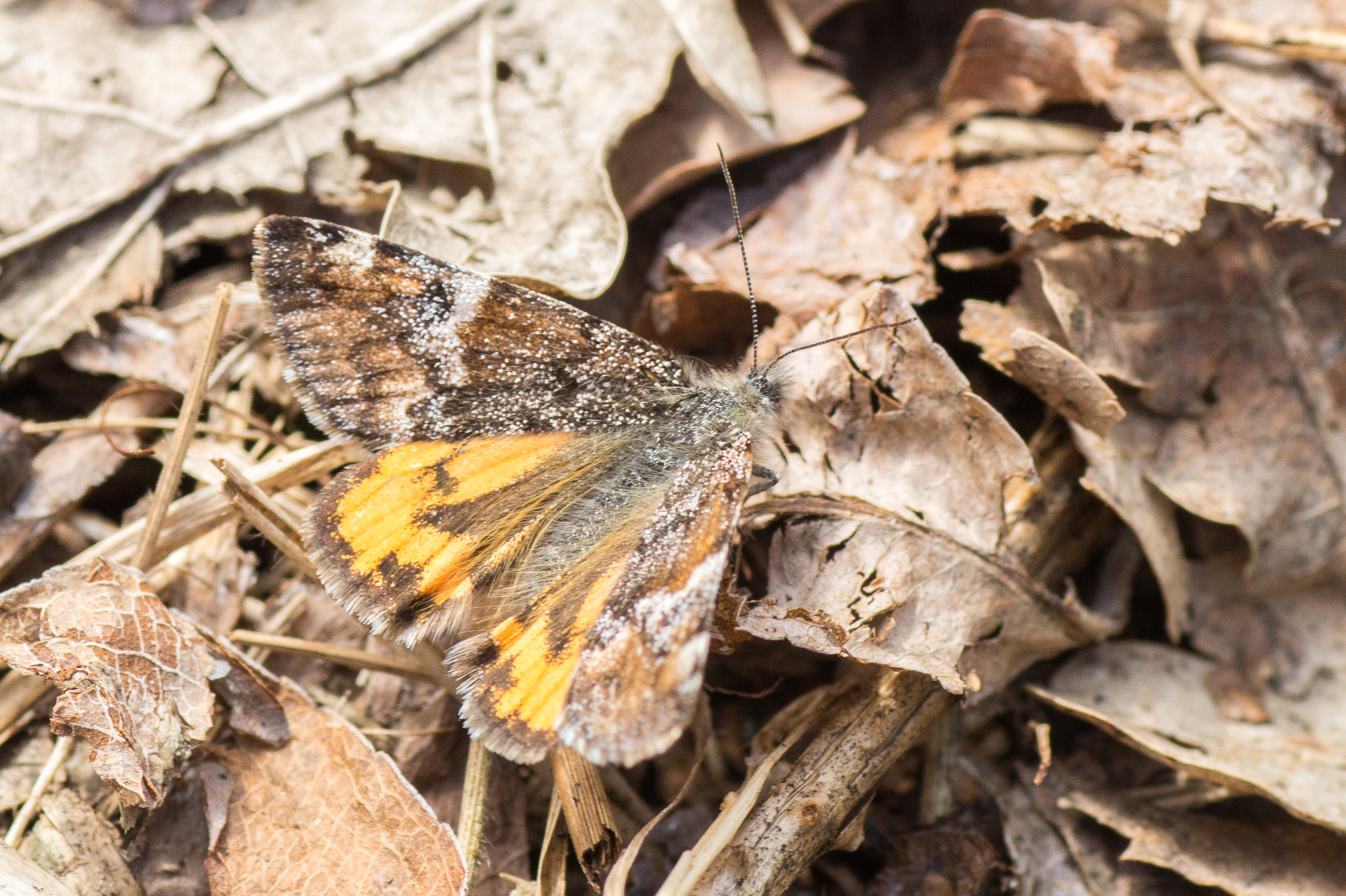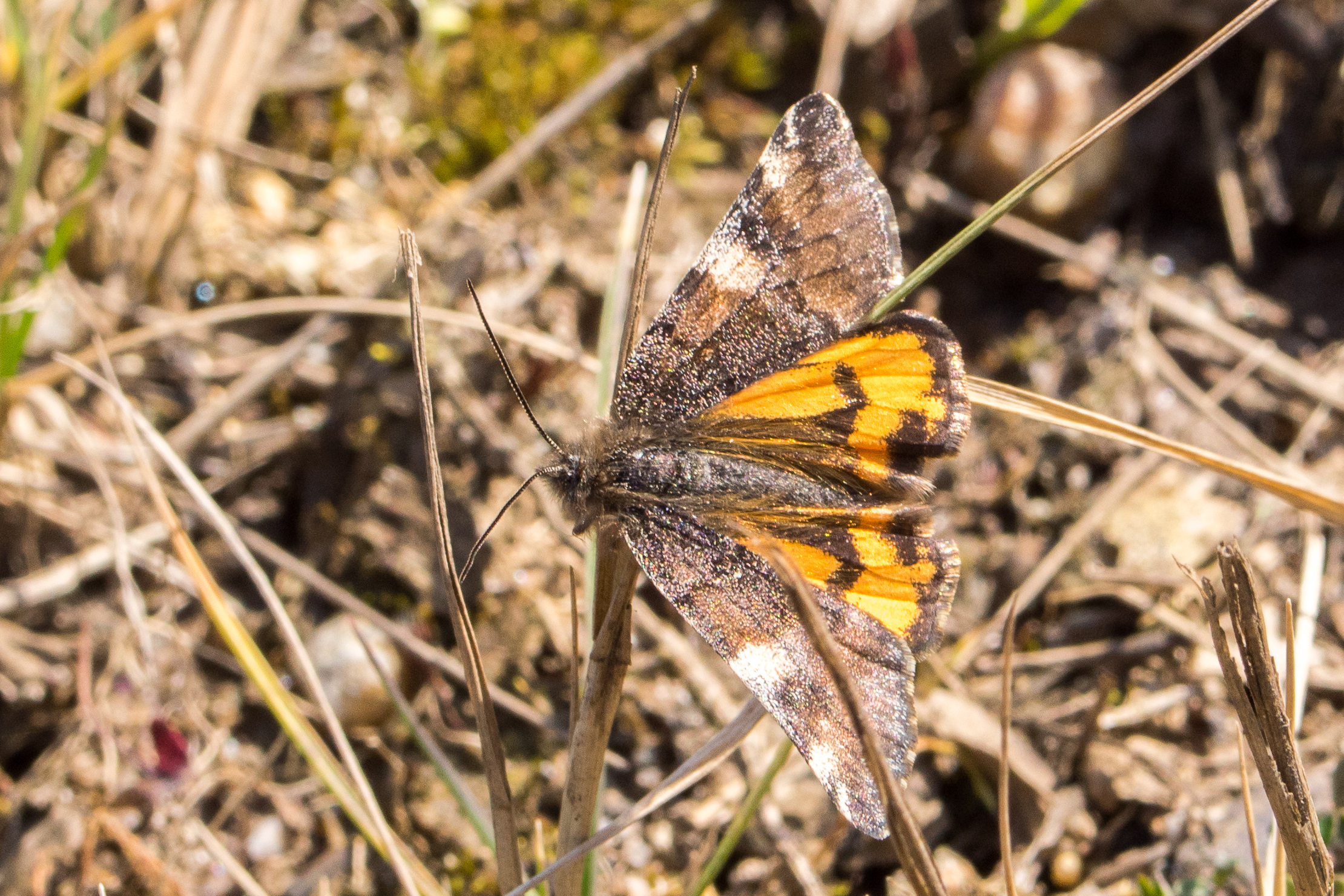 Großes Jungfernkind, auch Birken-Jungfernkind, Archiearis parthenias, Chemnitz-Zeisigwald nahe Euba, Forstschneise, mit Birken durchsetzter Mischwald, am Stapelholz, 30.März, 2018 (Raupen monophag an frischen Birkenblättern) (© Lutz Böttger, Chemnitz)( Bild vergrößern)