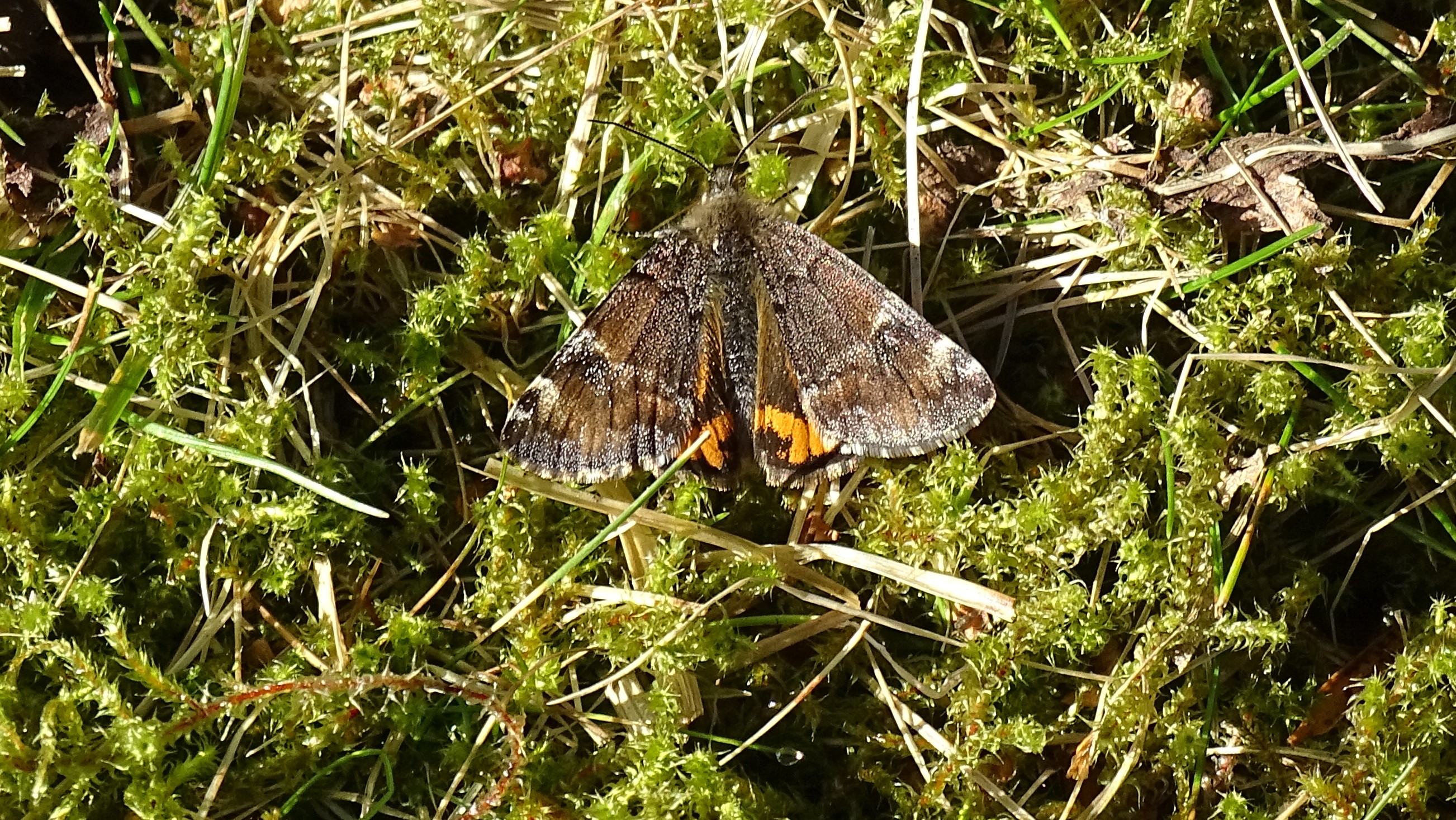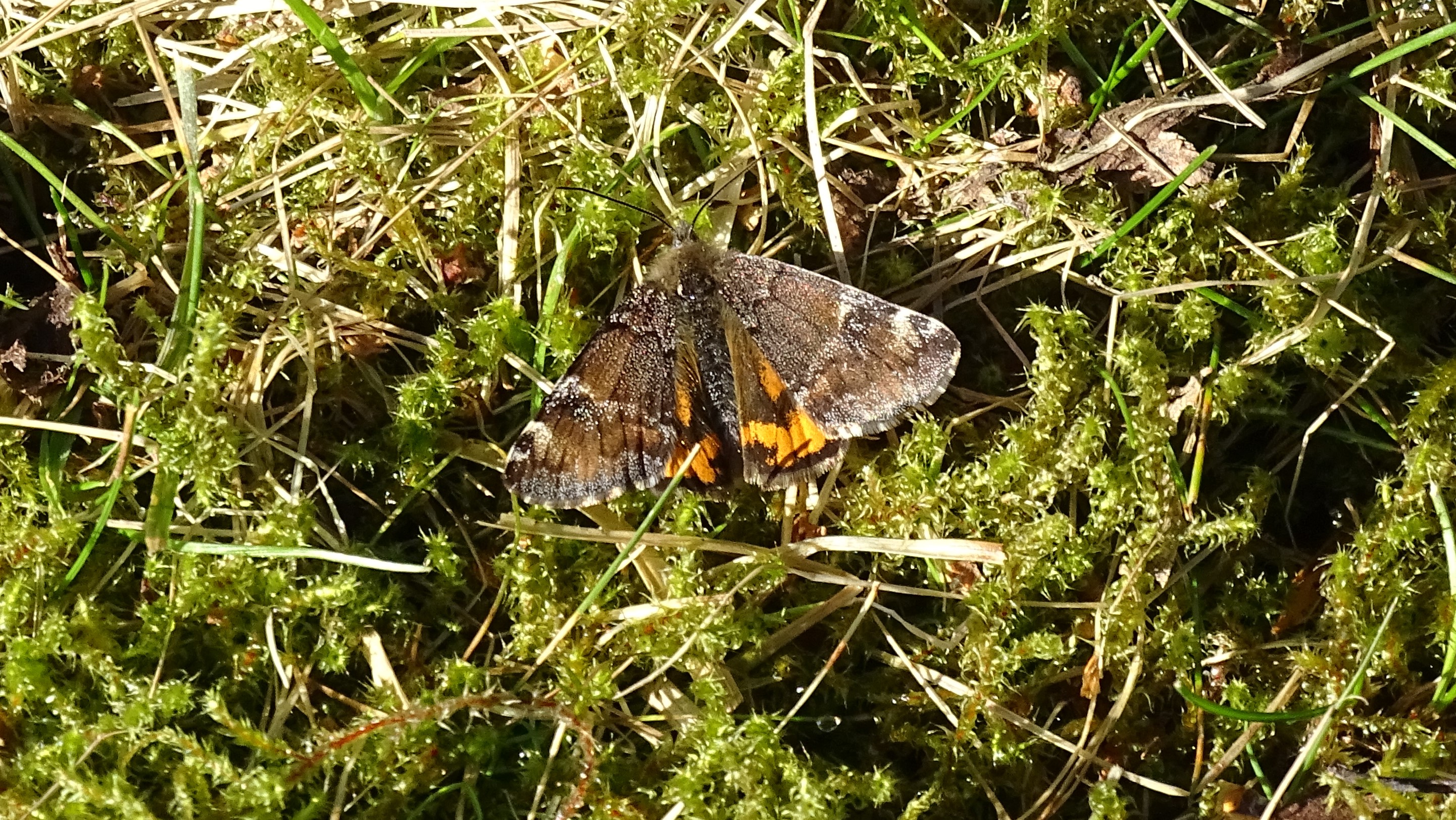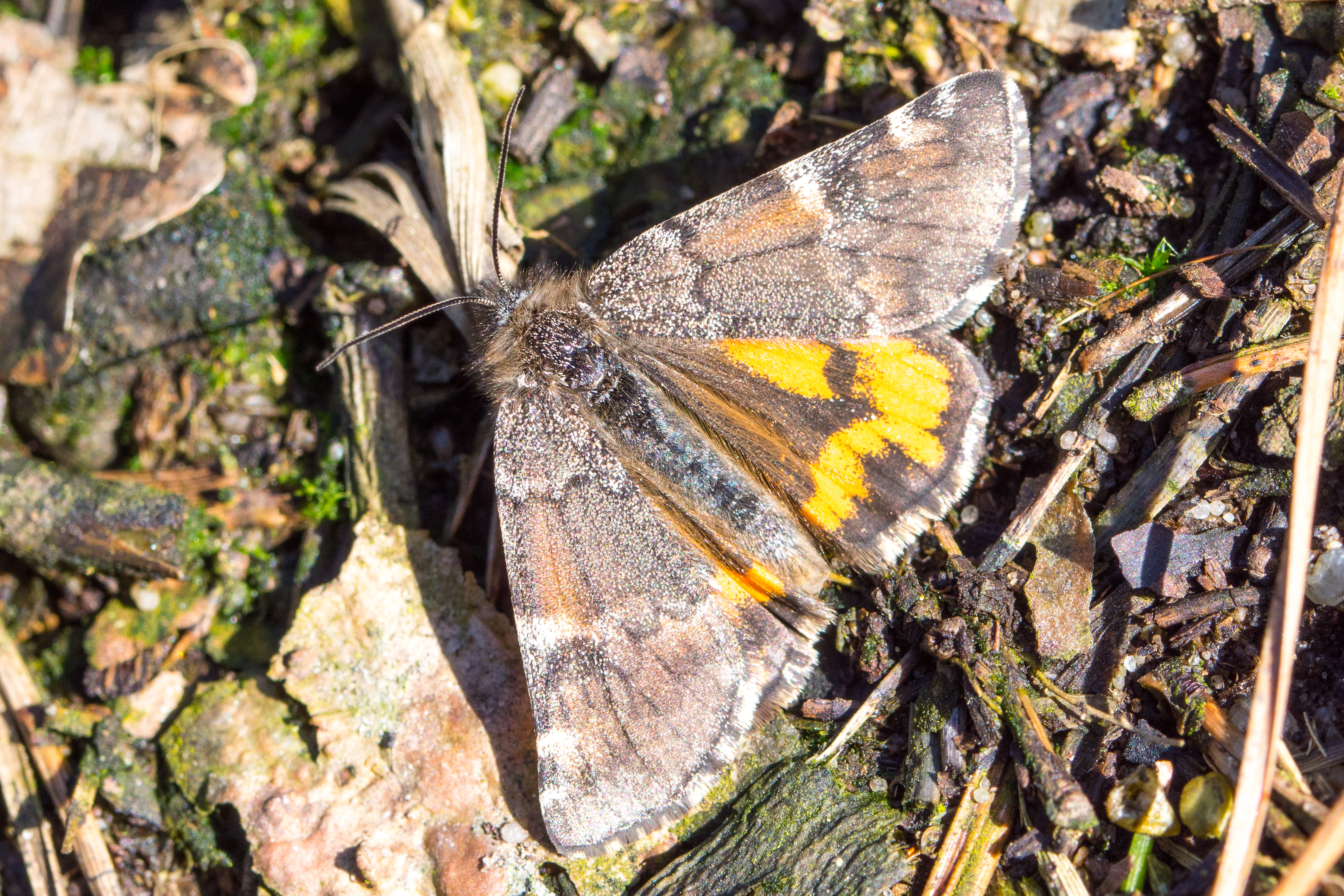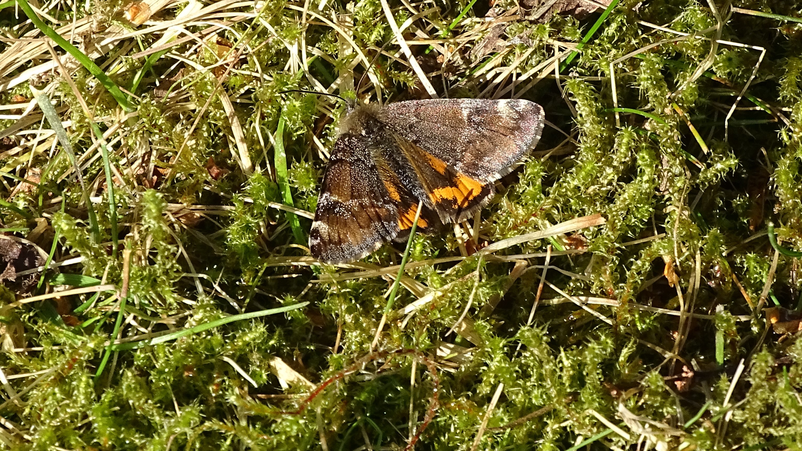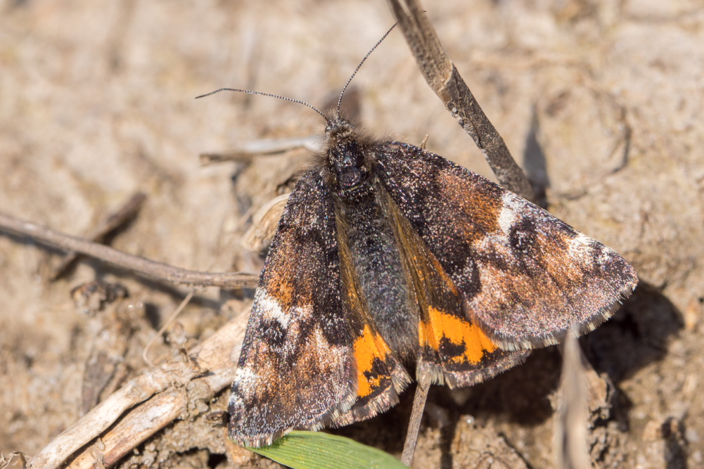 Großes Jungfernkind, auch Birken-Jungfernkind, Archiearis parthenias, Chemnitz-Zeisigwald nahe Euba, Forstschneise, mit Birken durchsetzter Mischwald, am Stapelholz, 30.März, 2018 (Raupen monophag an frischen Birkenblättern)