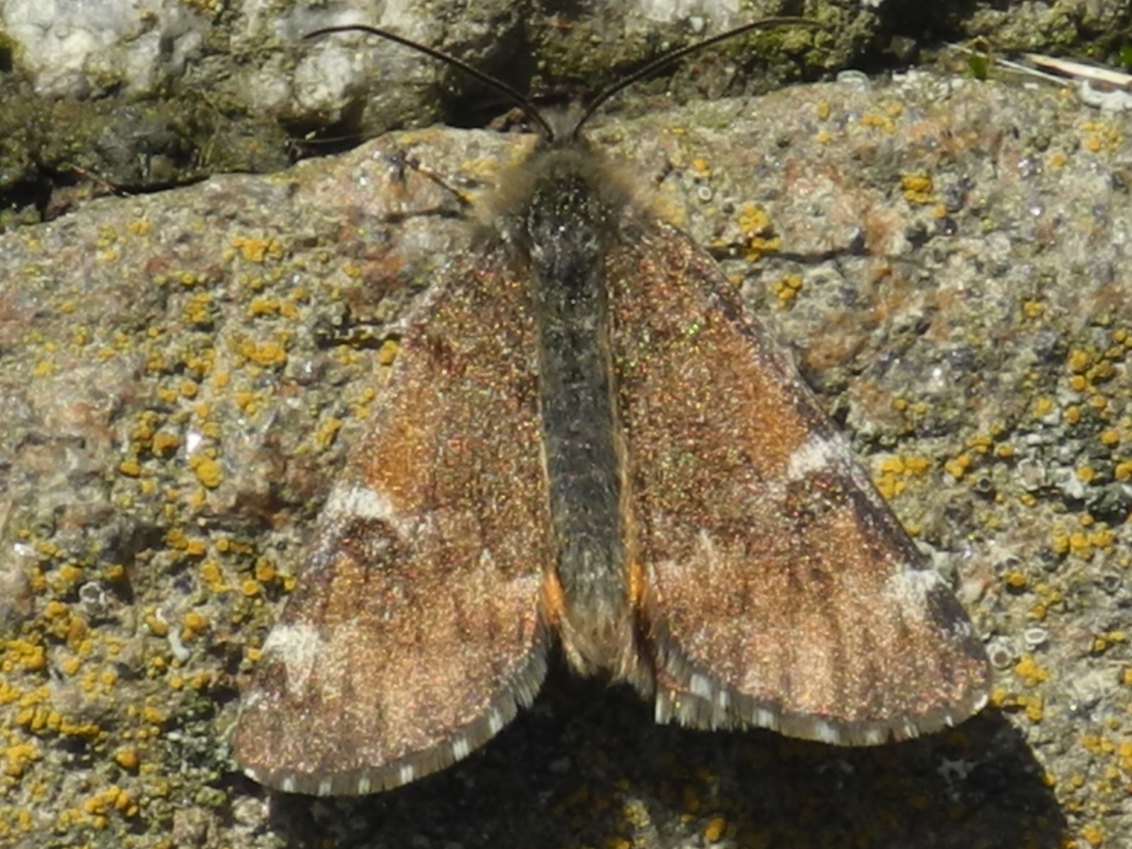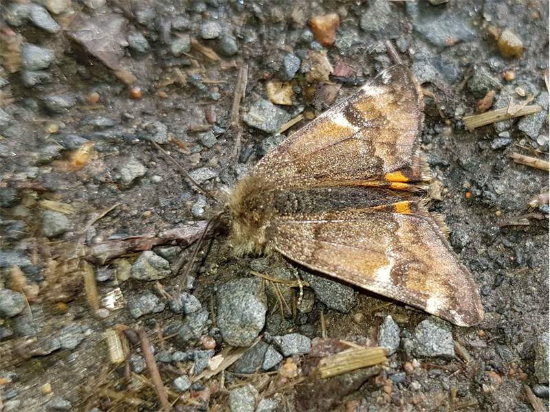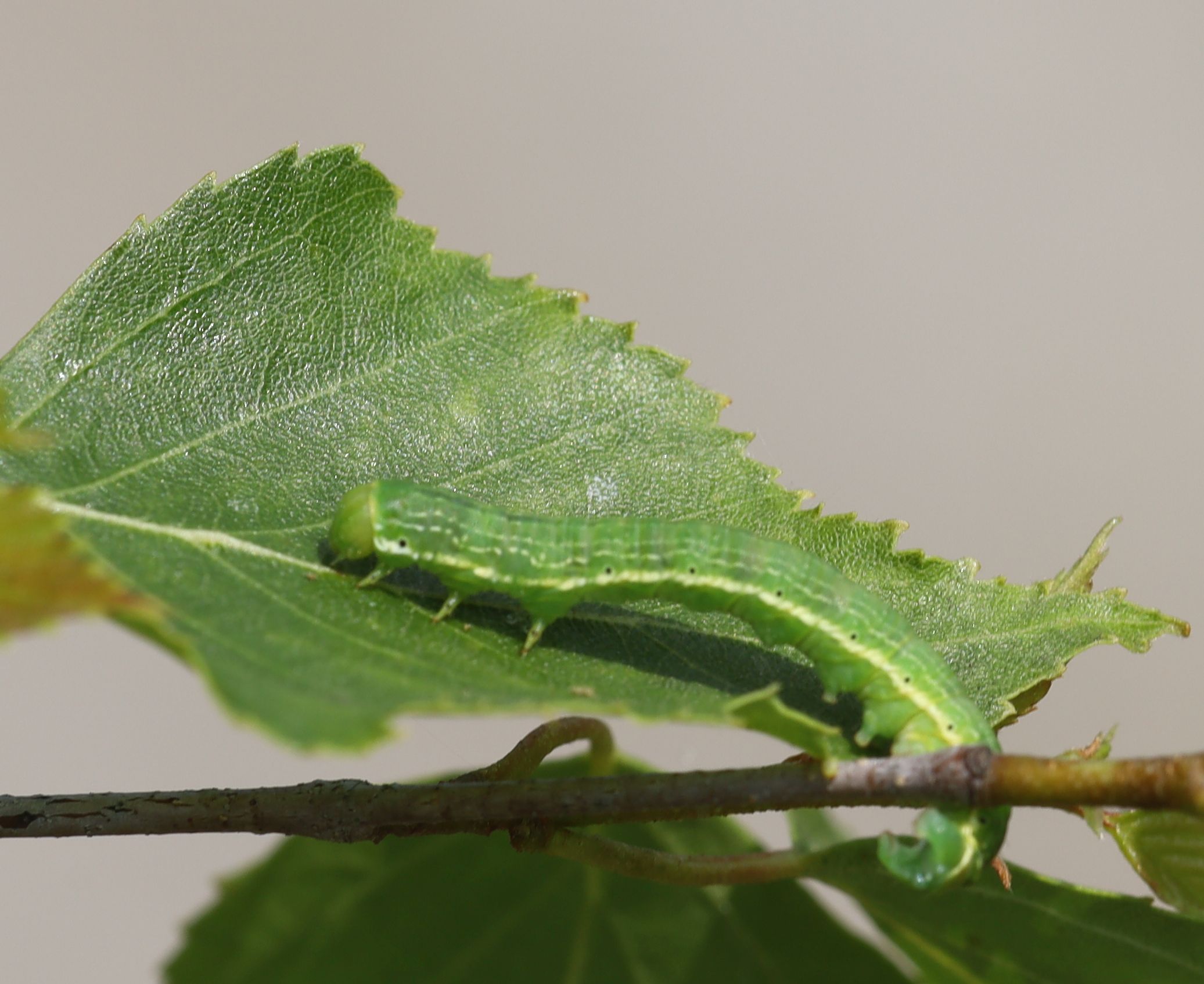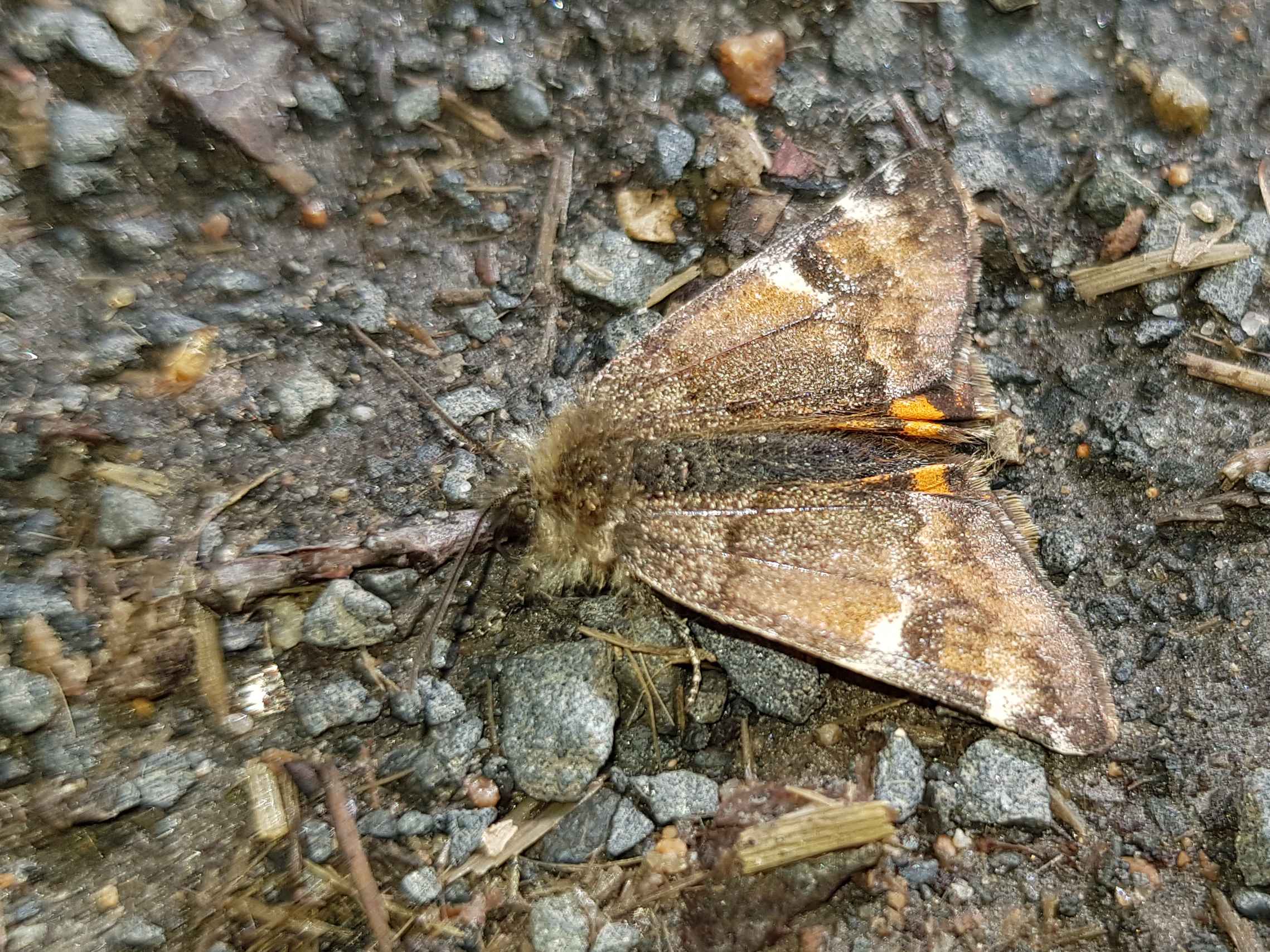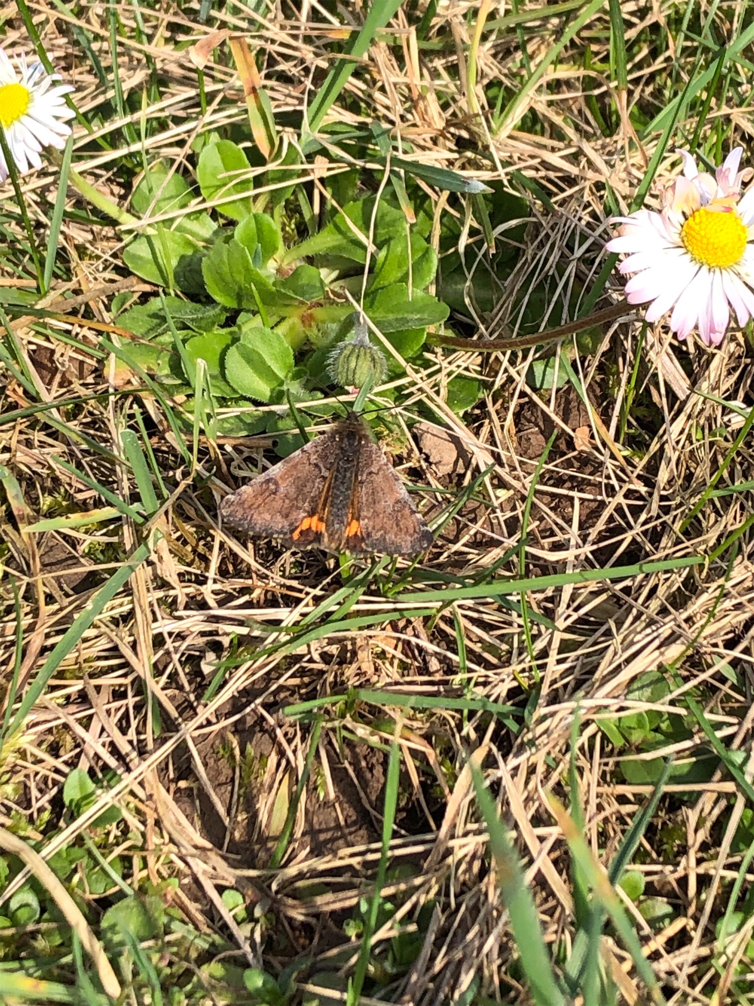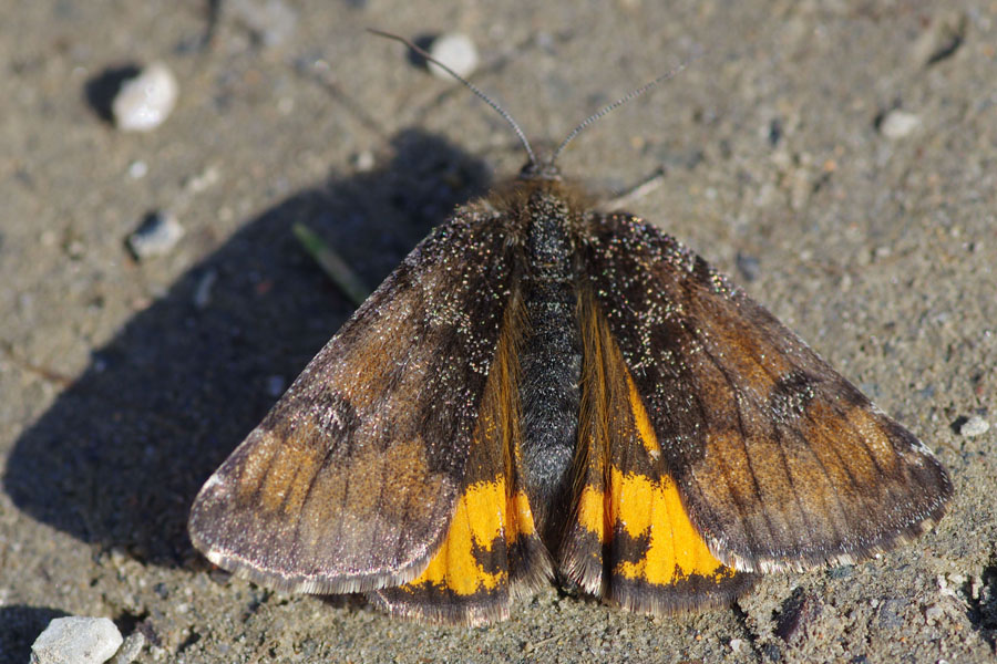 Großes Jungfernkind, auch Birken-Jungfernkind, Archiearis parthenias, Chemnitz-Zeisigwald nahe Euba, Forstschneise, mit Birken durchsetzter Mischwald, am Stapelholz, 30.März, 2018 (Raupen monophag an frischen Birkenblättern)