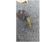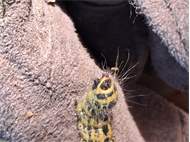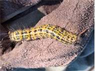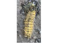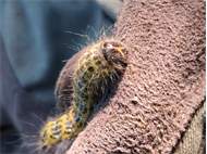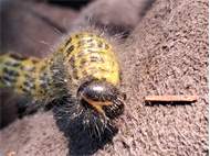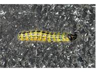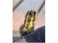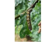 Mondvogel (Phalera bucephala (Linnaeus, 1758)), jüngeres Raupenstadium, an Eichenaufwuchs, Hochhalde Trages bei Espenhain, August 2018 (© Bernd Garbe)( Bild vergrößern)