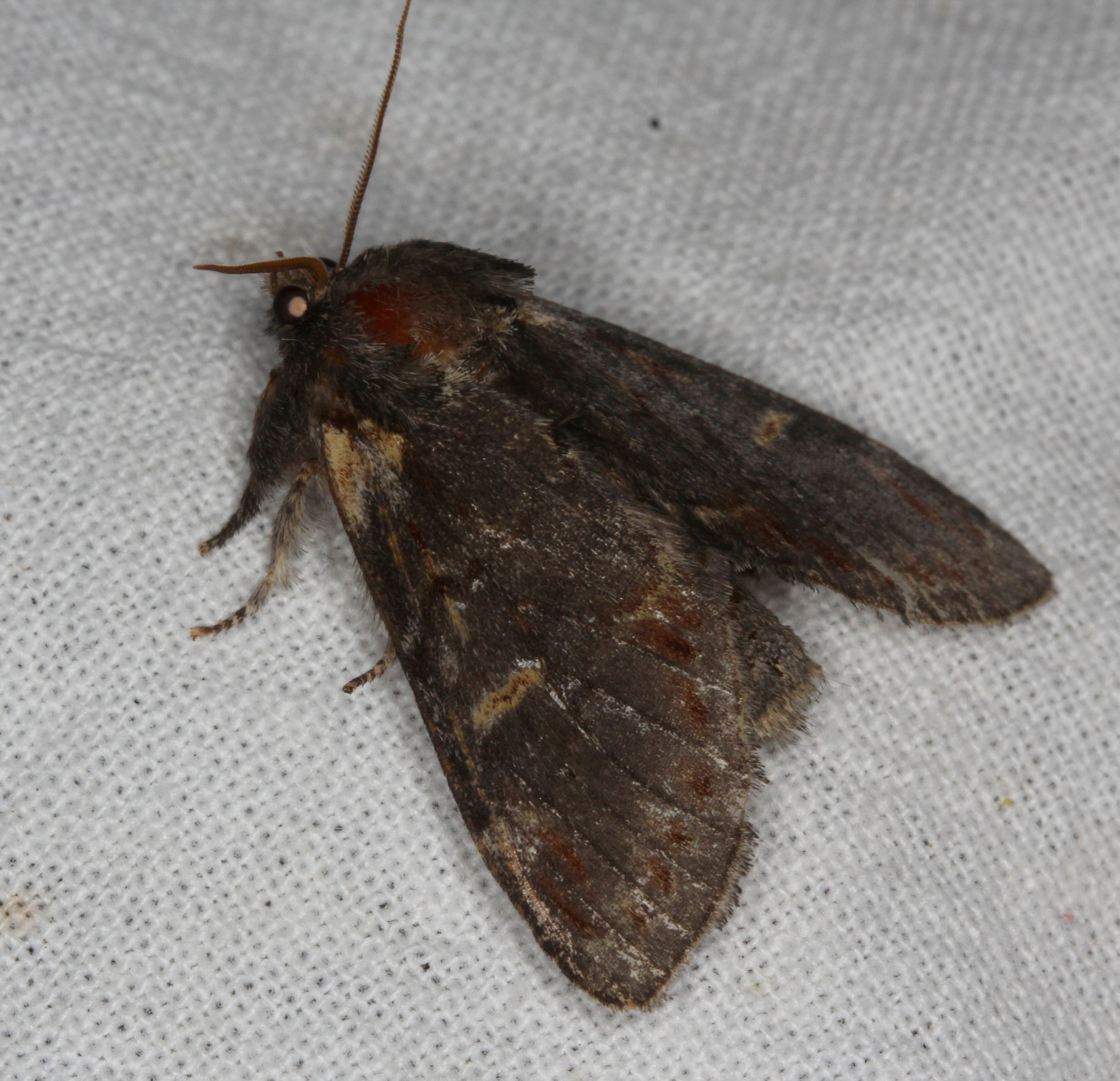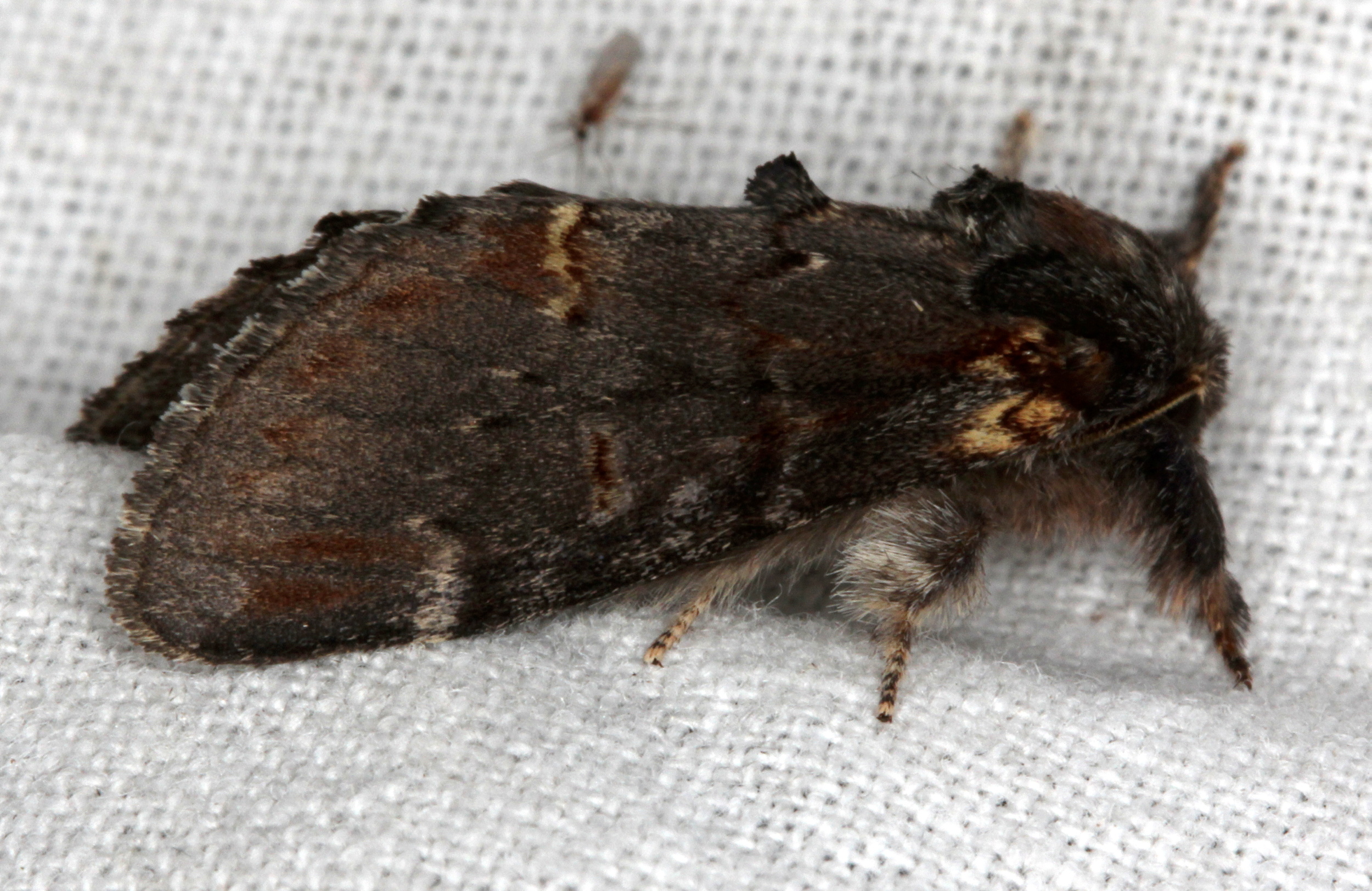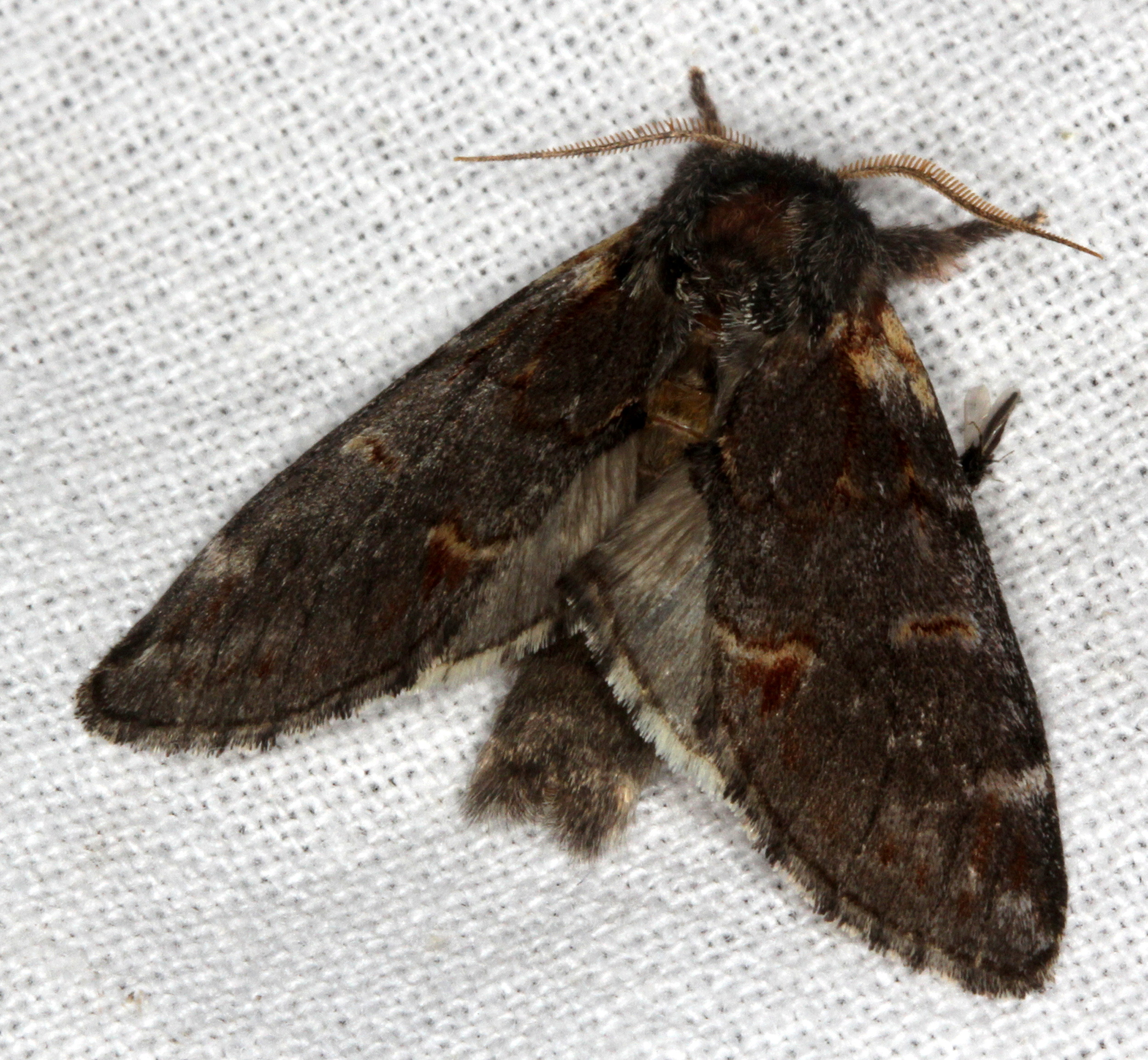 Dromedar-Zahnspinner (Notodonta dromedarius (Linnaeus, 1767)) Lichtfang, Gartenanlage in Dresden-Mockritz, 29.07.2014