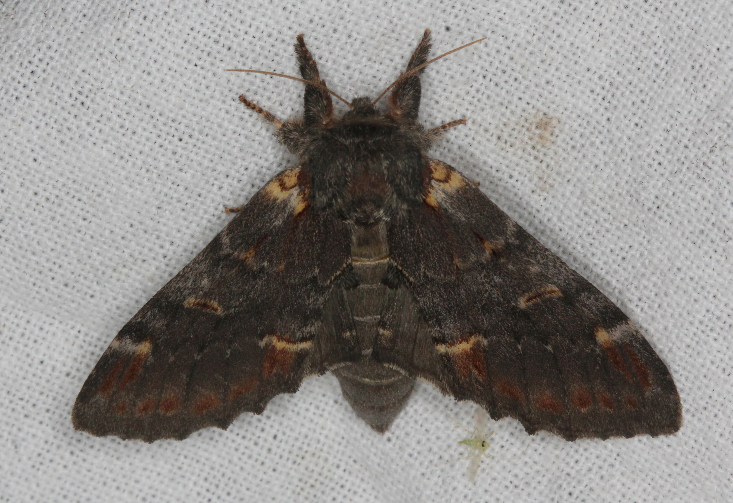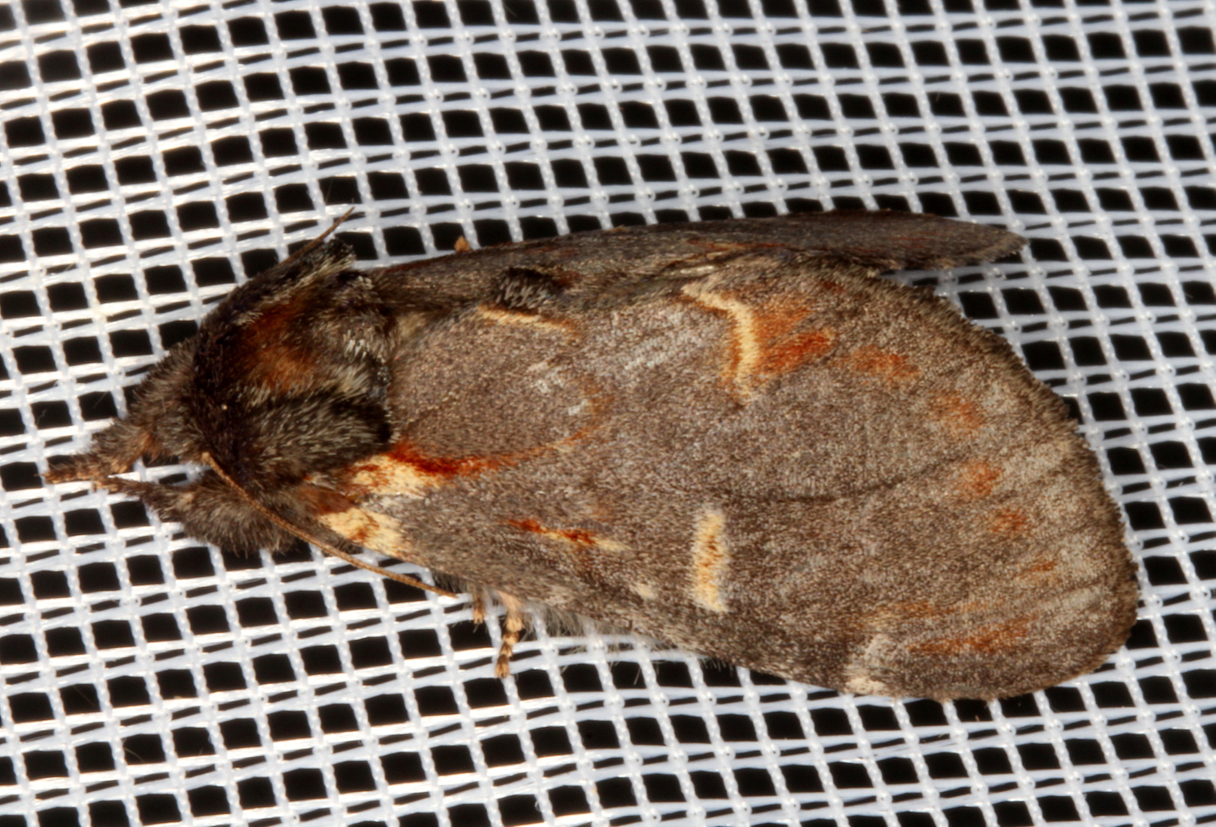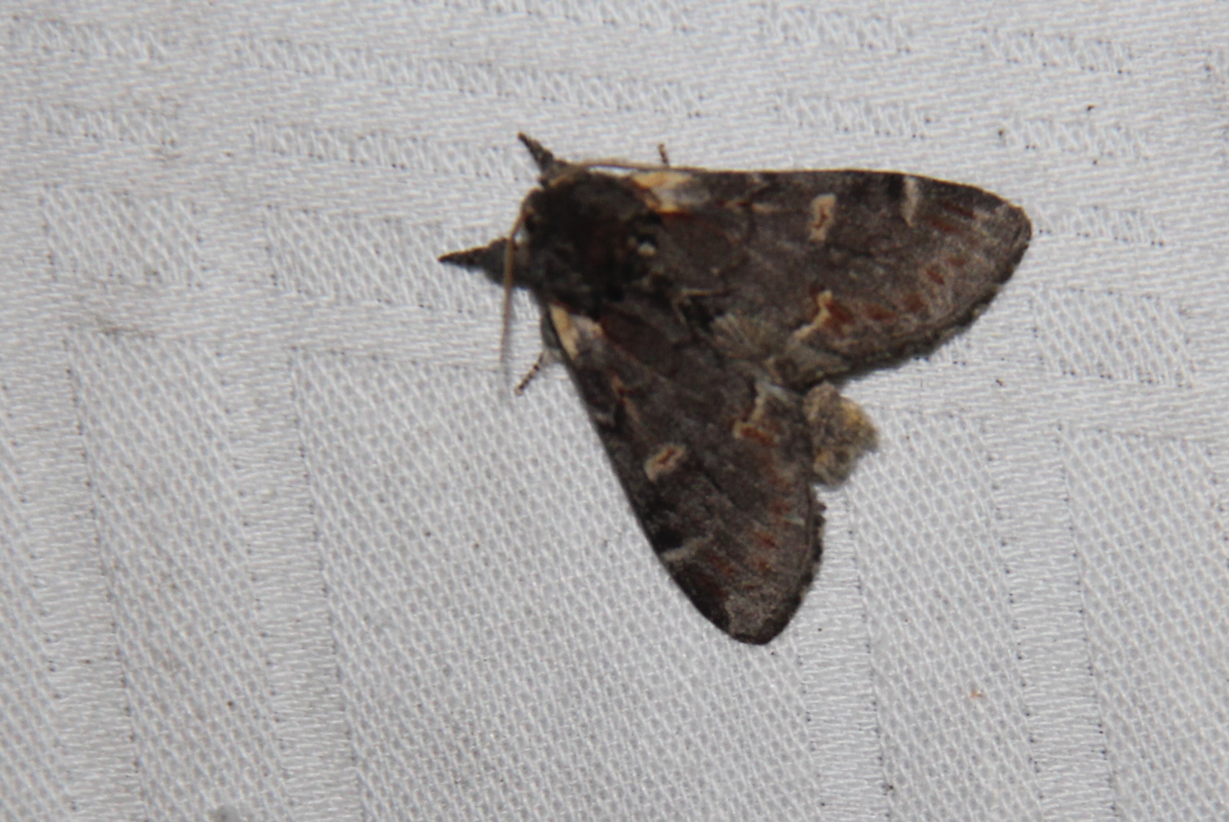 Dromedar-Zahnspinner (Notodonta dromedarius (Linnaeus, 1767)) Lichtfang, Gartenanlage in Dresden-Mockritz, 29.07.2014
