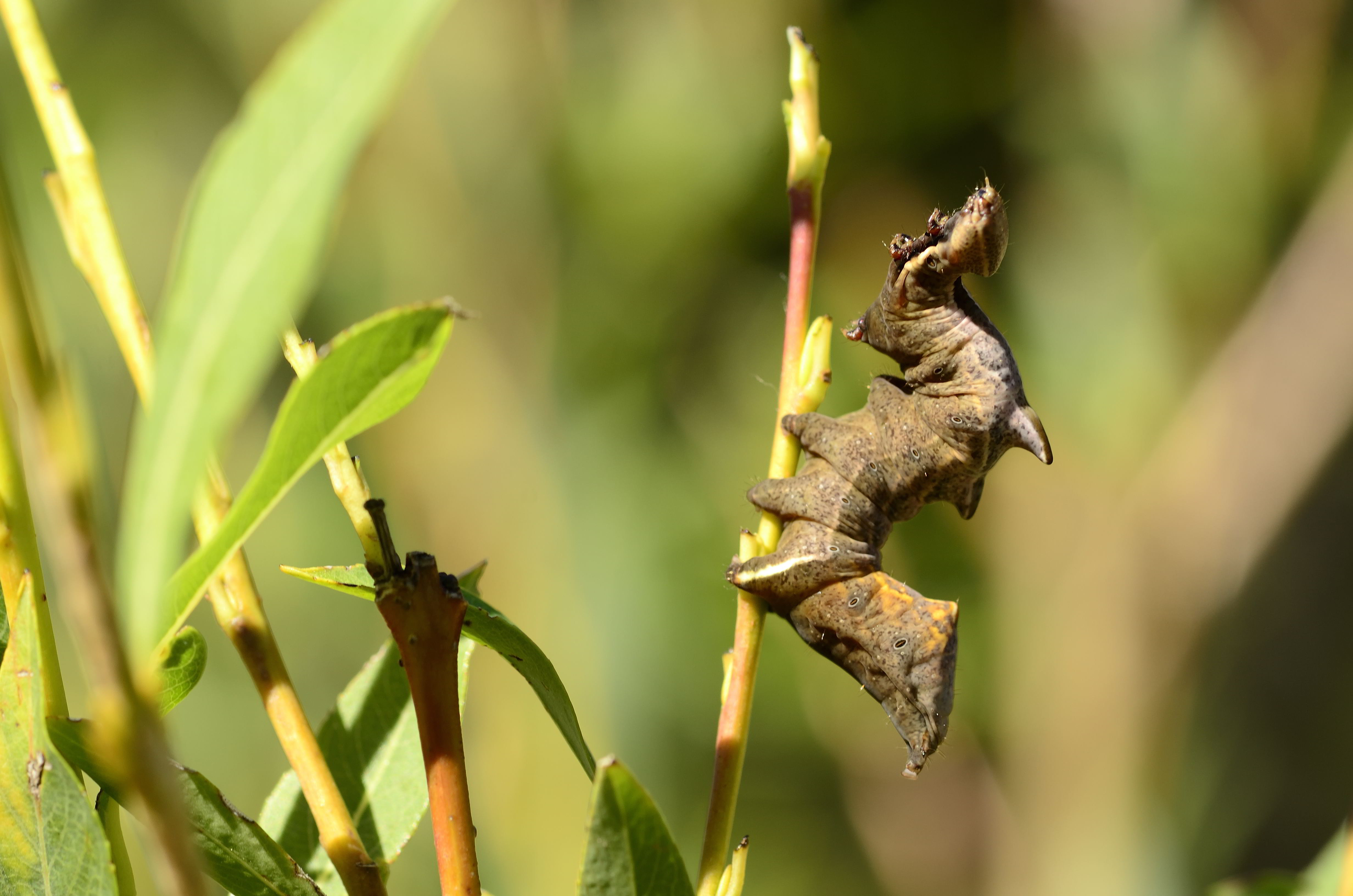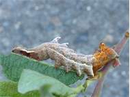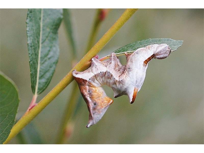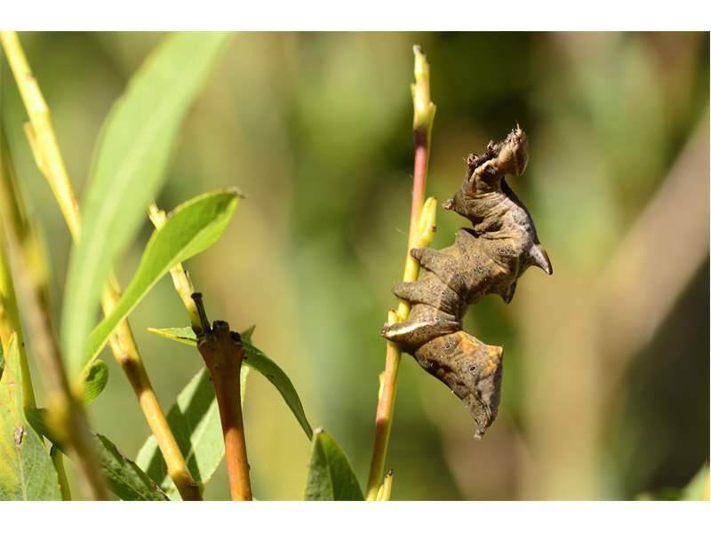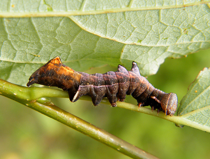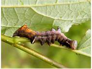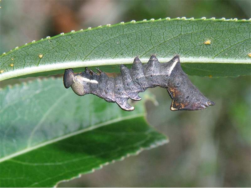 Am 26.07.2011 fand ich in Altenberg an ganz jungen Salweiden drei dieser seltsamen Raupen des Zickzack-Zahnspinners