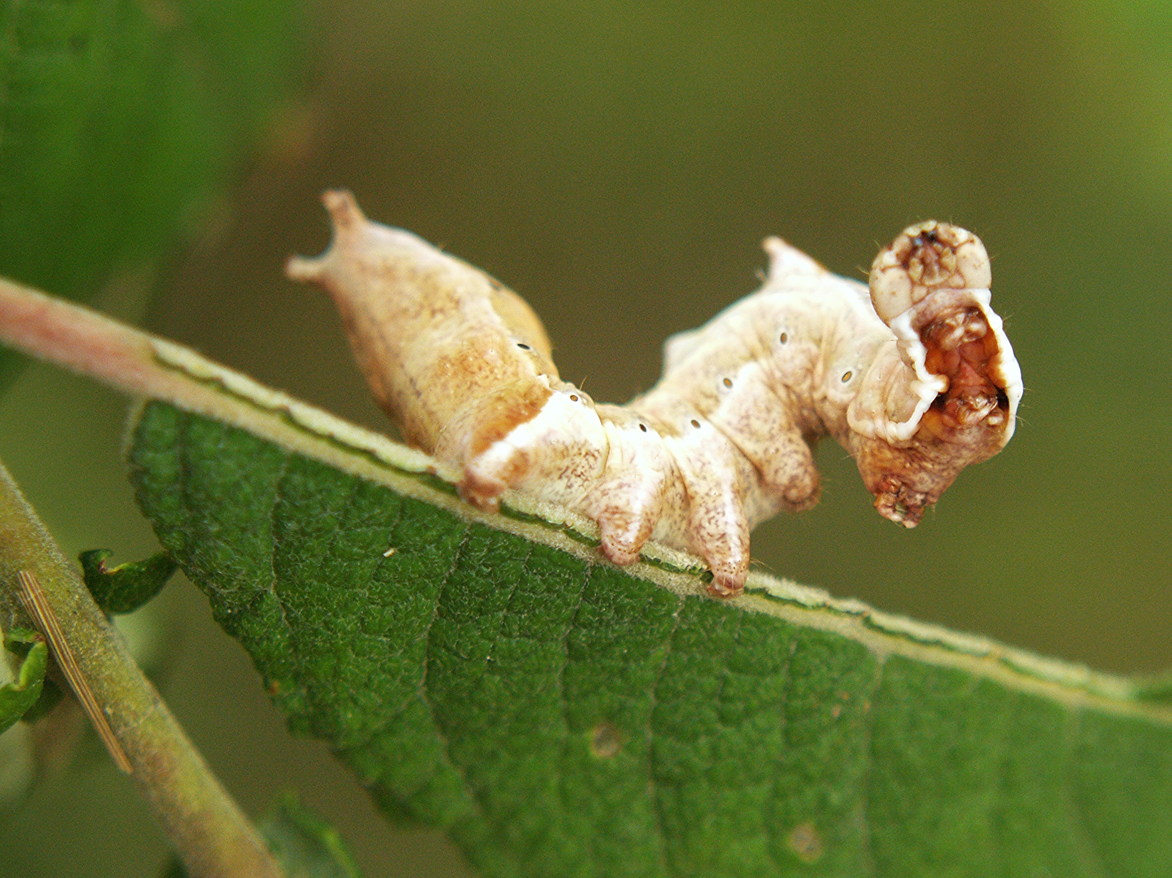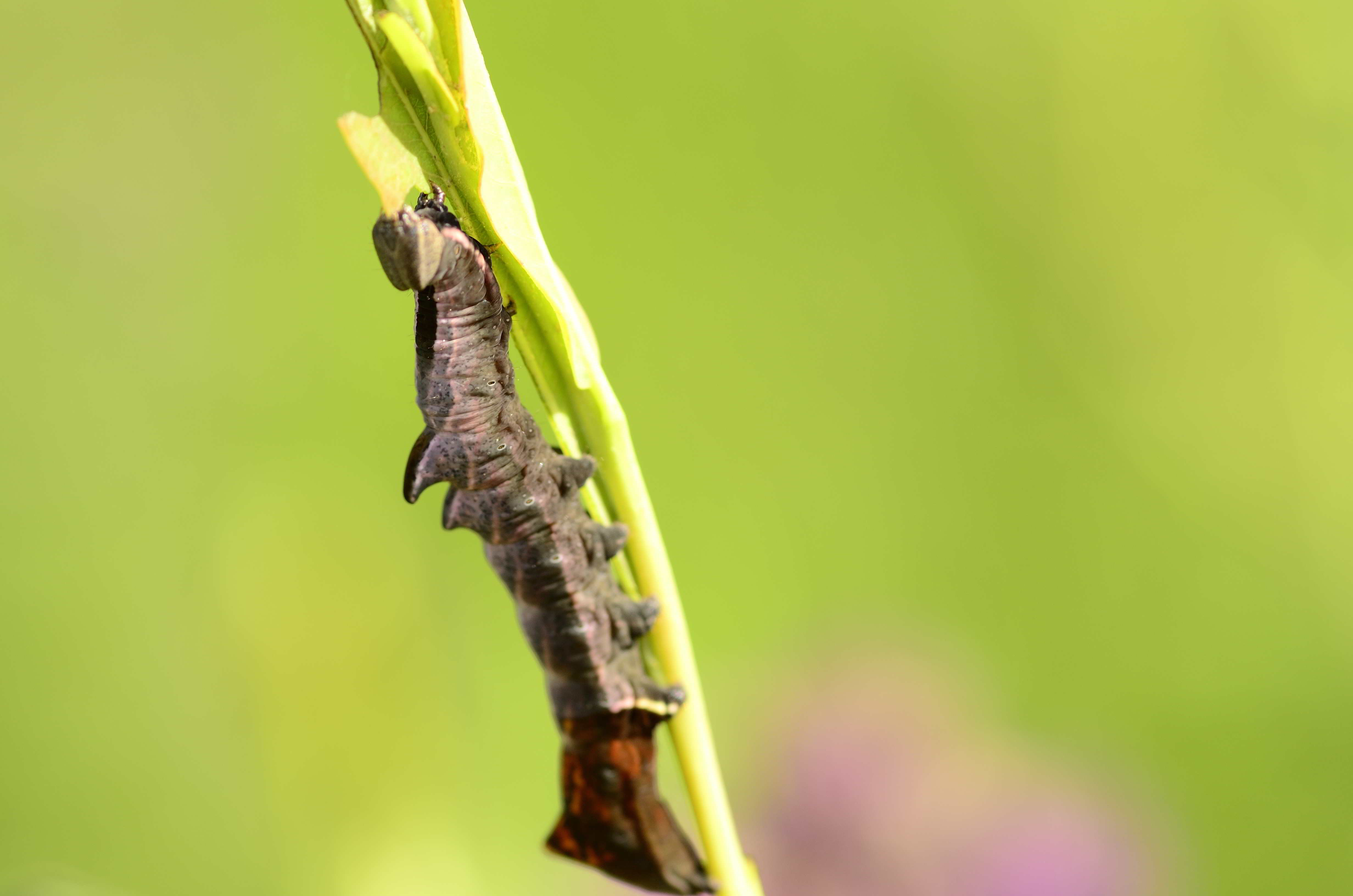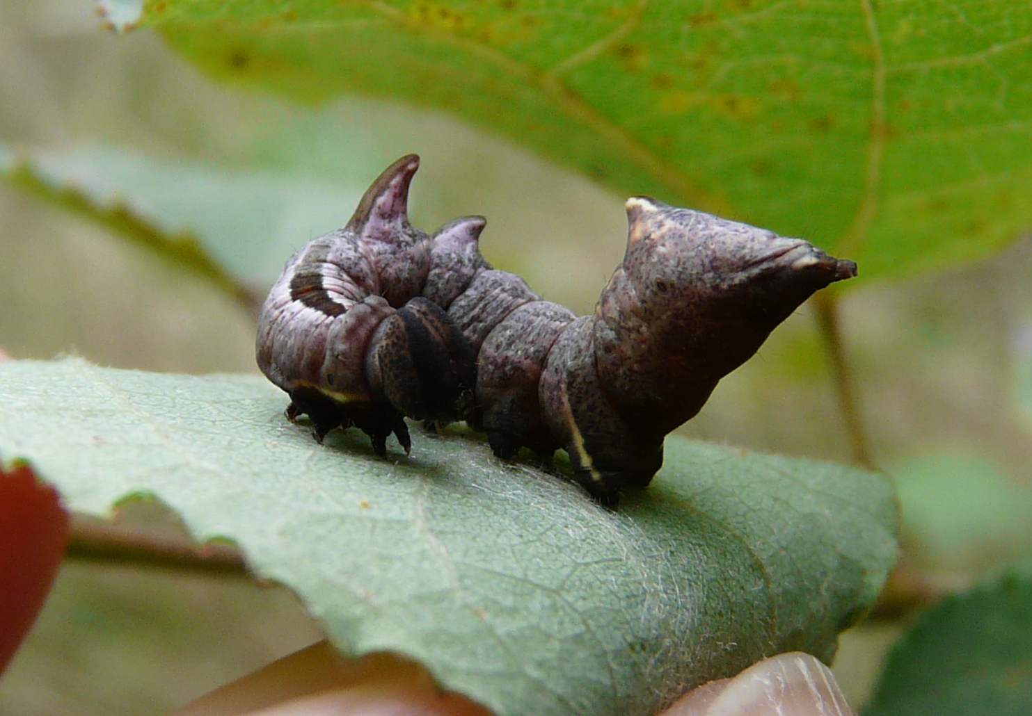 Am 26.07.2011 fand ich in Altenberg an ganz jungen Salweiden drei dieser seltsamen Raupen des Zickzack-Zahnspinners
