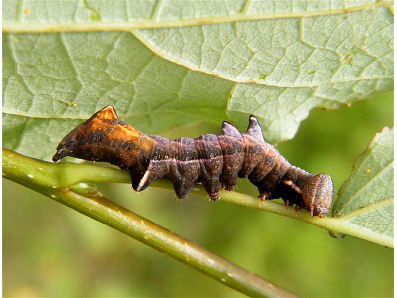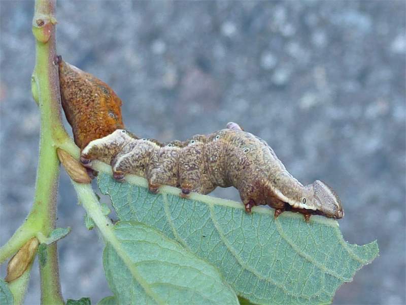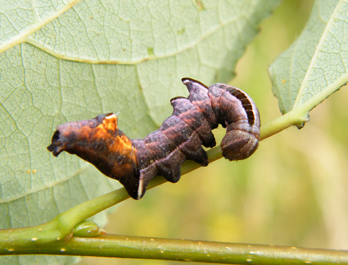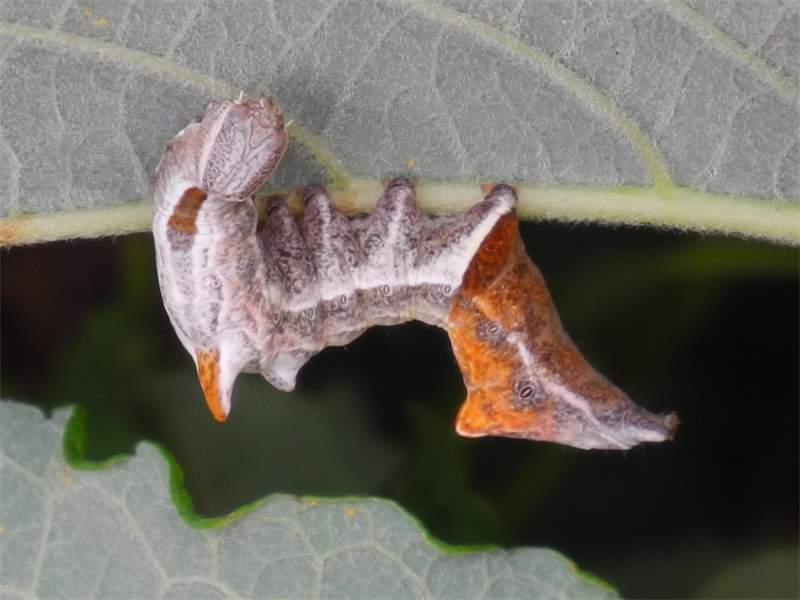 Zickzack-Zahnspinner (Notodonta ziczac (Linnaeus, 1758)): Raupe an Populus tremula, 21.08.2019 bei Bulleritz.