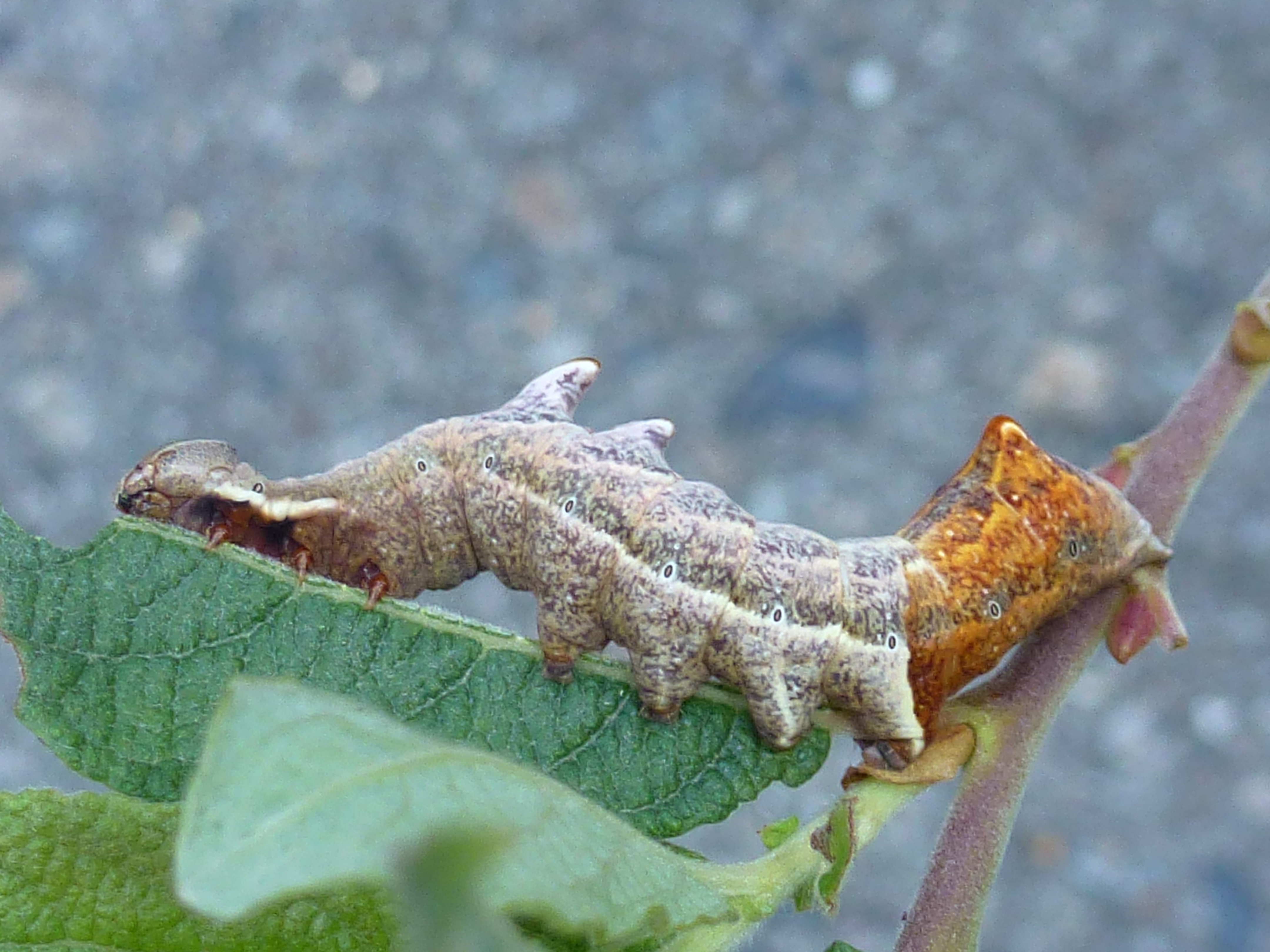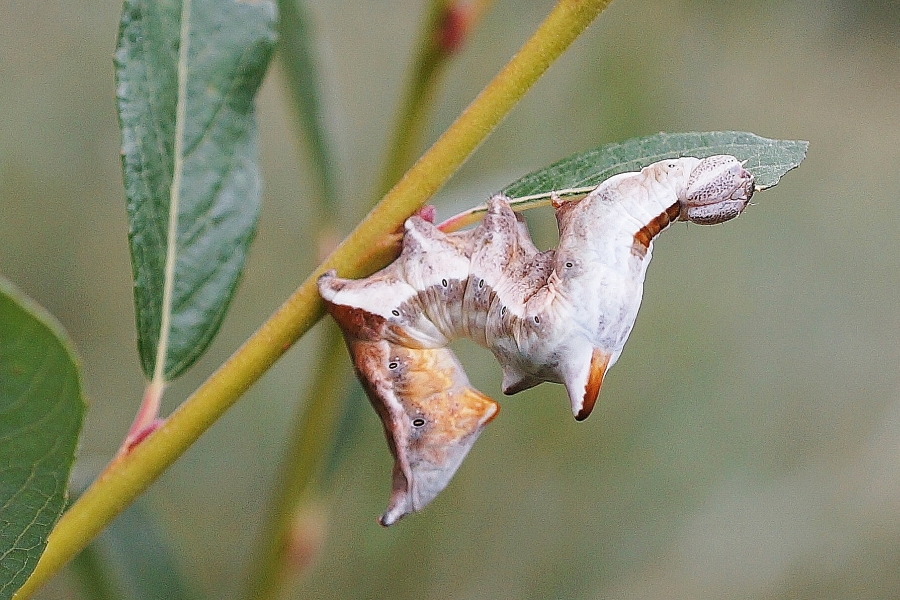 Zickzack- Zahnspinnerraupe an Weide, Oberpöbel im August 2013