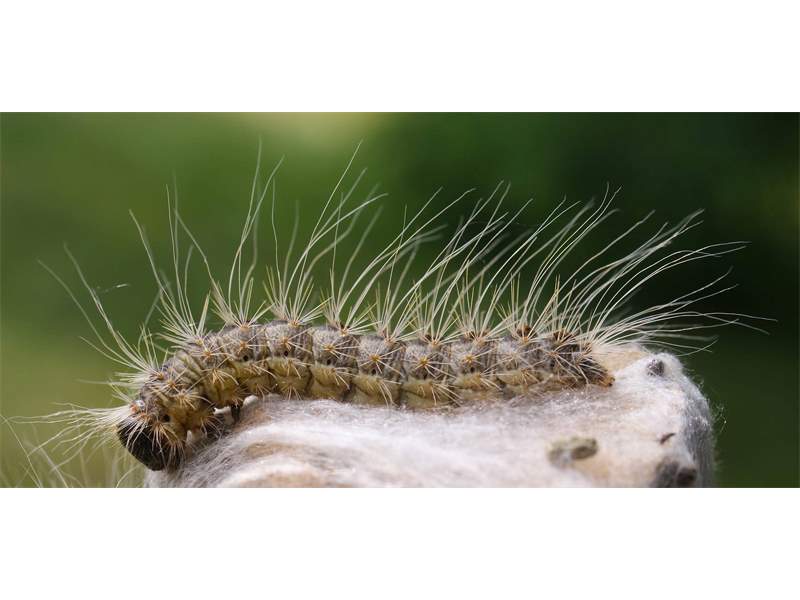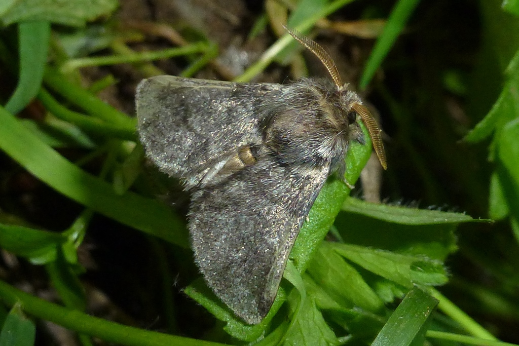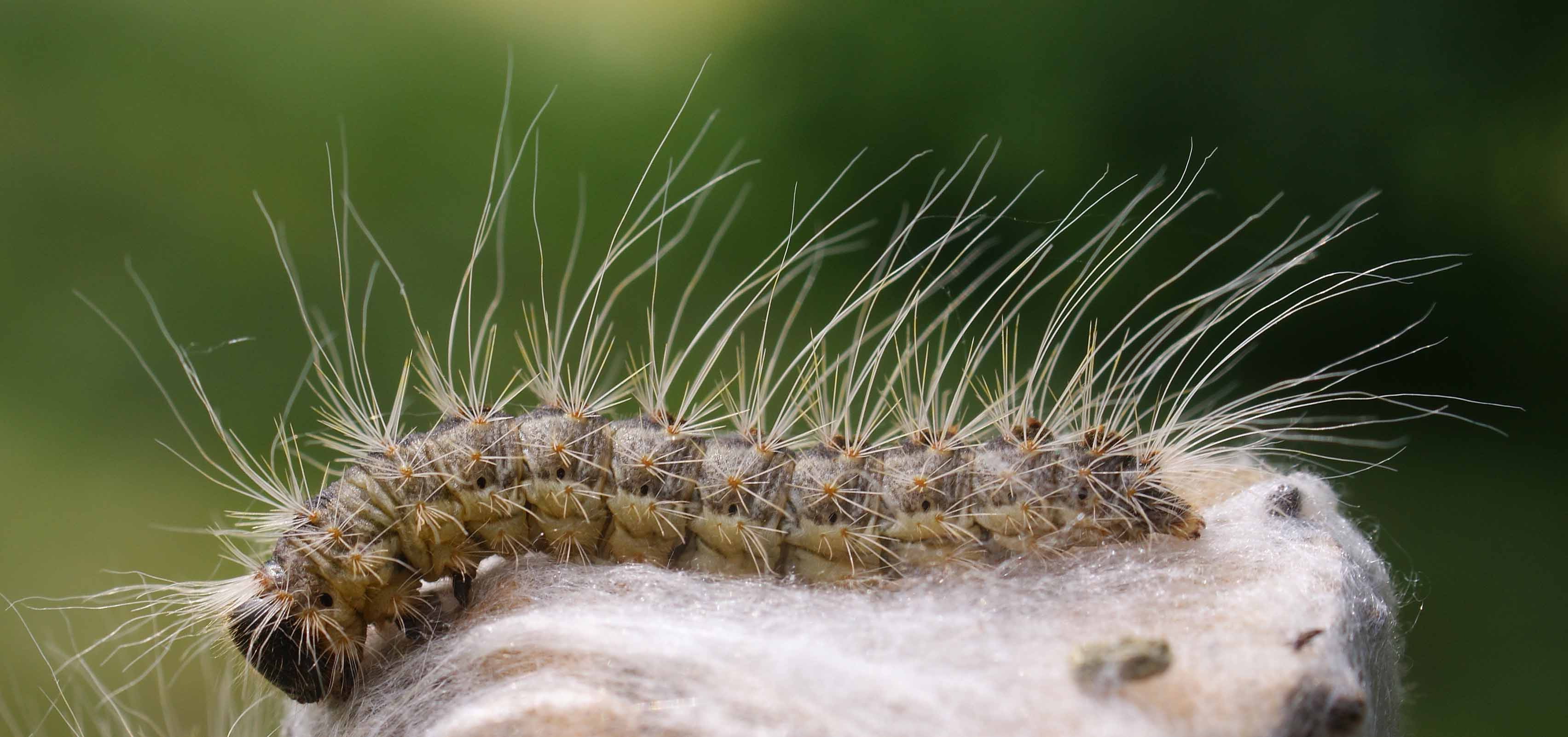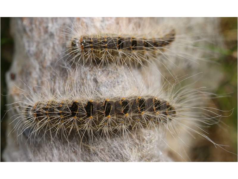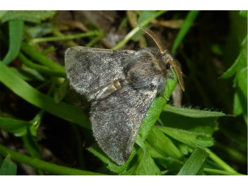 Ähnliche Art: Abgeflogene Tiere sind anhand oben genannter Merkmale nicht vom Kiefernprozessionsspinner (