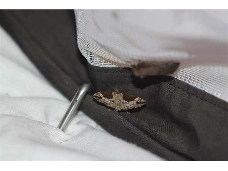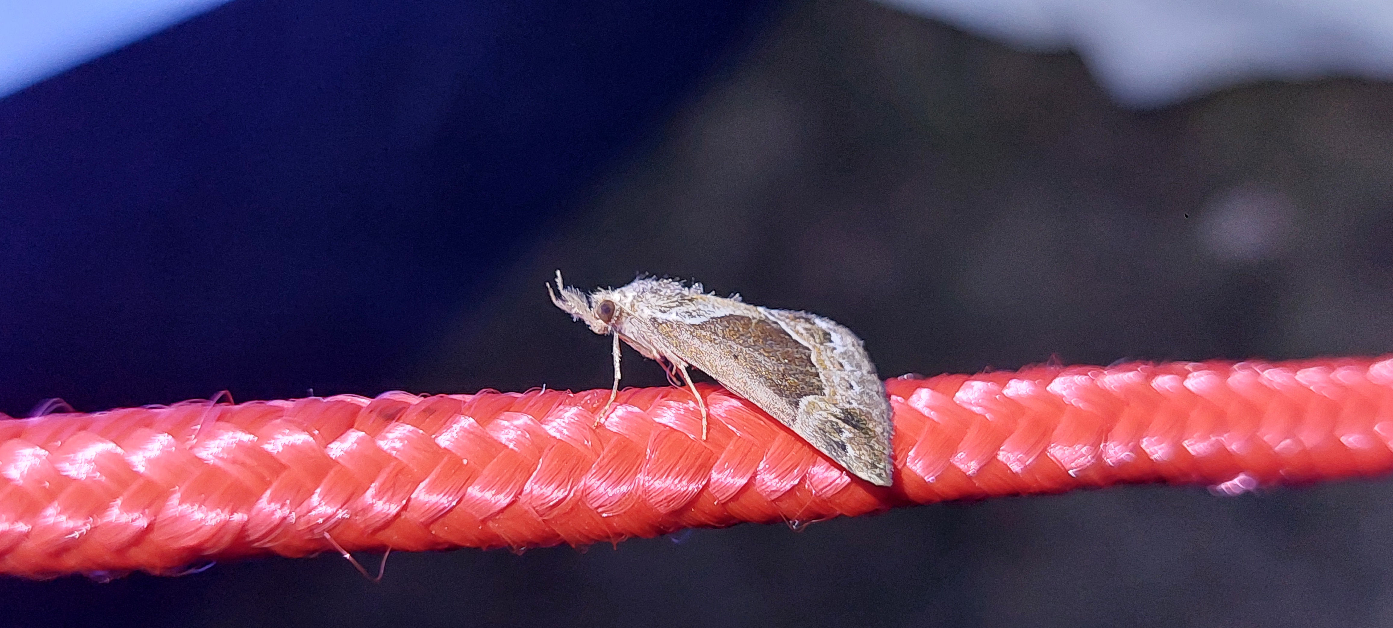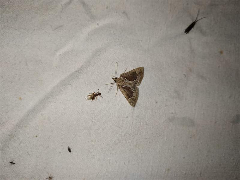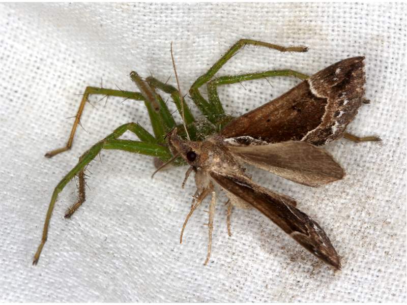 als Beute der Grünen Huschspinne (Micrommata virescens, Clerck, 1757), am Licht - Königsbrück-Ruhlander Heiden, südwestlich Ochsenberg bei Kamenz (ehem. Ziegelei), 22. Juni 2022