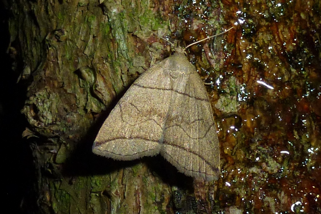 Bogenlinien-Spannereule in Hoyerswerda, Klein Neida, Mitte August 2017, am Köder