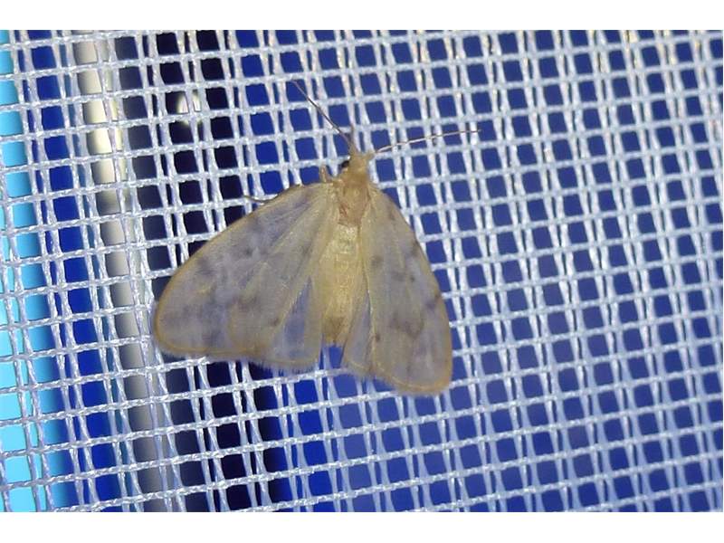 Blaßer Flechtenbär (Nudaria mundana) am 4. Juli 2015 im Zittauer Gebirge am Hochwald, Nachts am Licht