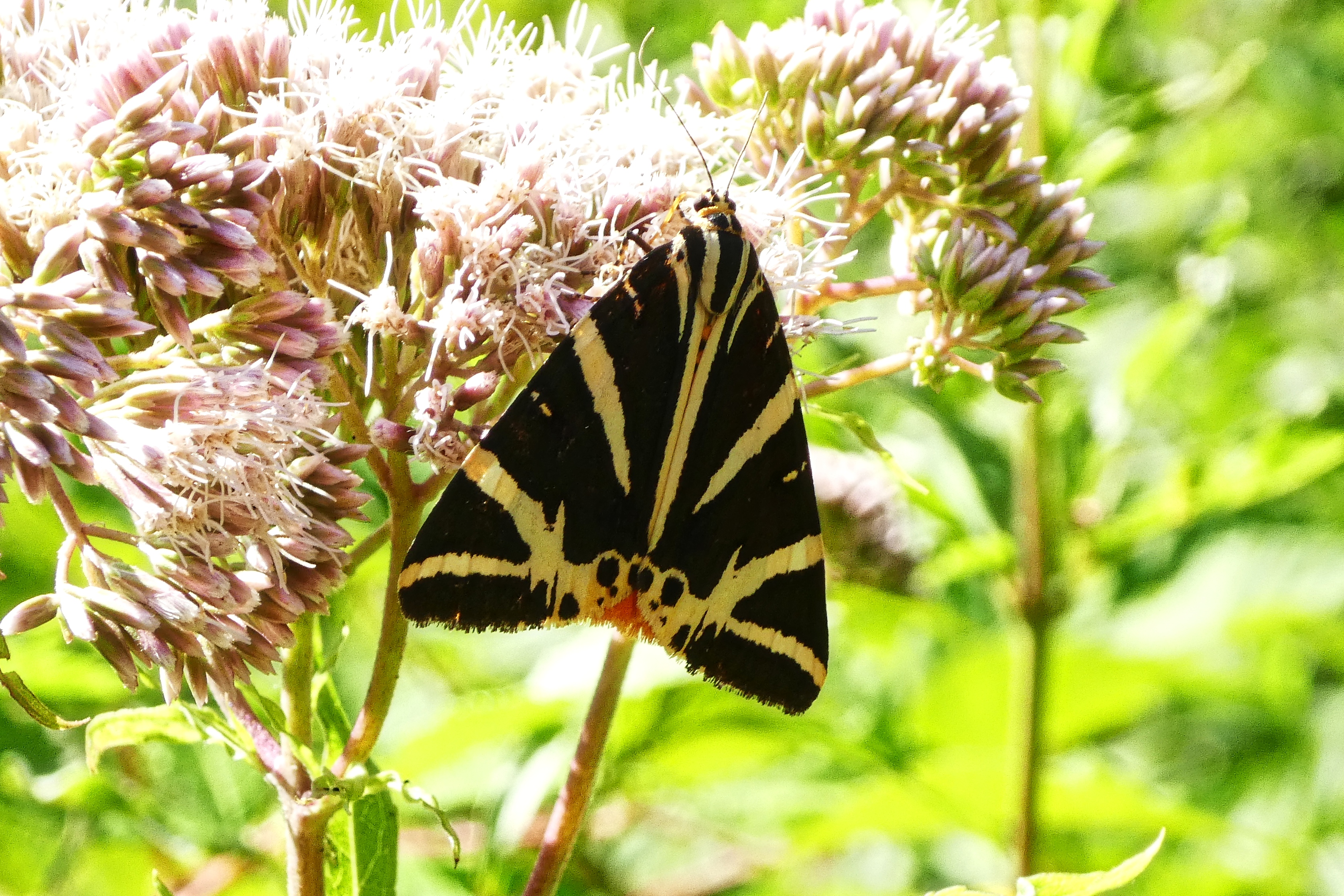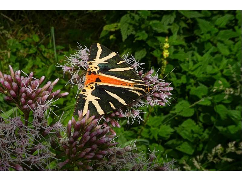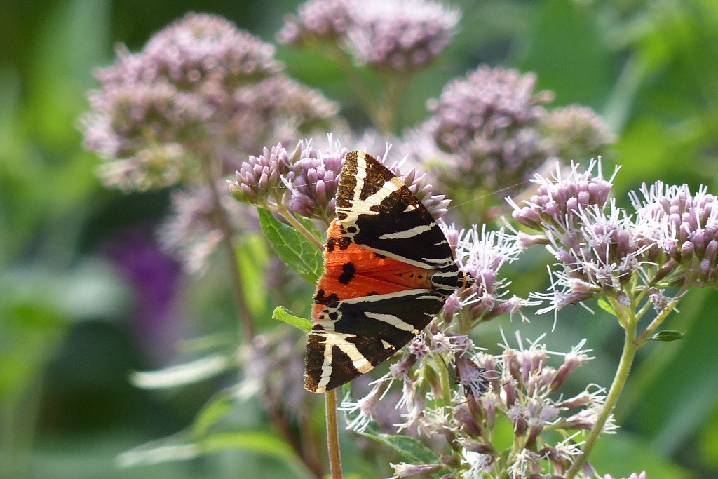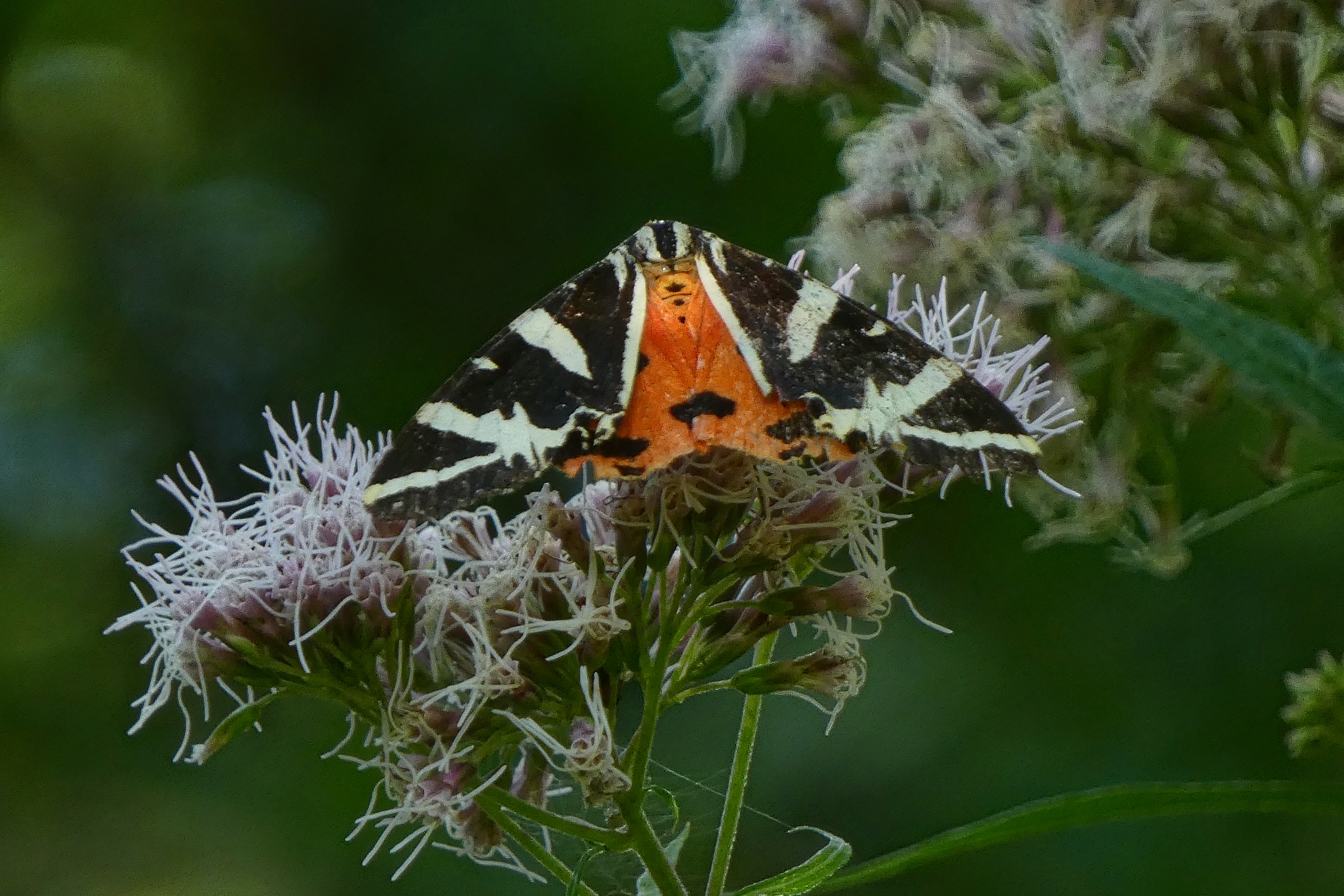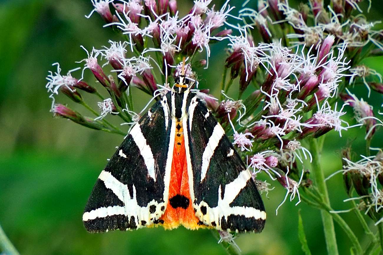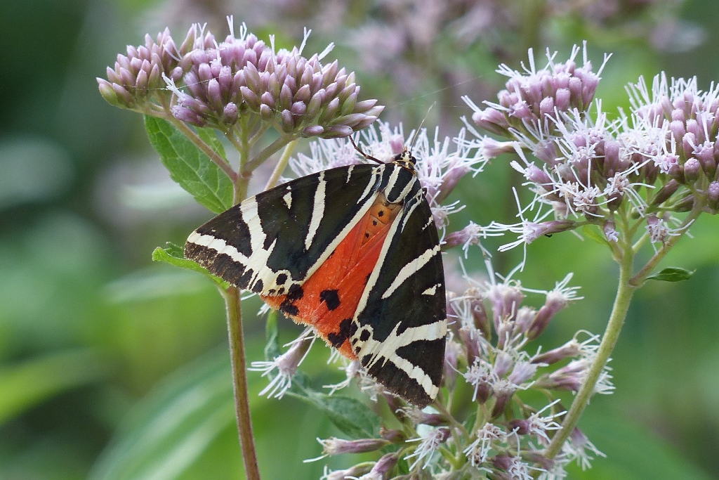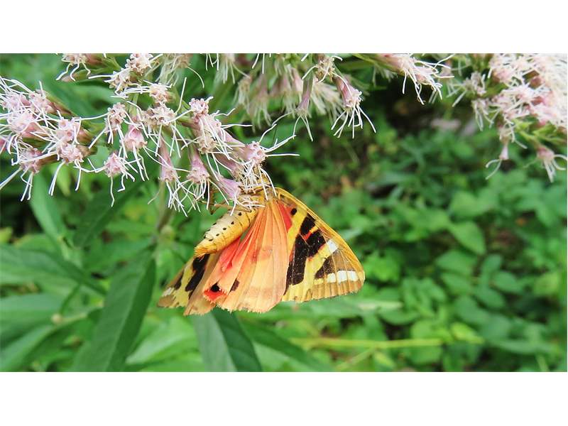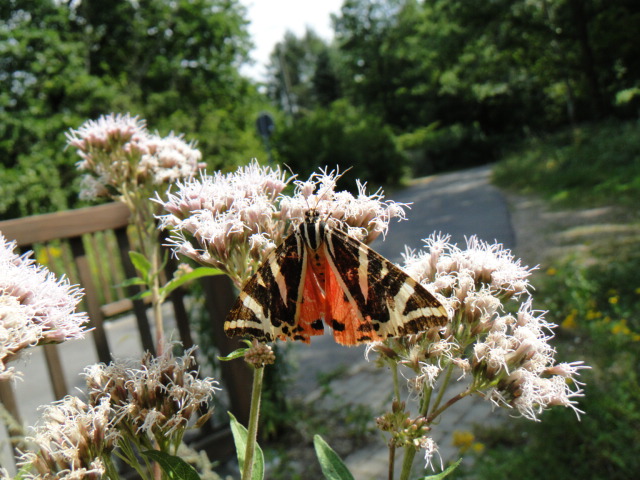 Spanische Flagge (Euplagia quadripunctaria (Poda, 1761)),Freital/Hainsberg,Rabenauer Grund,vor 1.Eisenbahnbrücke,Wegrand auf Wasserdost