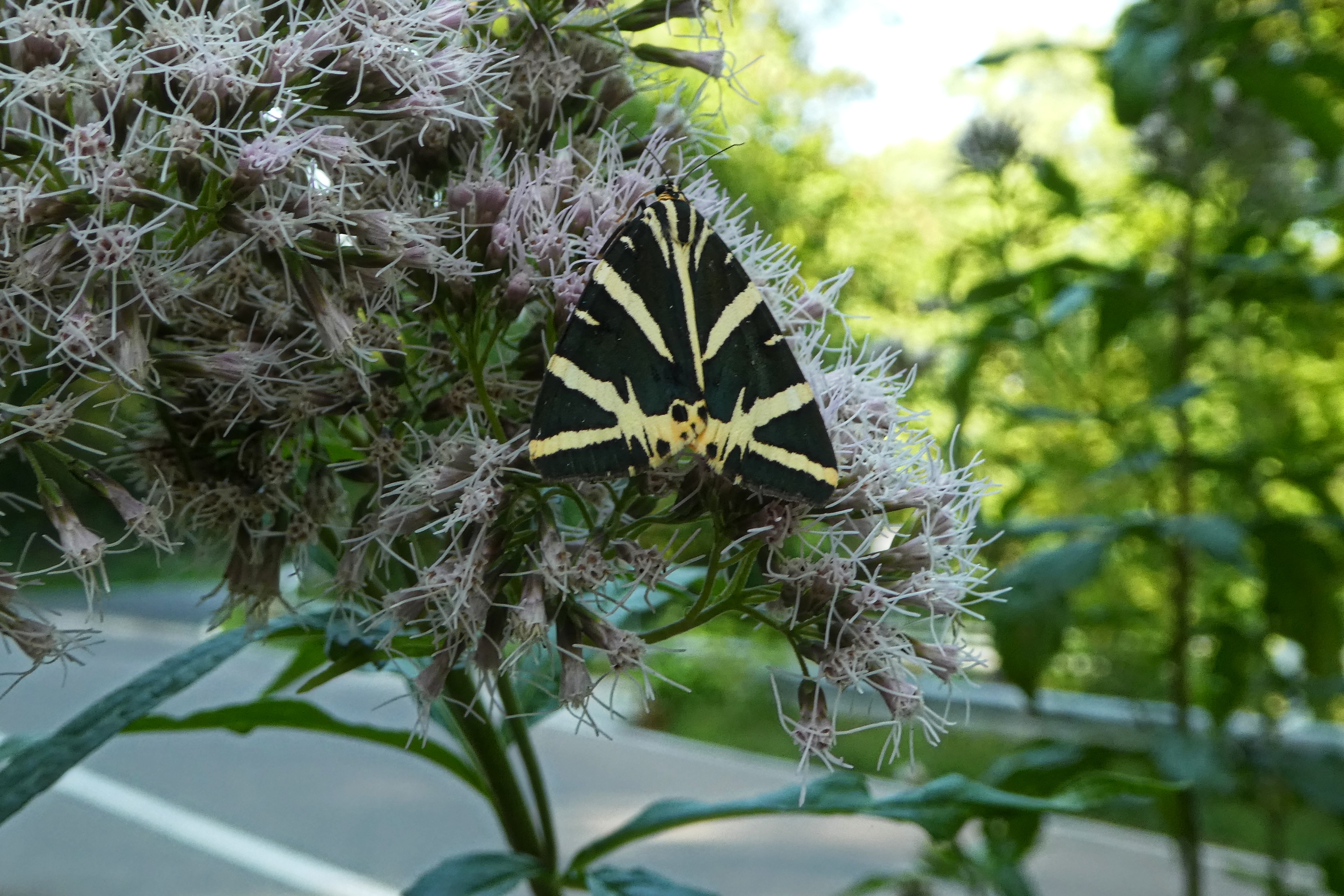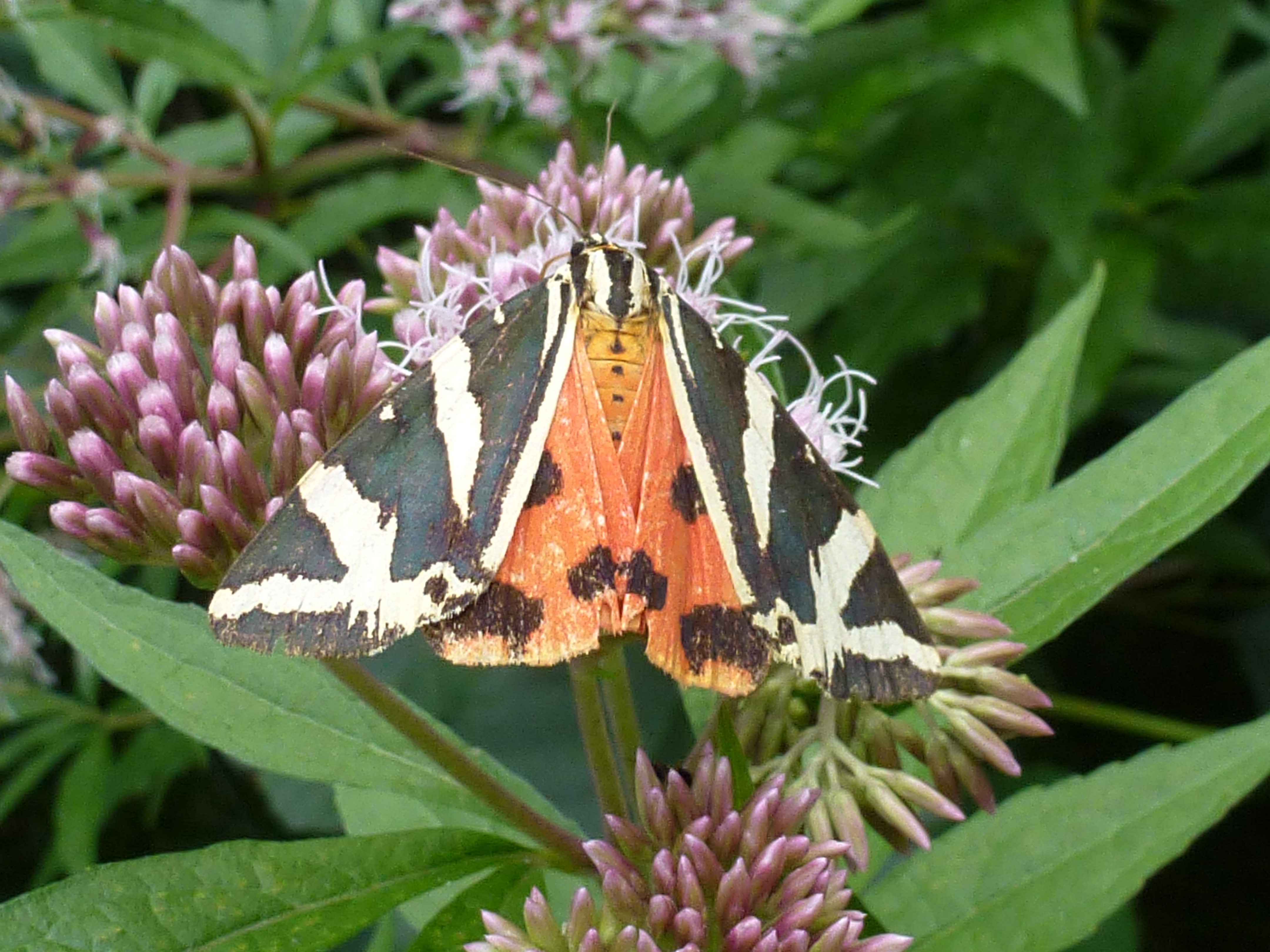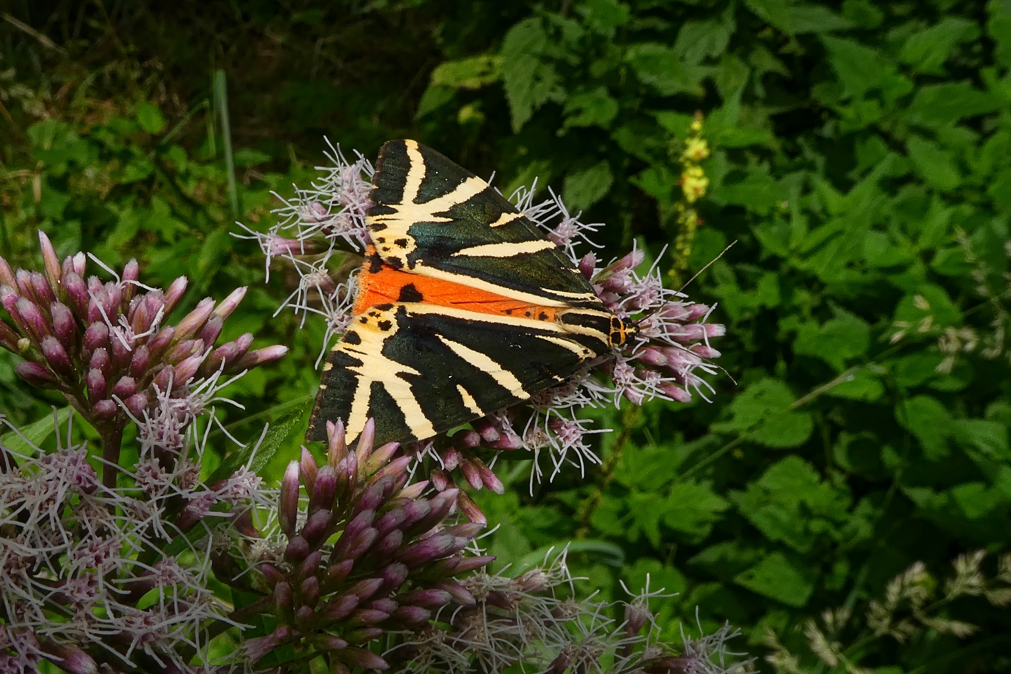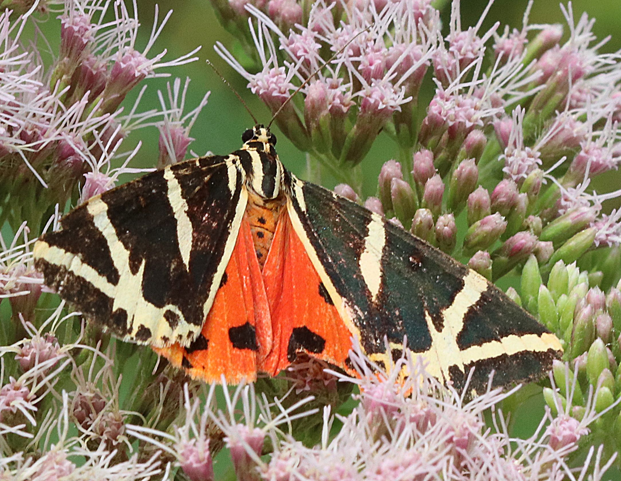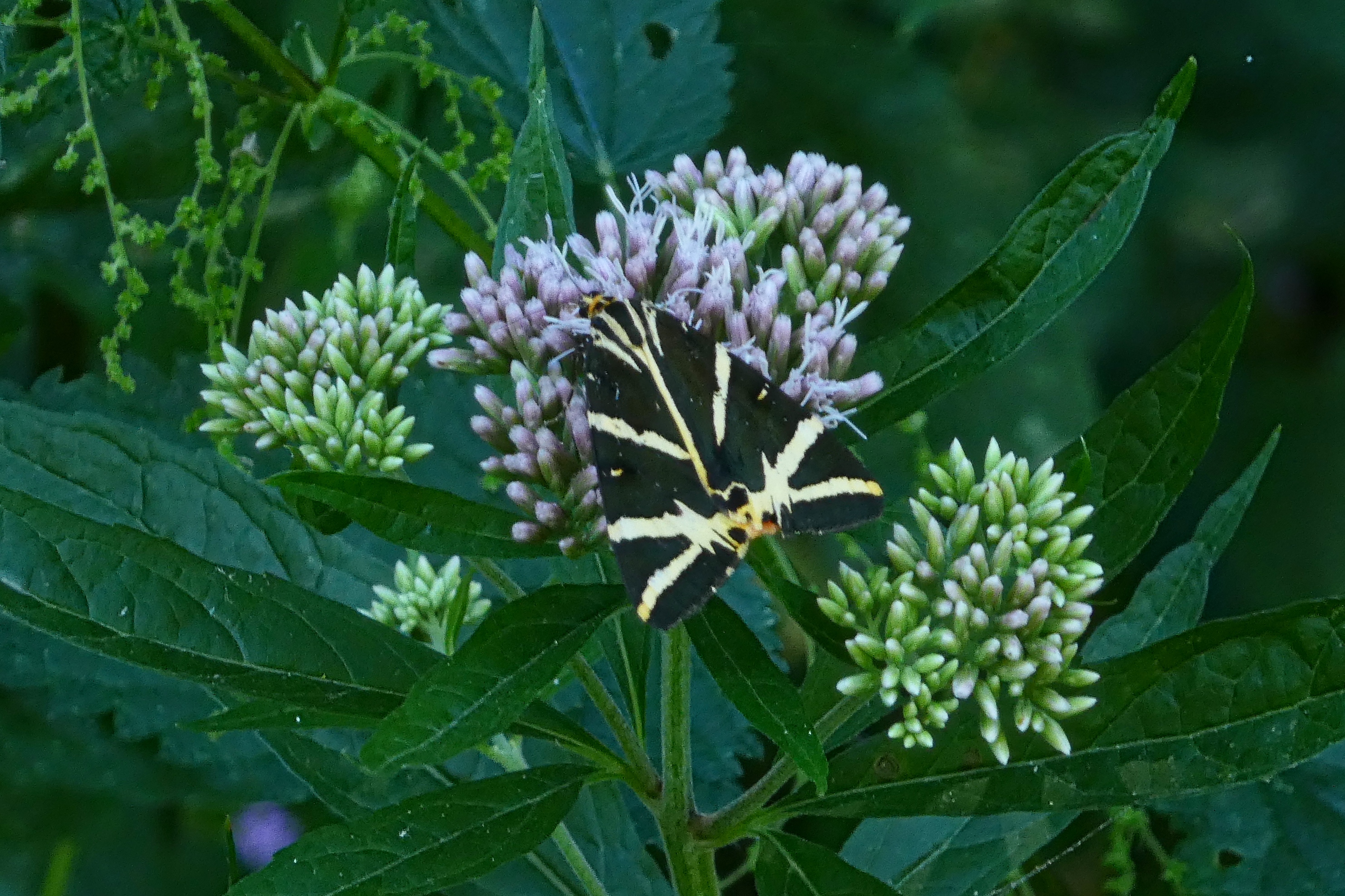 Spanische Flagge (Euplagia quadripunctaria (Poda, 1761)),Freital/Hainsberg,Rabenauer Grund,vor 1.Eisenbahnbrücke,Wegrand auf Wasserdost