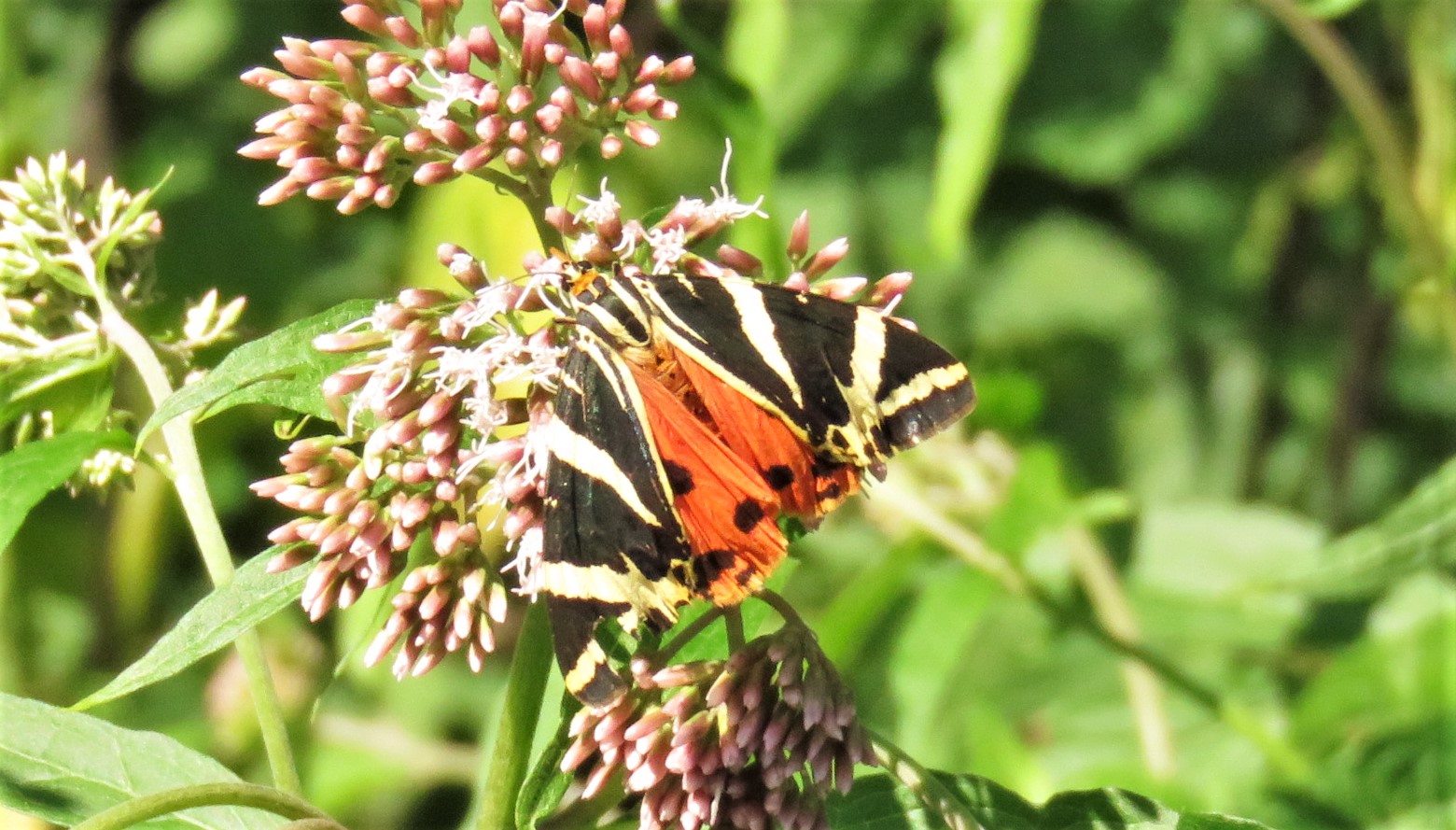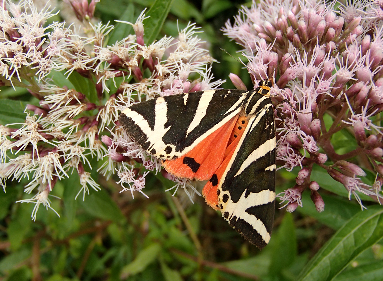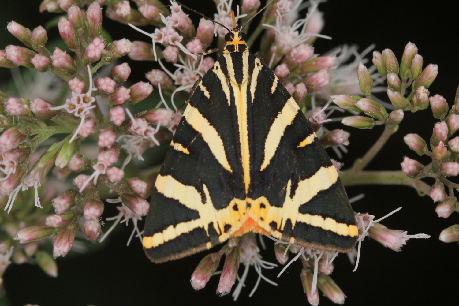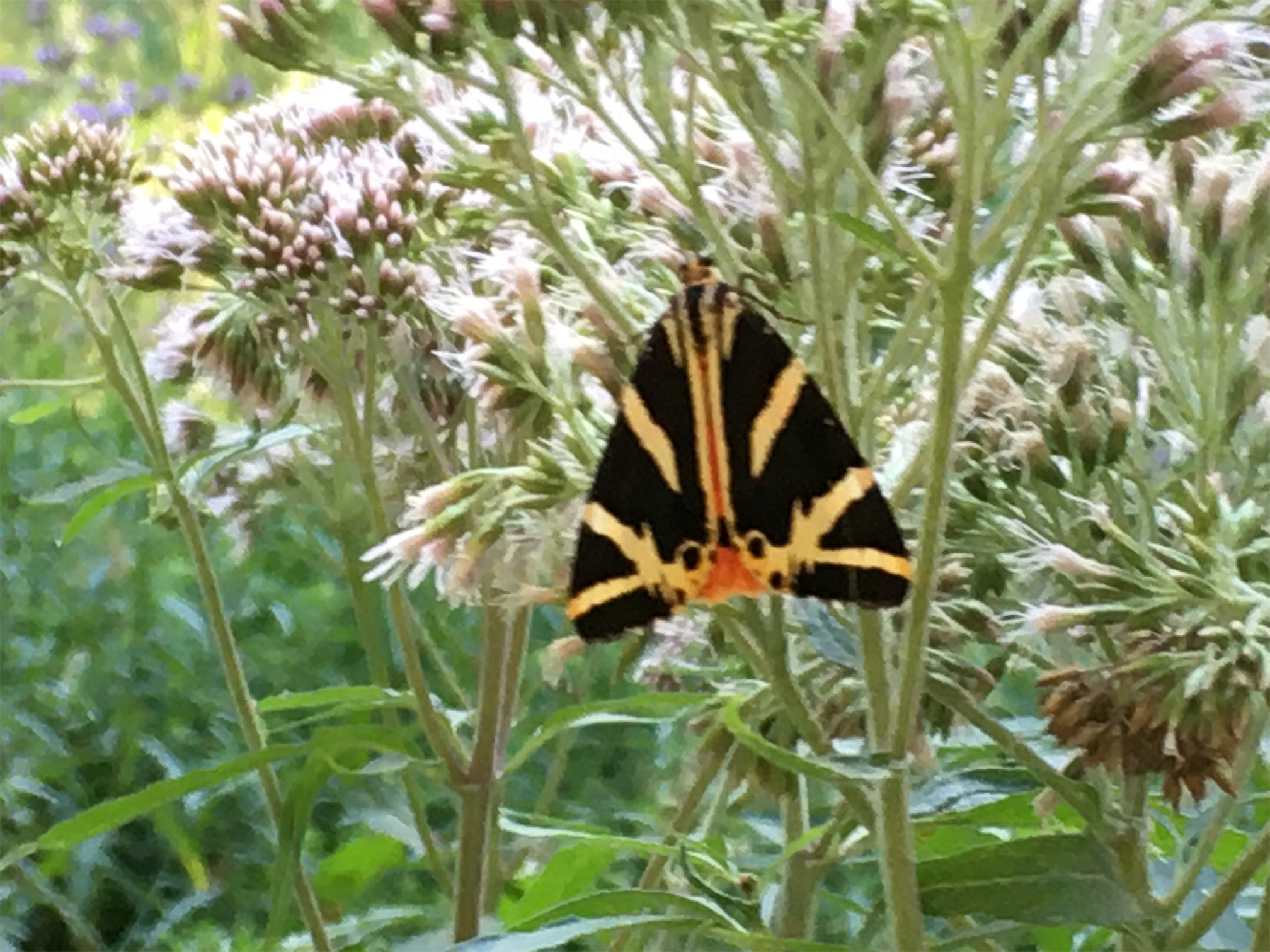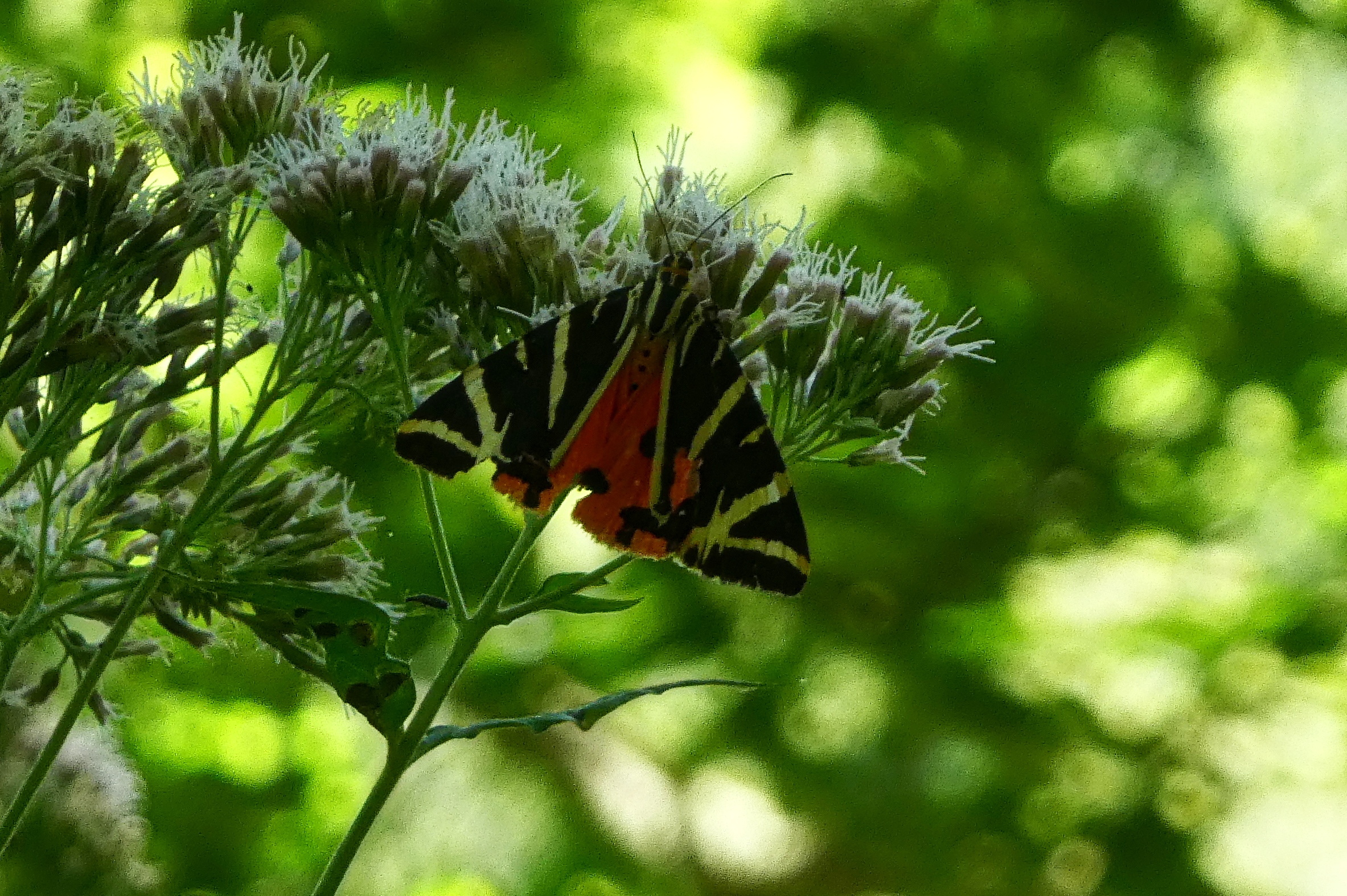 Spanische Flagge (Euplagia quadripunctaria (Poda, 1761)),Freital/Hainsberg,Rabenauer Grund,vor 1.Eisenbahnbrücke,Wegrand auf Wasserdost