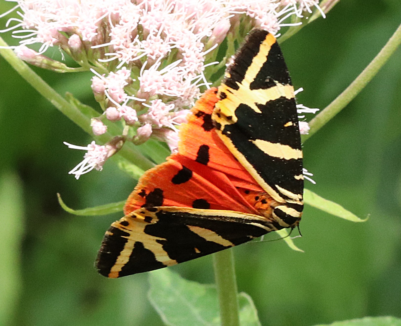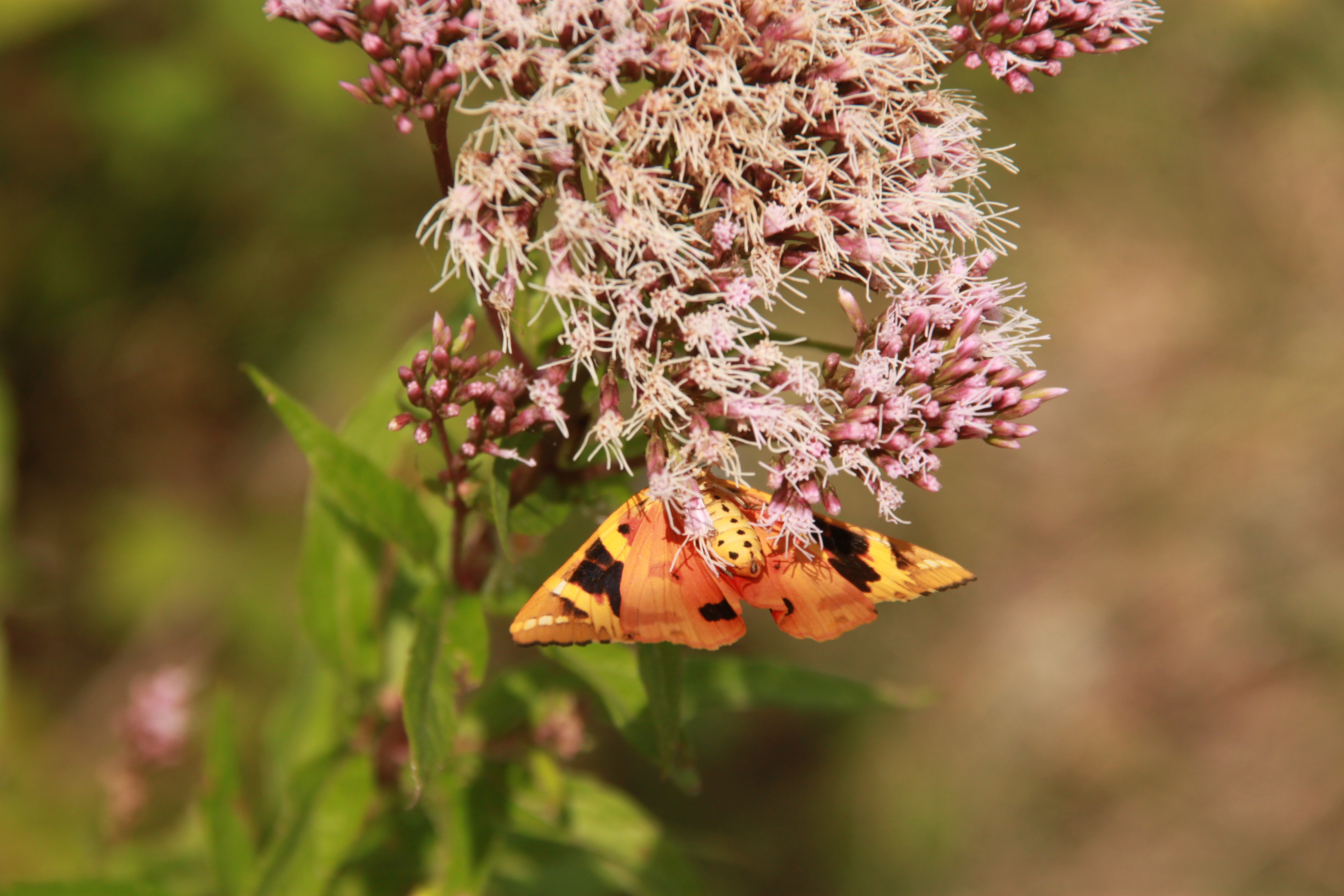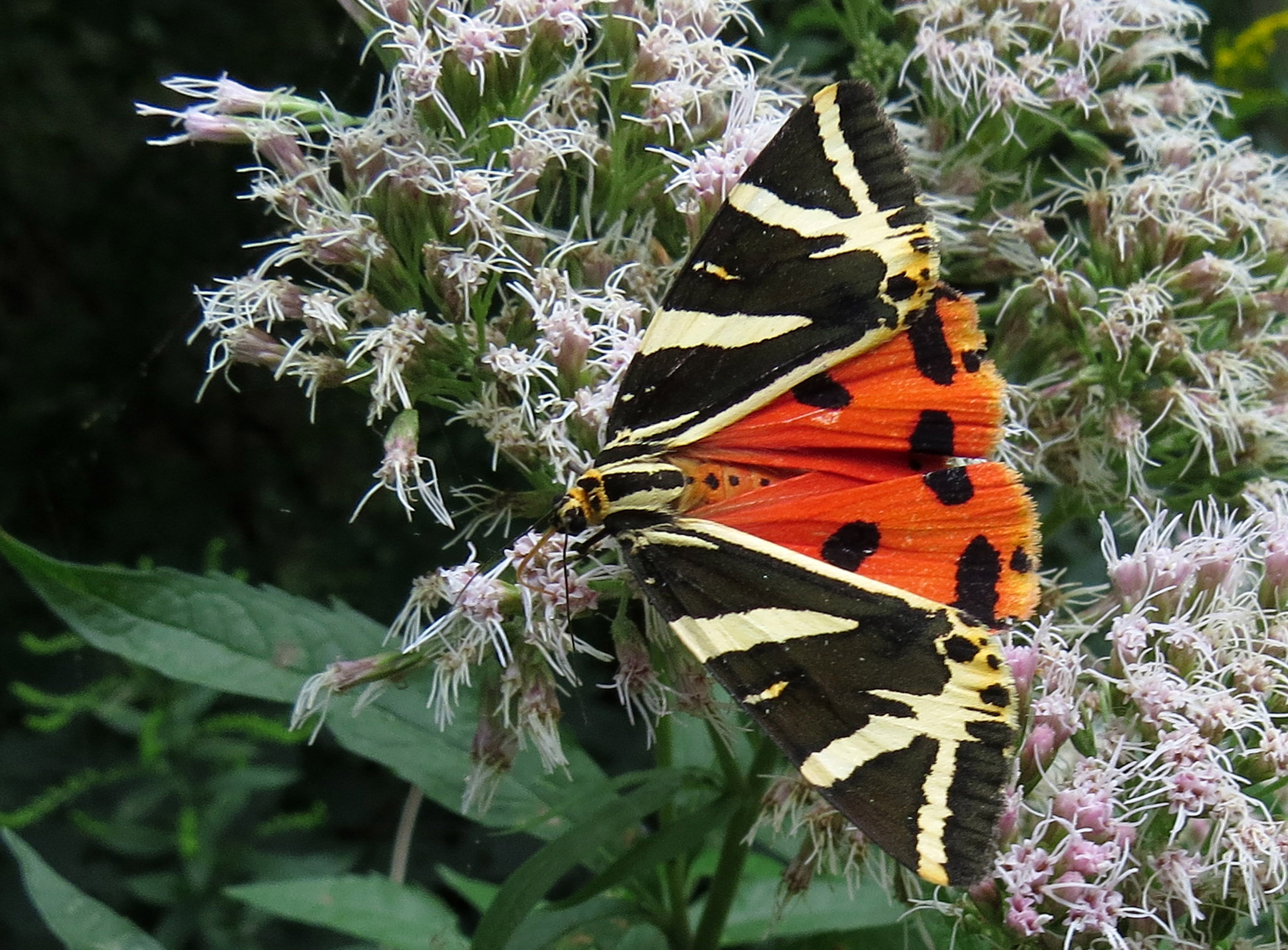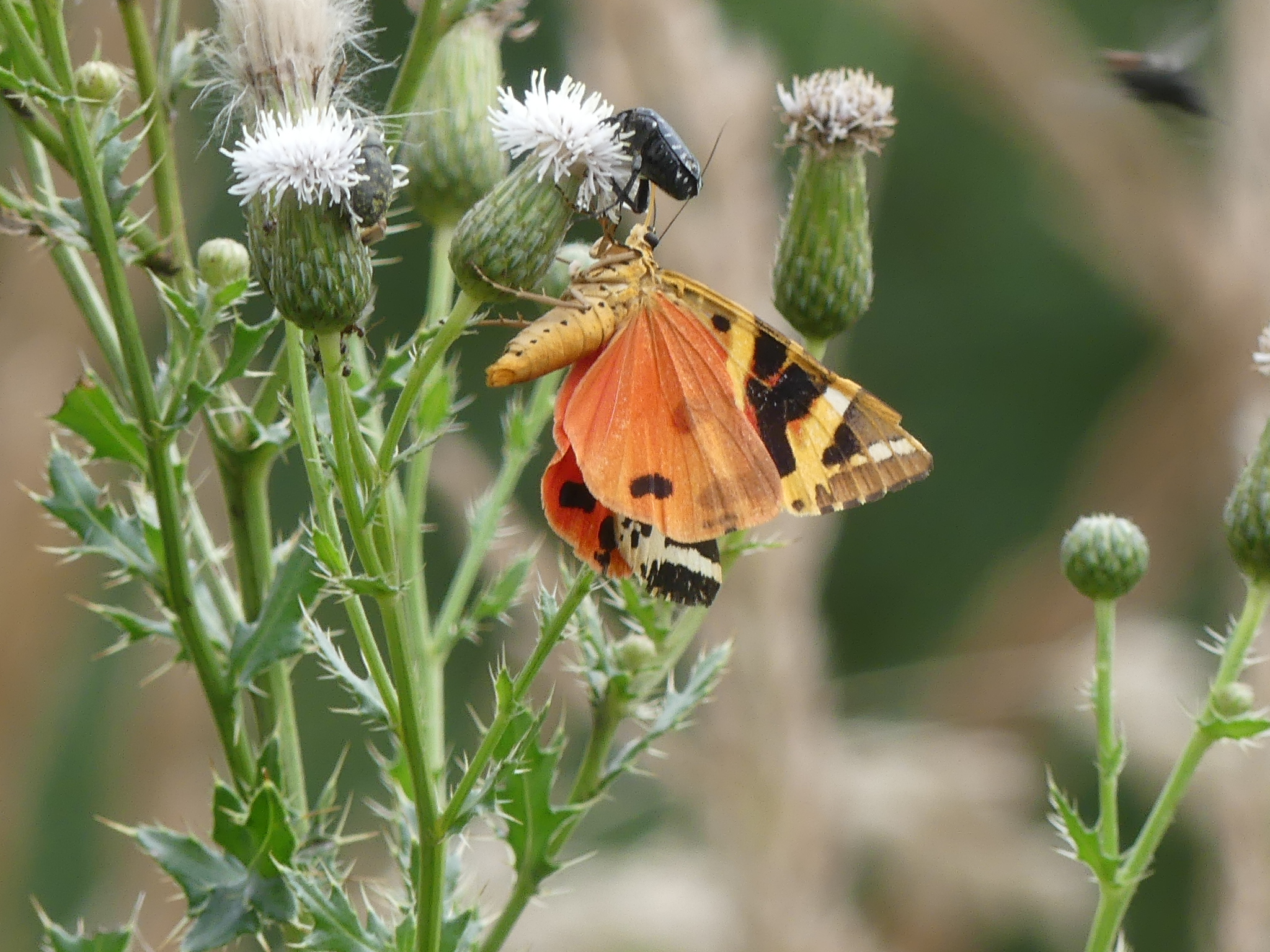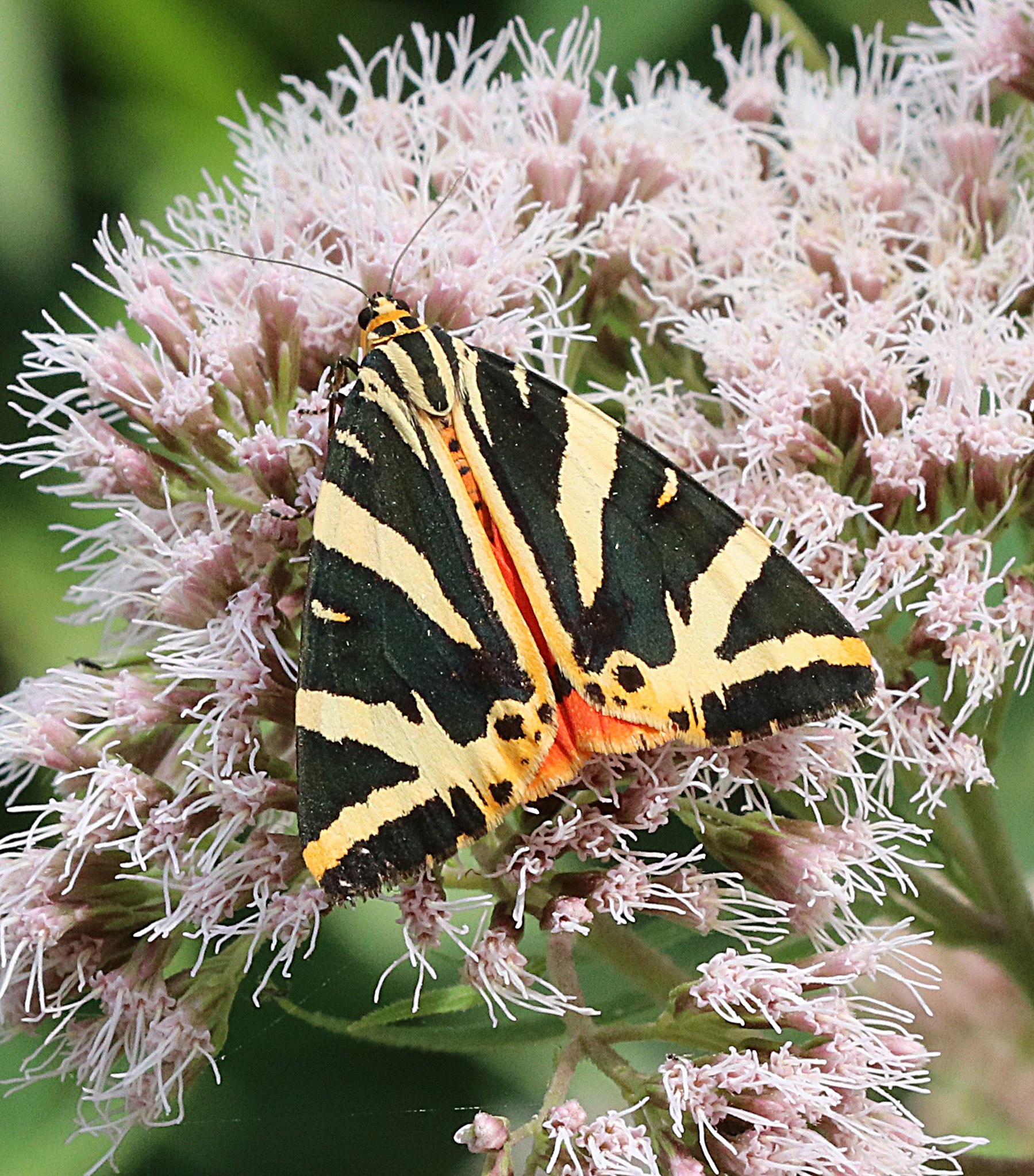 Spanische Flagge (Euplagia quadripunctaria (Poda, 1761)),Freital/Hainsberg,Rabenauer Grund,vor 1.Eisenbahnbrücke,Wegrand auf Wasserdost