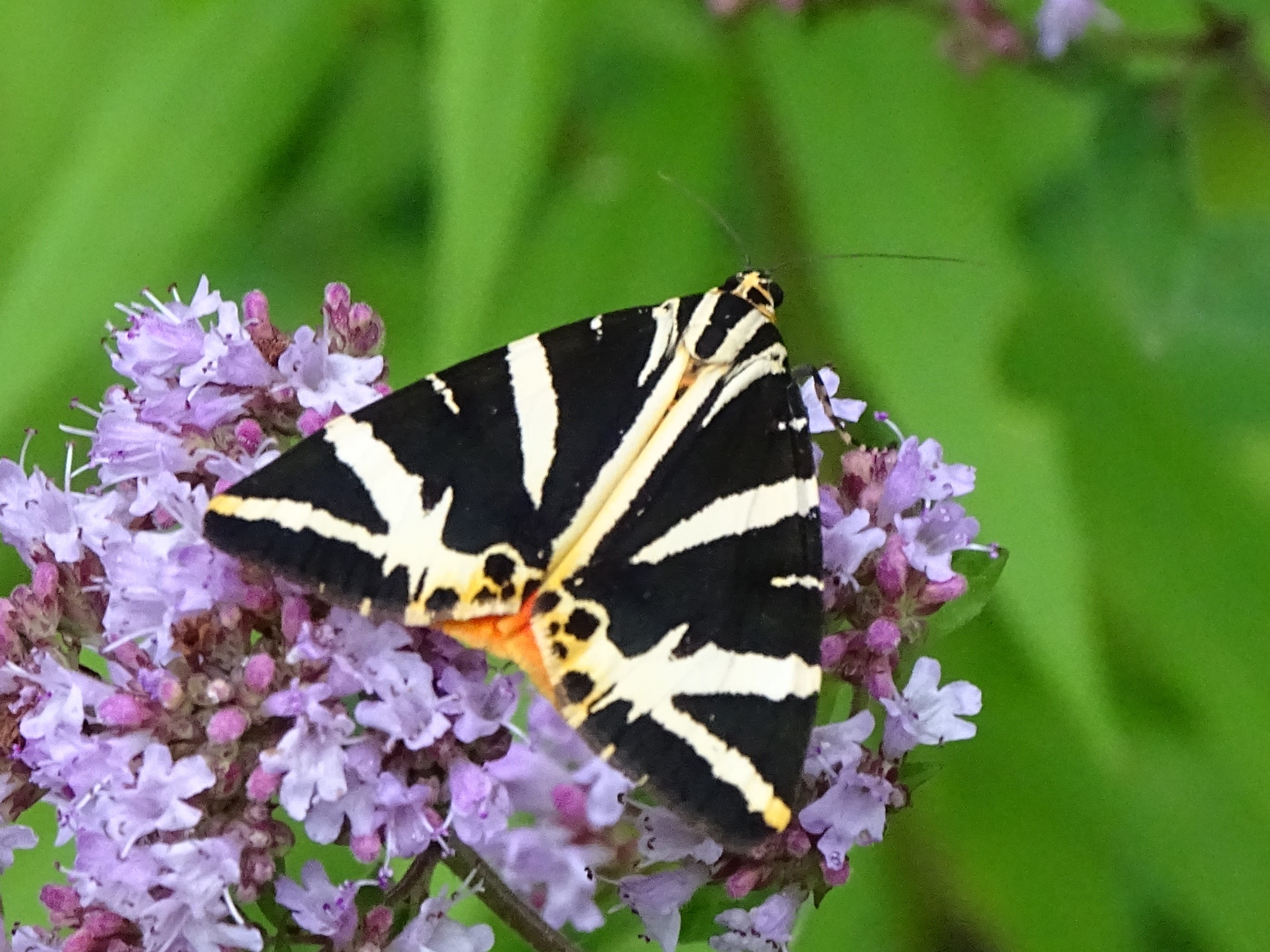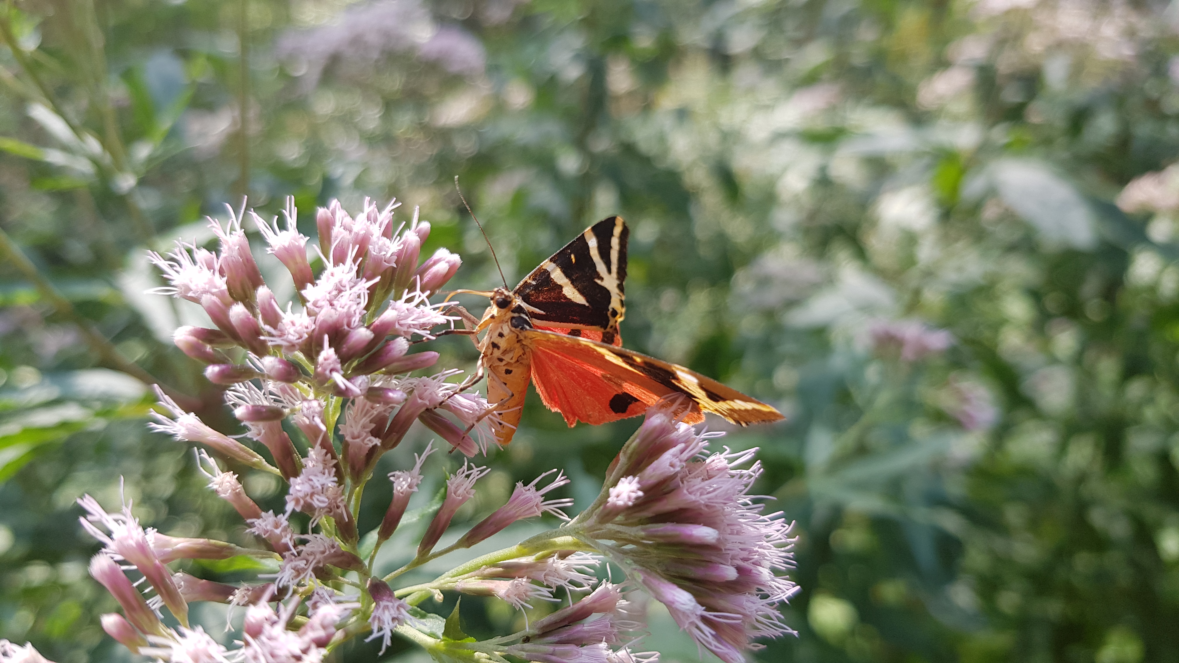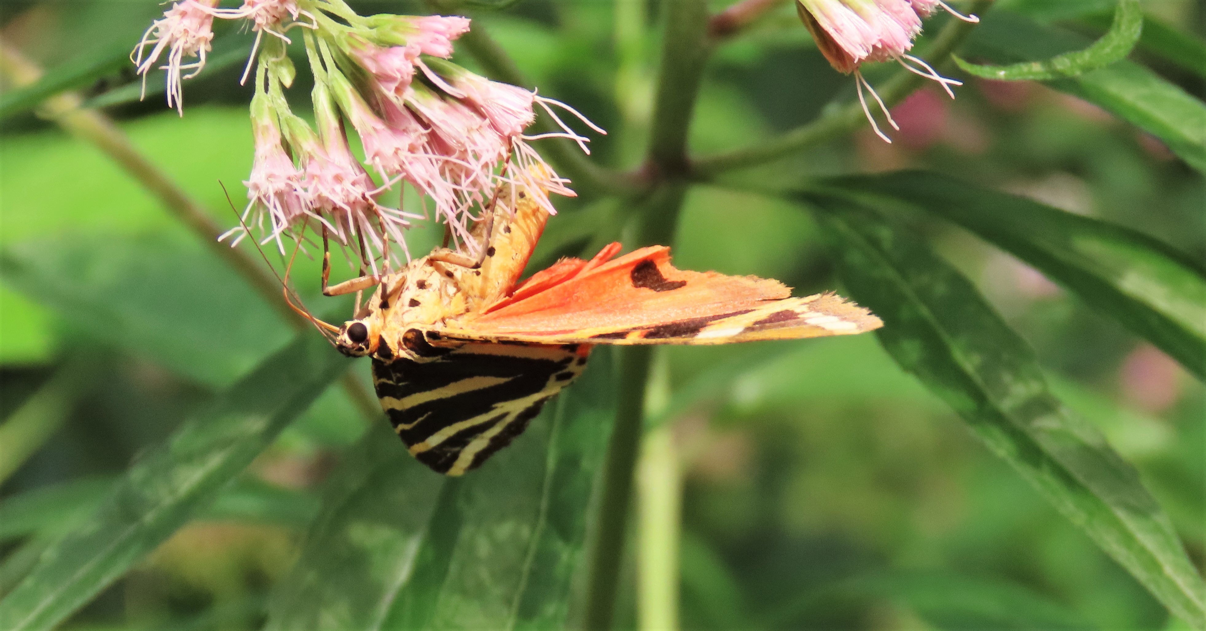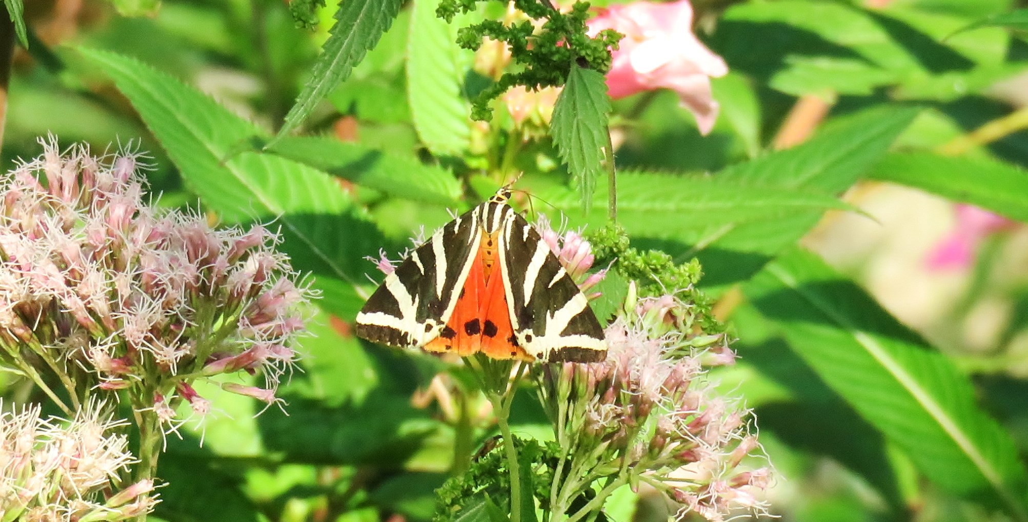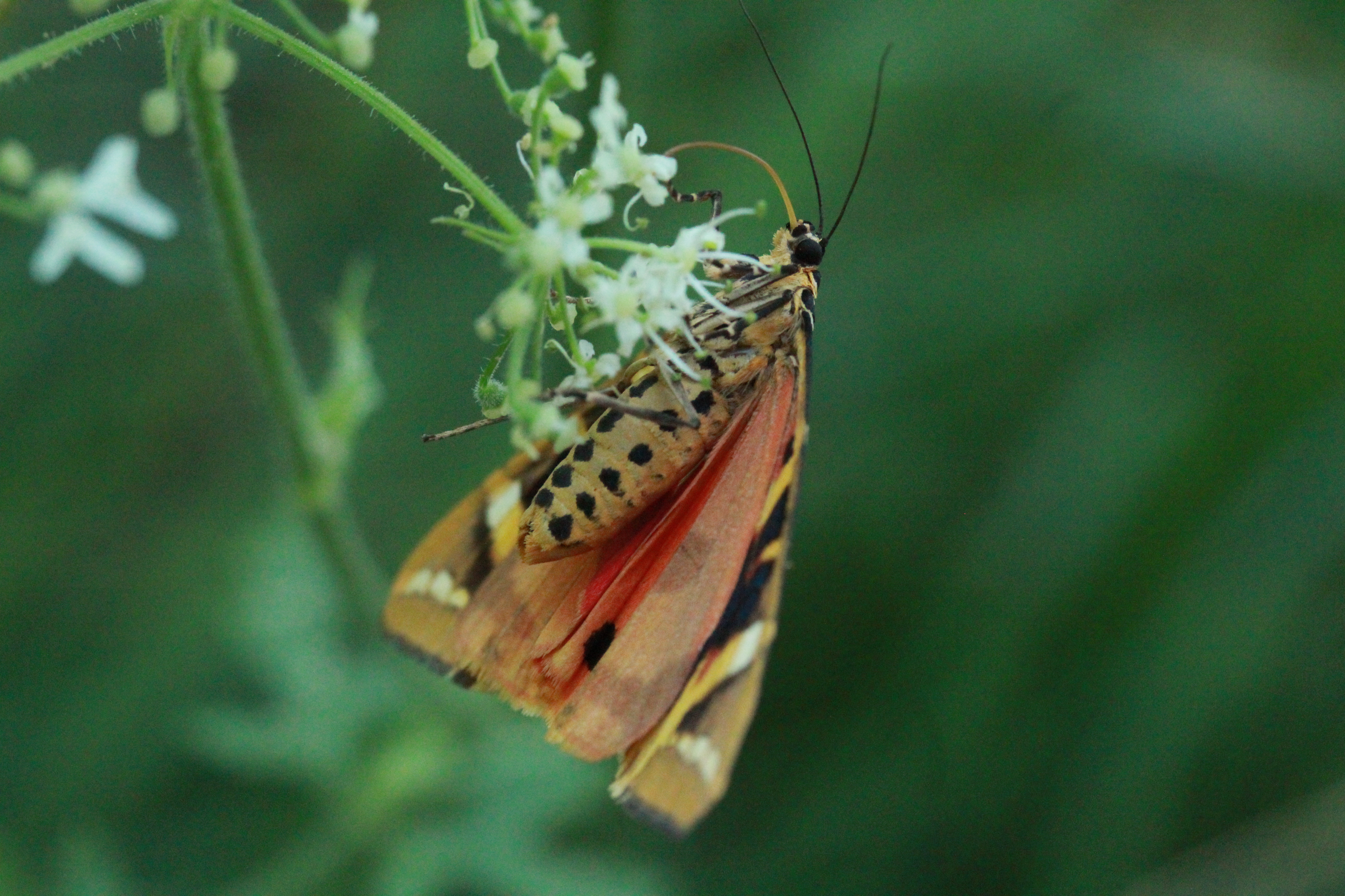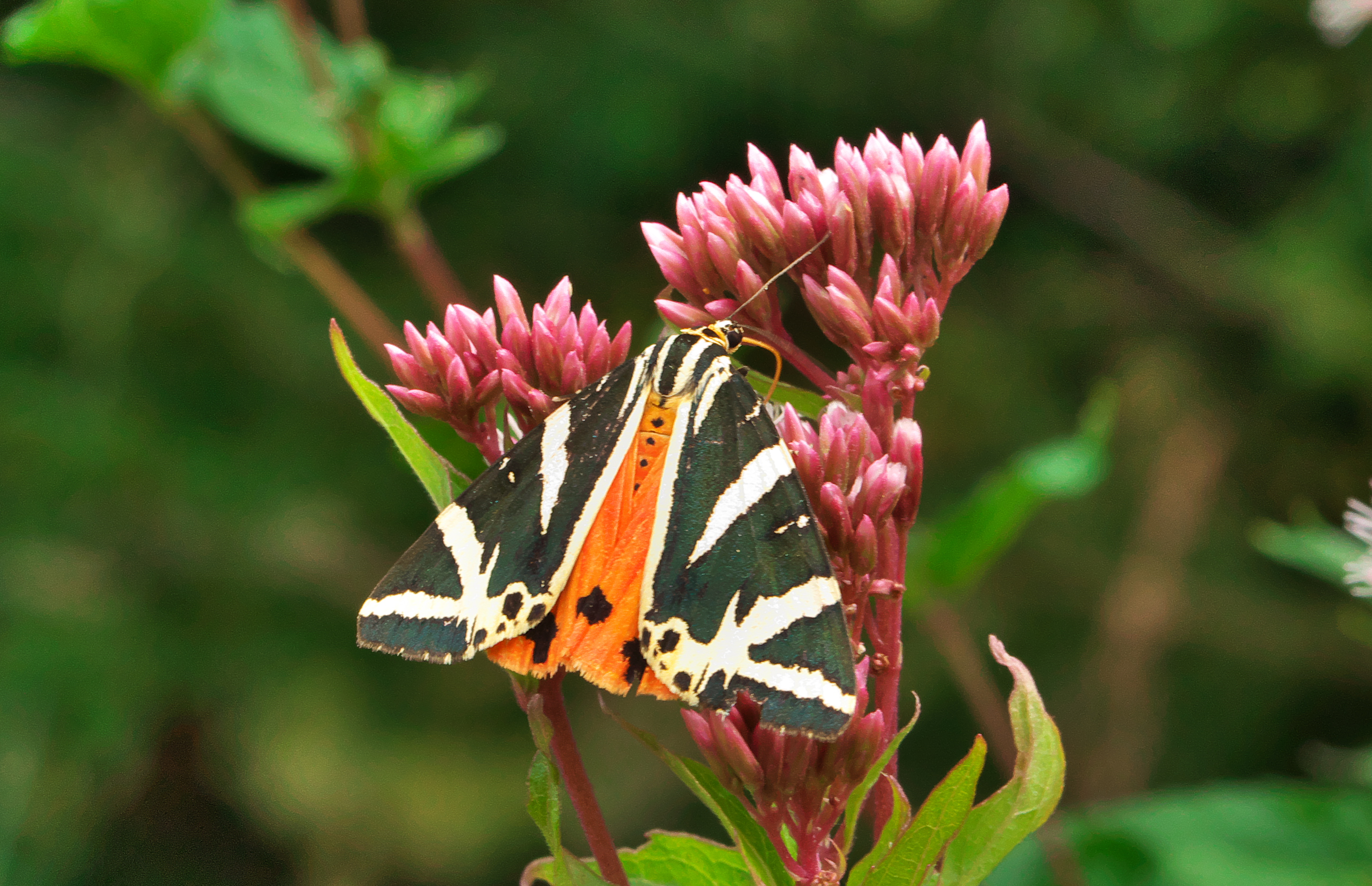 Spanische Flagge (Euplagia quadripunctaria (Poda, 1761)),Freital/Hainsberg,Rabenauer Grund,vor 1.Eisenbahnbrücke,Wegrand auf Wasserdost