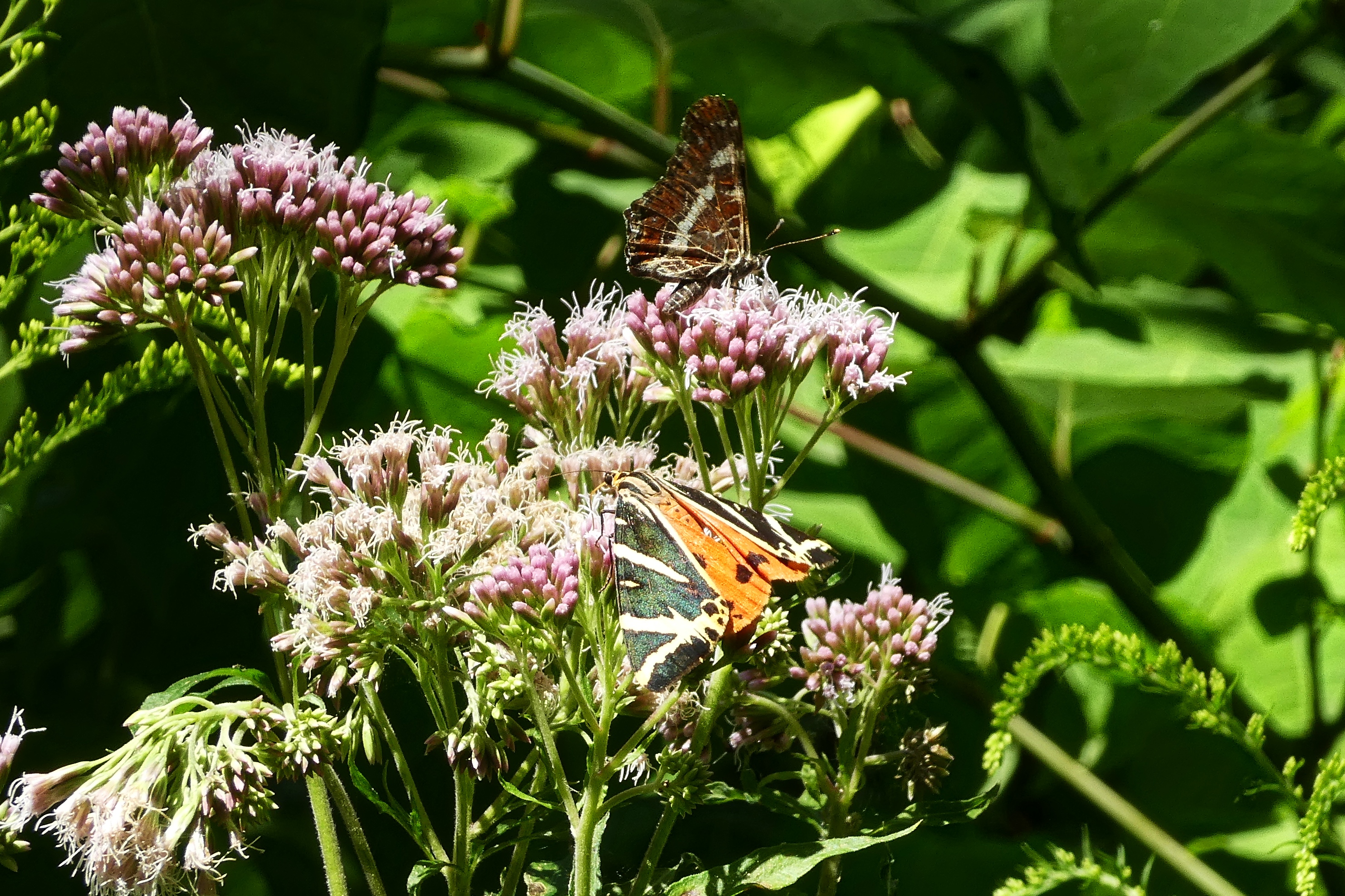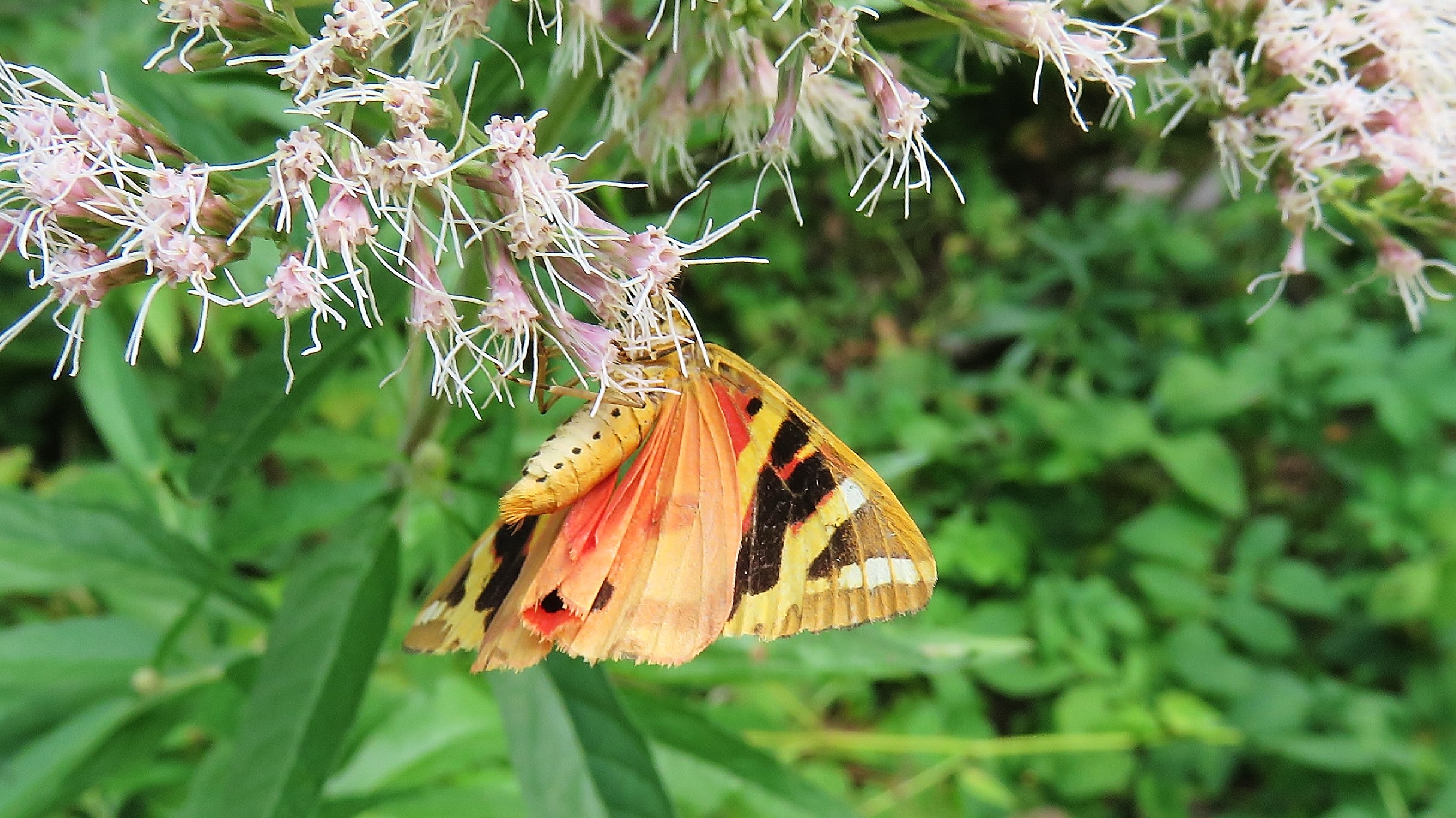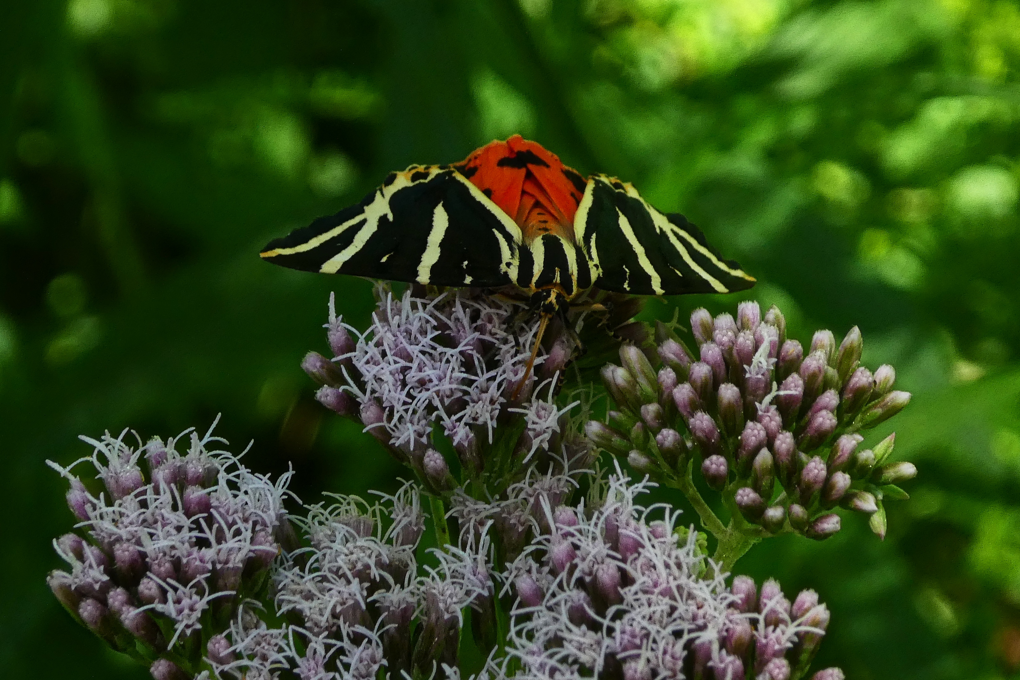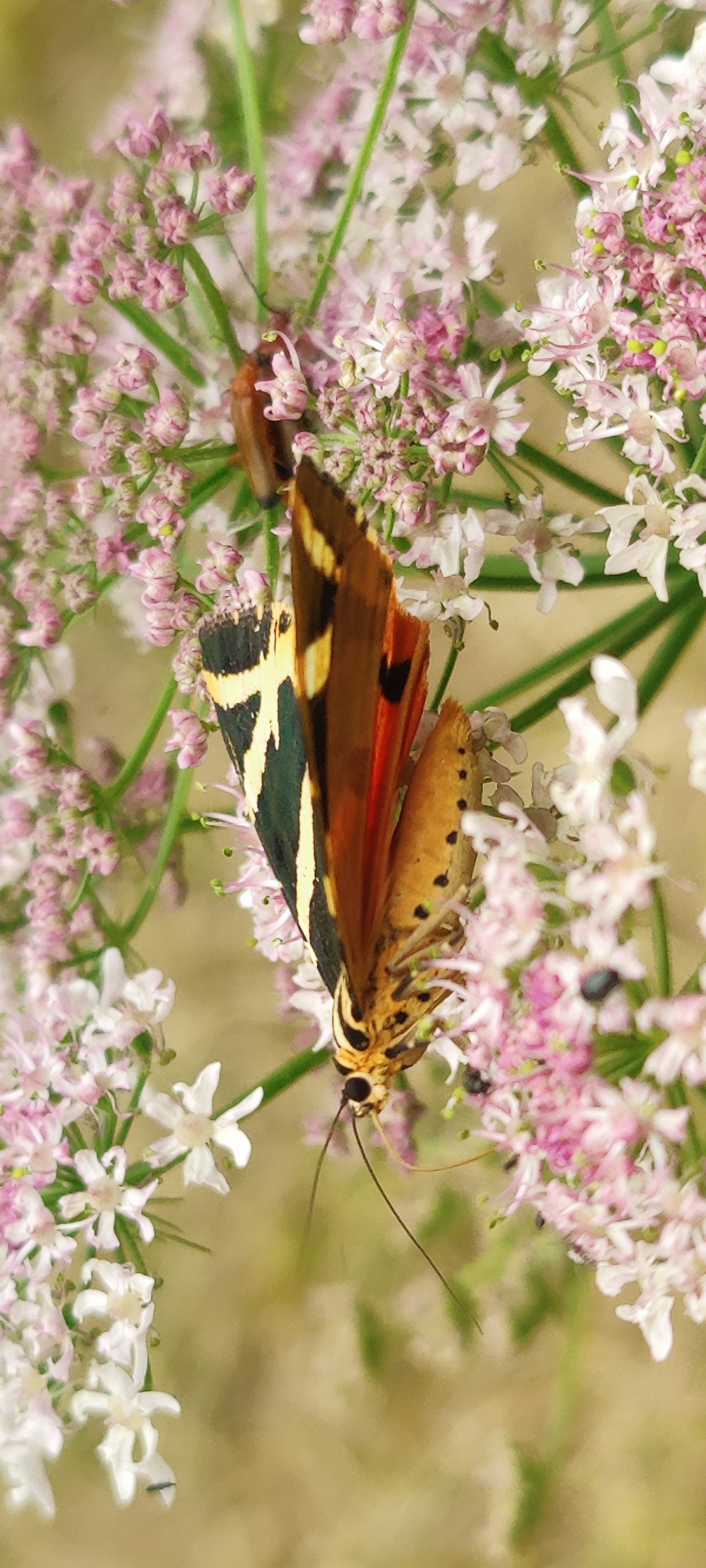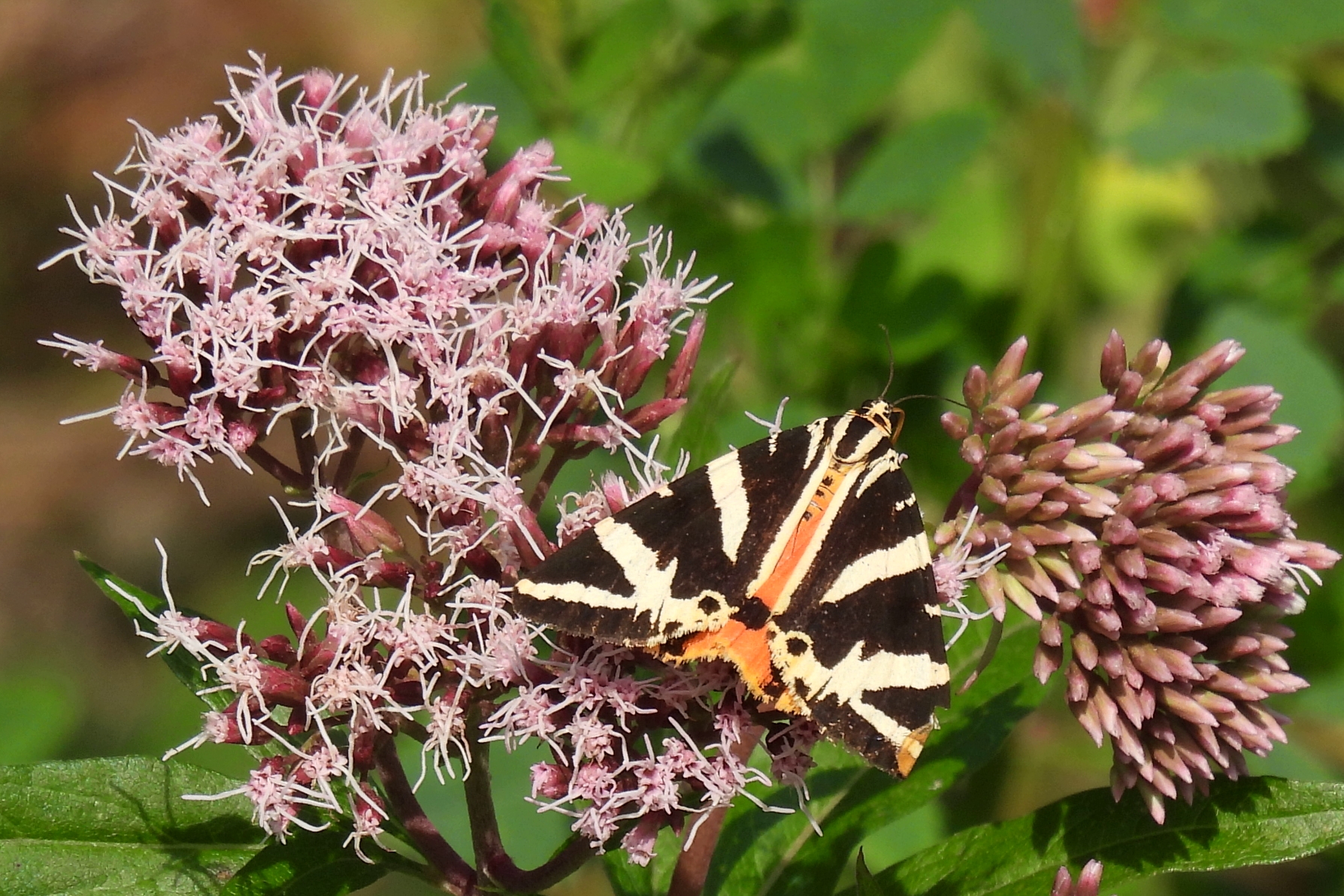 Spanische Flagge (Euplagia quadripunctaria (Poda, 1761)),Freital/Hainsberg,Rabenauer Grund,vor 1.Eisenbahnbrücke,Wegrand auf Wasserdost