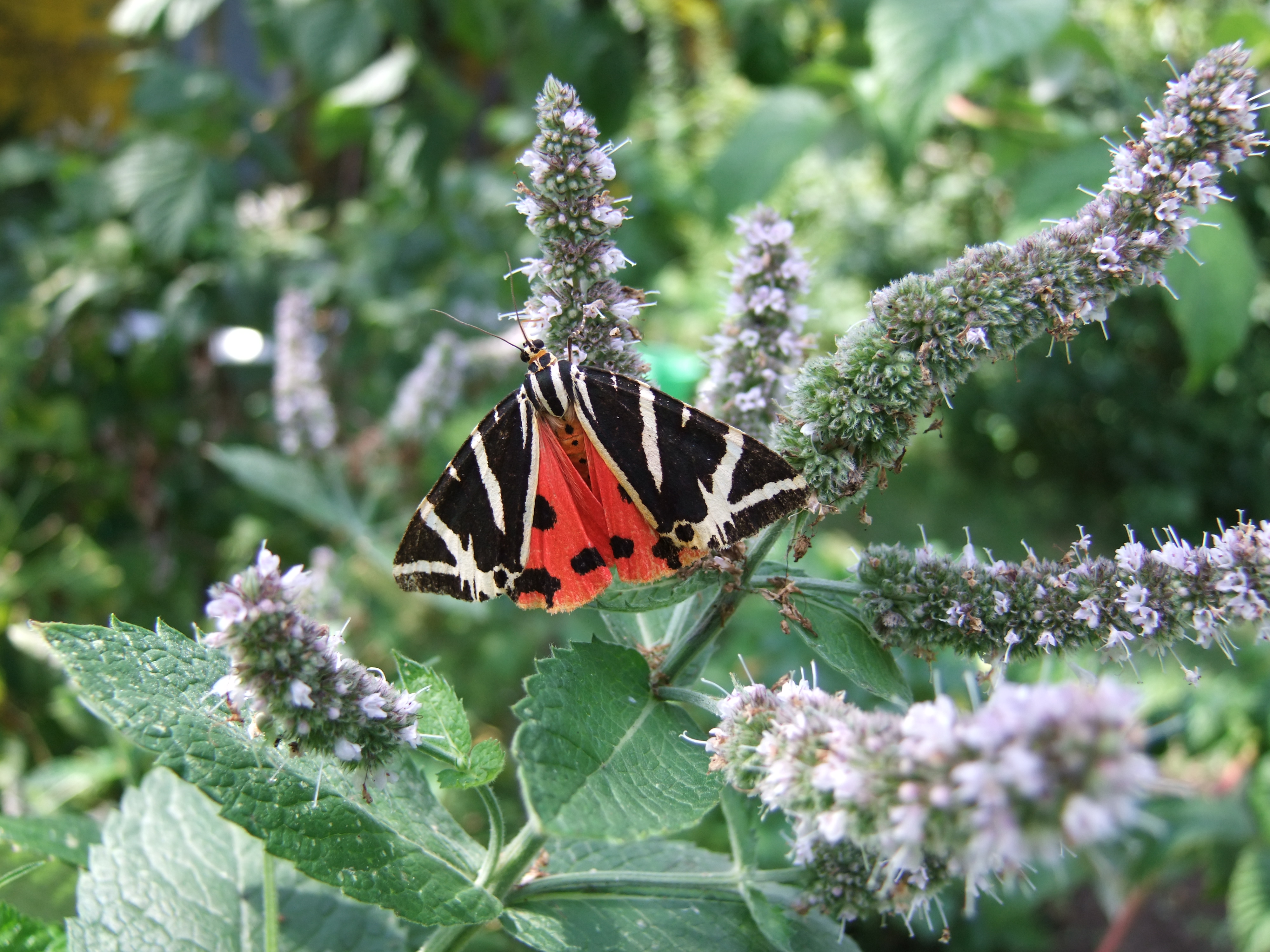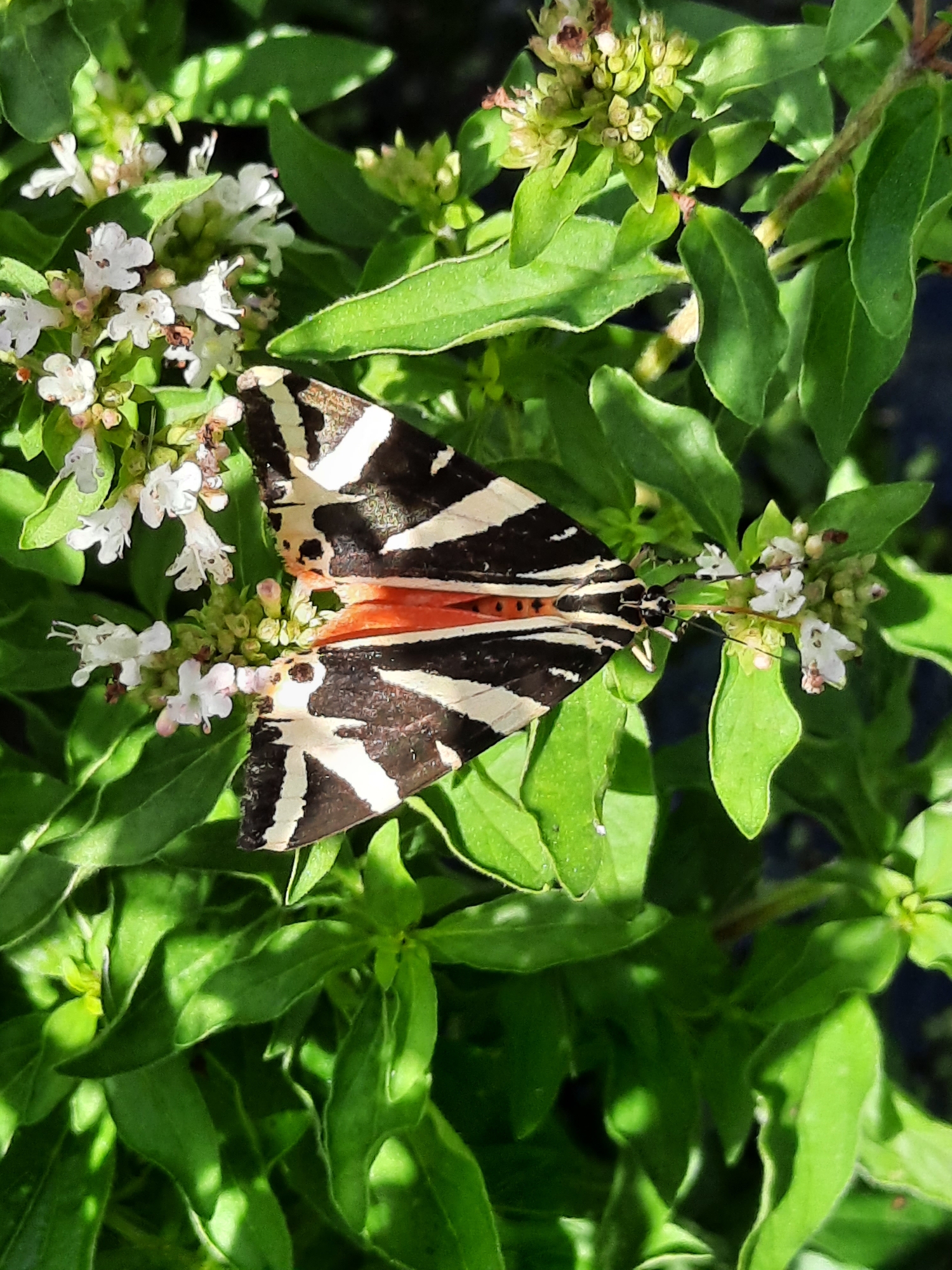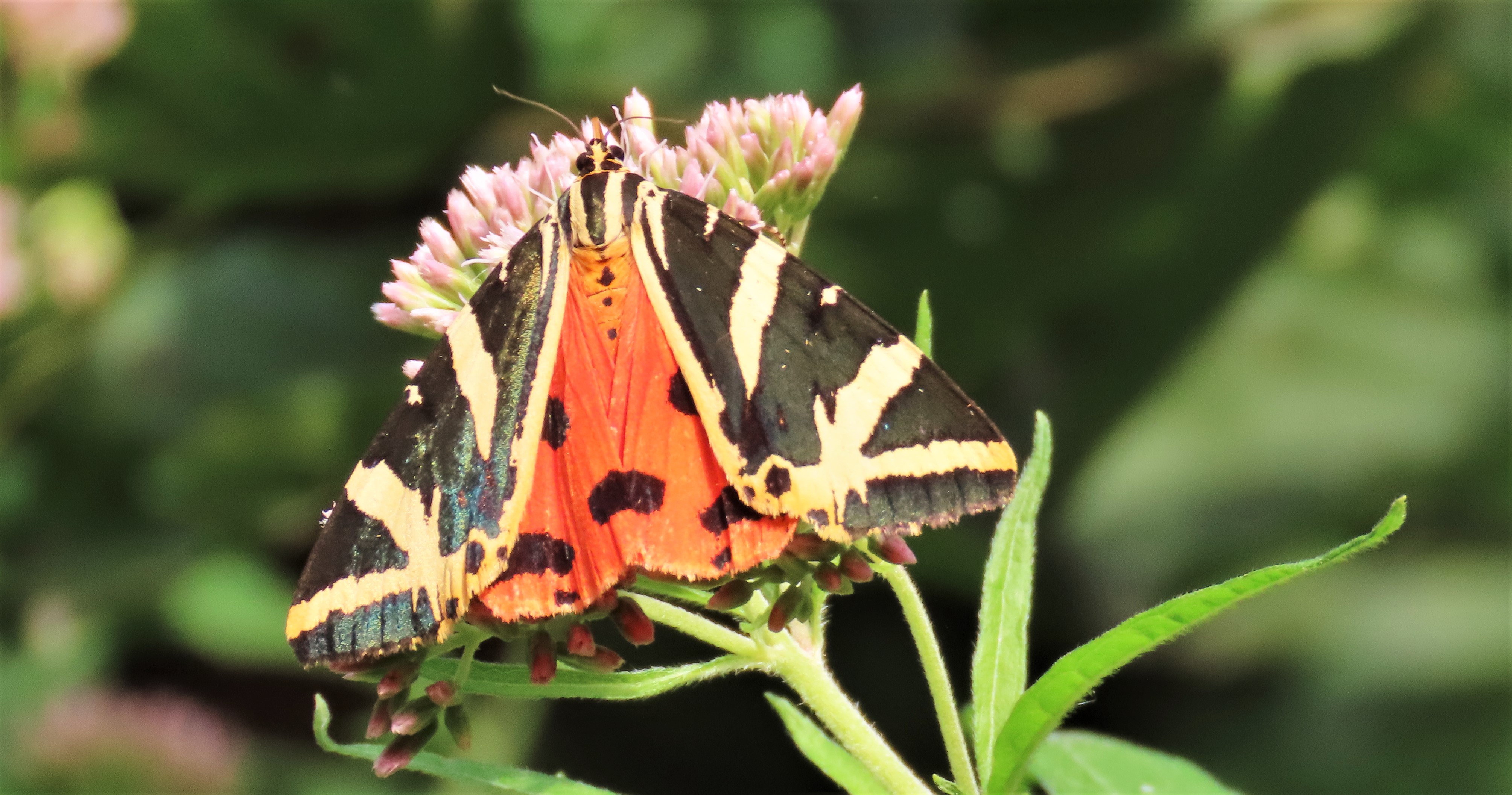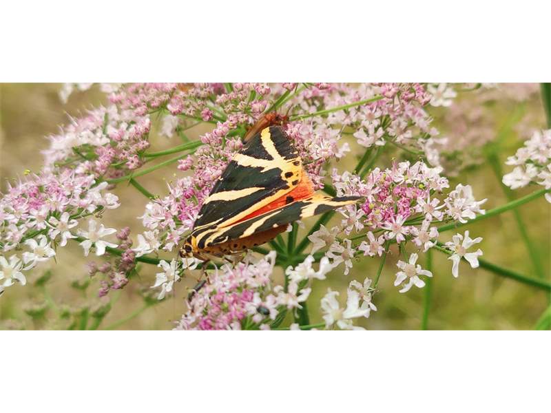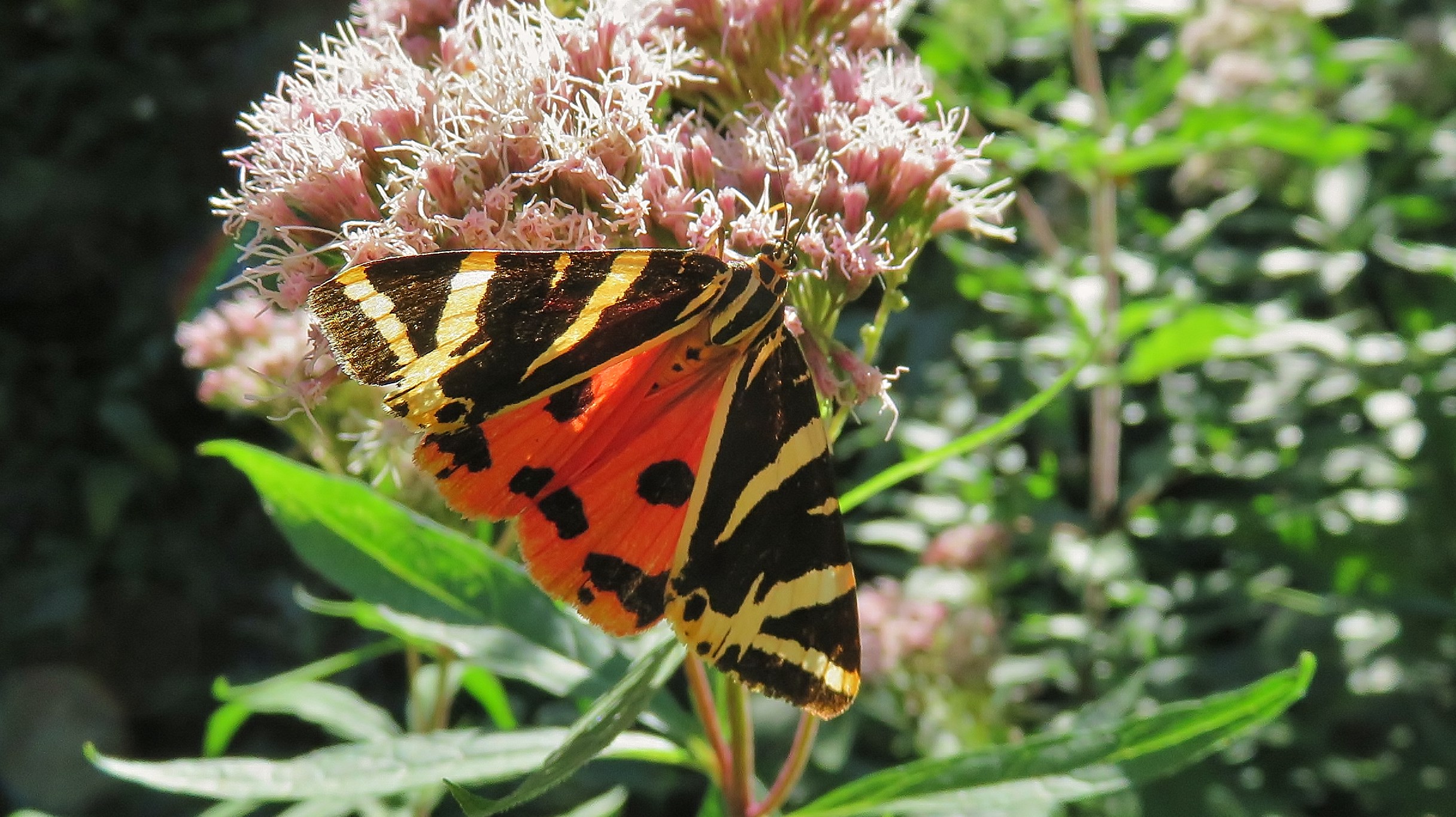 Spanische Flagge (Euplagia quadripunctaria (Poda, 1761)),Freital/Hainsberg,Rabenauer Grund,vor 1.Eisenbahnbrücke,Wegrand auf Wasserdost