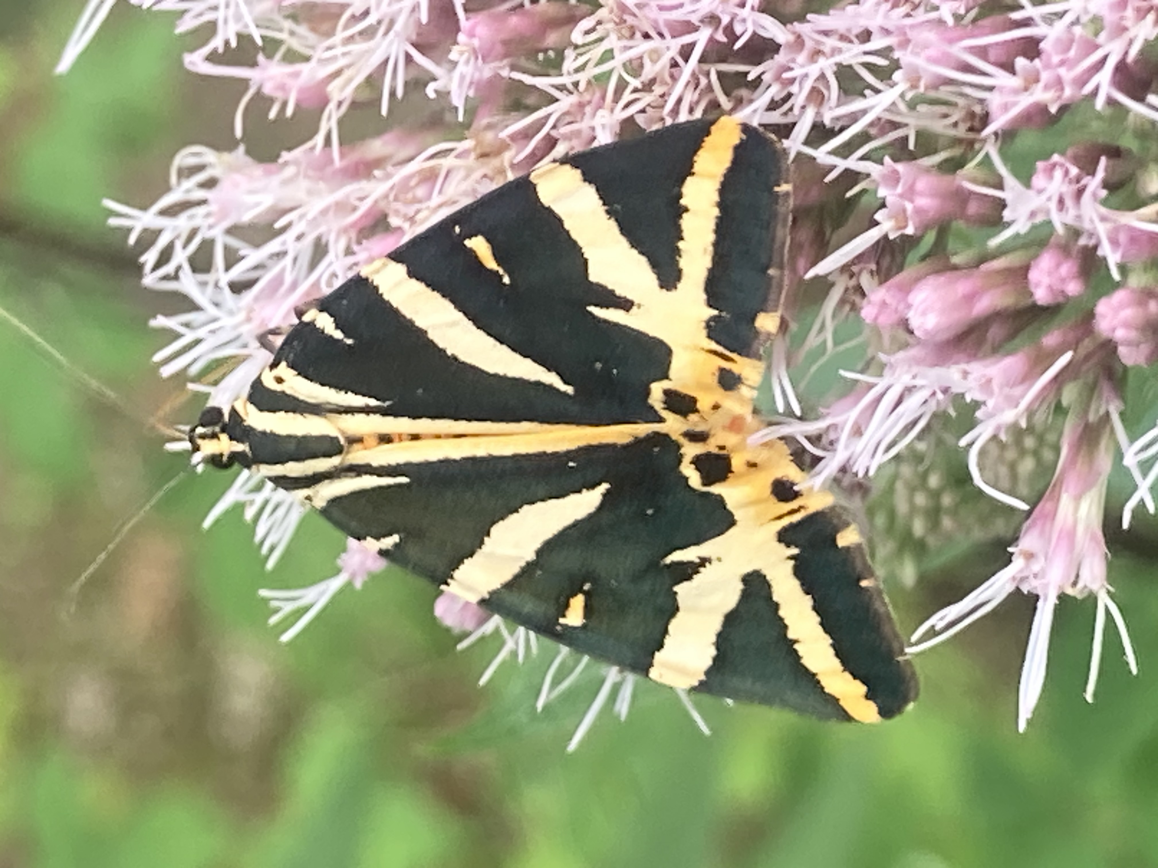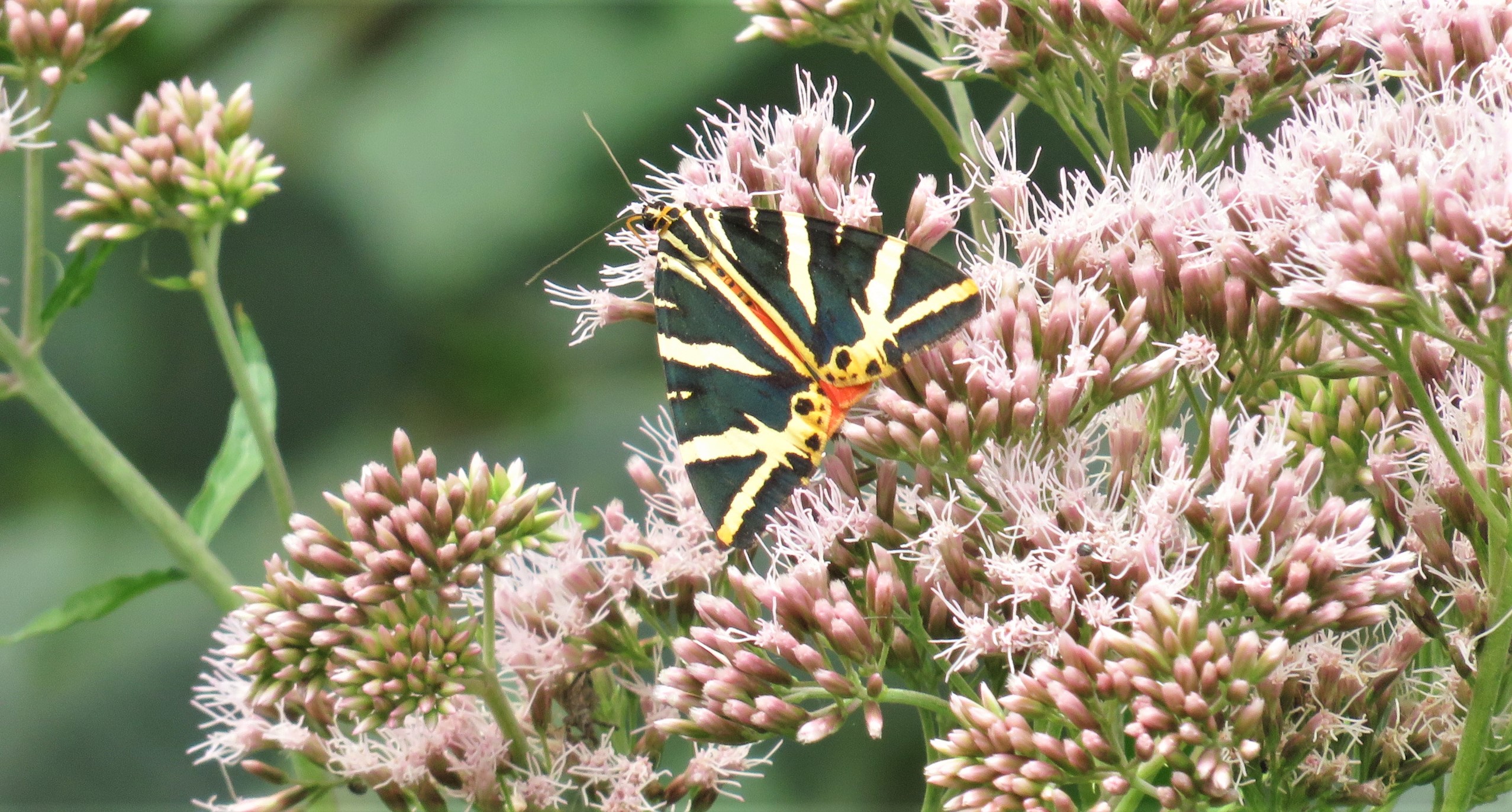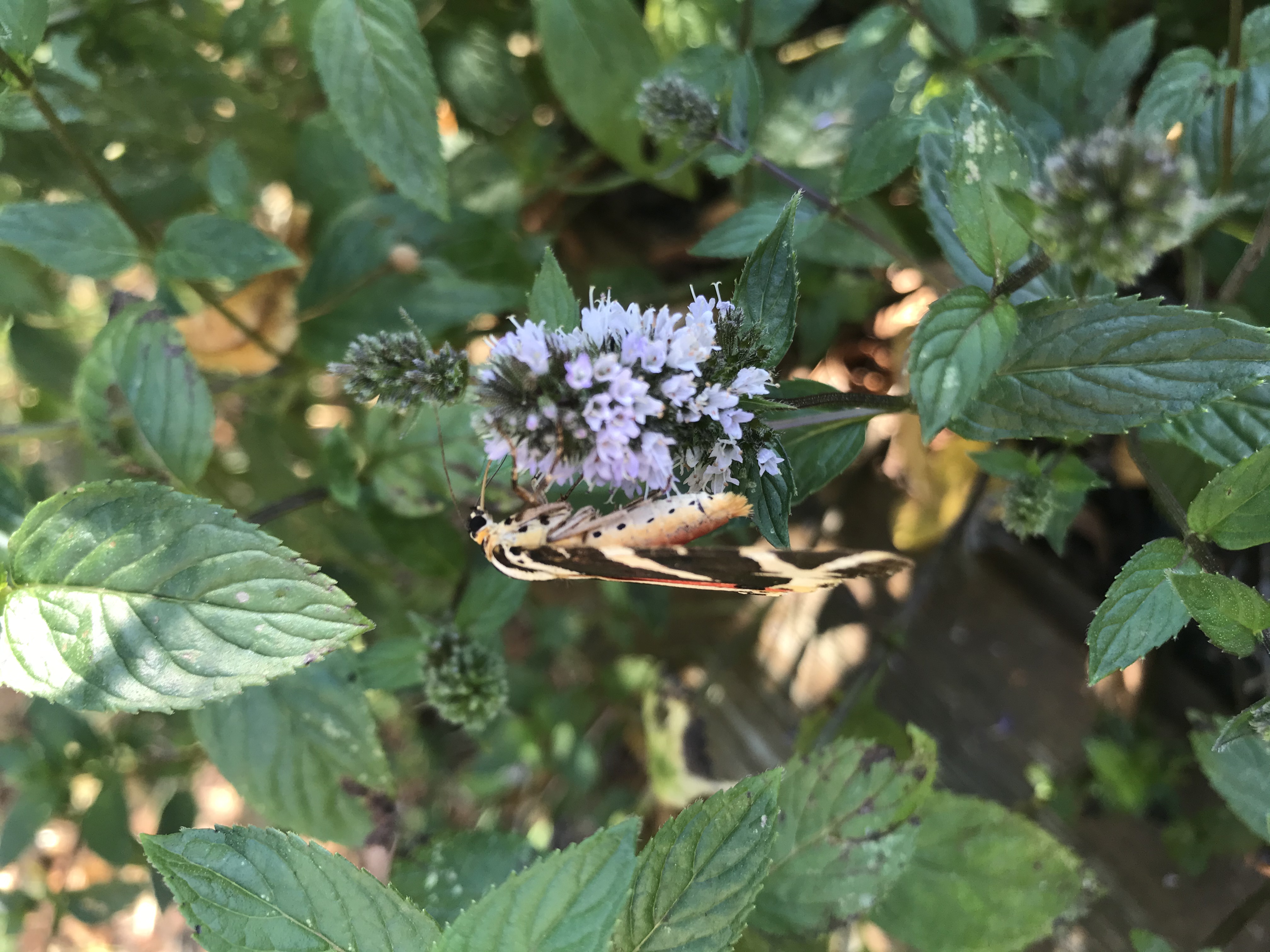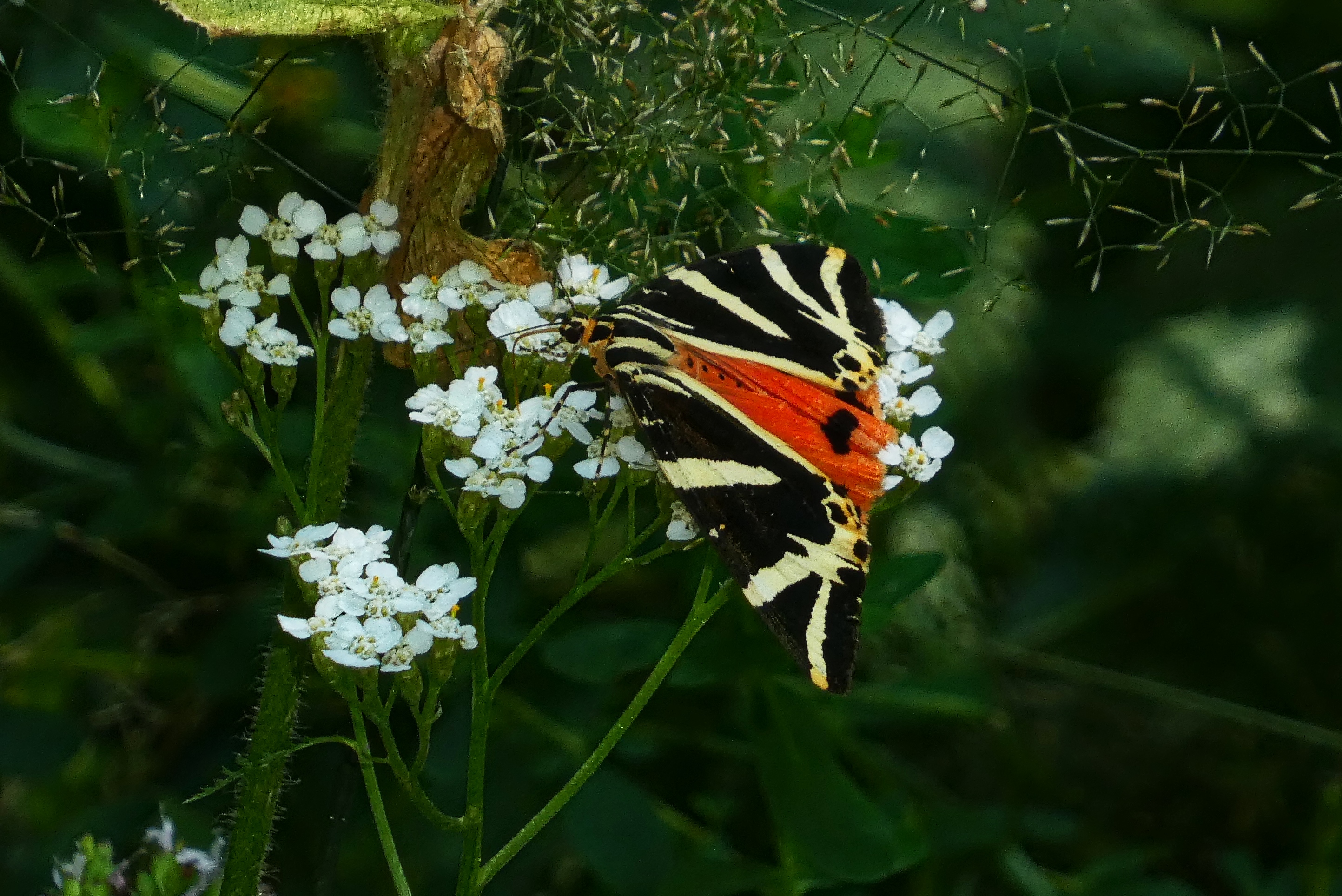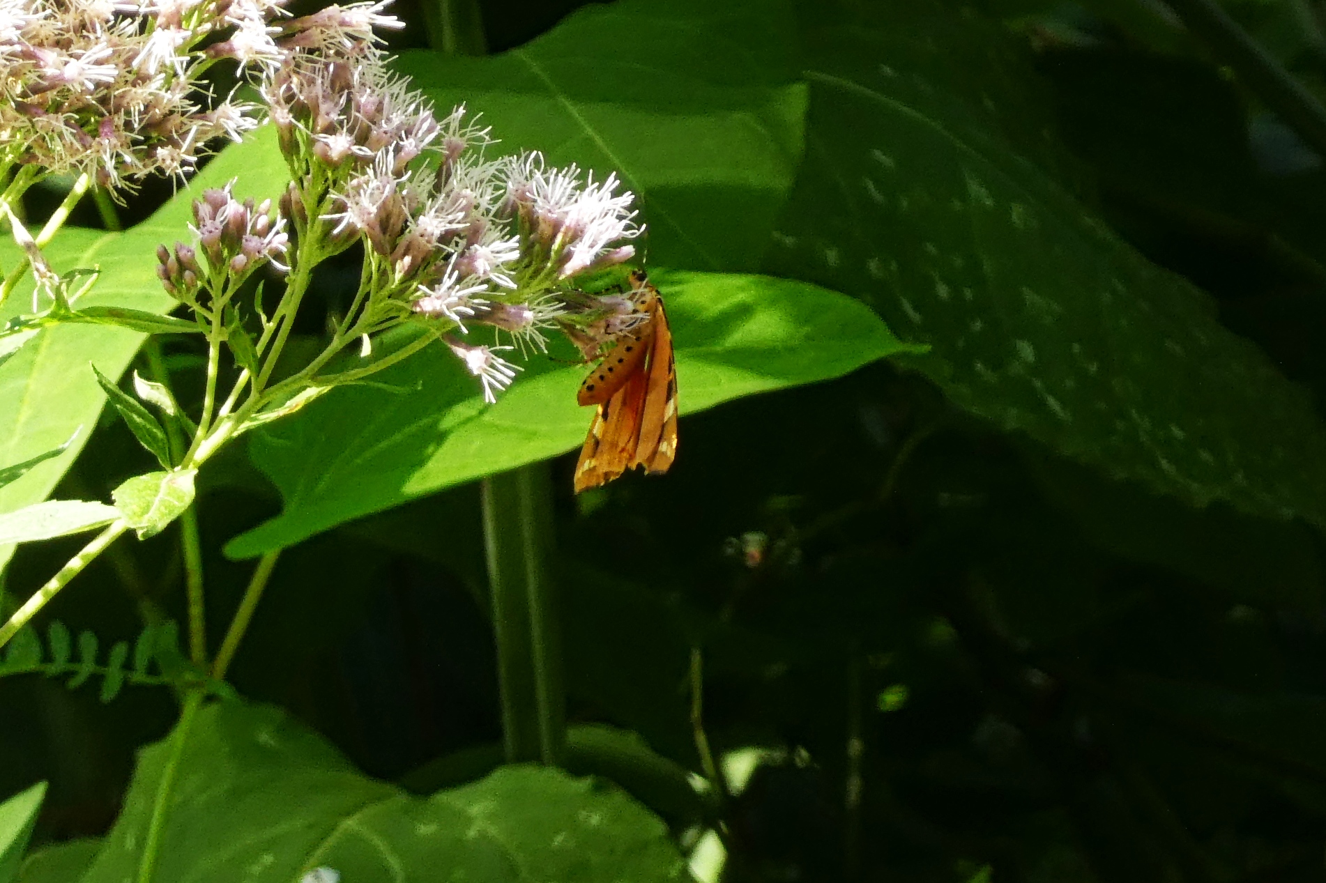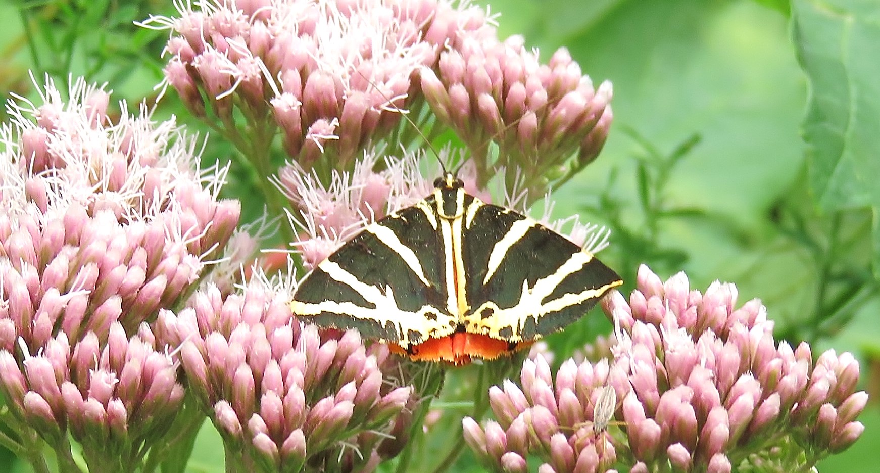 Spanische Flagge (Euplagia quadripunctaria (Poda, 1761)),Freital/Hainsberg,Rabenauer Grund,vor 1.Eisenbahnbrücke,Wegrand auf Wasserdost