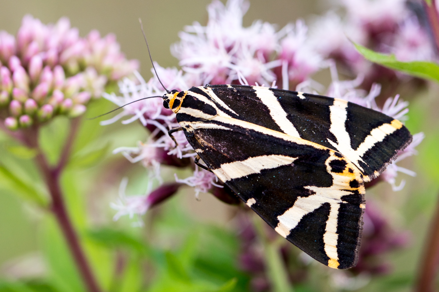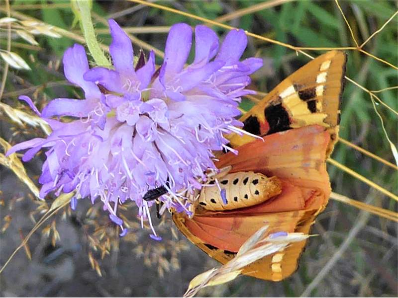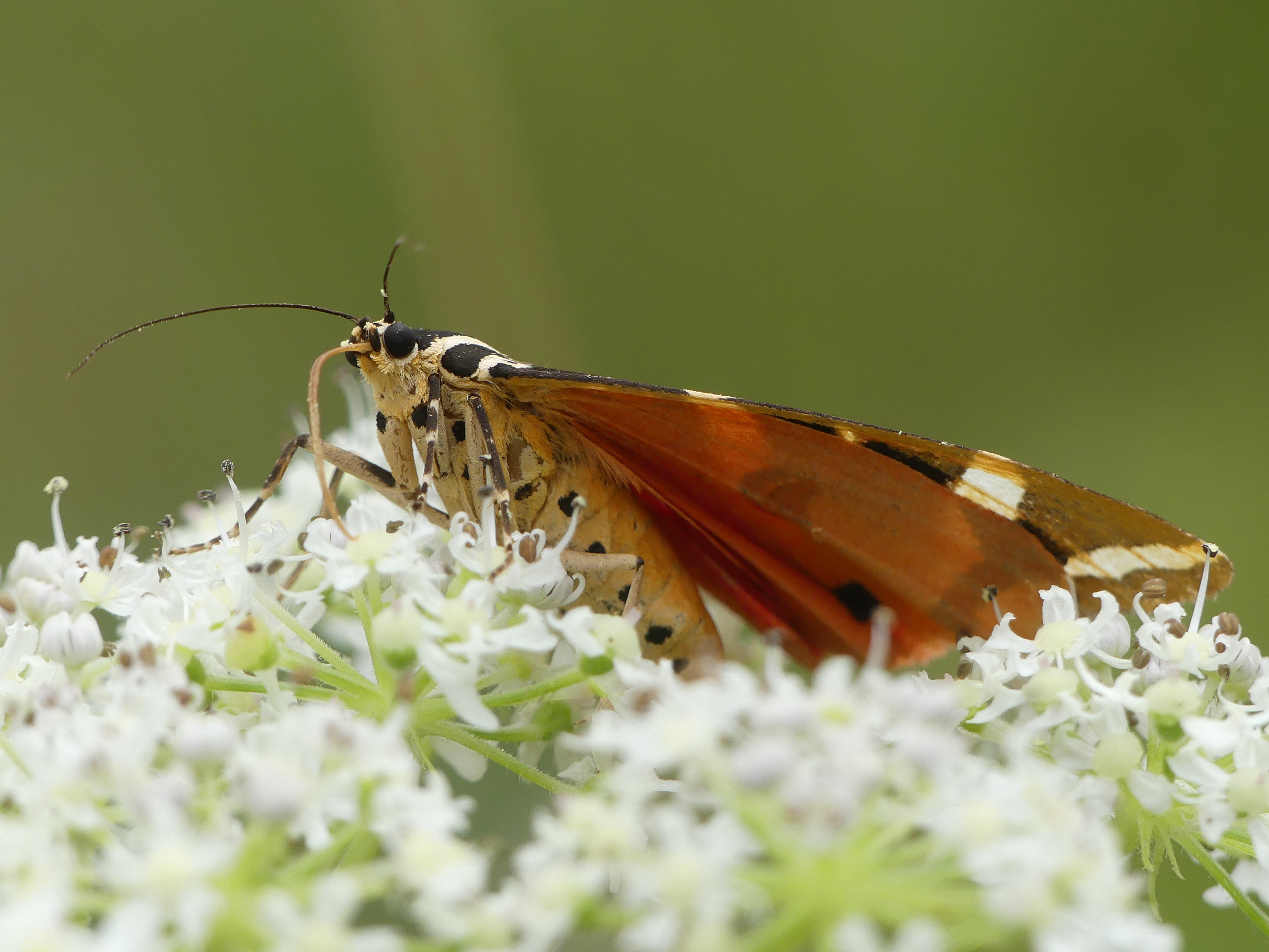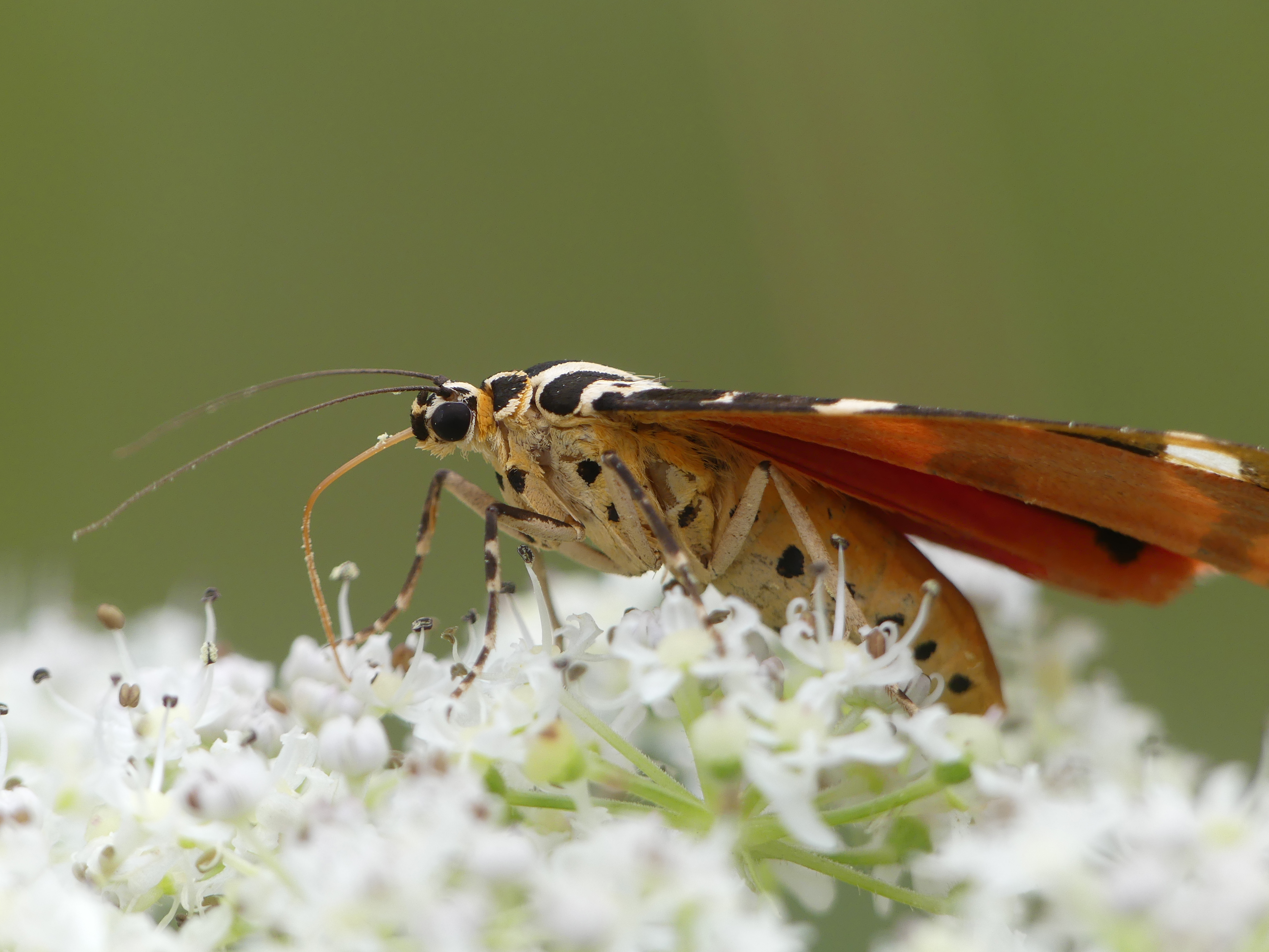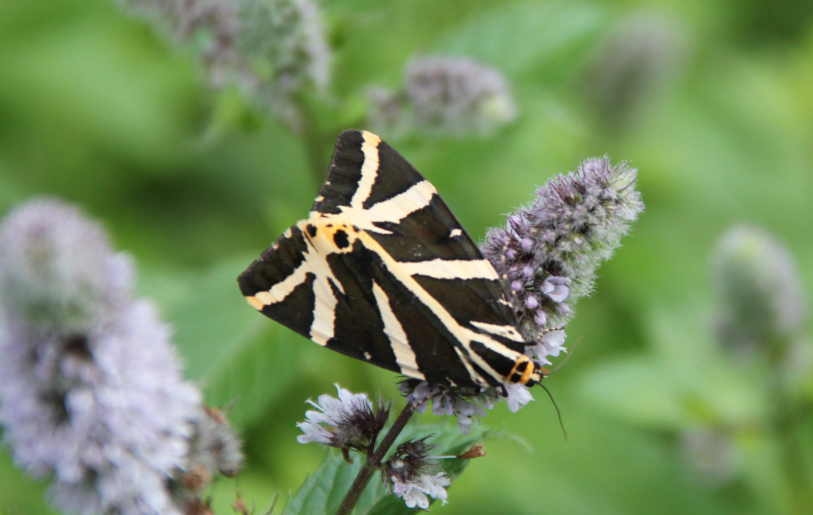 Spanische Flagge (Euplagia quadripunctaria (Poda, 1761)),Freital/Hainsberg,Rabenauer Grund,vor 1.Eisenbahnbrücke,Wegrand auf Wasserdost