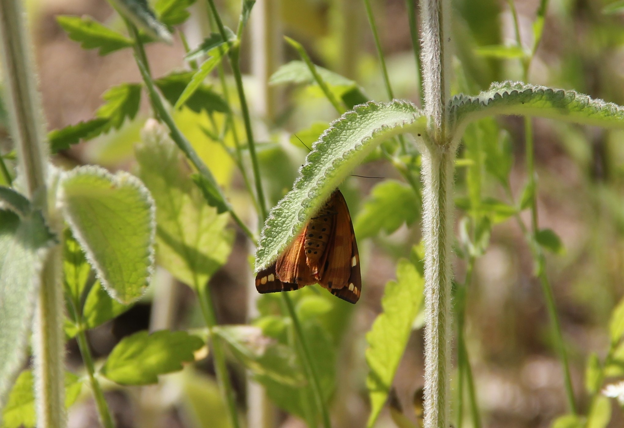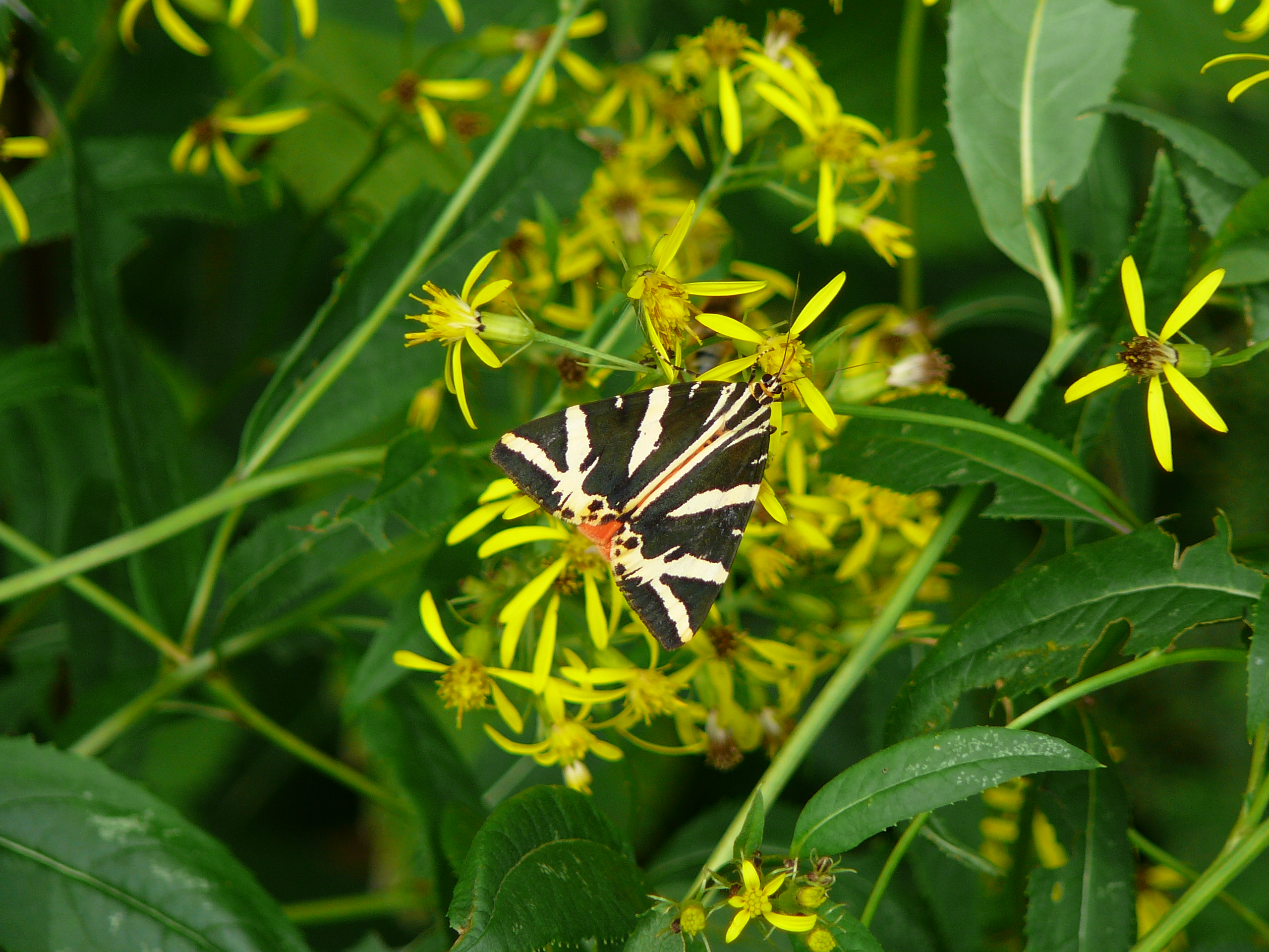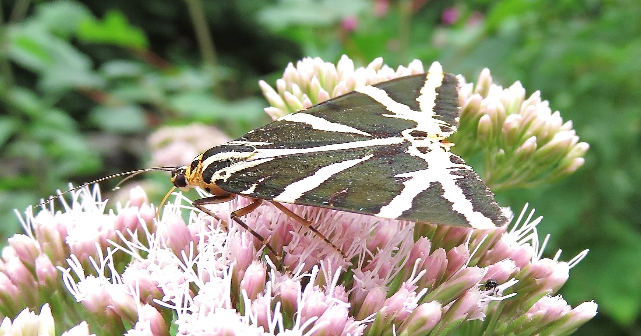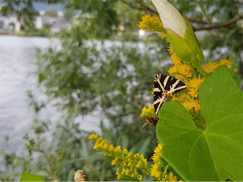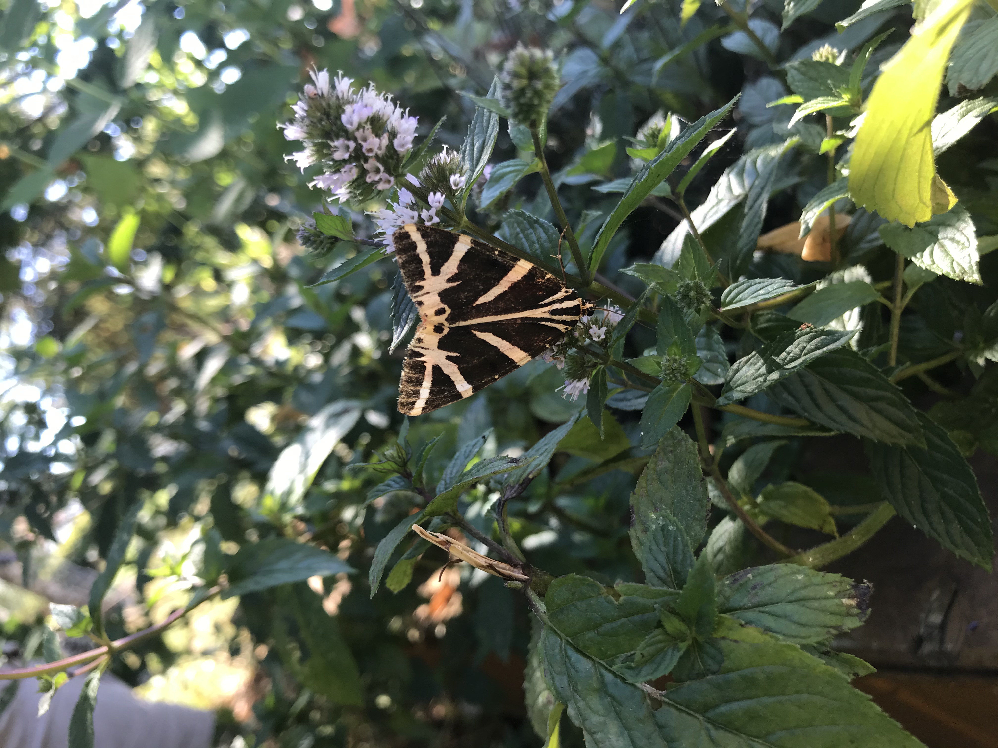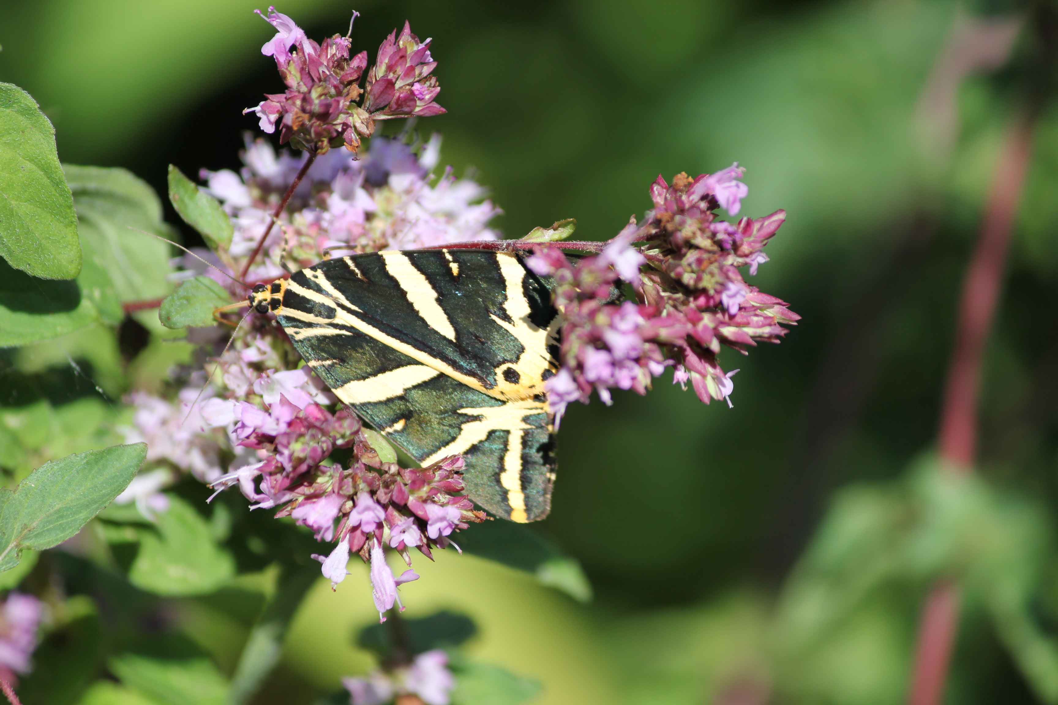 Spanische Flagge (Euplagia quadripunctaria (Poda, 1761)),Freital/Hainsberg,Rabenauer Grund,vor 1.Eisenbahnbrücke,Wegrand auf Wasserdost
