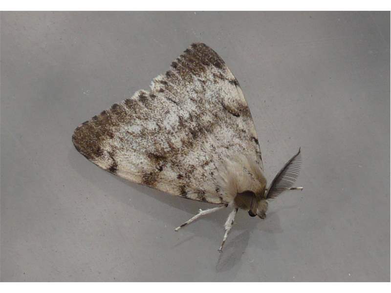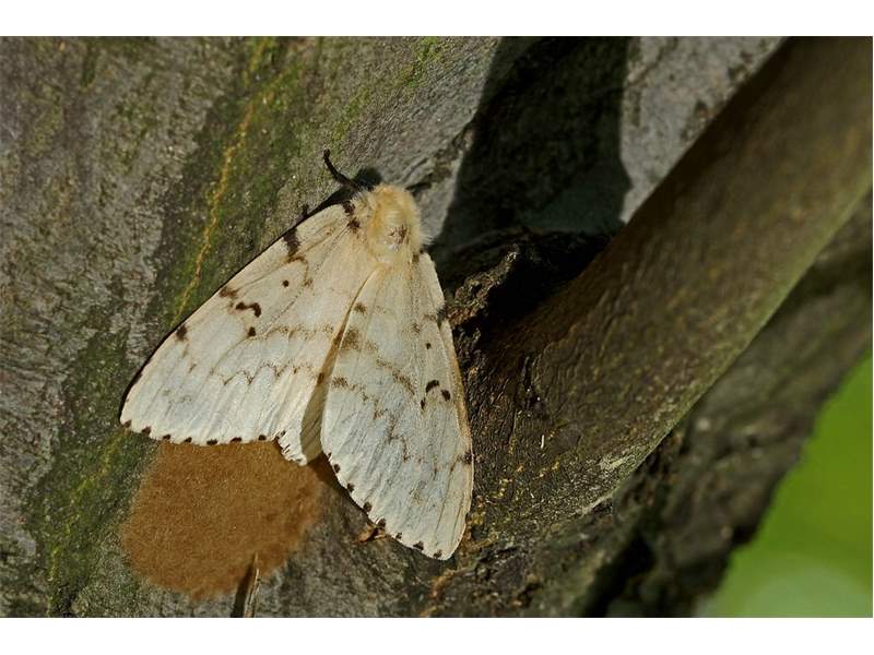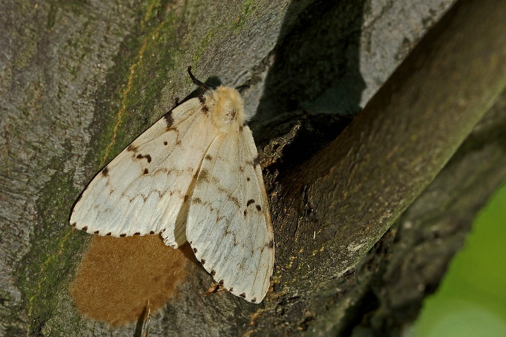 Ähnliche Art: Die Nonne (Lymantria monacha) im Vorderflügel basal mit einer wellenförmigen Linie und vor dem Außenrand mit zwei deutlich stärker gezackten Linien.