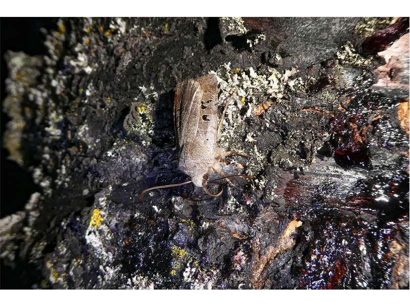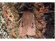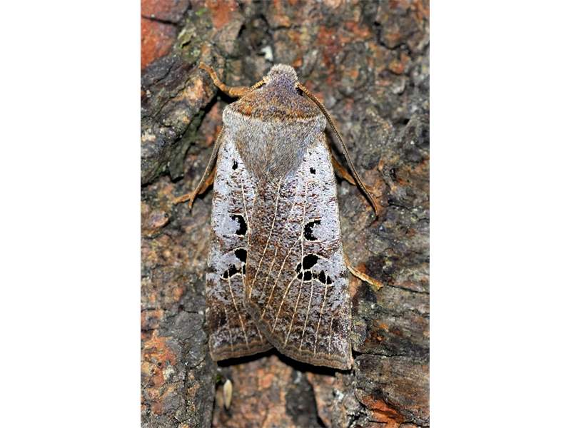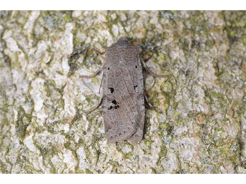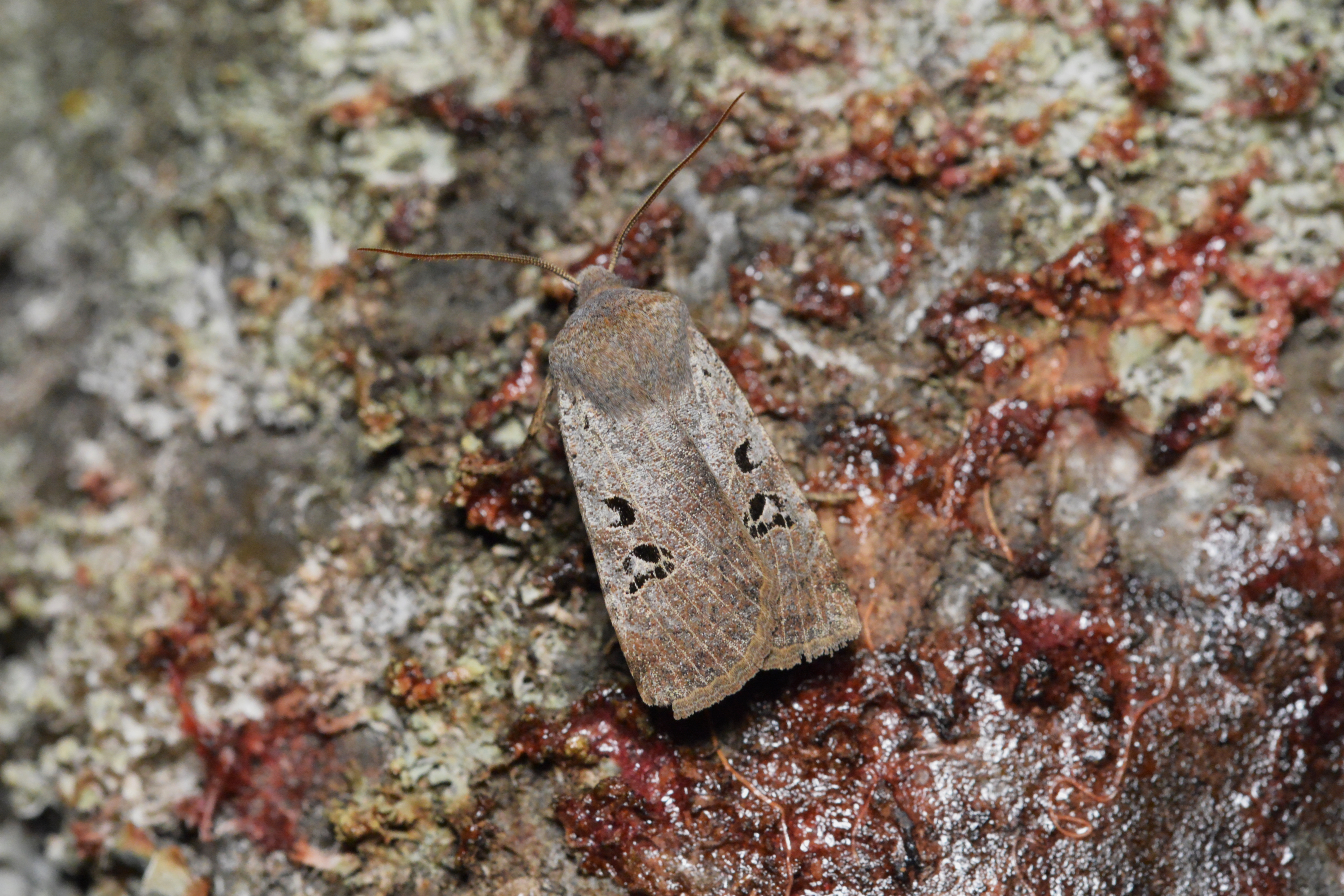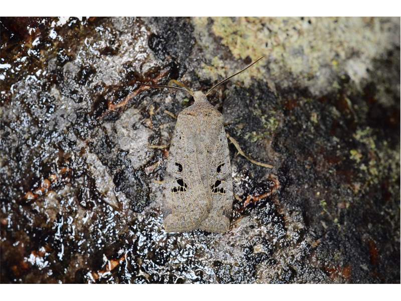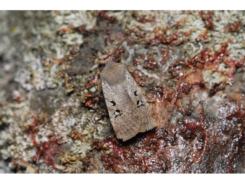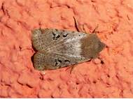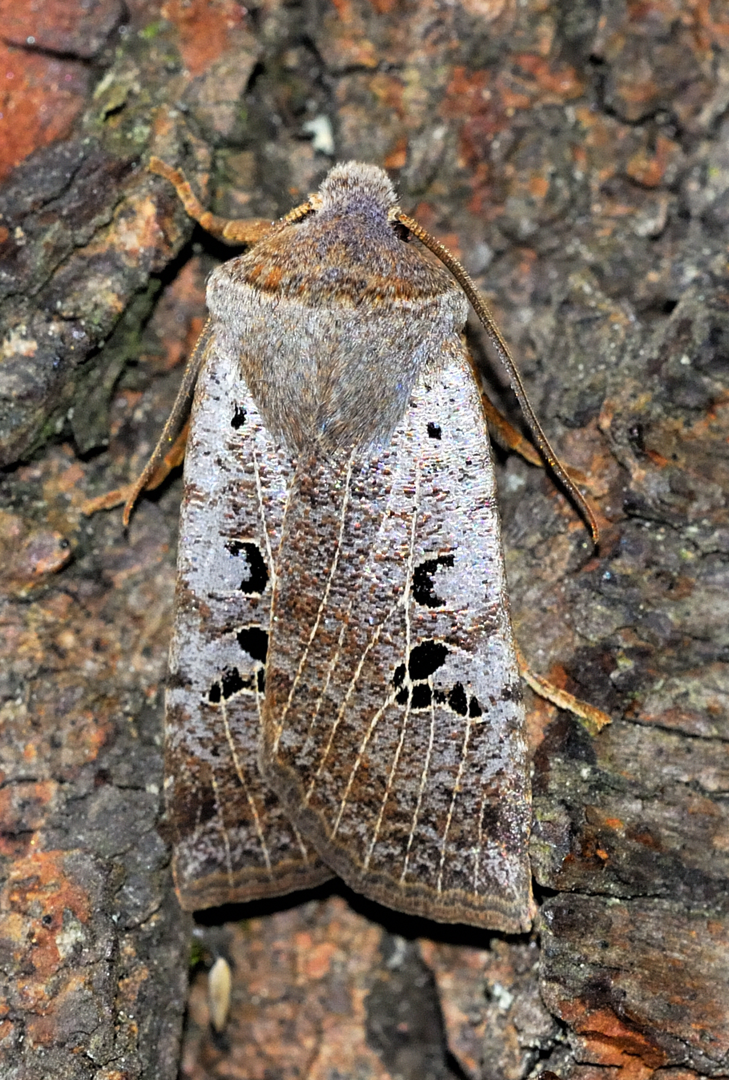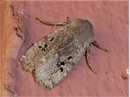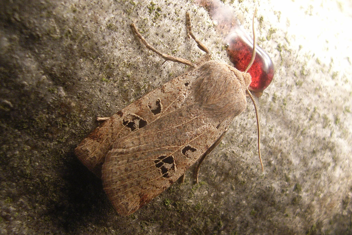 Schwarzgefleckte Wintereule, Conistra rubiginosa, Ablichtung auf Hausterrasse, Leipzig-Gohlis-Mitte, 06. März 2024 (© Heinz Sass)( Bild vergrößern)