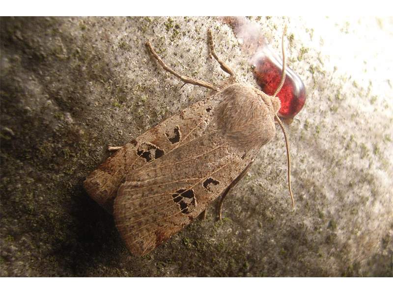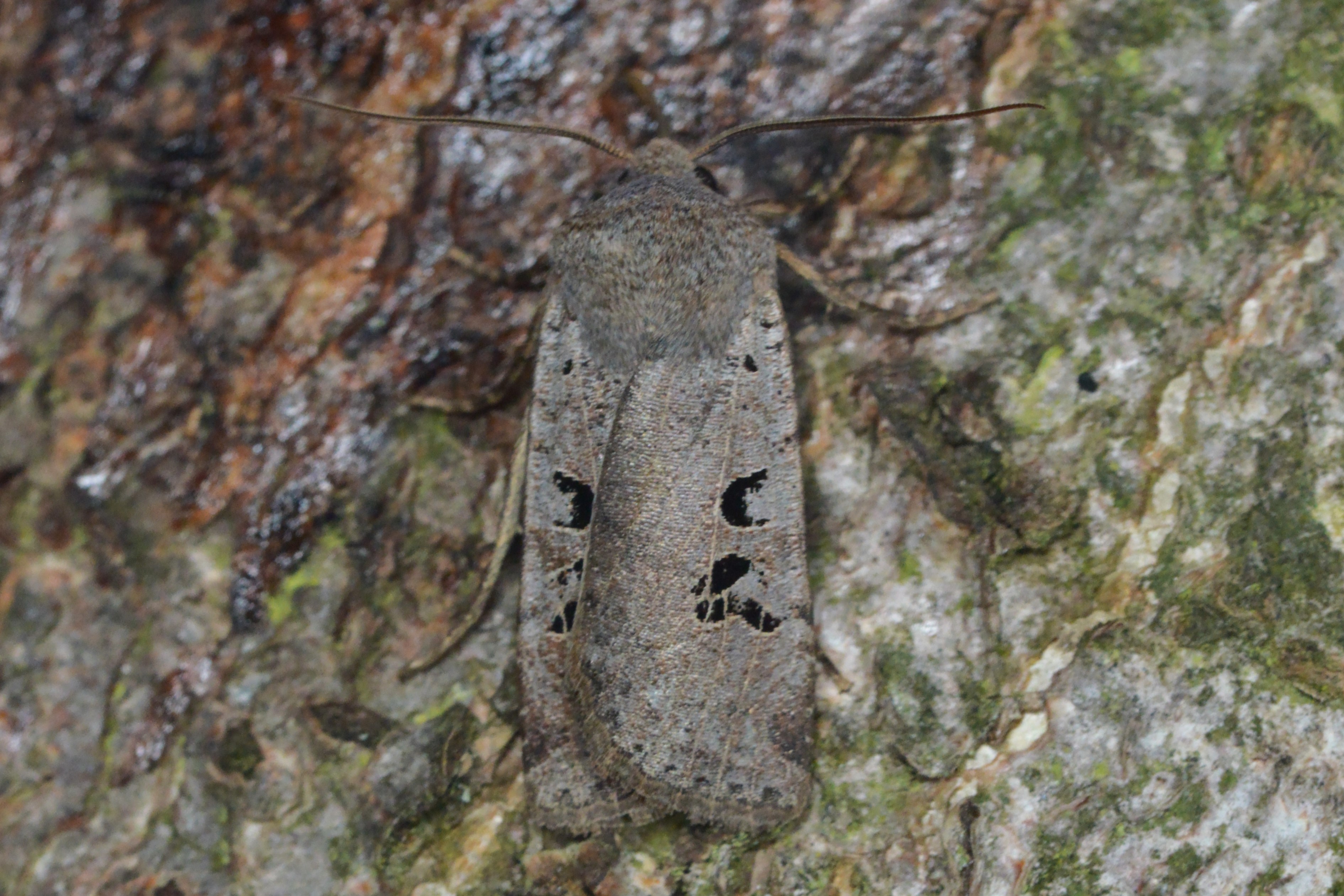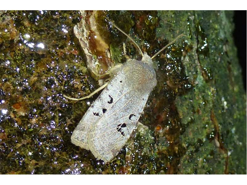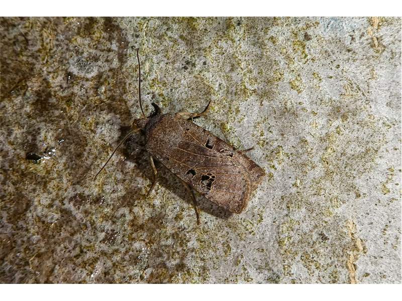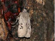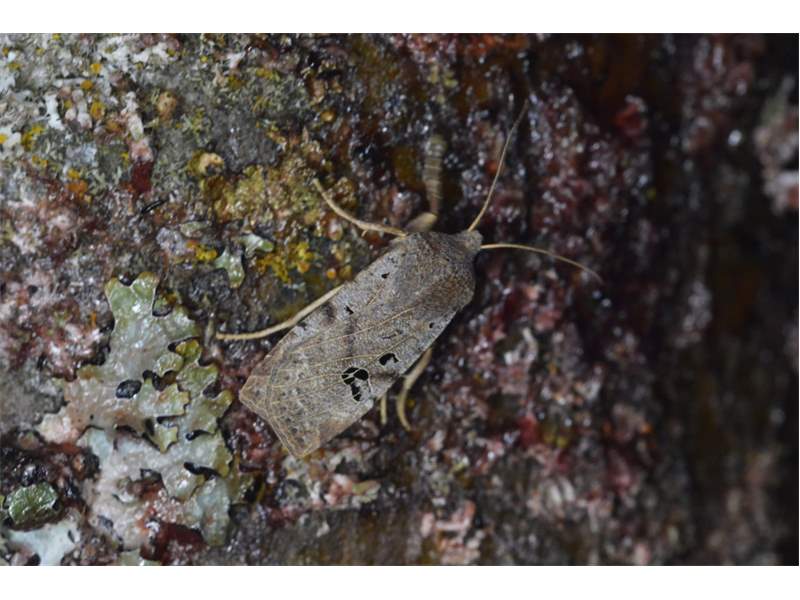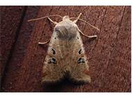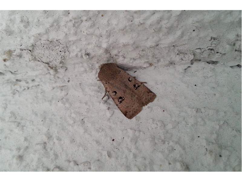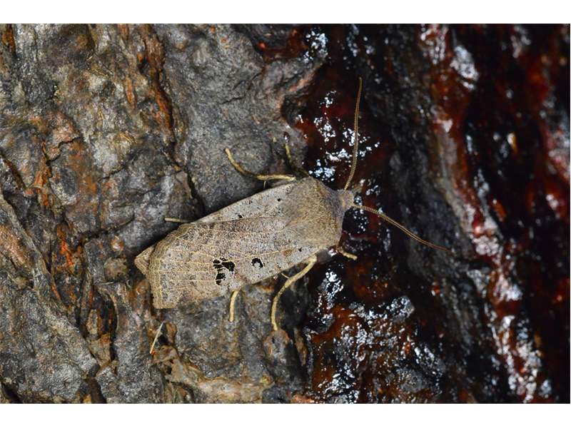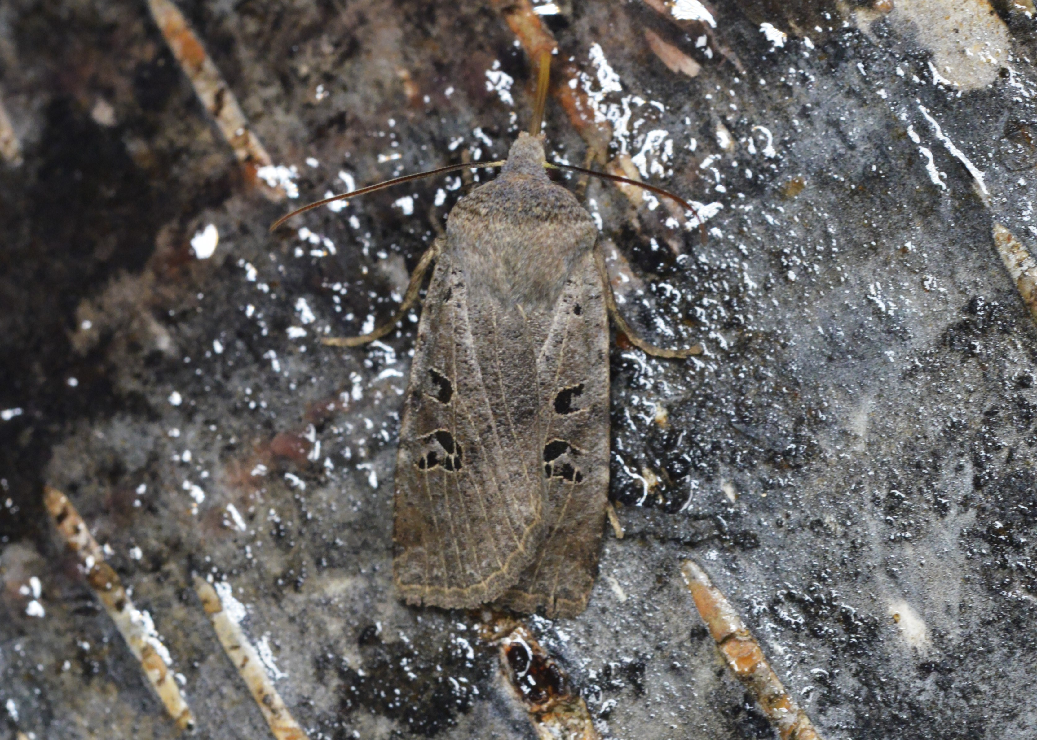 Schwarzgefleckte Wintereule, Conistra rubiginosa, Ablichtung auf Hausterrasse, Leipzig-Gohlis-Mitte, 06. März 2024 (© Heinz Sass)( Bild vergrößern)
