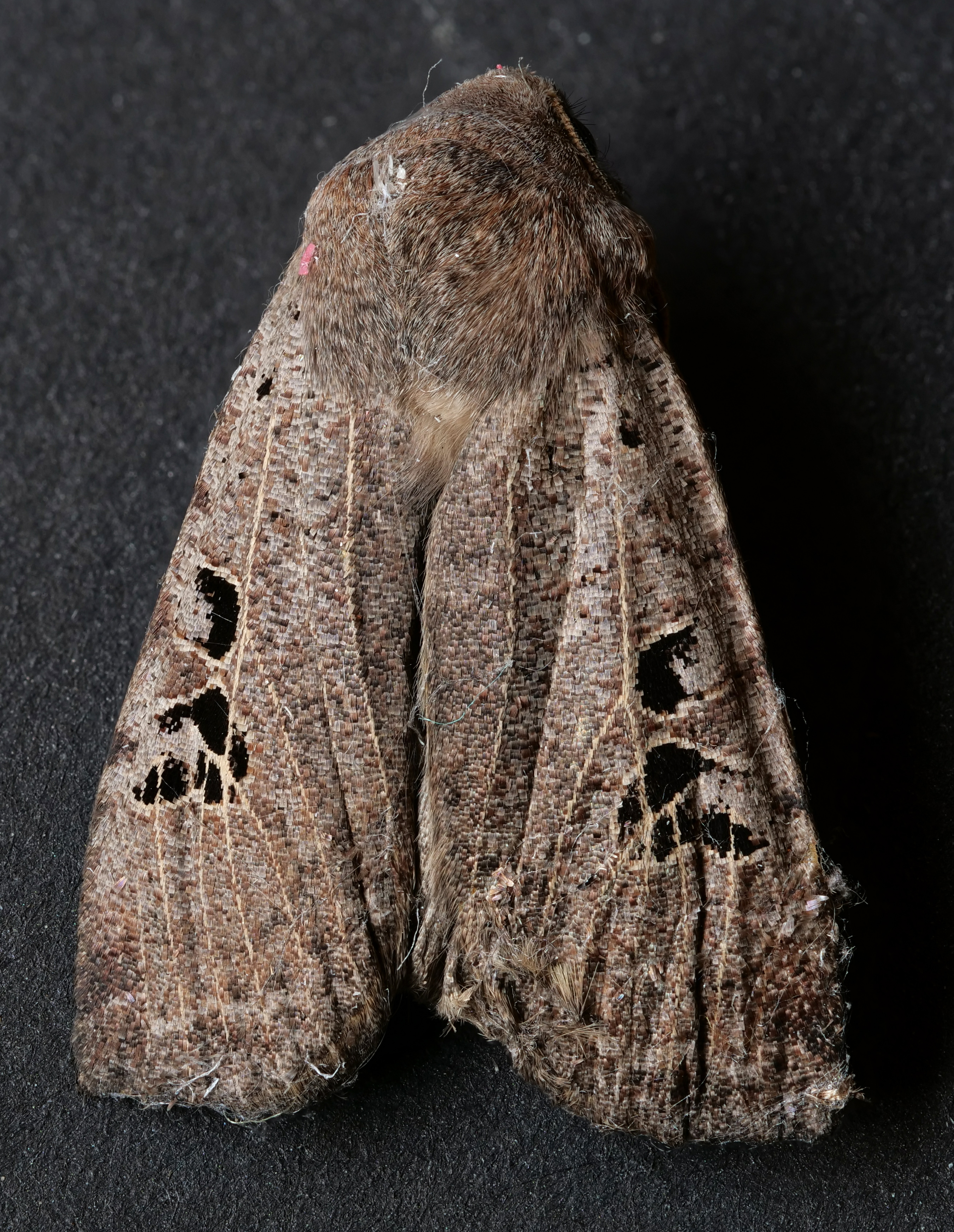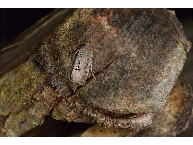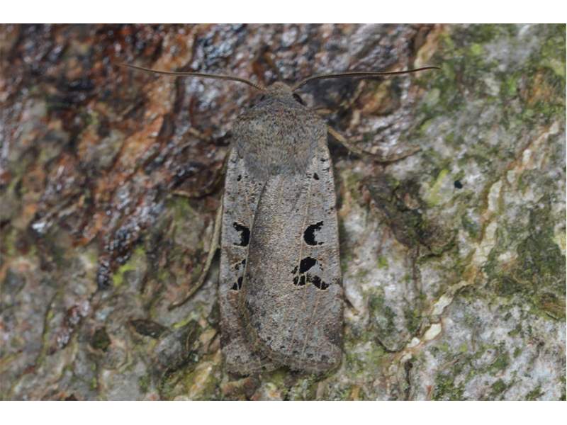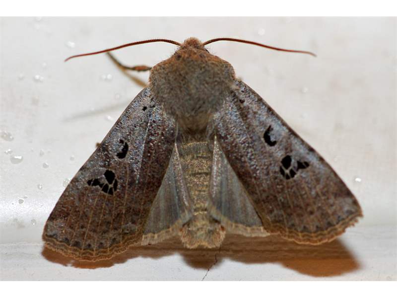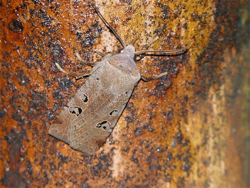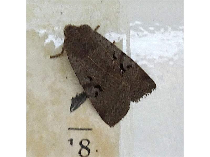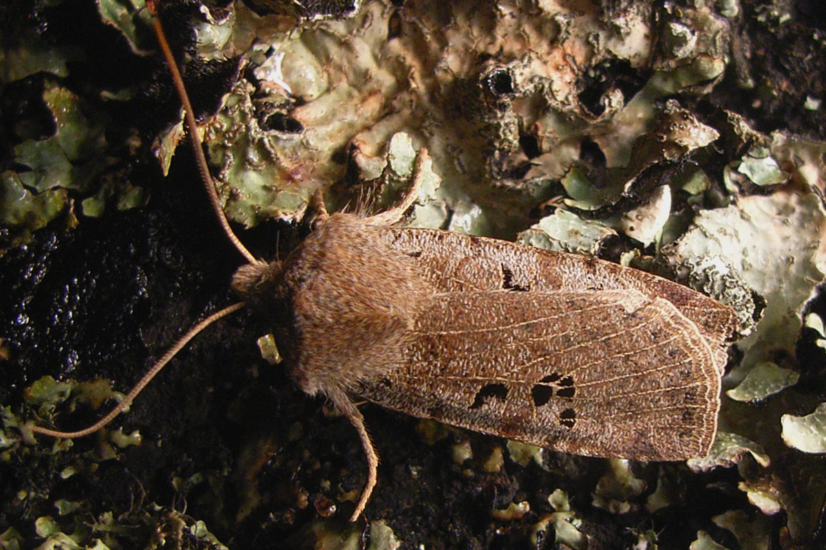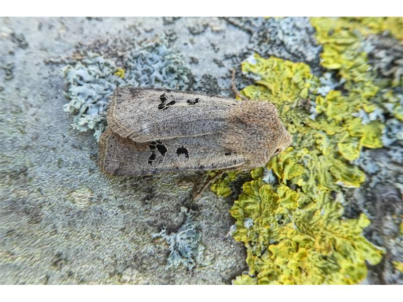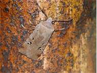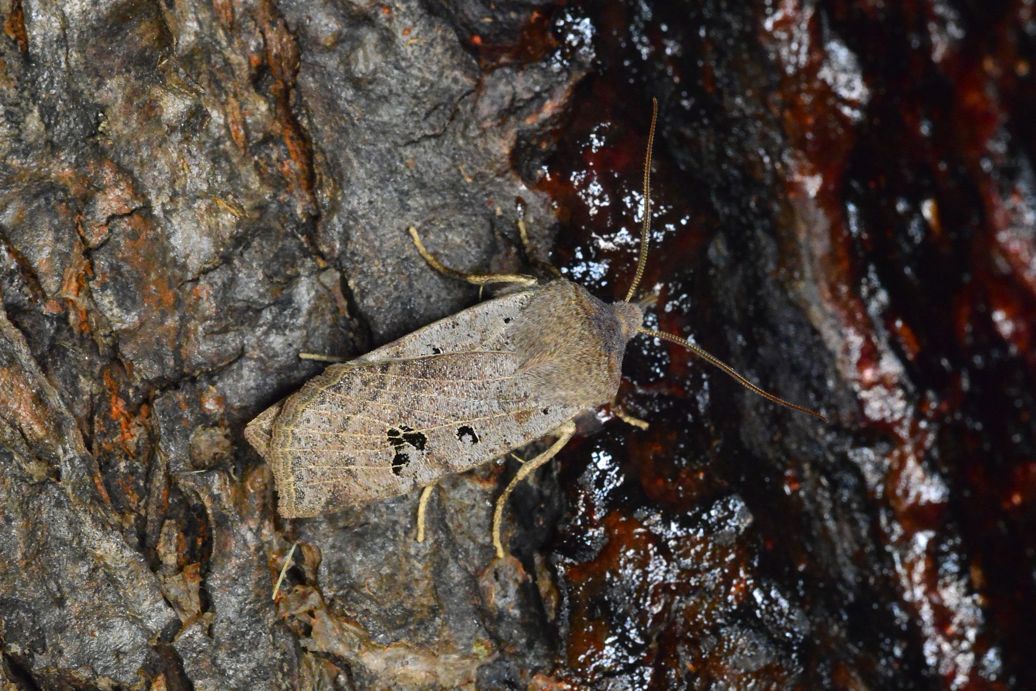 Schwarzgefleckte Wintereule, Conistra rubiginosa, Ablichtung auf Hausterrasse, Leipzig-Gohlis-Mitte, 06. März 2024 (© Heinz Sass)( Bild vergrößern)