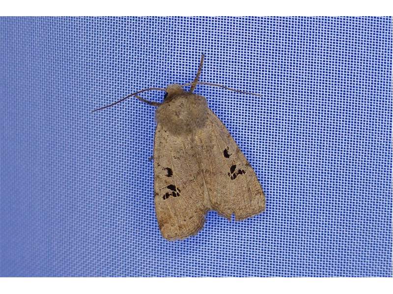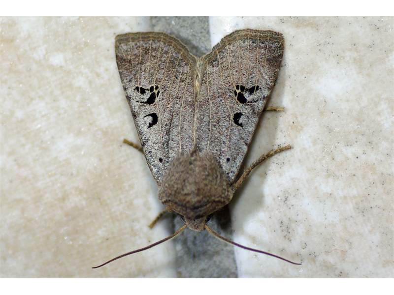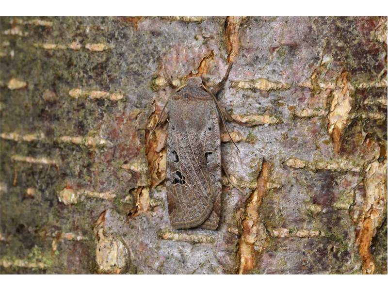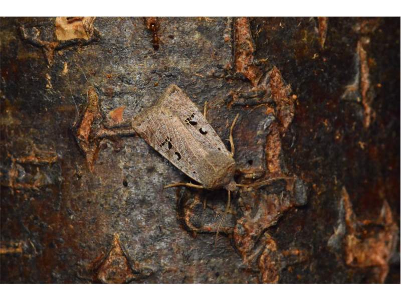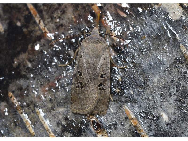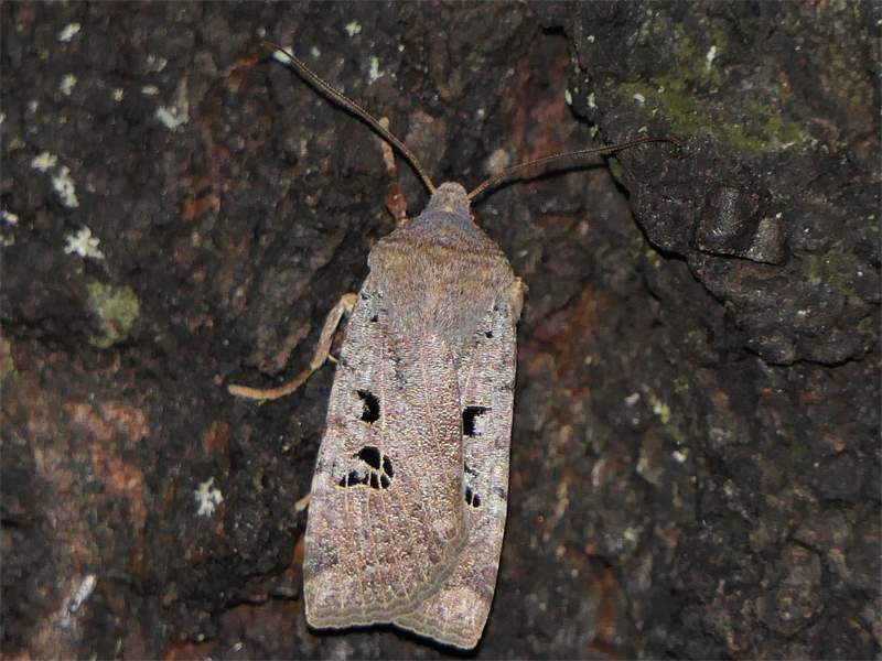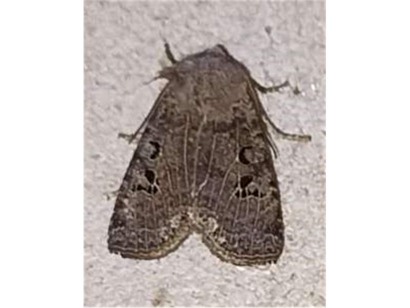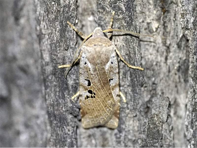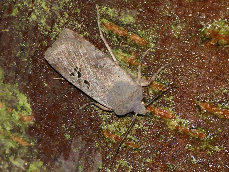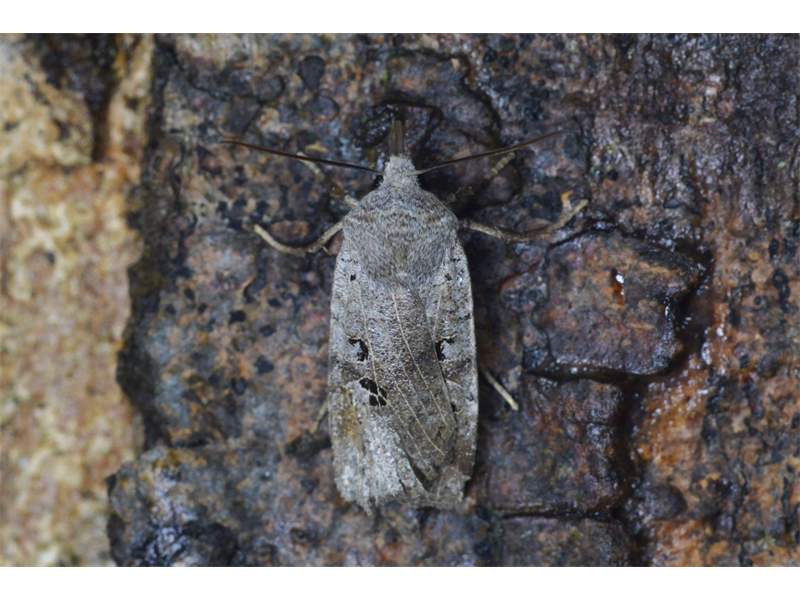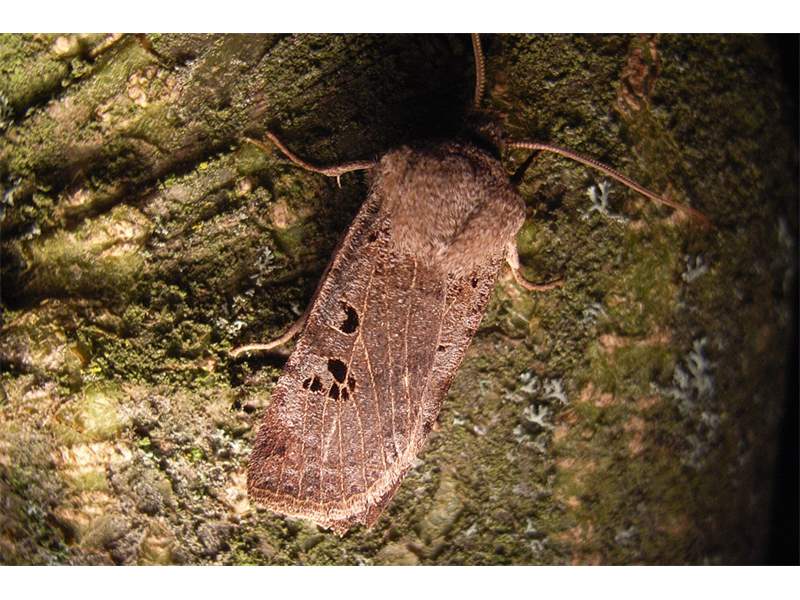 Schwarzgefleckte Wintereule, Conistra rubiginosa, Ablichtung auf Hausterrasse, Leipzig-Gohlis-Mitte, 06. März 2024 (© Heinz Sass)( Bild vergrößern)