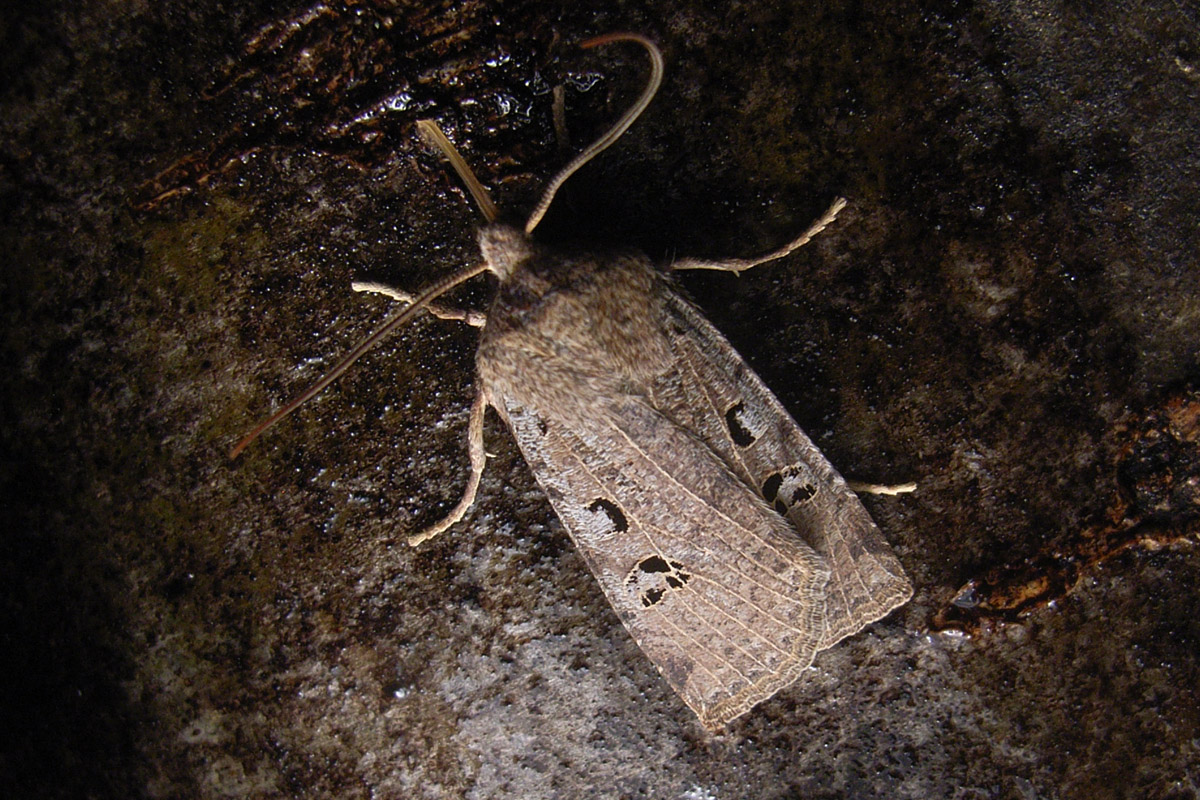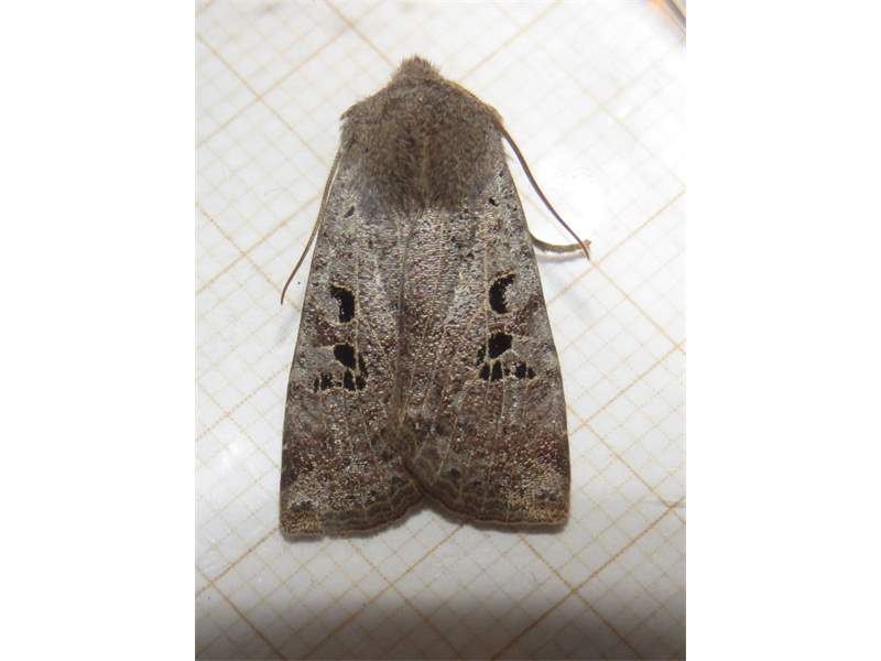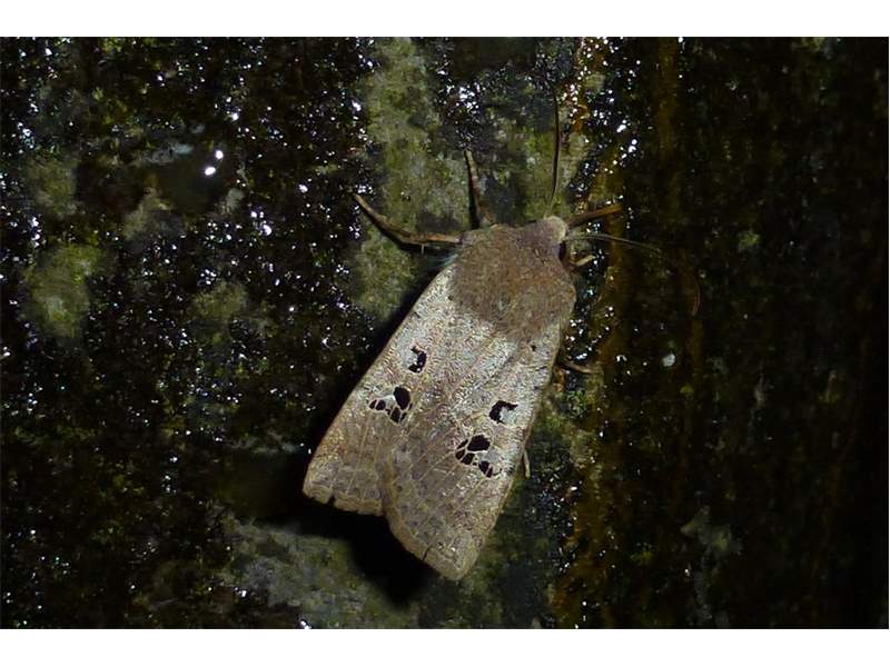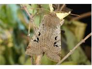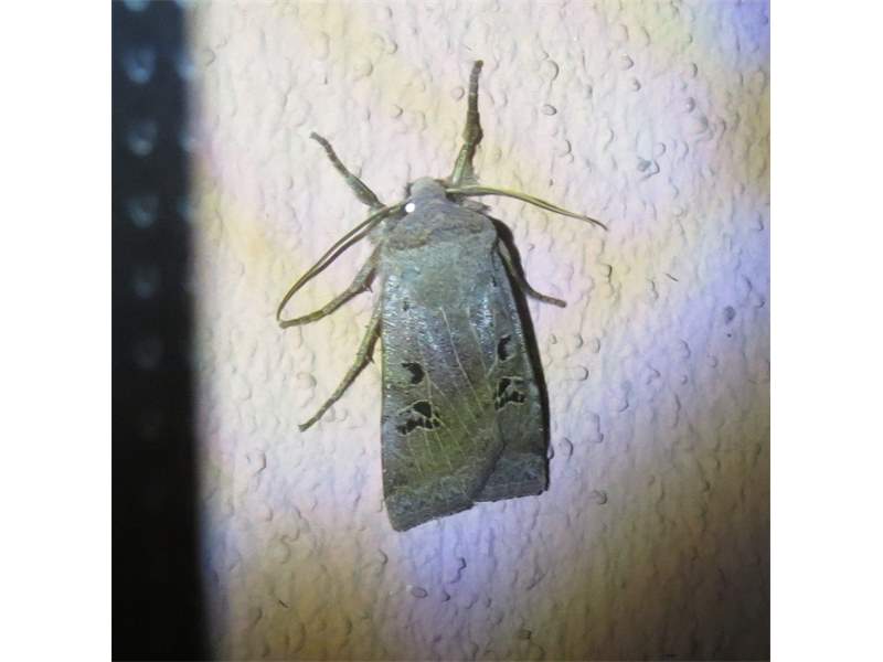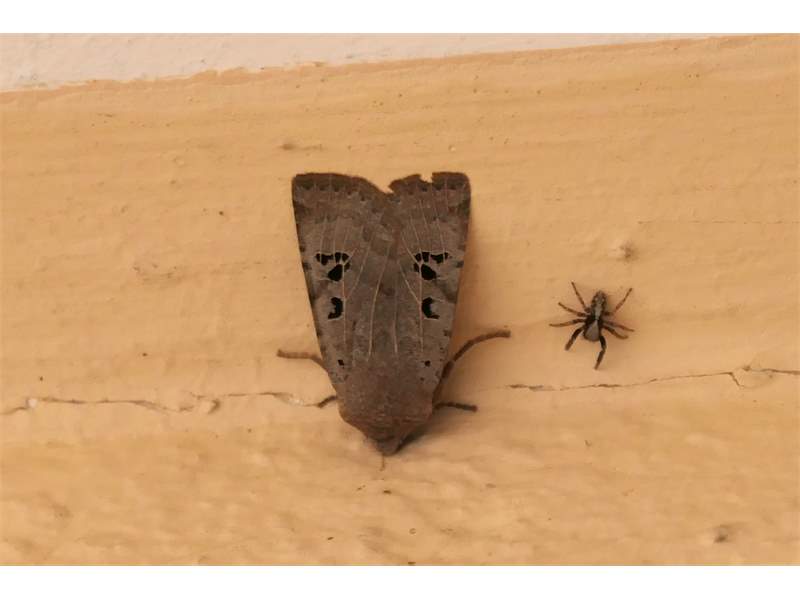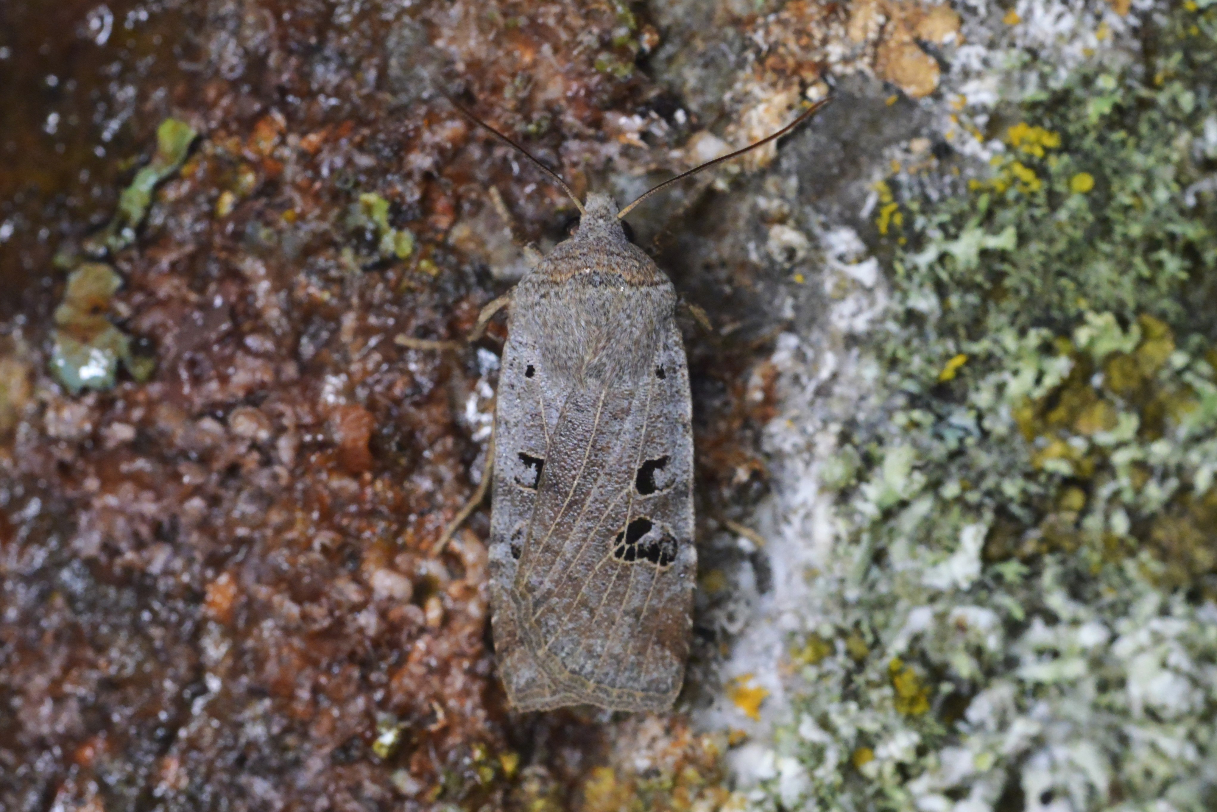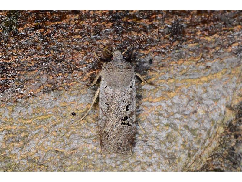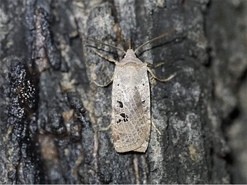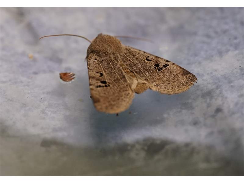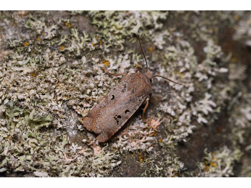 Schwarzgefleckte Wintereule, Conistra rubiginosa, Ablichtung auf Hausterrasse, Leipzig-Gohlis-Mitte, 06. März 2024 (© Heinz Sass)( Bild vergrößern)