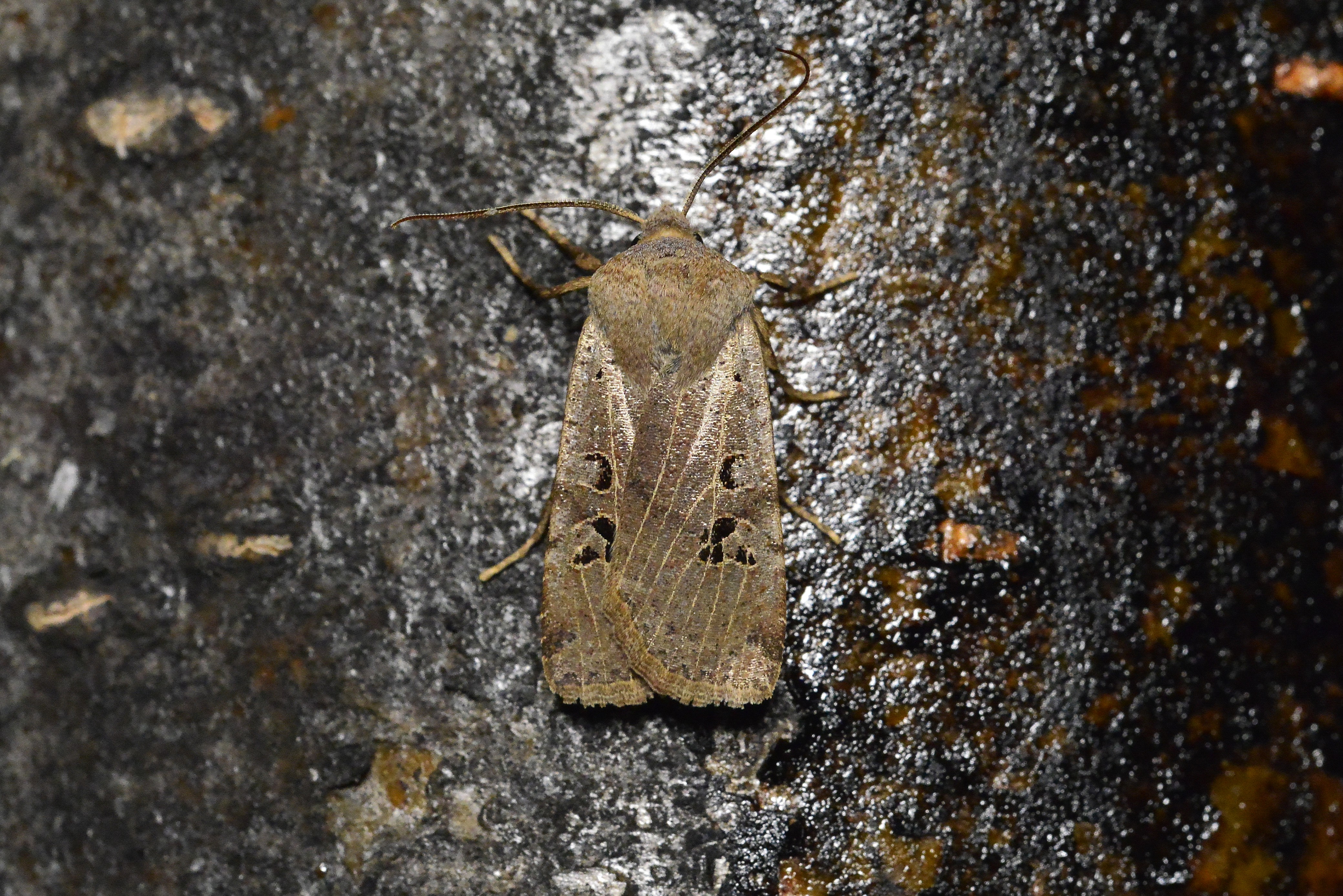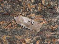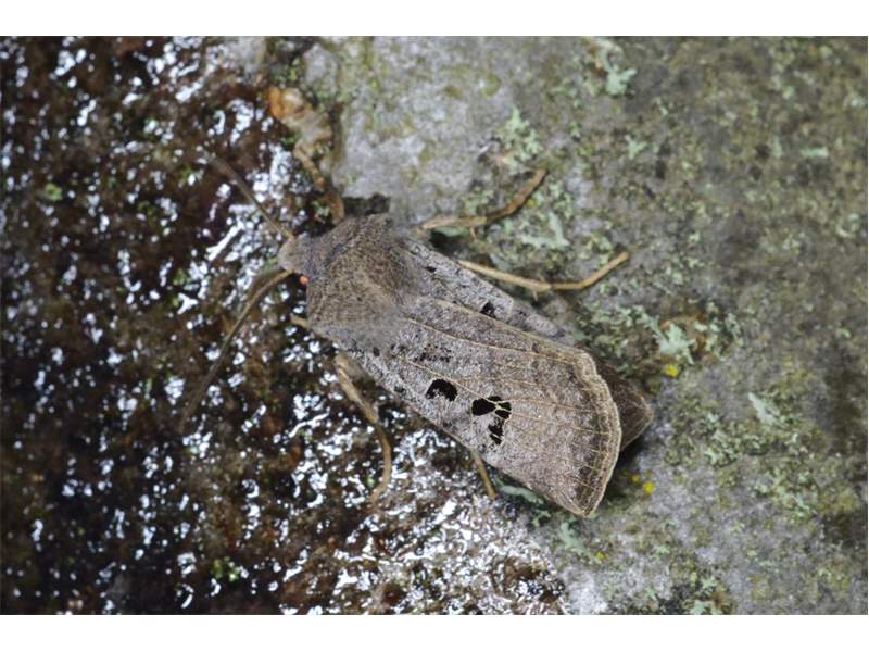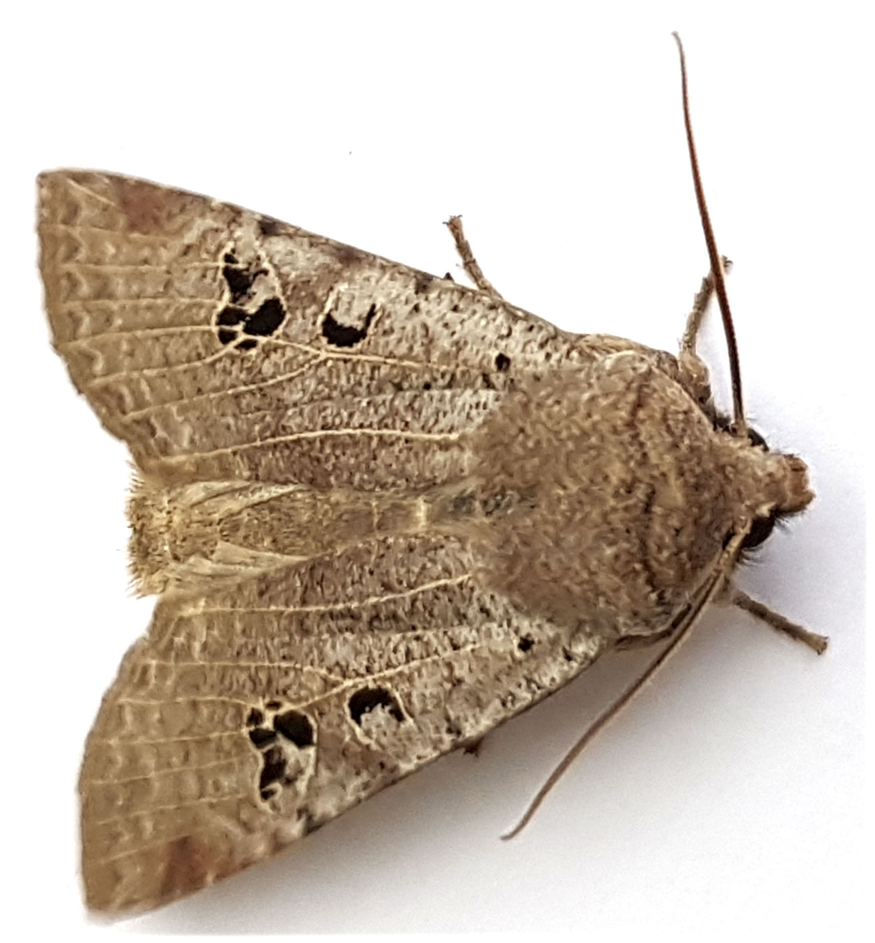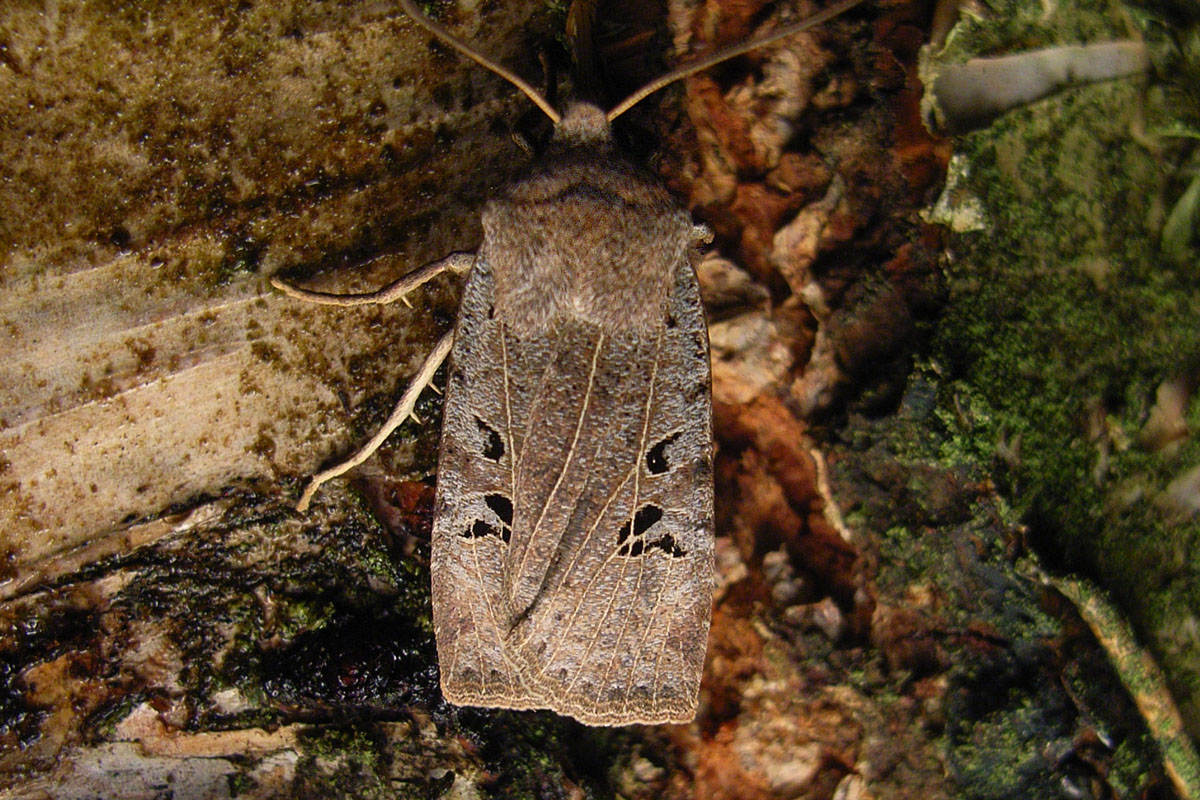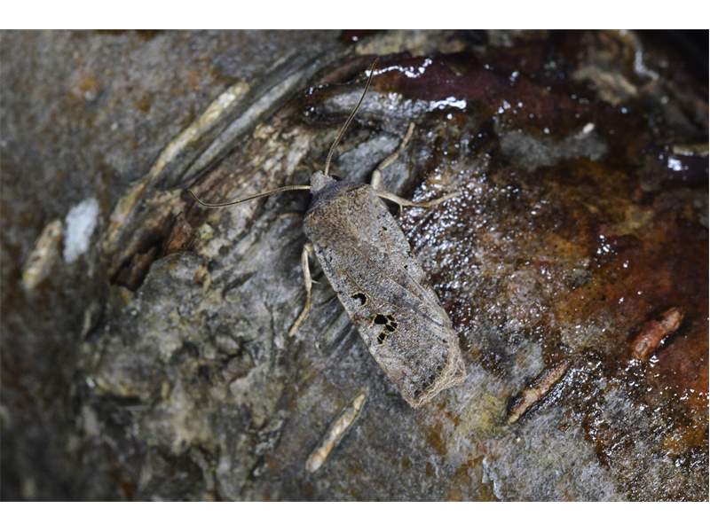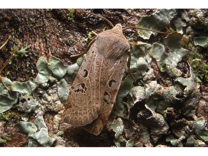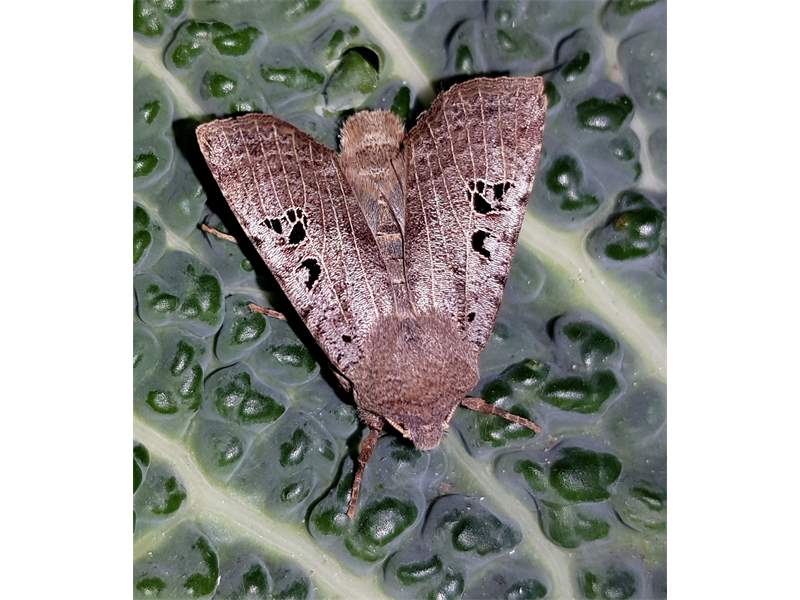 Schwarzgefleckte Wintereule, Conistra rubiginosa, Ablichtung auf Hausterrasse, Leipzig-Gohlis-Mitte, 06. März 2024 (© Heinz Sass)( Bild vergrößern)