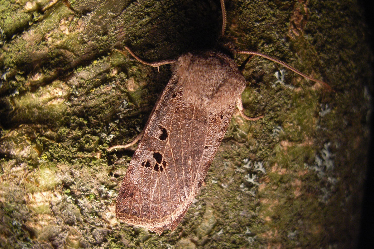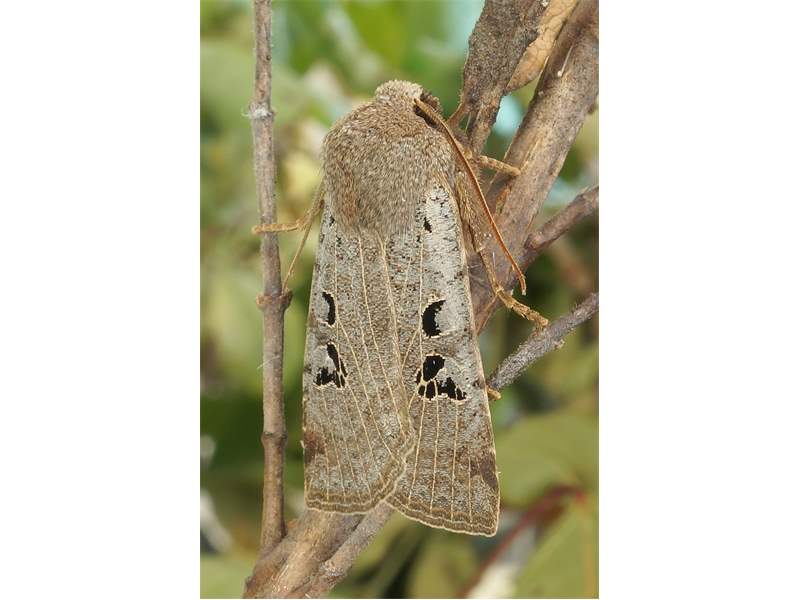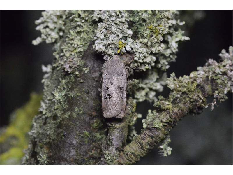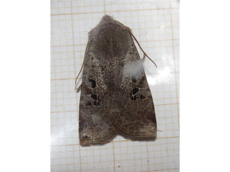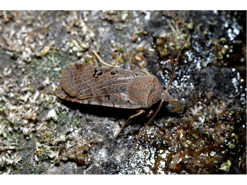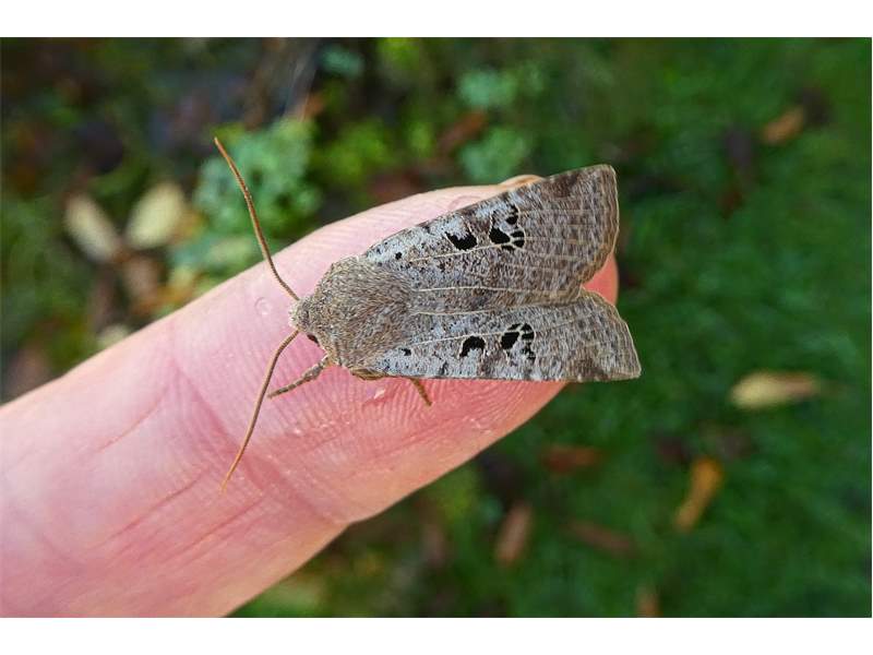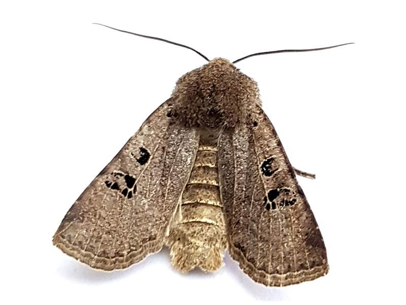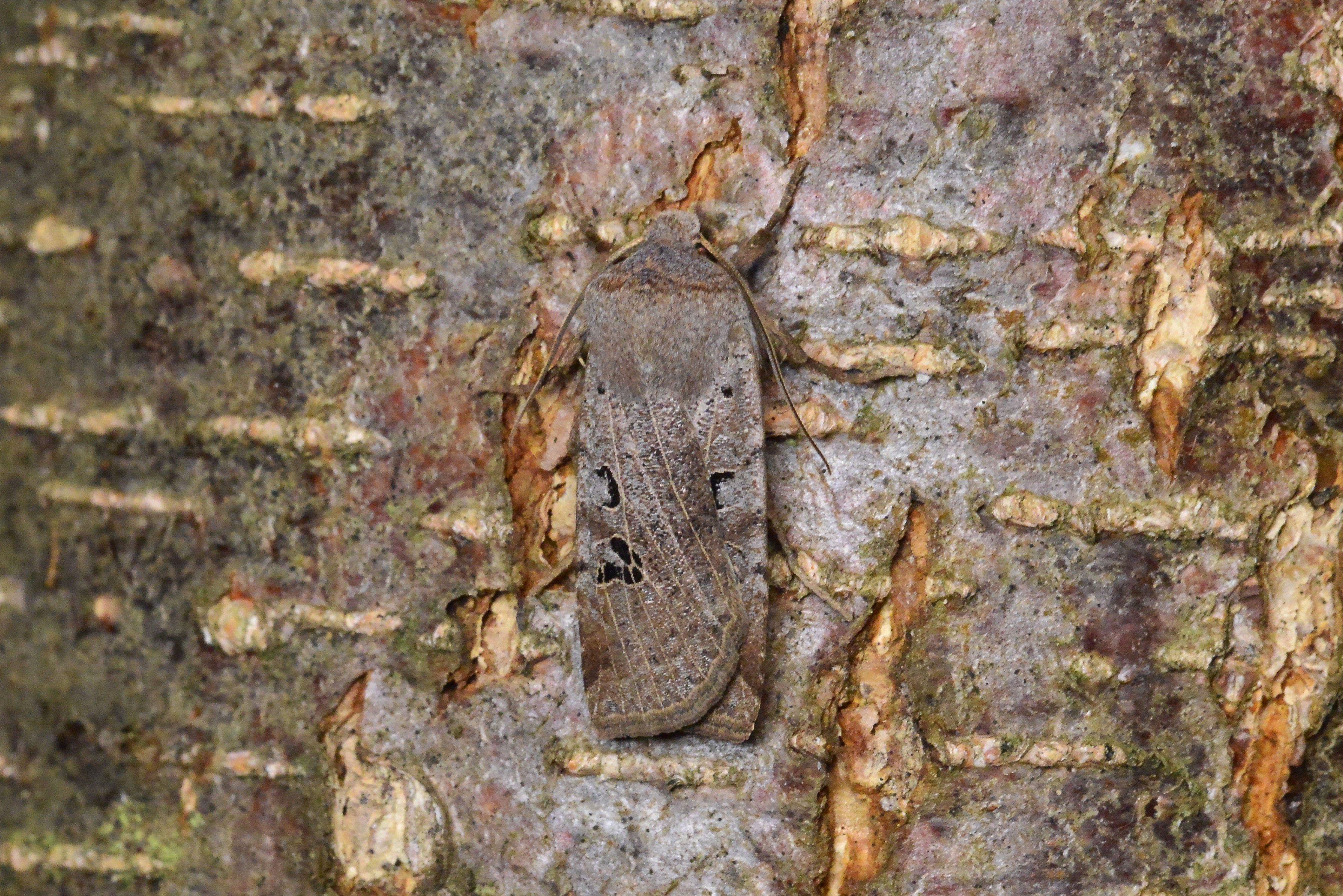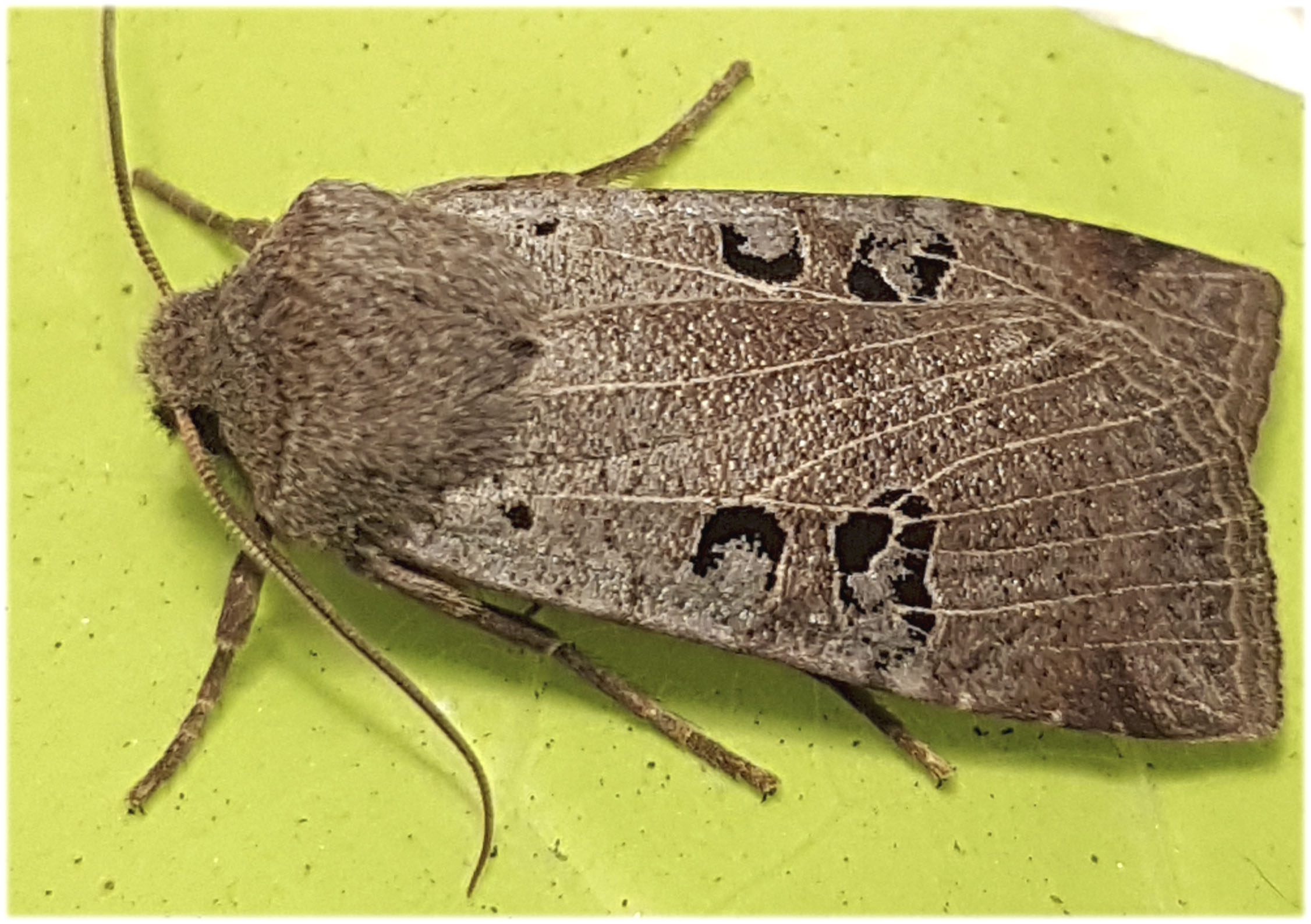 Schwarzgefleckte Wintereule, Conistra rubiginosa, Ablichtung auf Hausterrasse, Leipzig-Gohlis-Mitte, 06. März 2024 (© Heinz Sass)( Bild vergrößern)