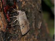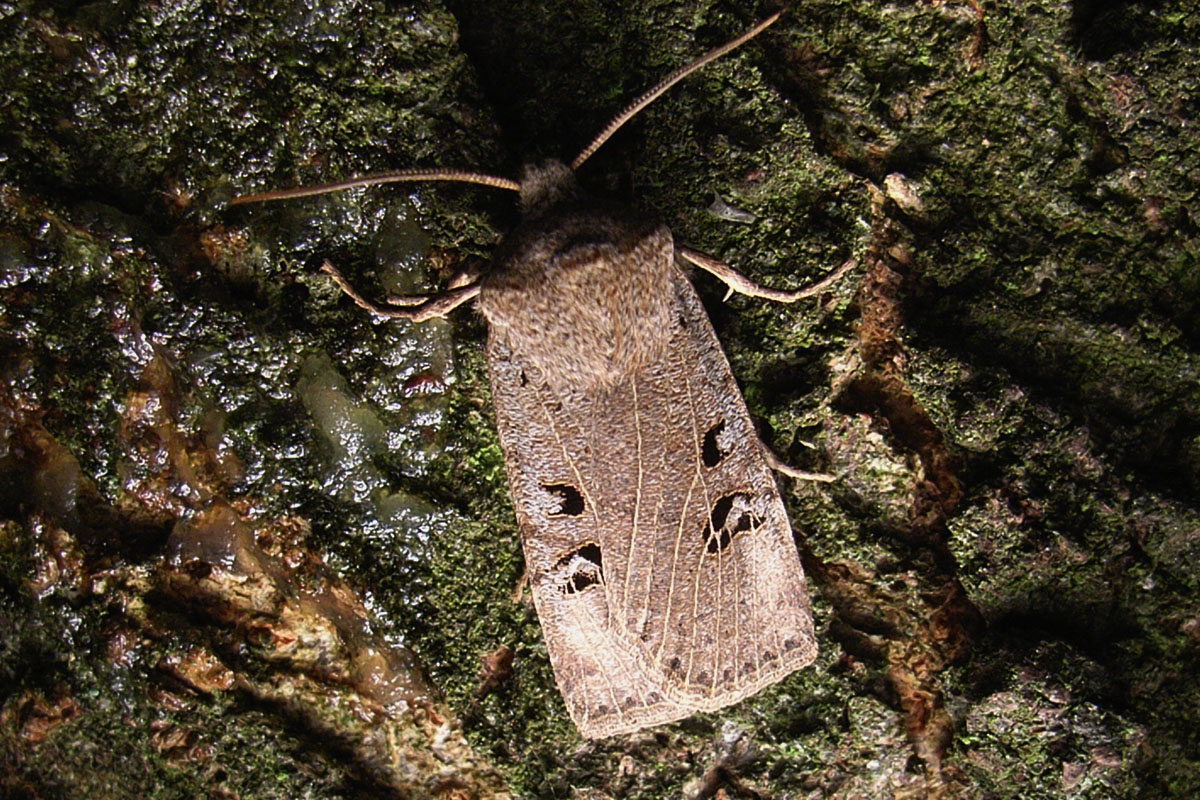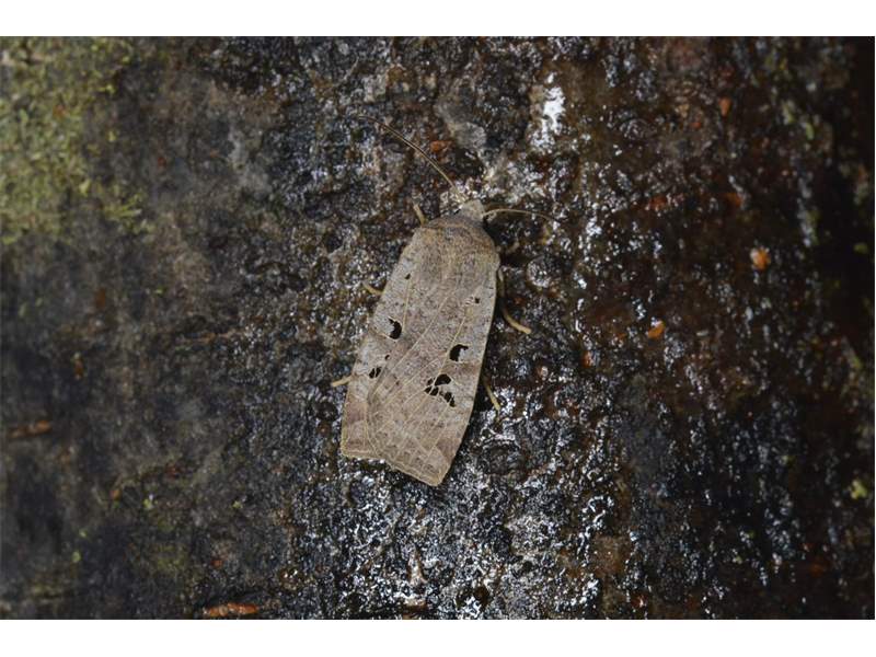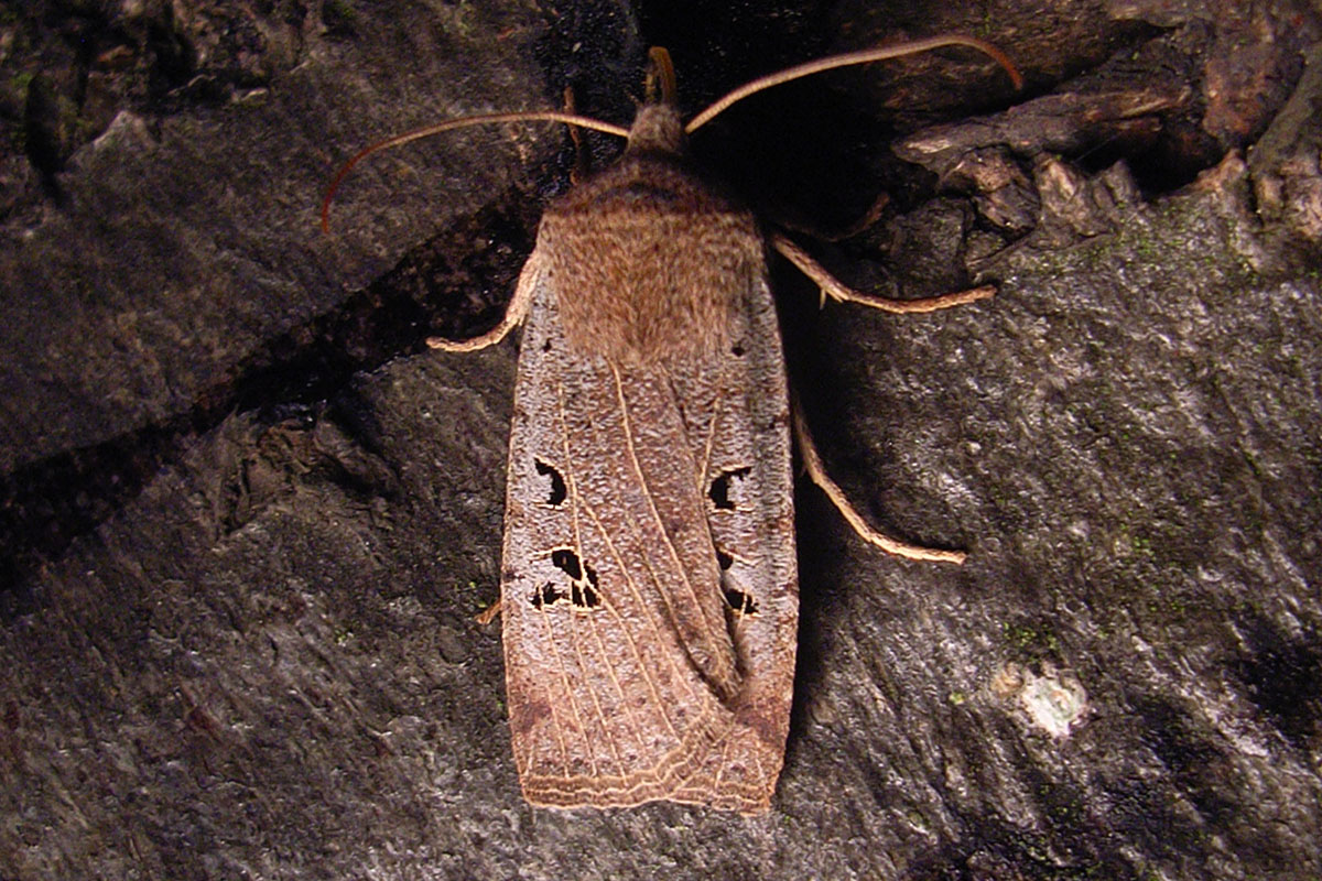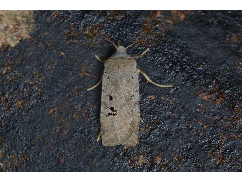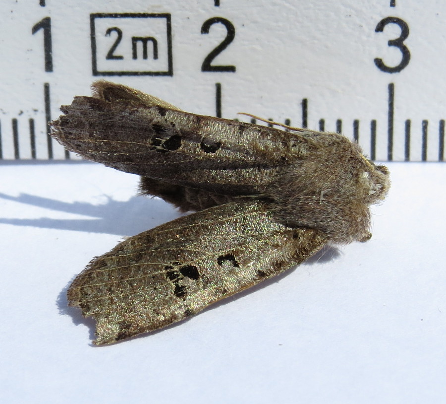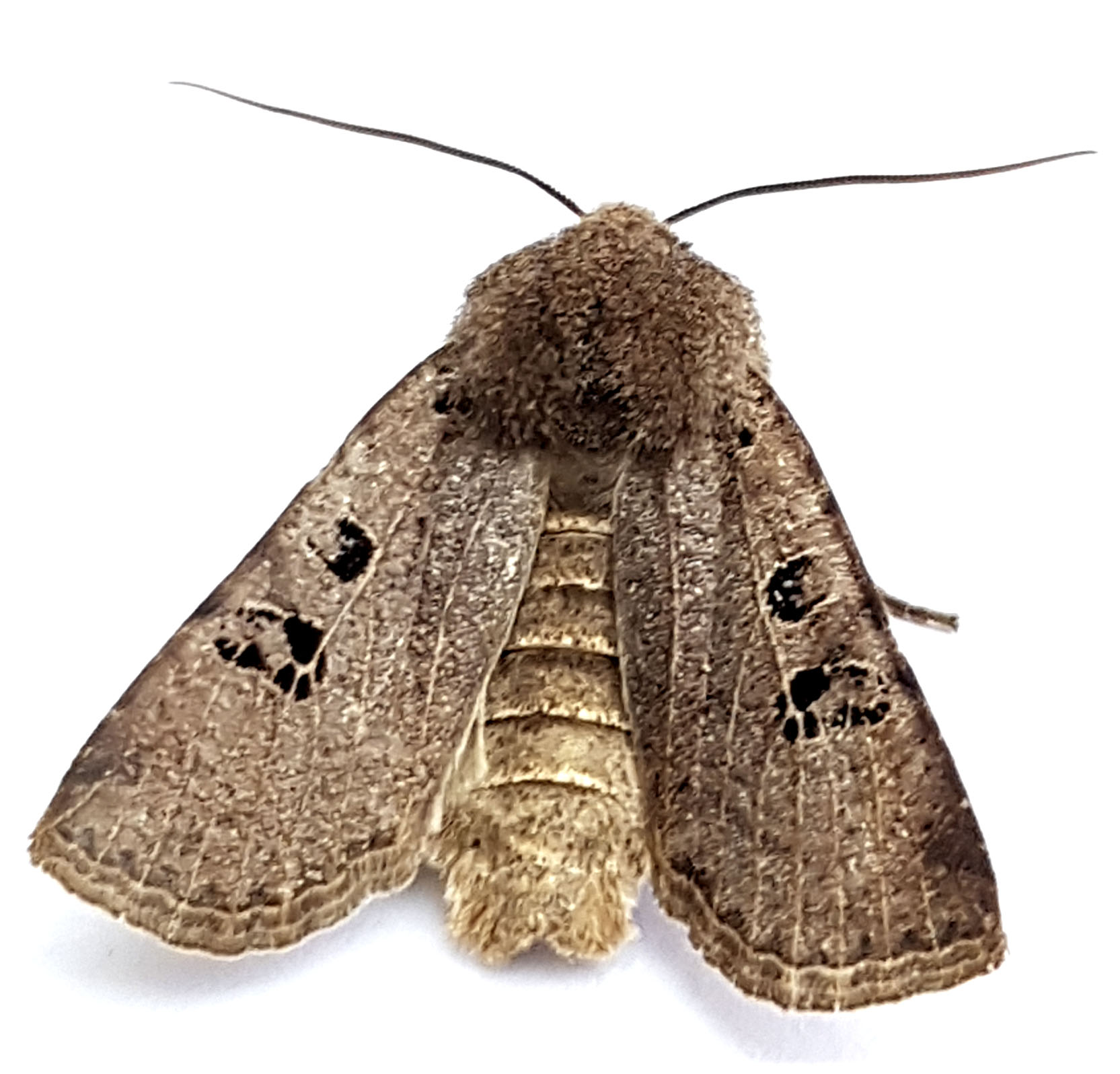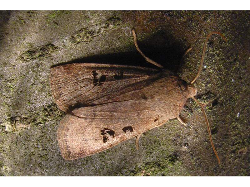 Schwarzgefleckte Wintereule, Conistra rubiginosa, Ablichtung auf Hausterrasse, Leipzig-Gohlis-Mitte, 06. März 2024 (© Heinz Sass)( Bild vergrößern)