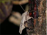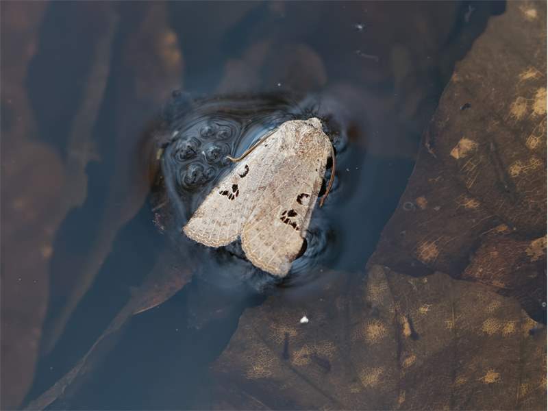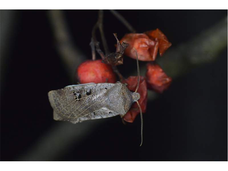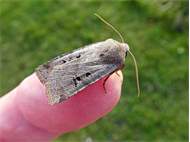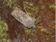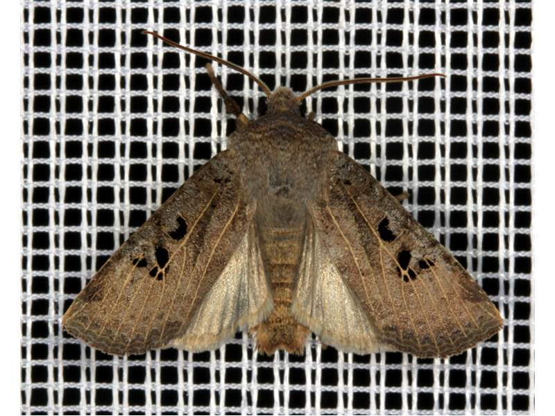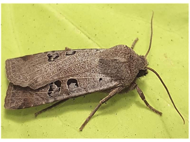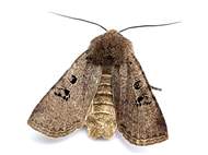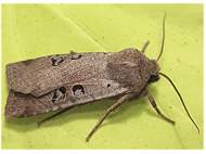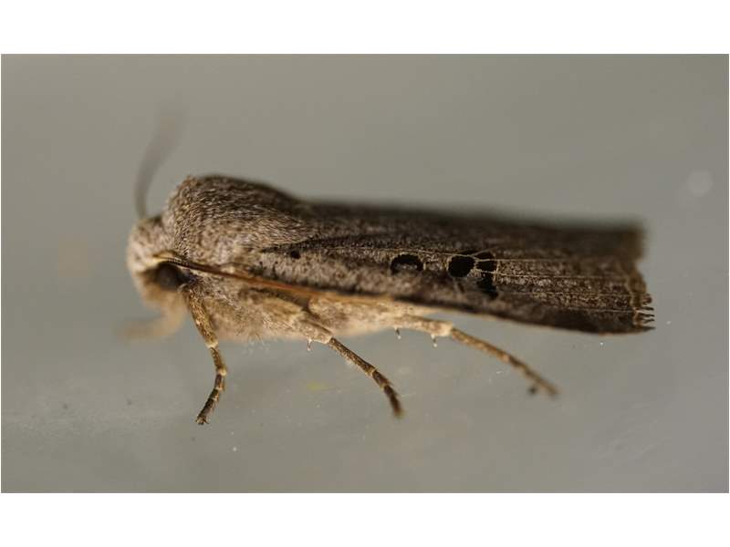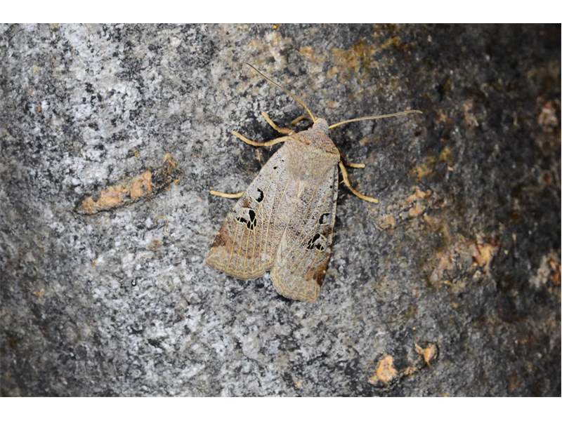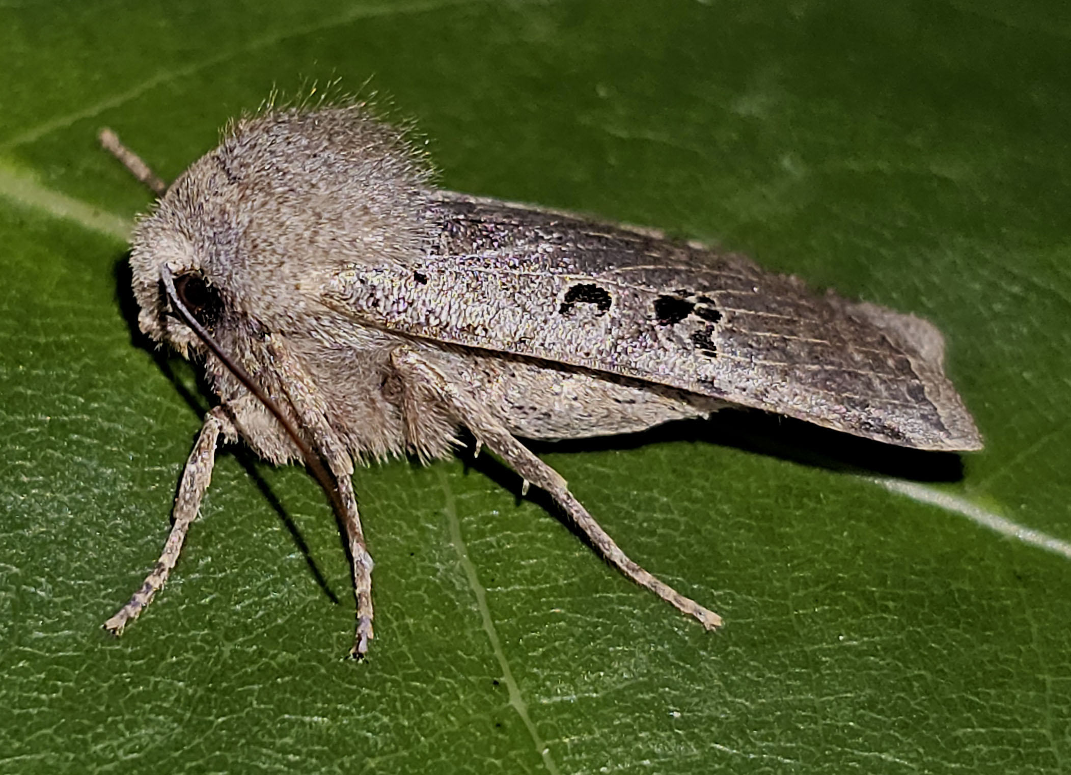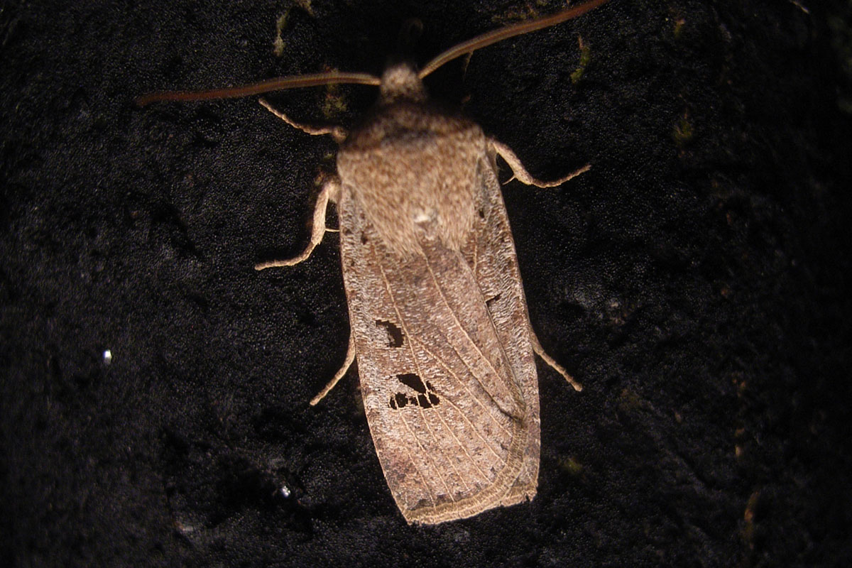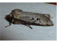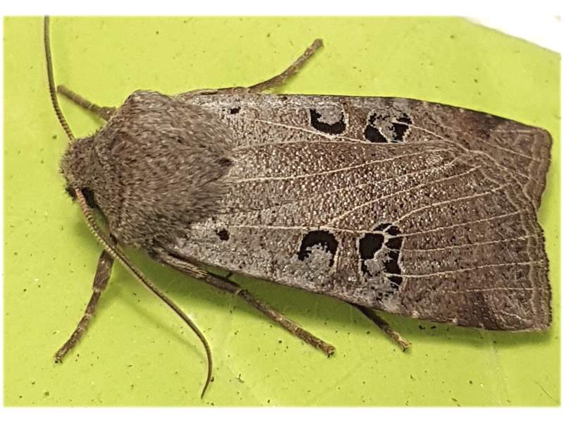 Schwarzgefleckte Wintereule, Conistra rubiginosa, Ablichtung auf Hausterrasse, Leipzig-Gohlis-Mitte, 06. März 2024 (© Heinz Sass)( Bild vergrößern)