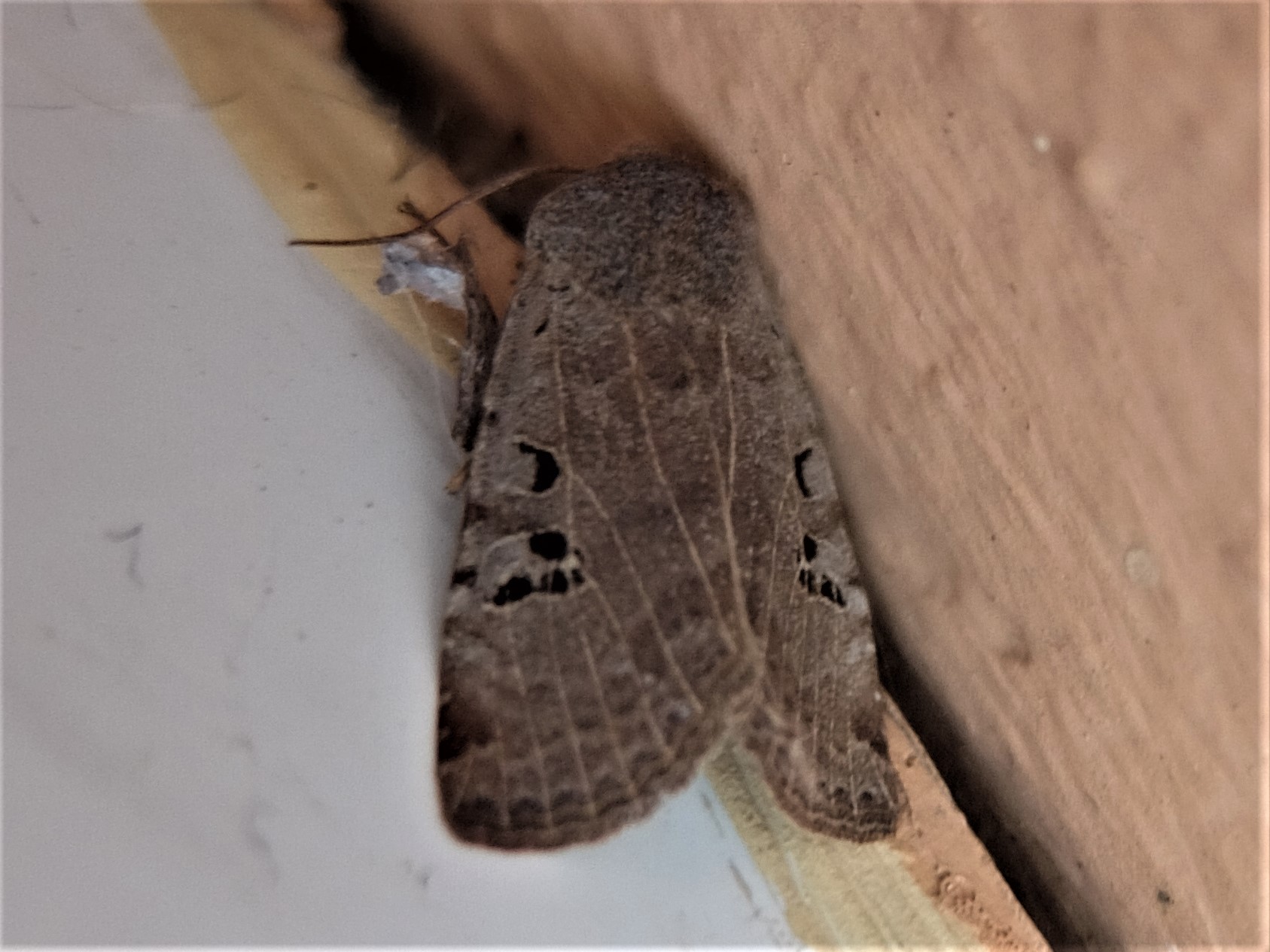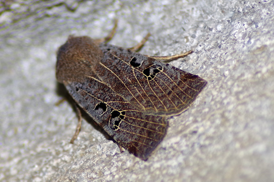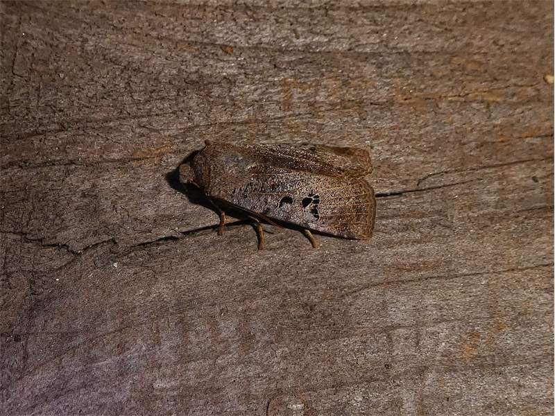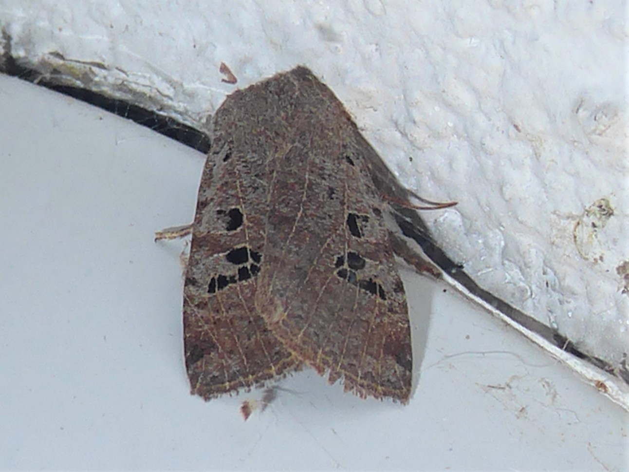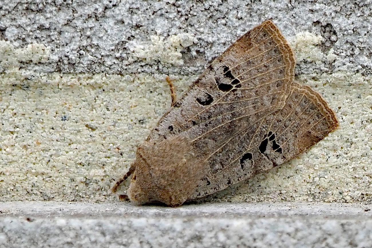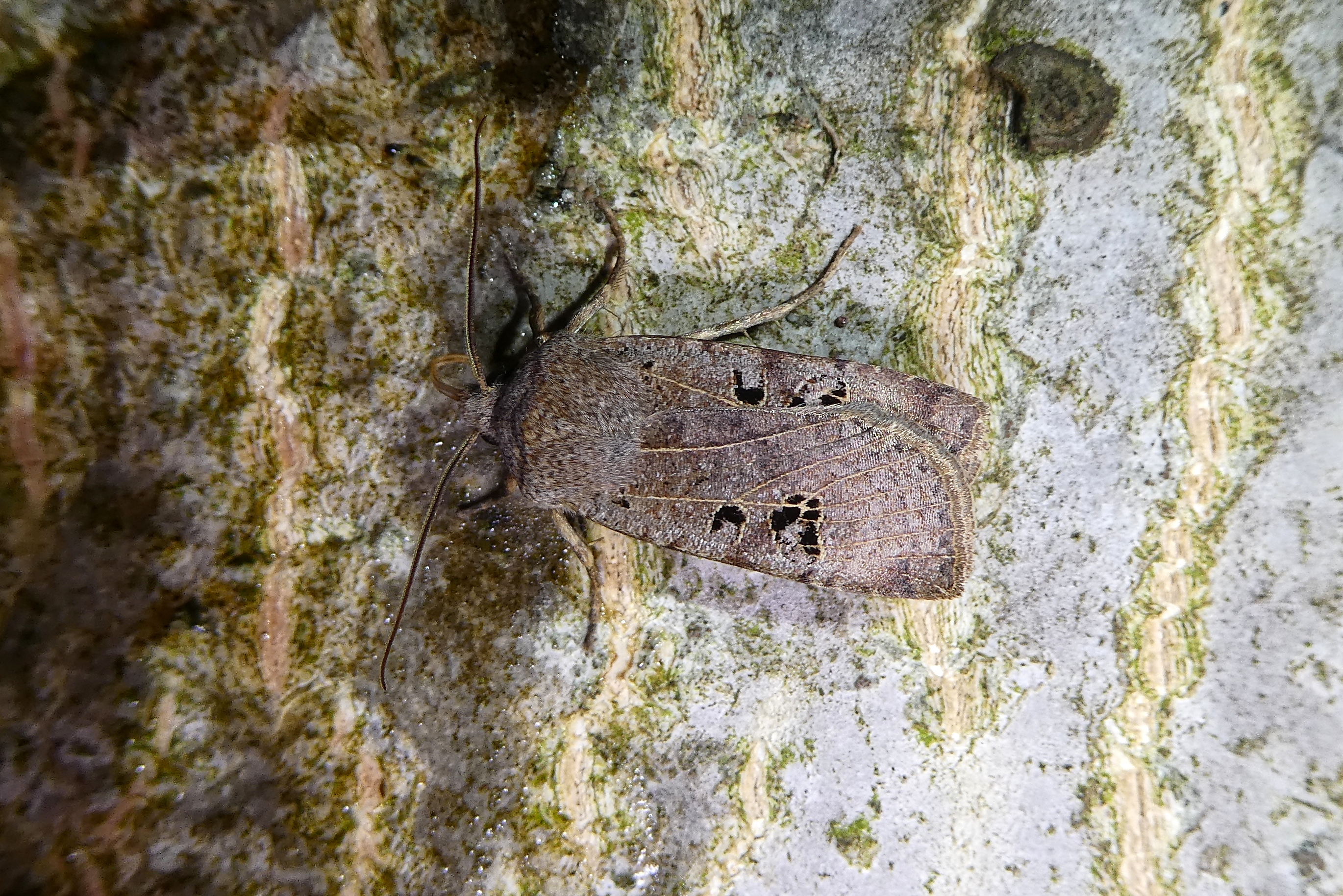 Schwarzgefleckte Wintereule, Conistra rubiginosa, Ablichtung auf Hausterrasse, Leipzig-Gohlis-Mitte, 06. März 2024