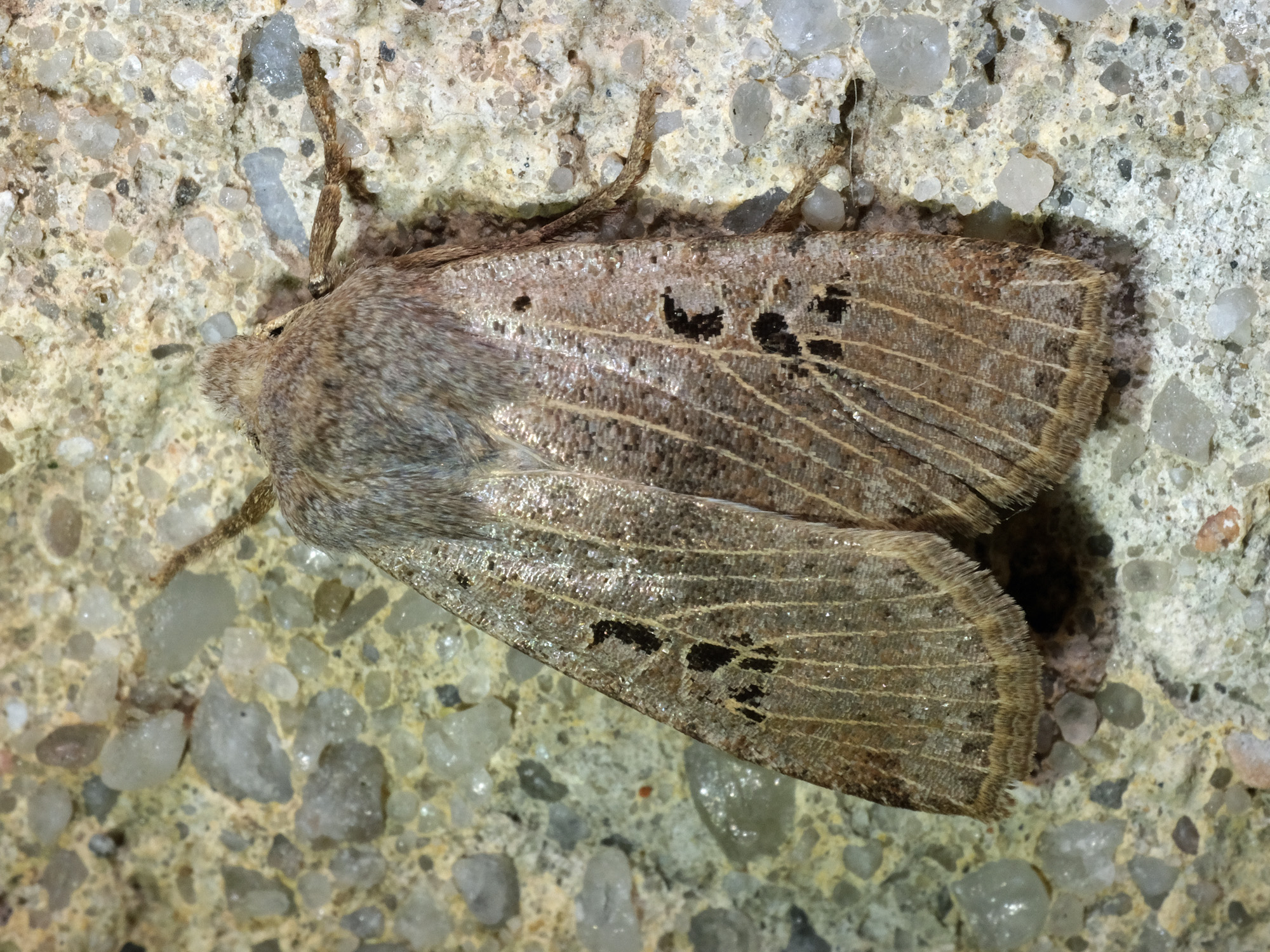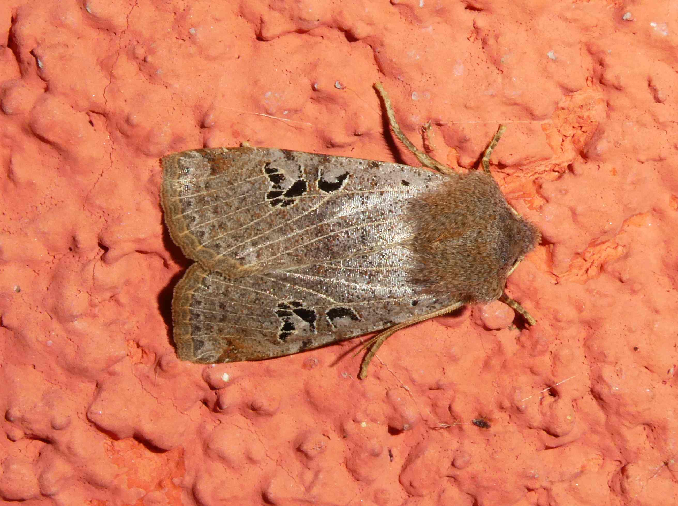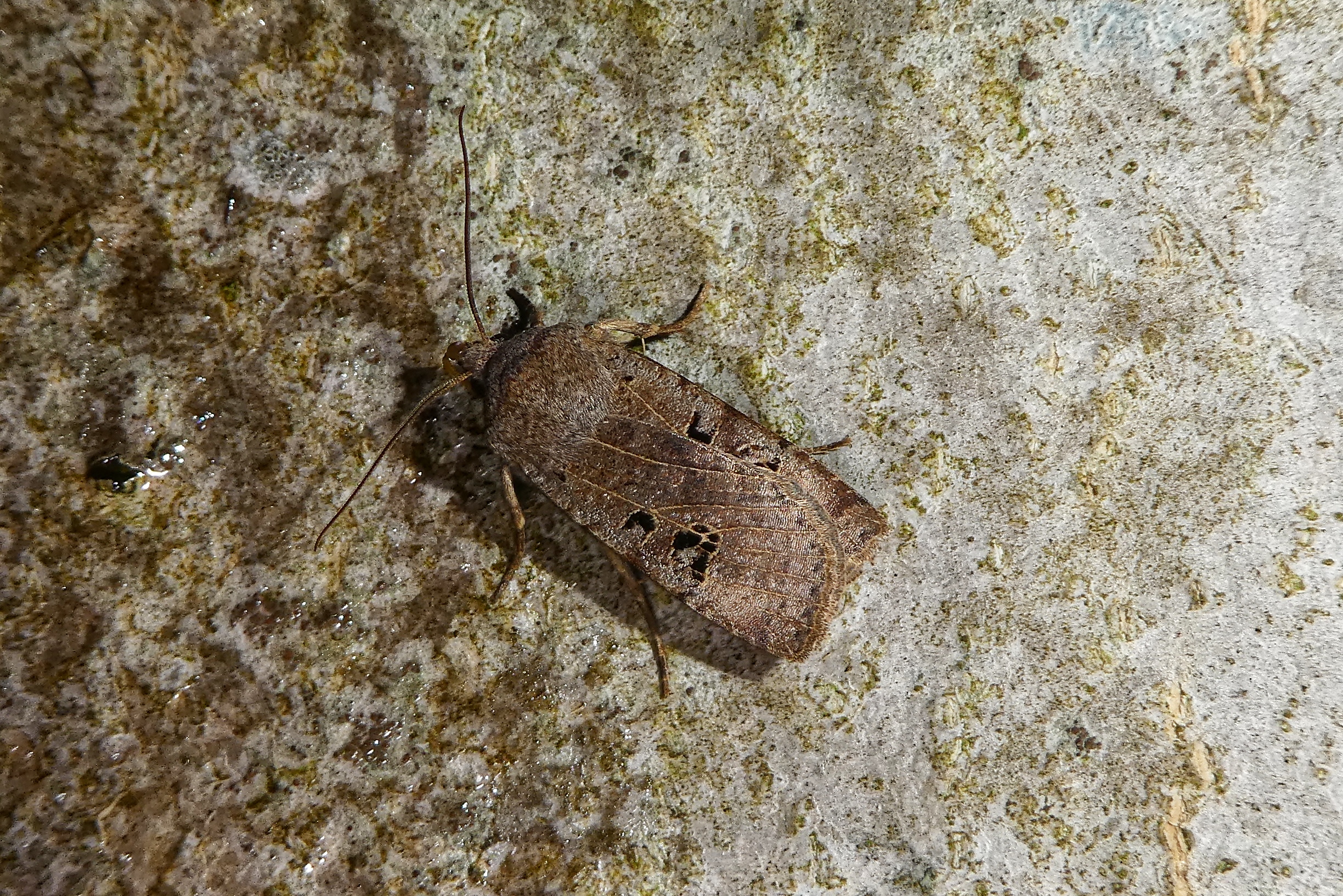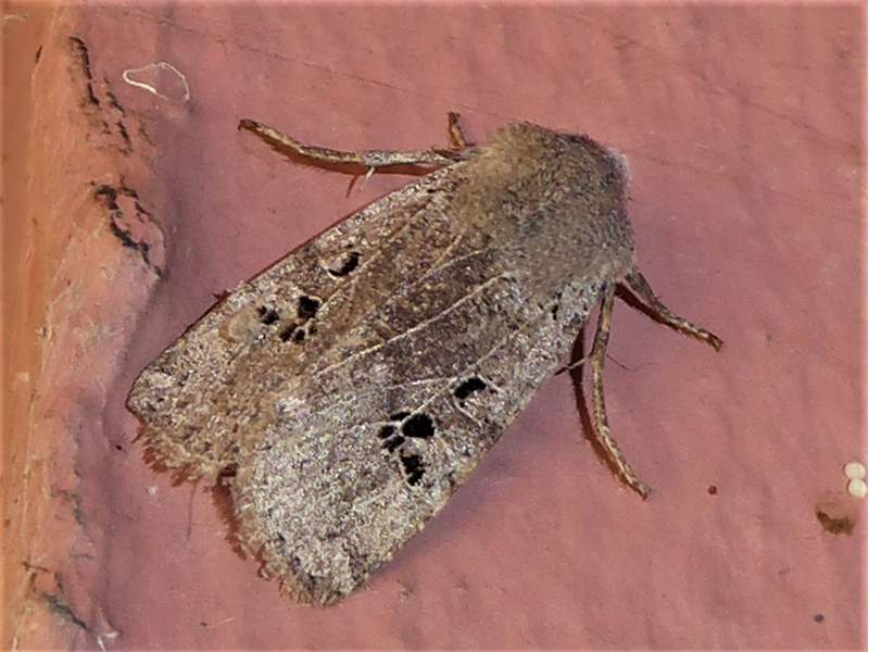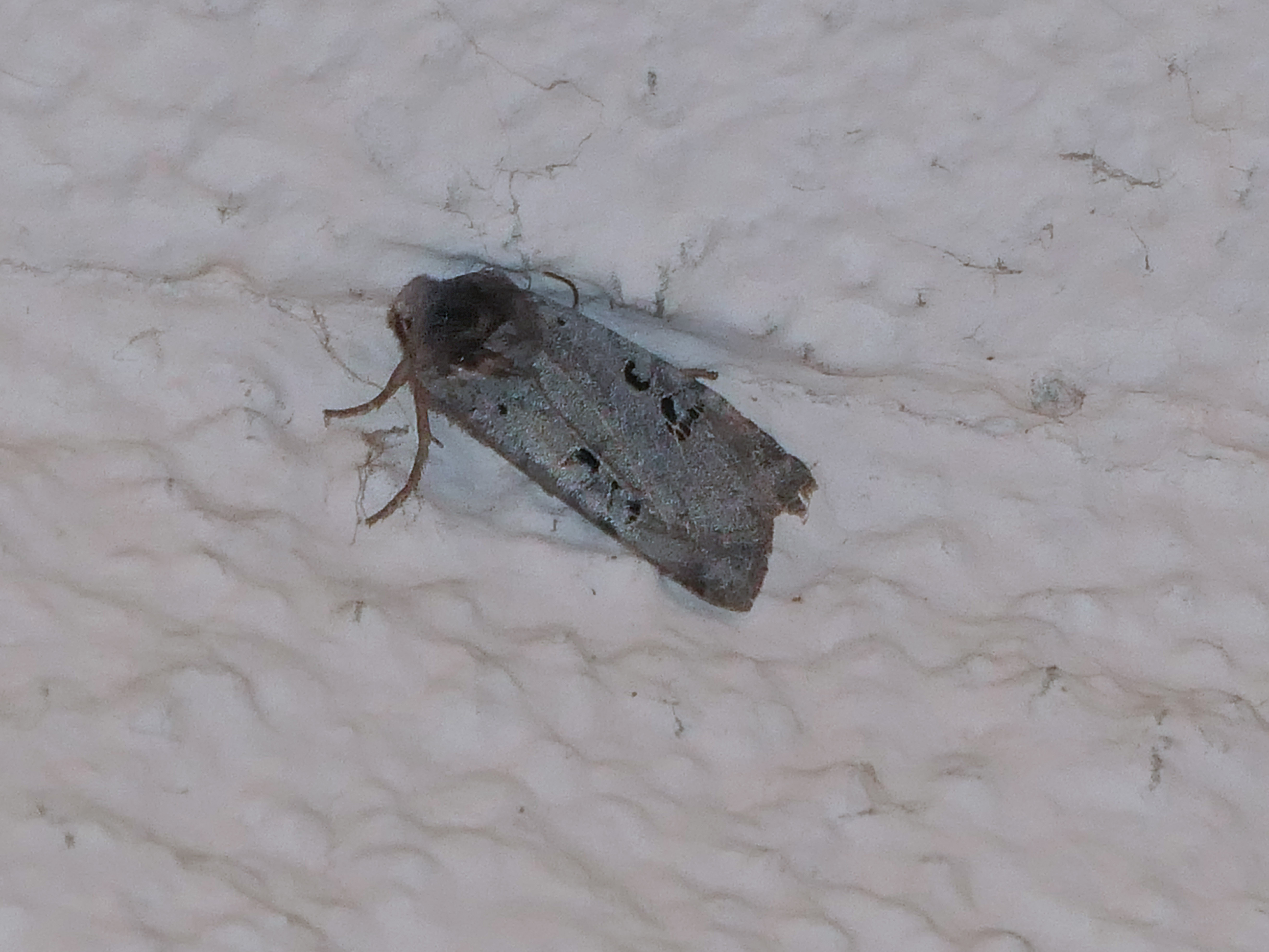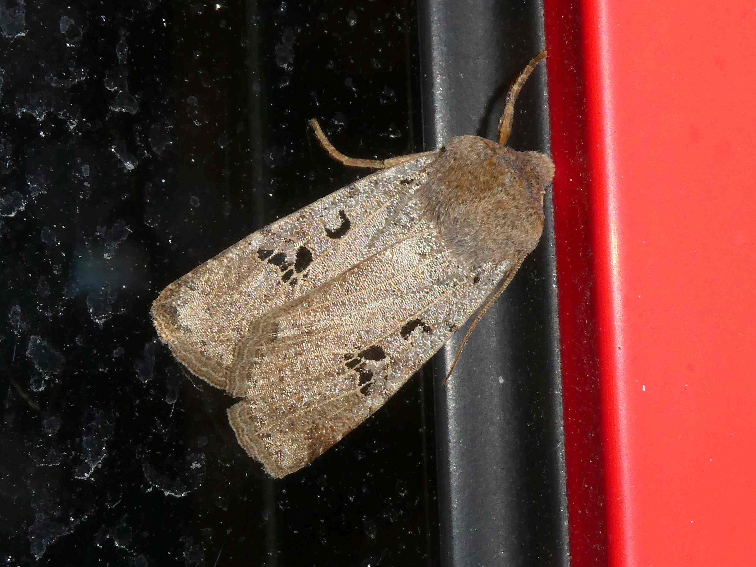 Schwarzgefleckte Wintereule, Conistra rubiginosa, Ablichtung auf Hausterrasse, Leipzig-Gohlis-Mitte, 06. März 2024